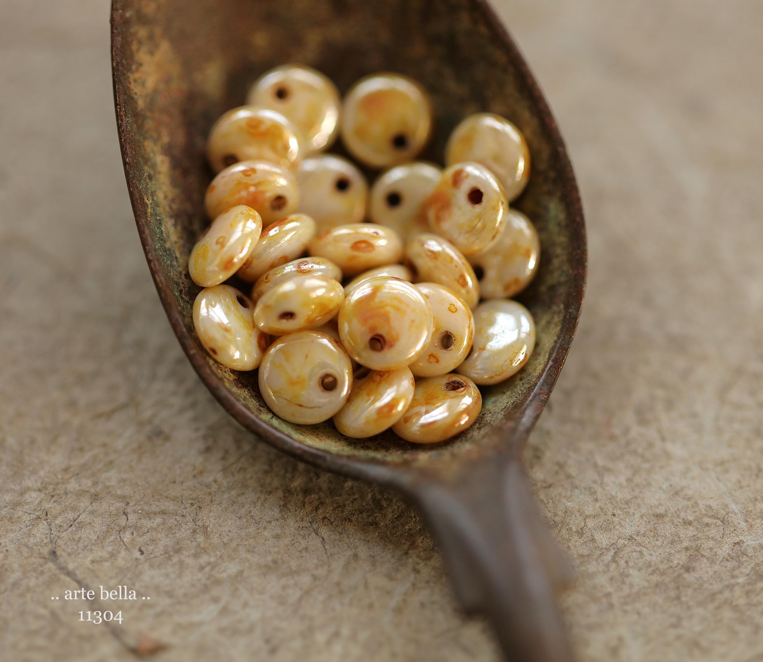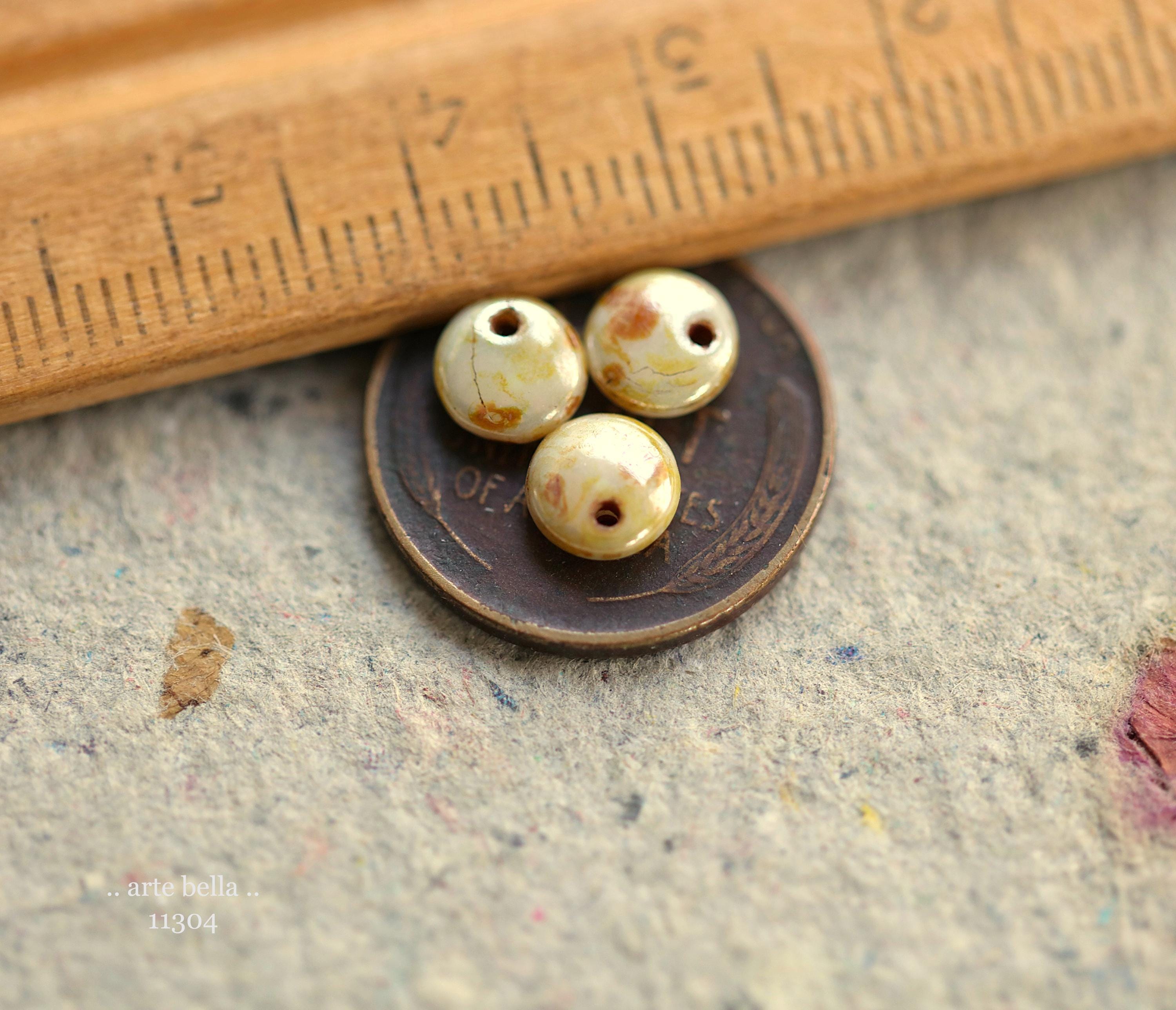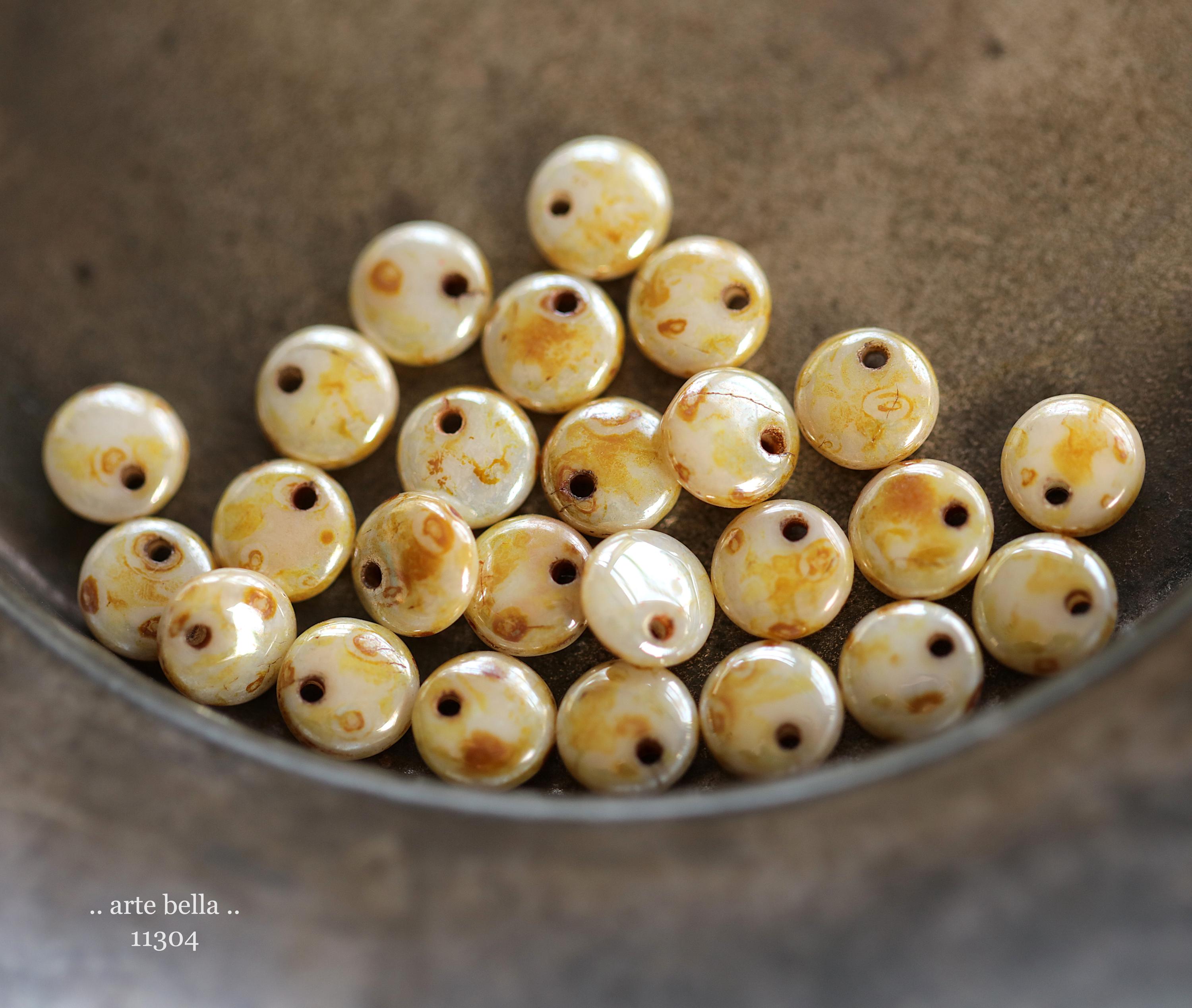 New .. CREME BRULE' DOTS .. 25 Premium Luster Picasso Czech Glass Lentil Beads 6mm (11304-25) .. jewelry supplies