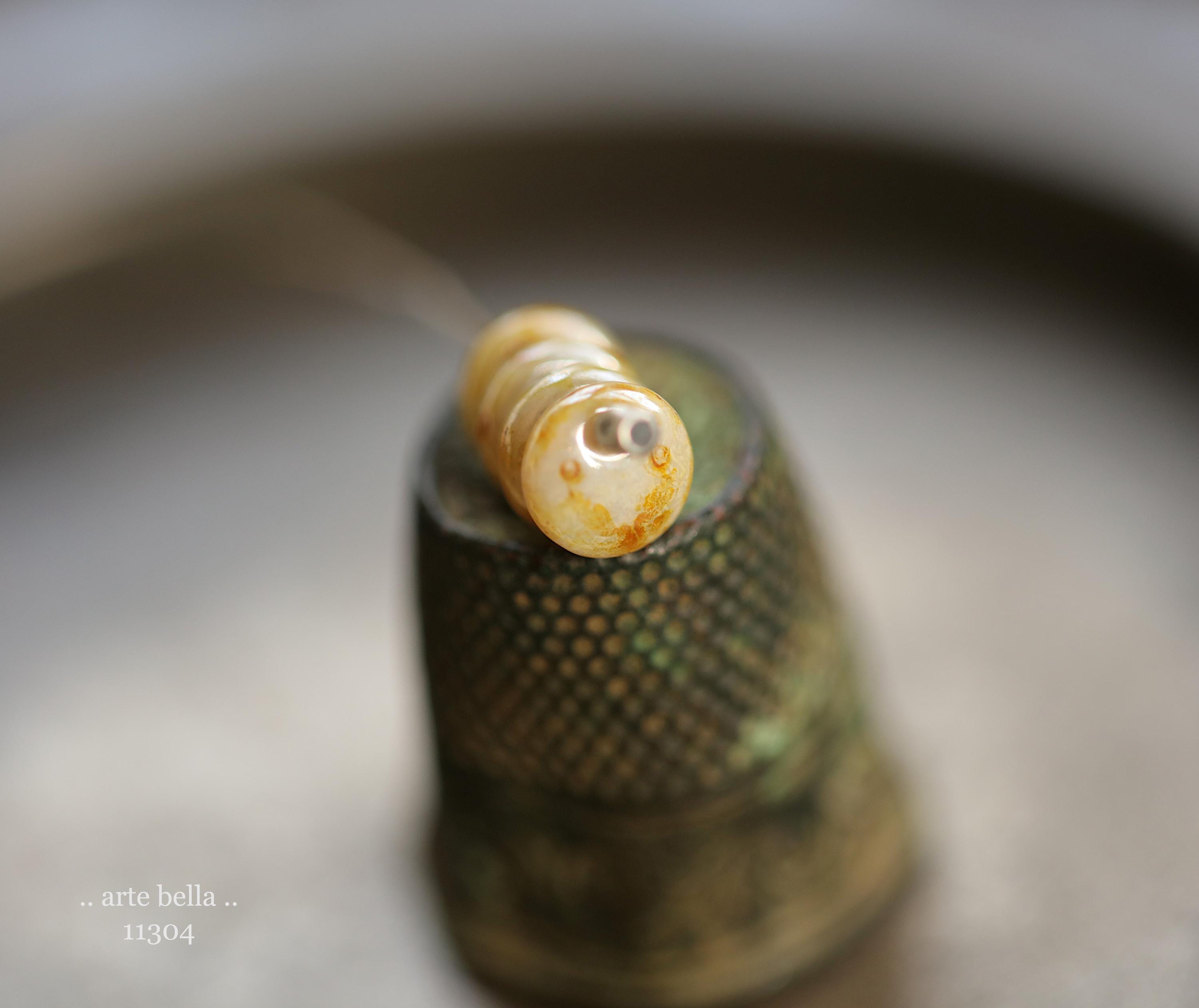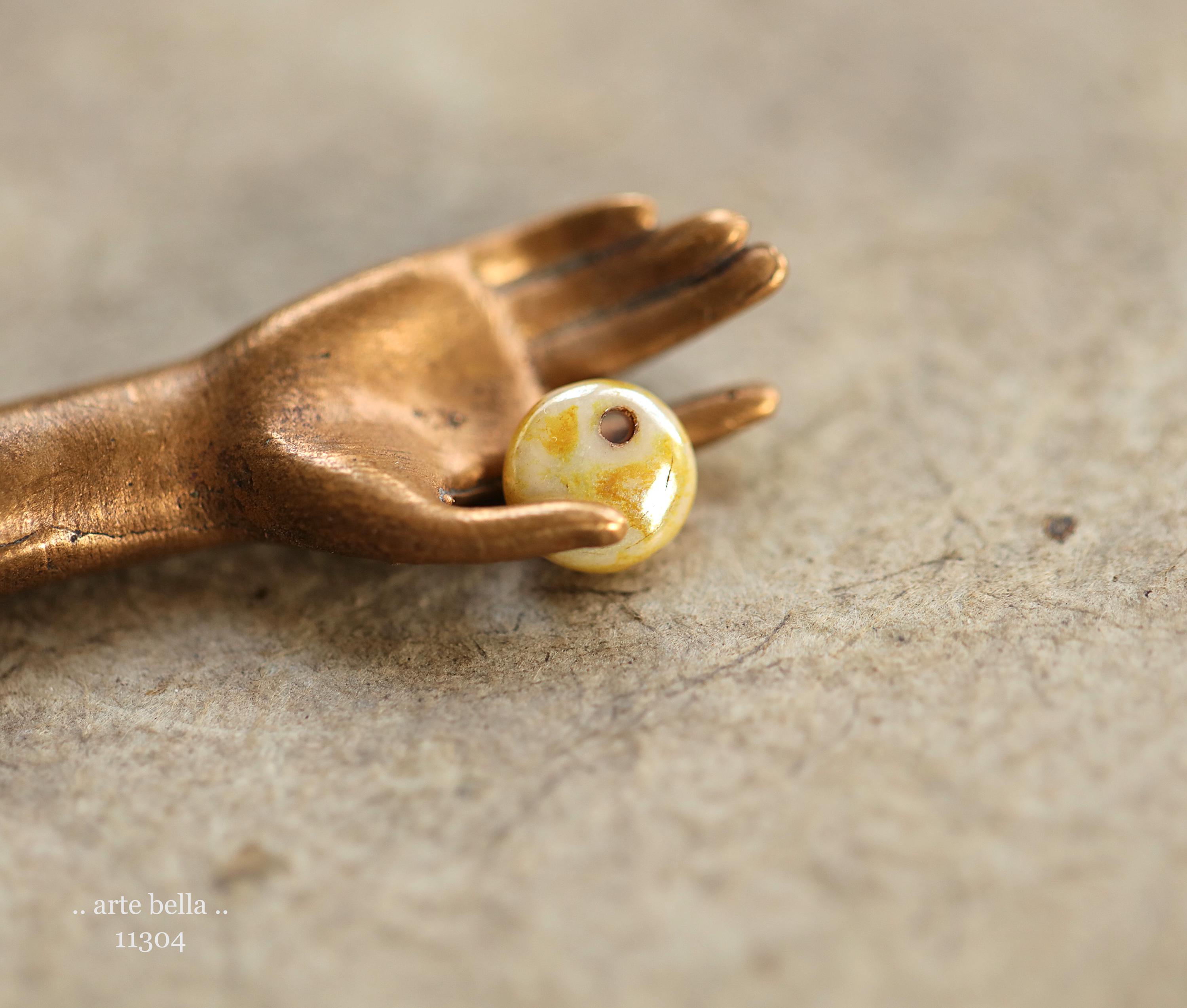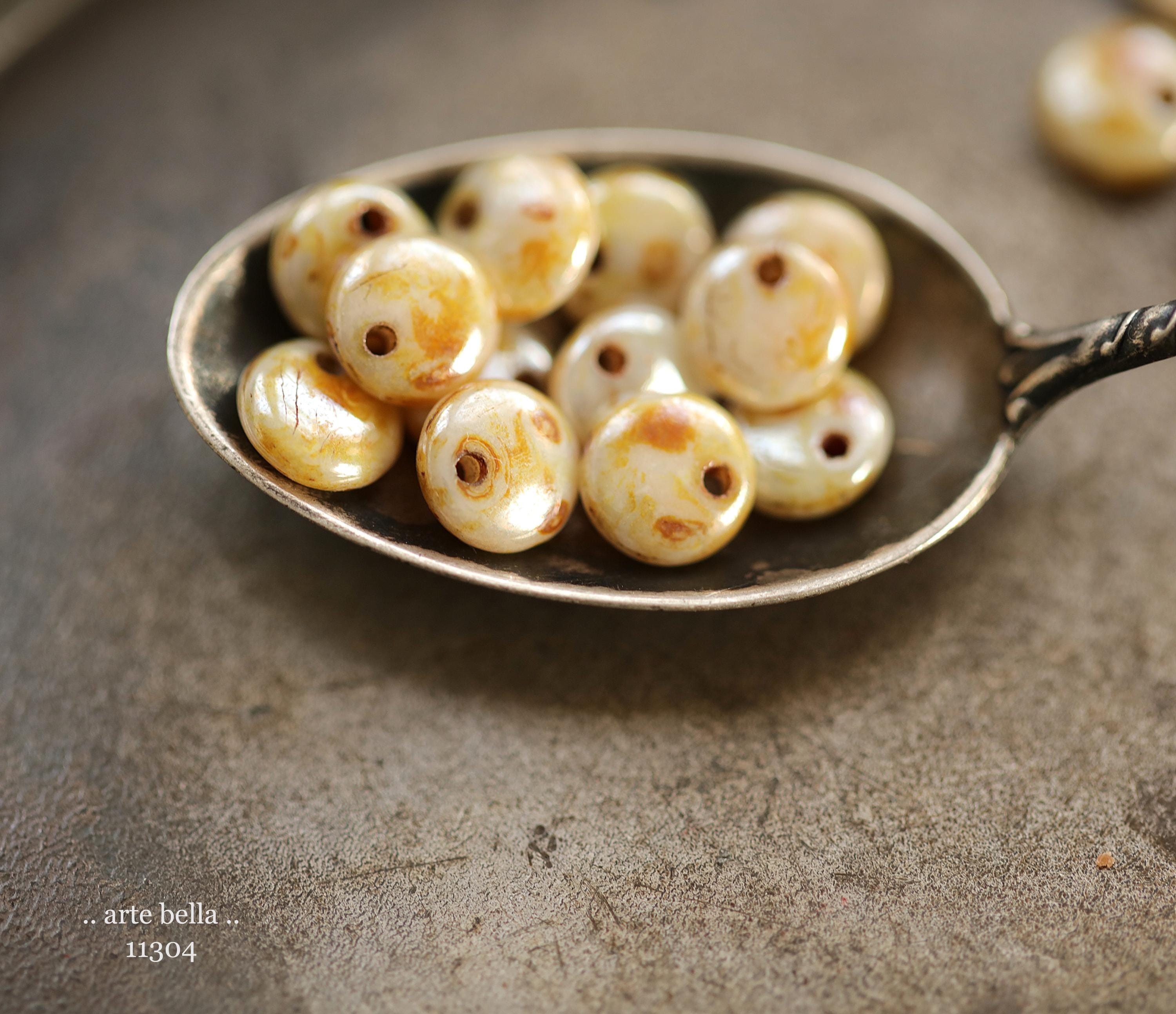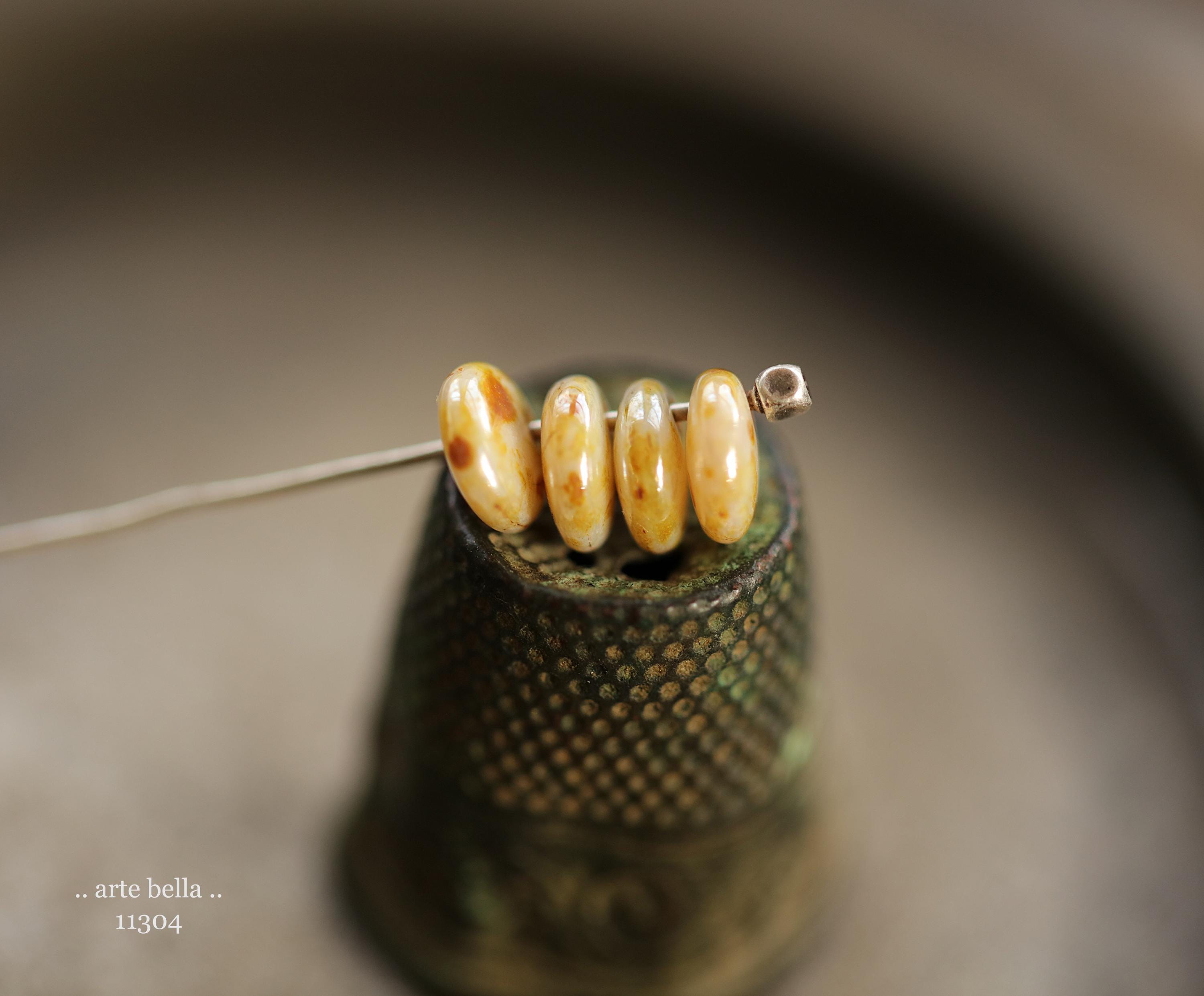 New .. CREME BRULE' DOTS .. 25 Premium Luster Picasso Czech Glass Lentil Beads 6mm (11304-25) .. jewelry supplies