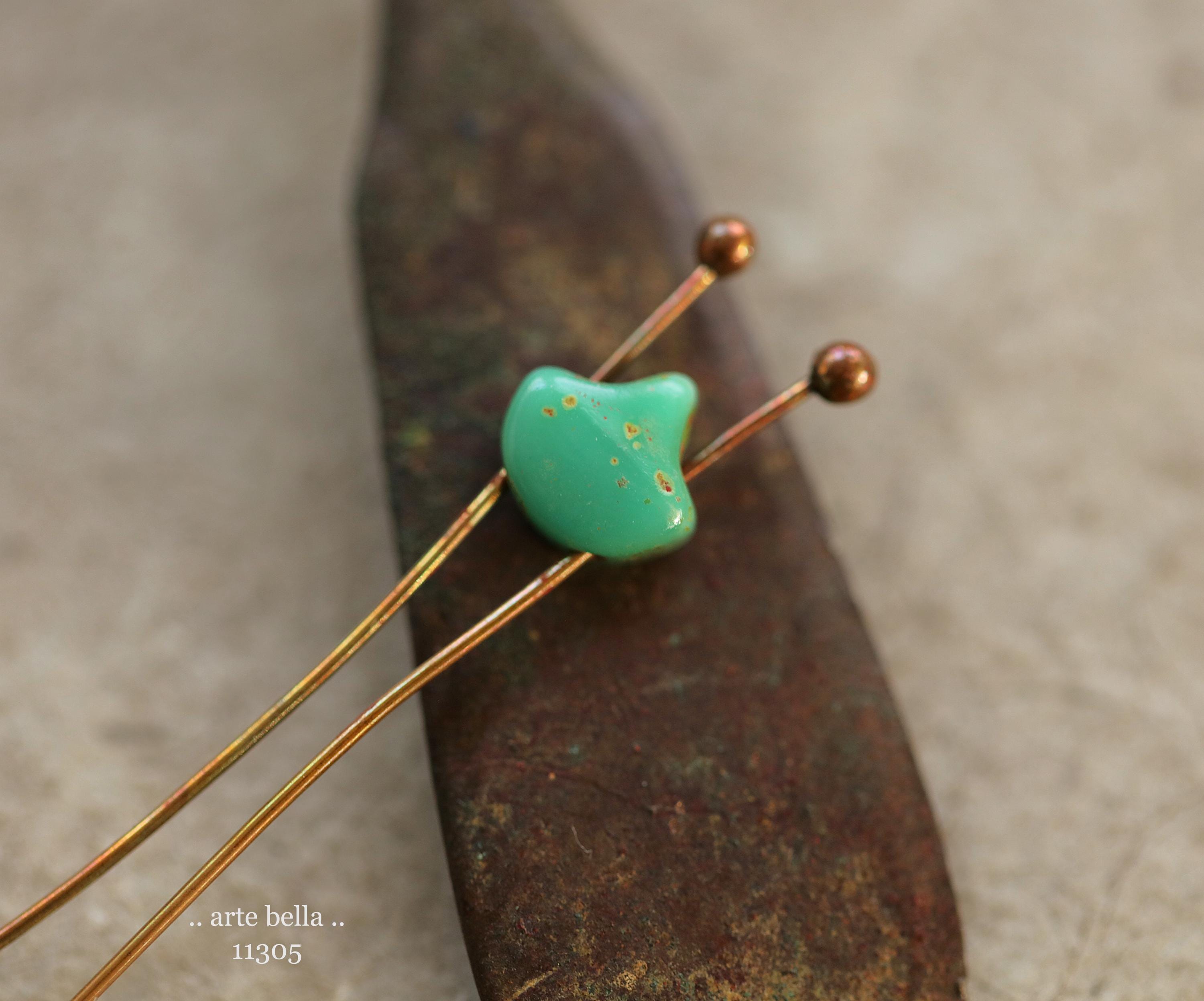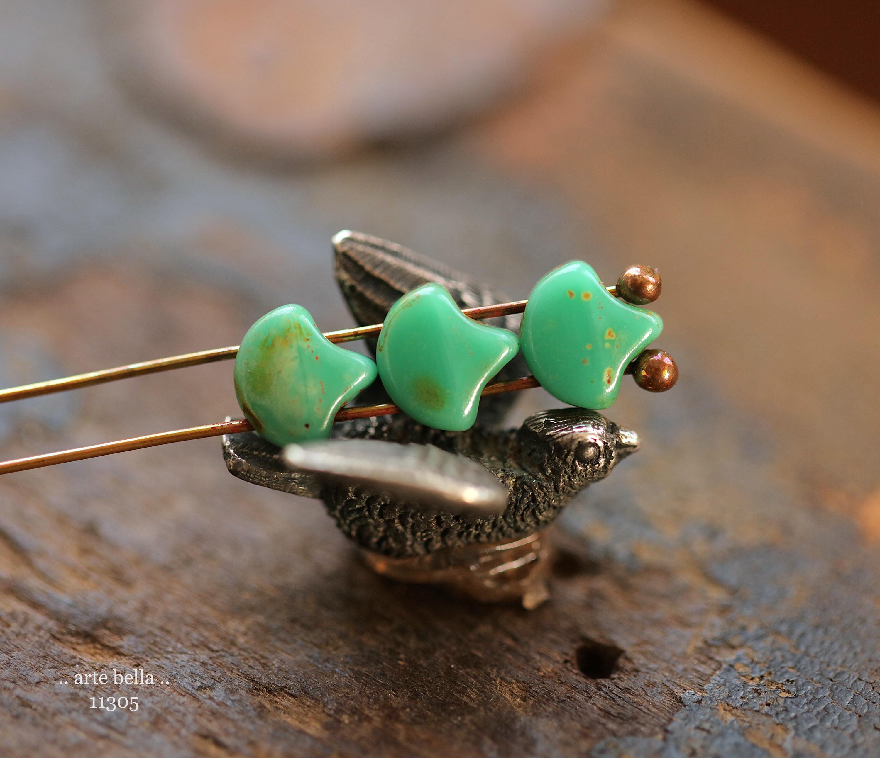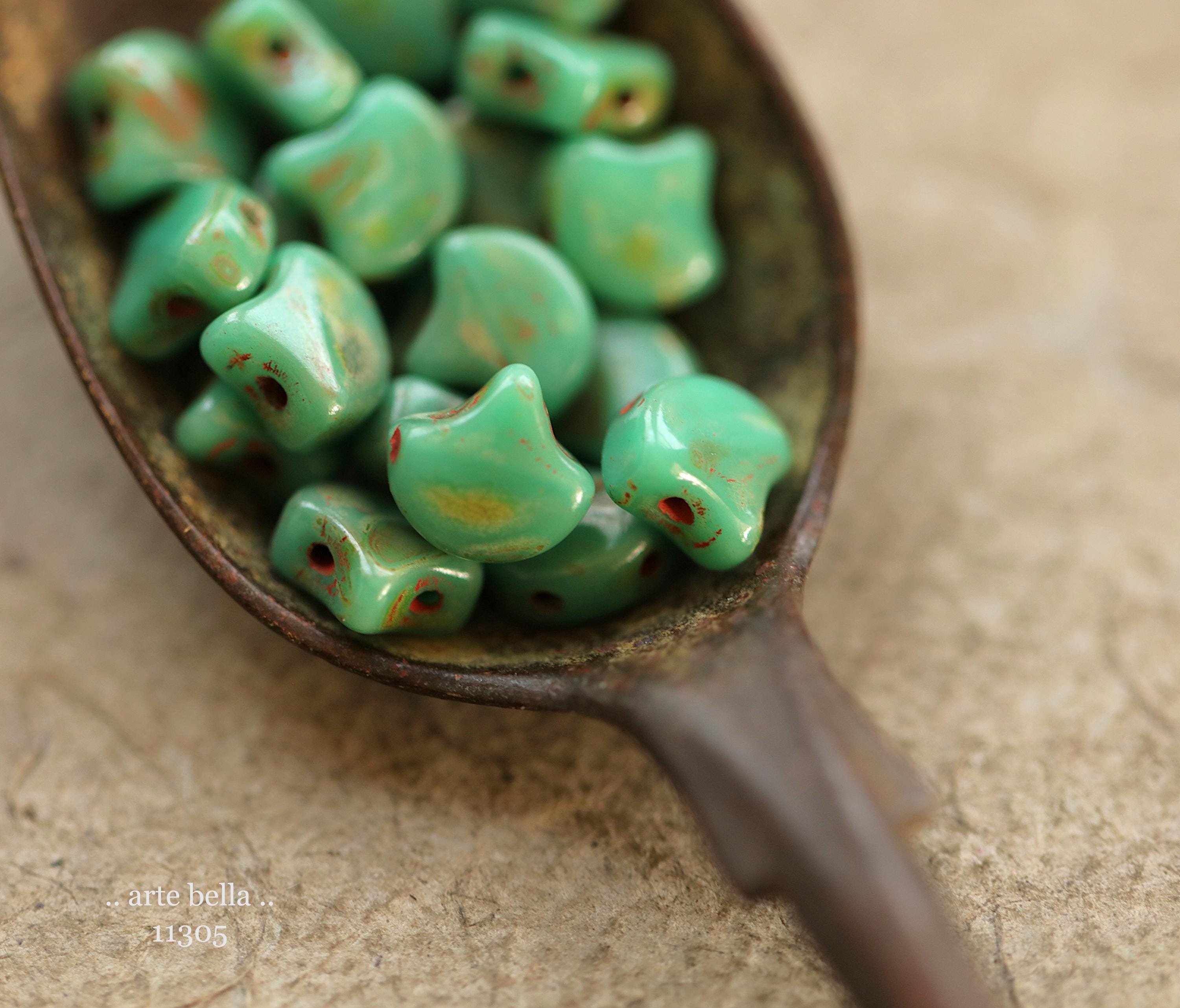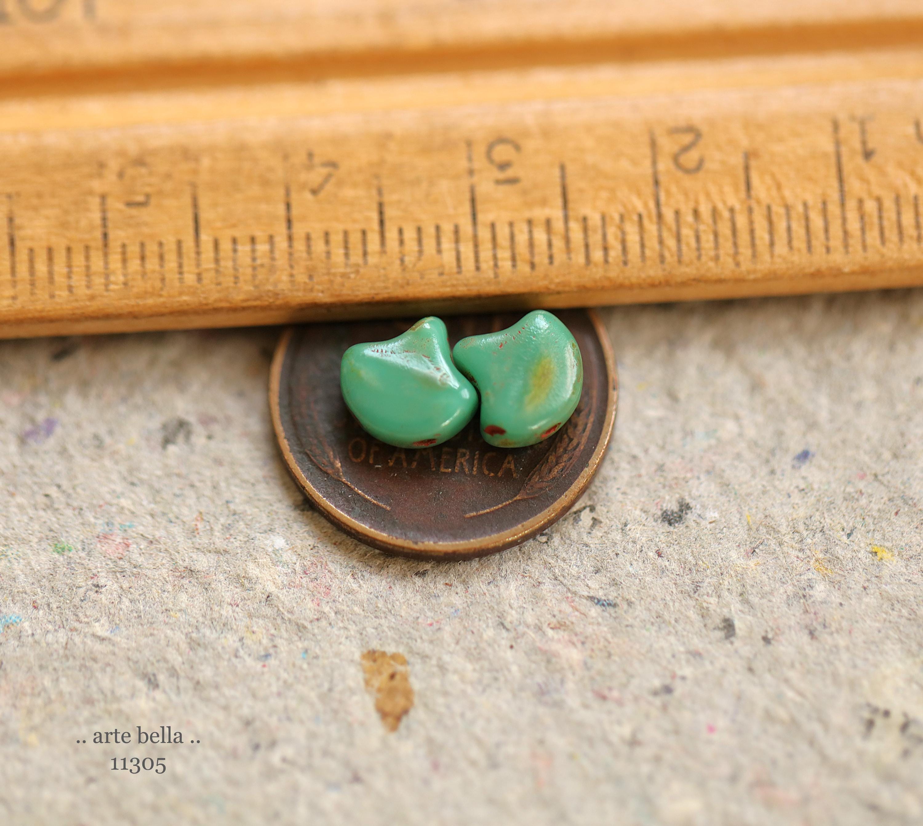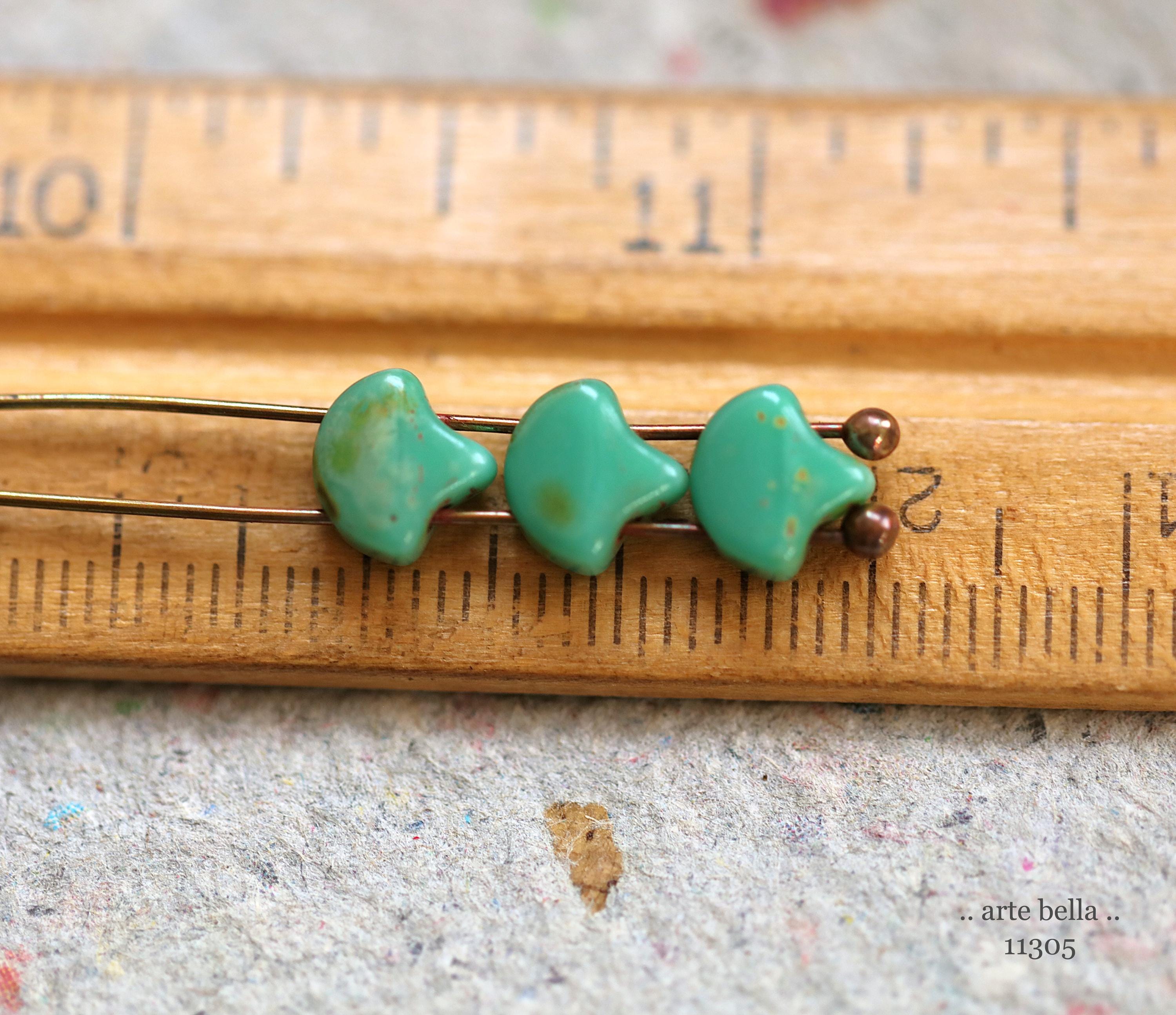 New .. TURQUOISE GINKGO LEAVES .. 20 Premium Matubo Picasso Czech Glass Leaf Beads 7.5mm (11305-20) .. jewelry supplies