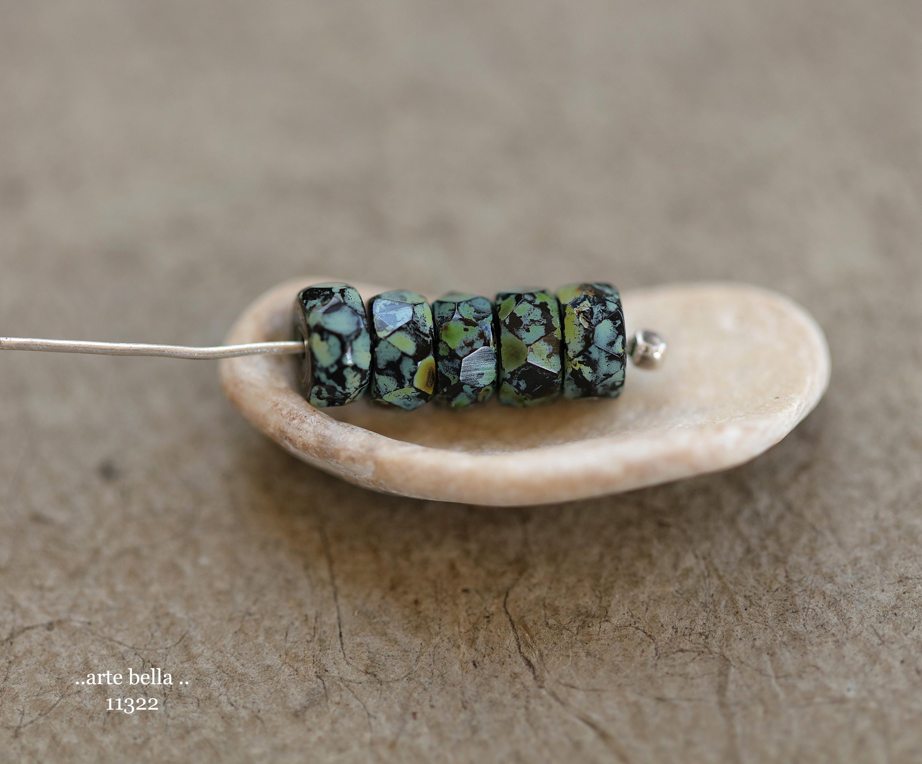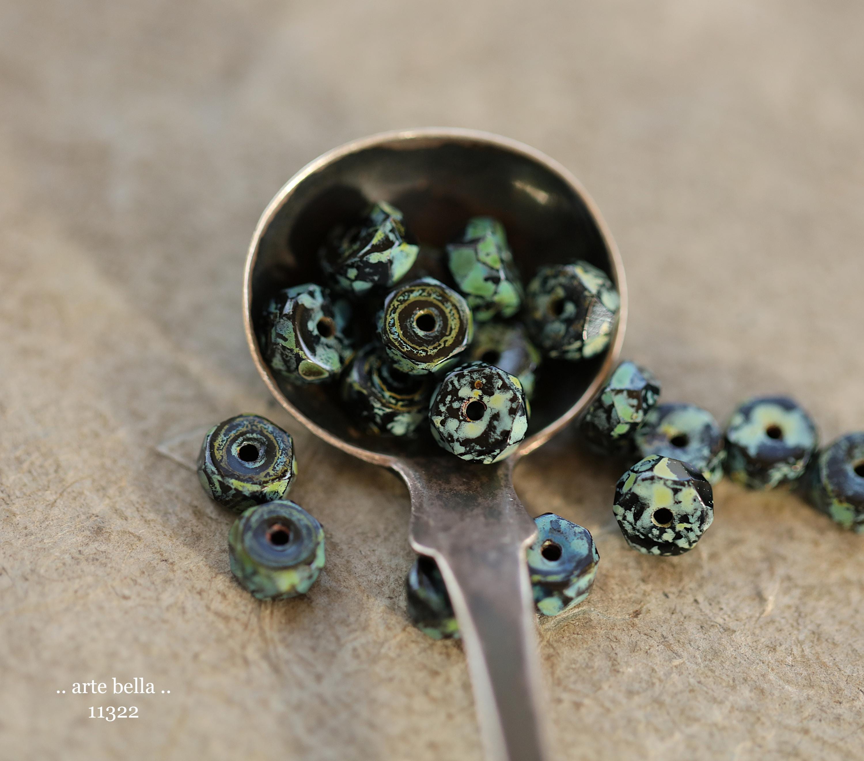 New .. TWILIGHT WHEELS .. 25 Premium Picasso Czech Glass Faceted Spacer Rondelle Bead 6x3mm (11322-25) .. jewelry supplies