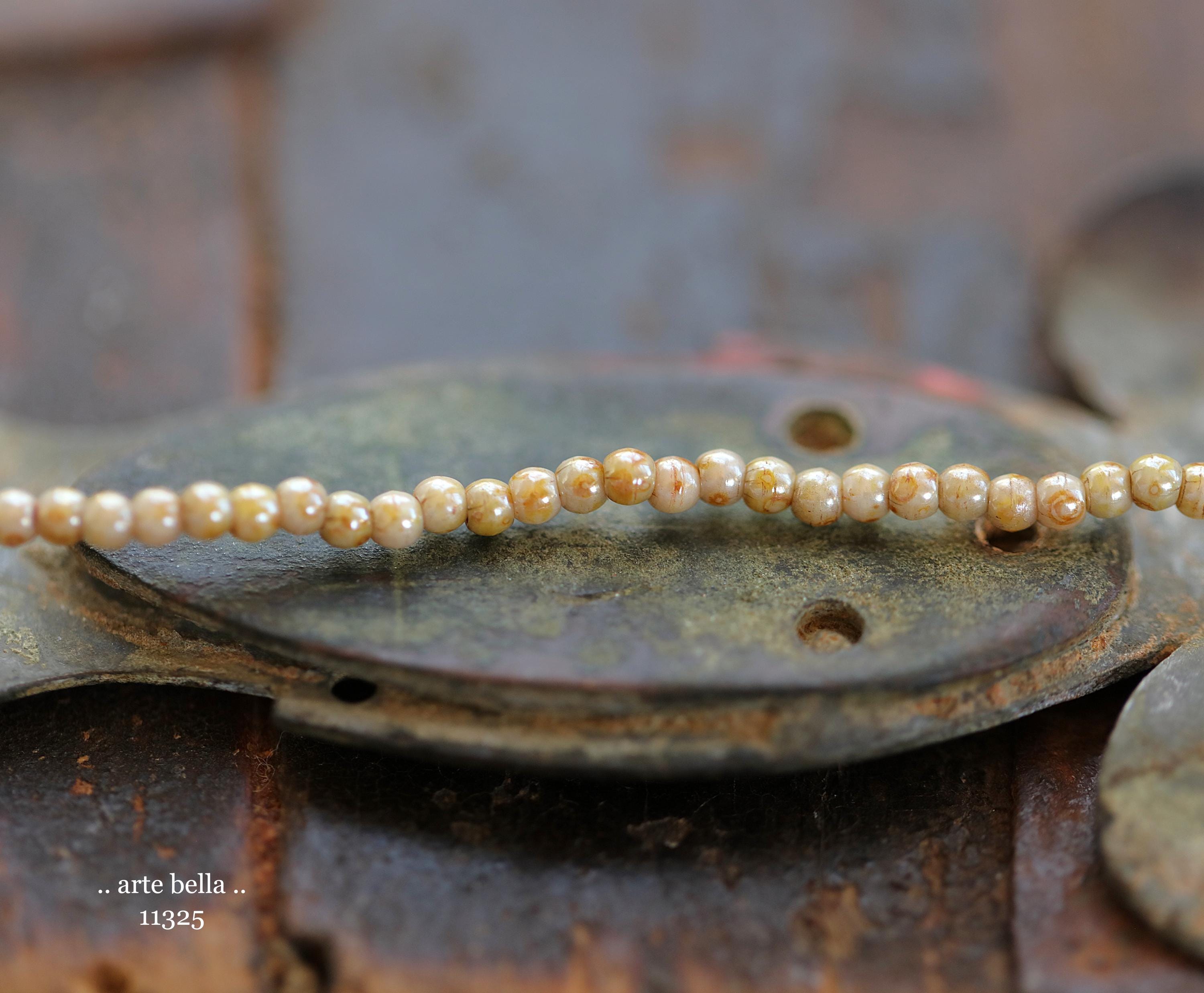 New .. PEARL LUSTER BITS .. 100 Tiny Premium Luster Picasso Czech Glass Round Druk Beads 2mm (11325-st) .. jewelry supplies