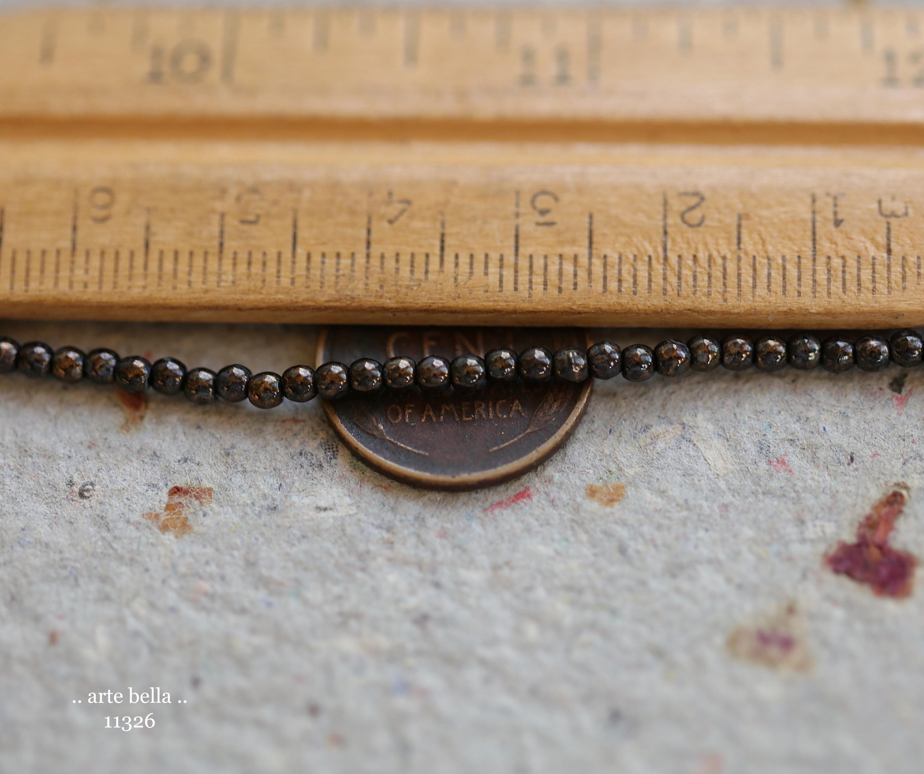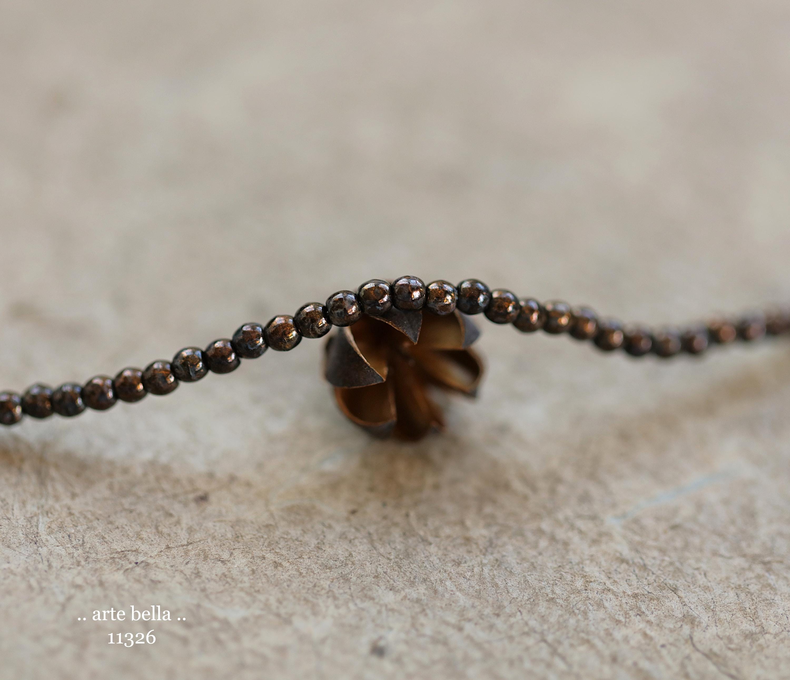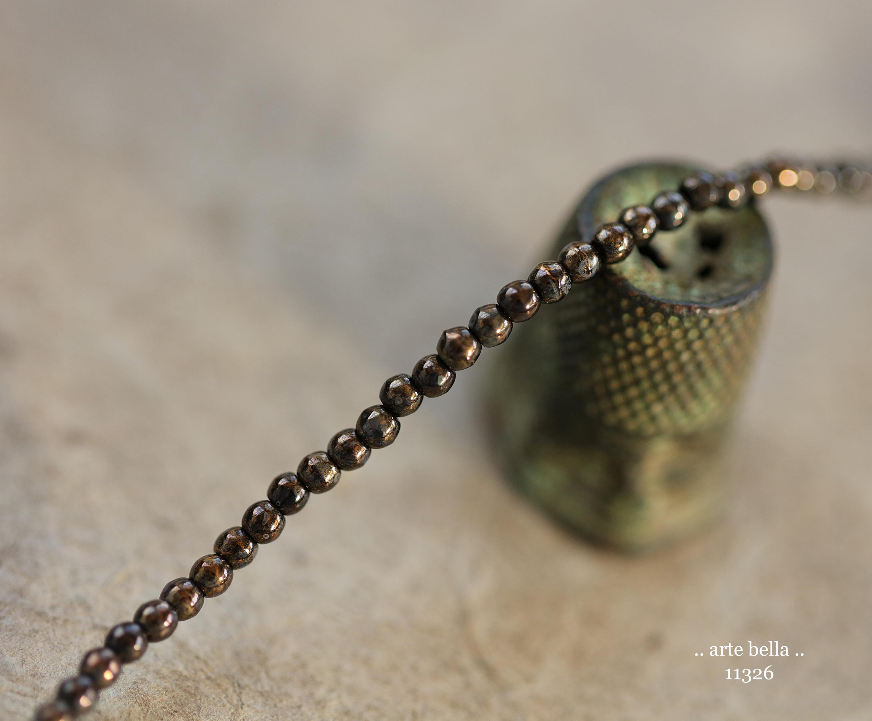 New .. BRONZED BLACK BITS .. 100 Tiny Premium Bronze Picasso Czech Glass Round Druk Beads 2mm (11326-st) .. jewelry supplies