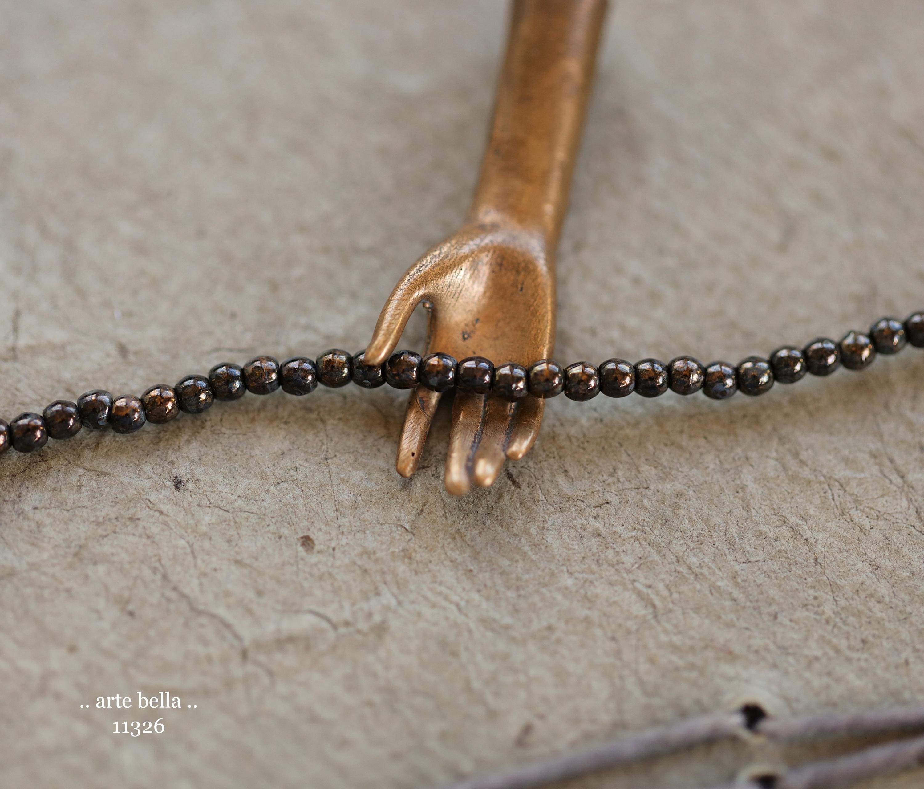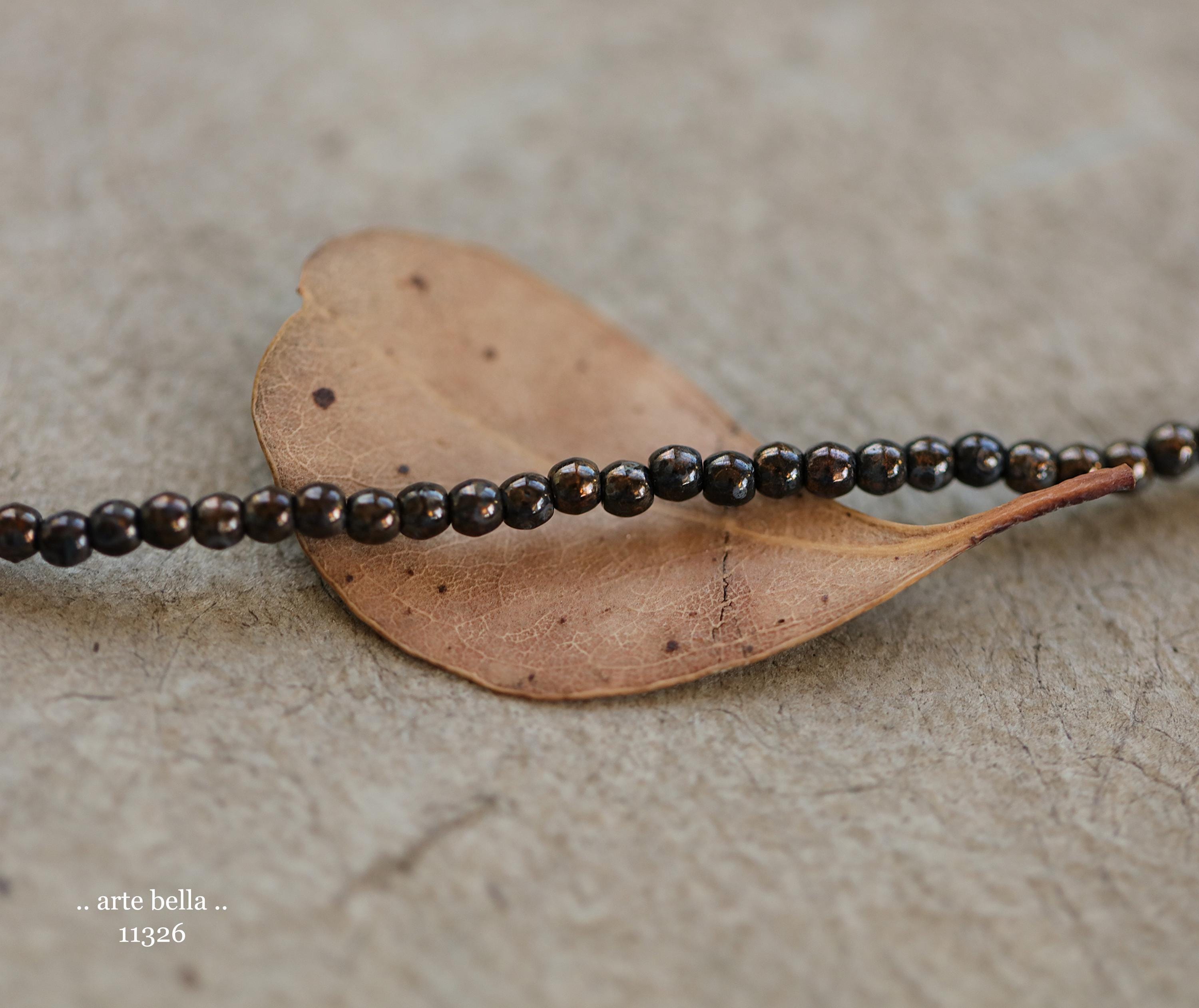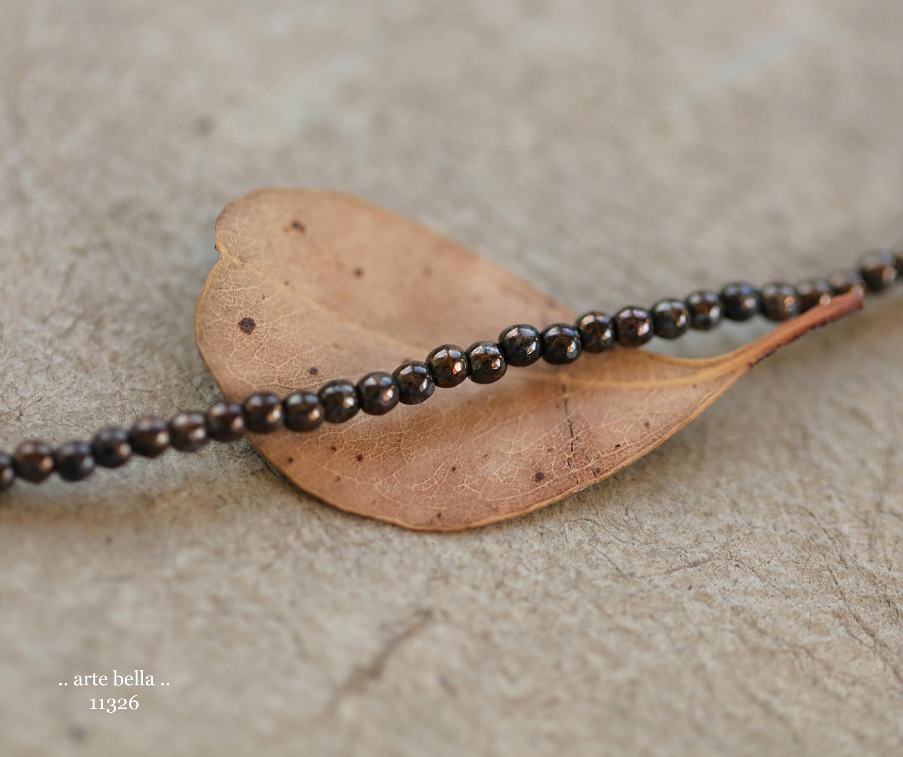 New .. BRONZED BLACK BITS .. 100 Tiny Premium Bronze Picasso Czech Glass Round Druk Beads 2mm (11326-st) .. jewelry supplies