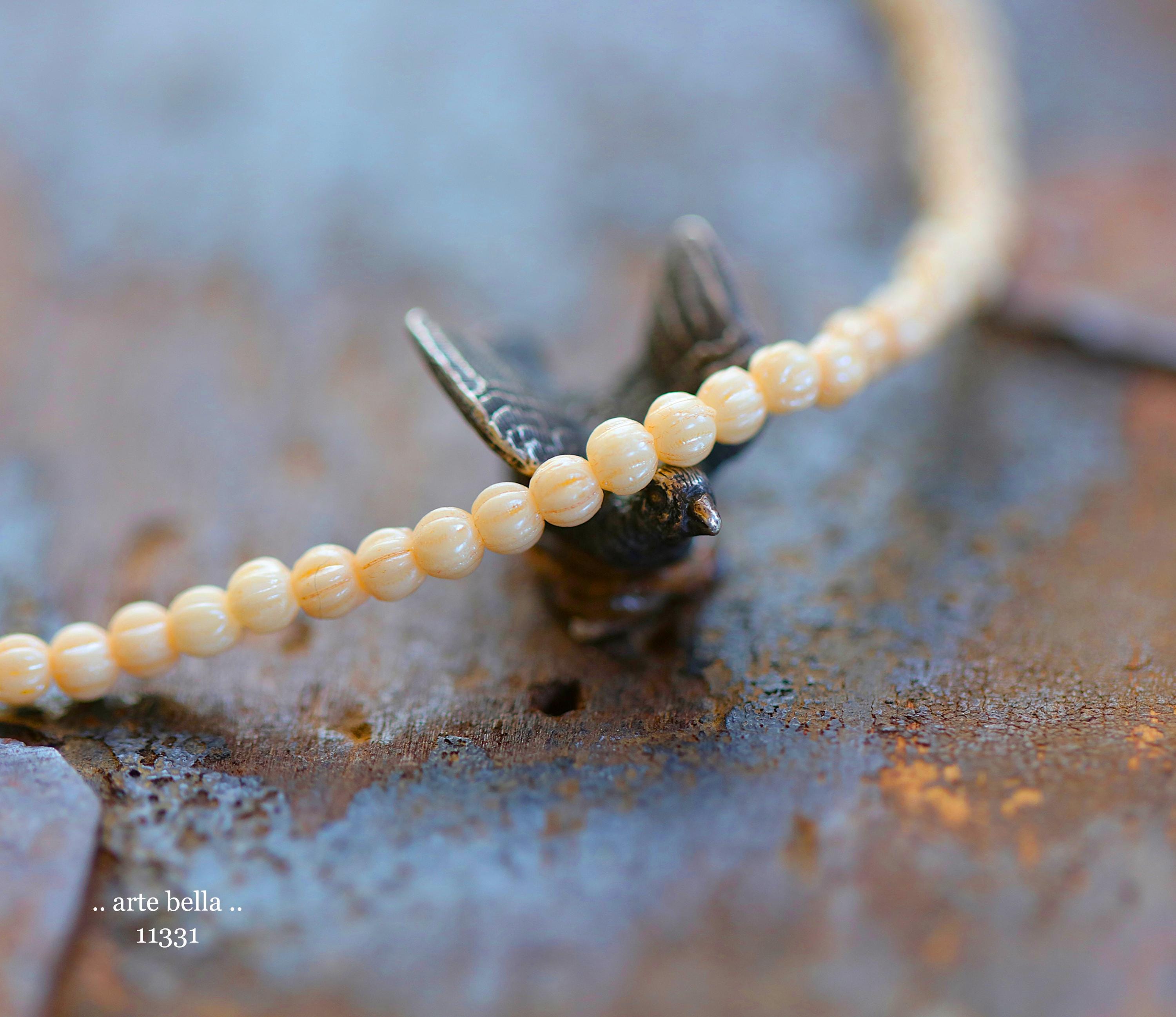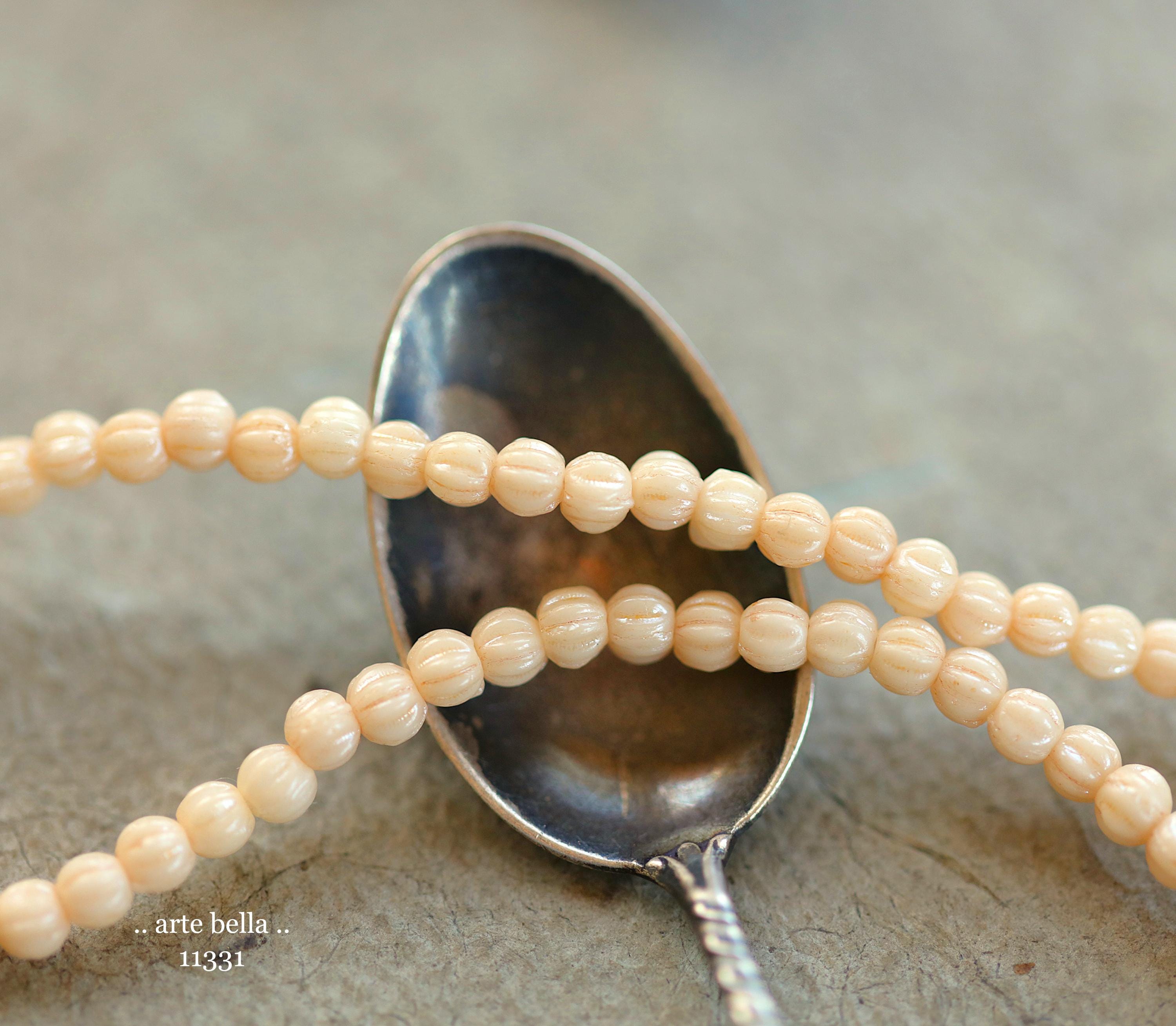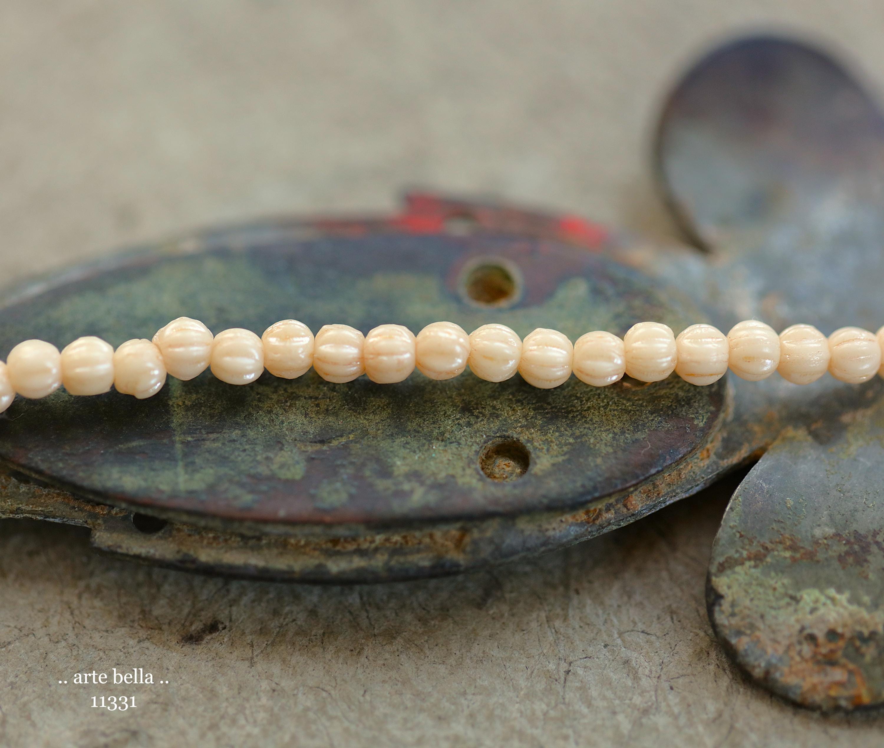 New .. CREAM LUSTER MINI Melons .. 100 Premium Metallic Luster Czech Glass Mini Melon Beads 3mm (11331-st) .. jewelry supplies