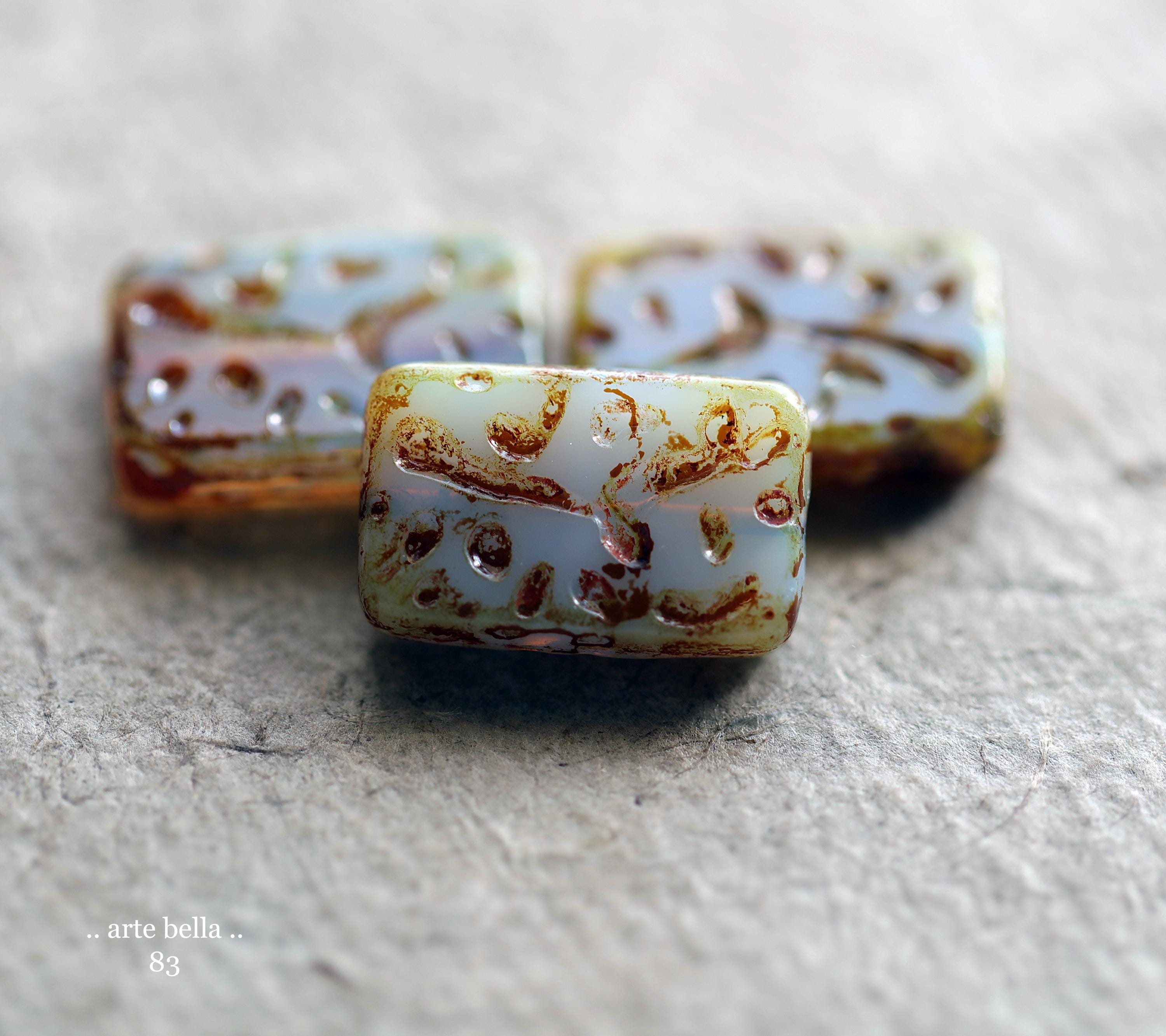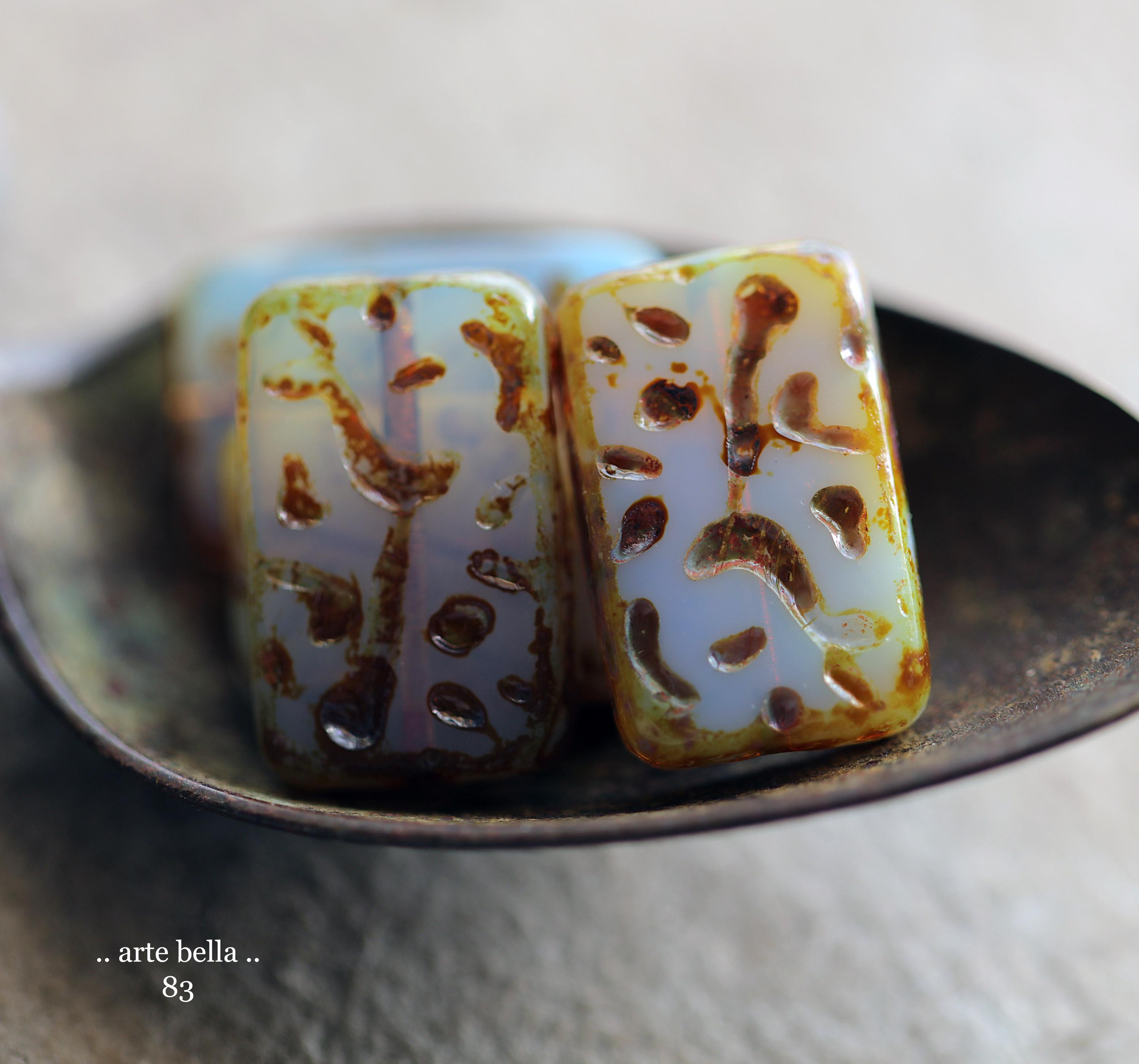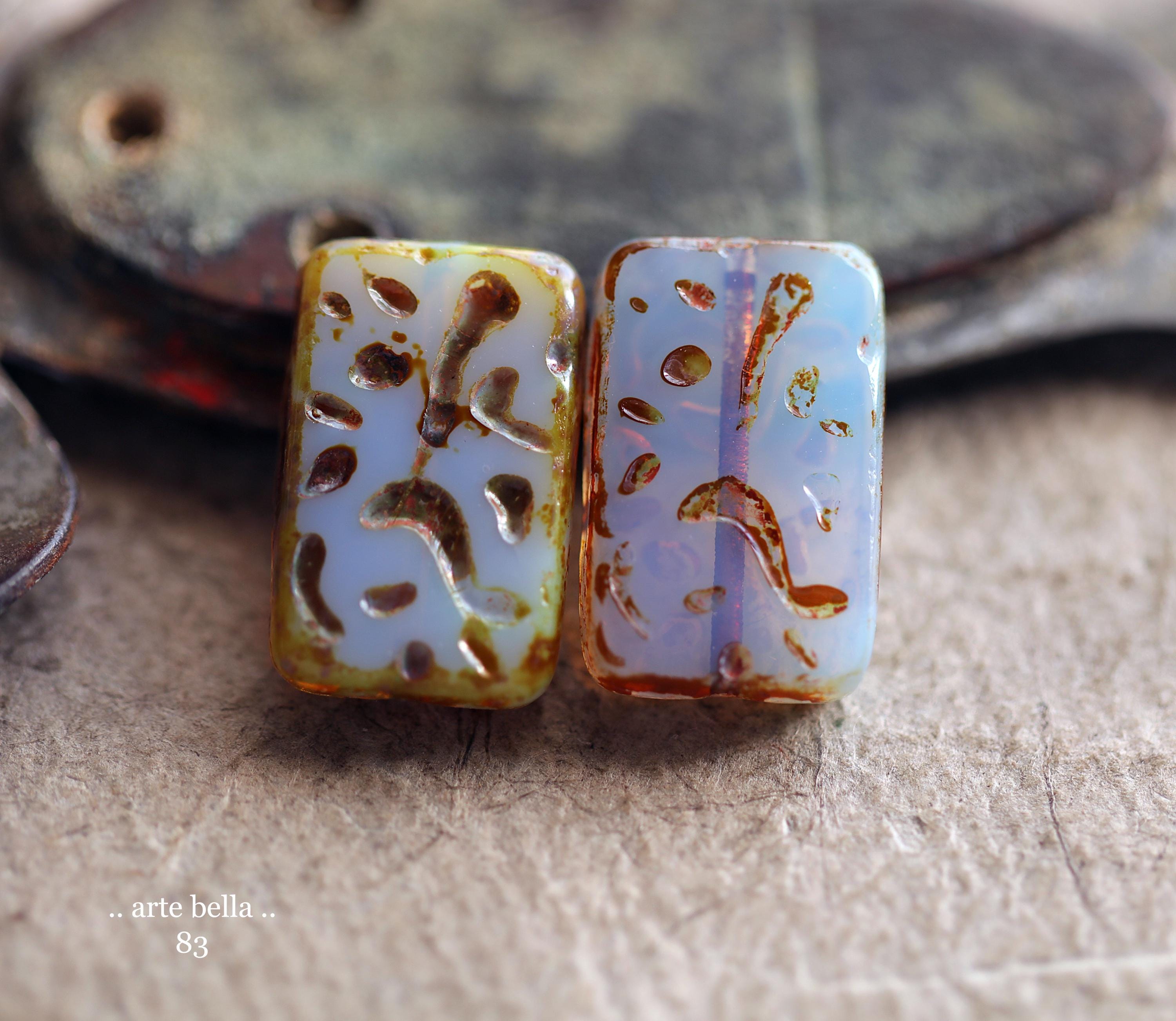 back in stock .. HYDRANGEA MIST .. 4 Premium Picasso Czech Glass Rectangle Beads 18x12mm (83-4) .. jewelry supplies