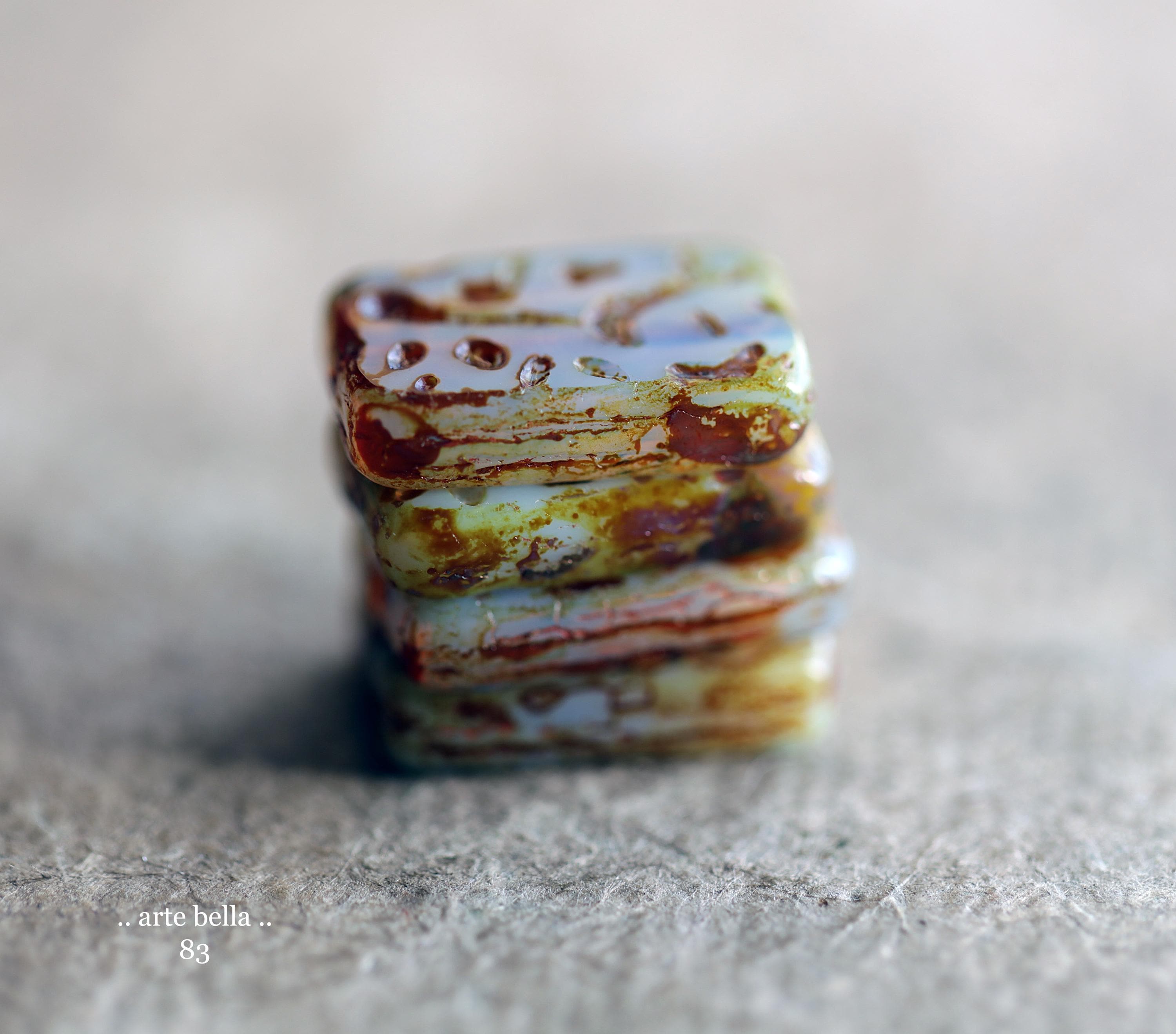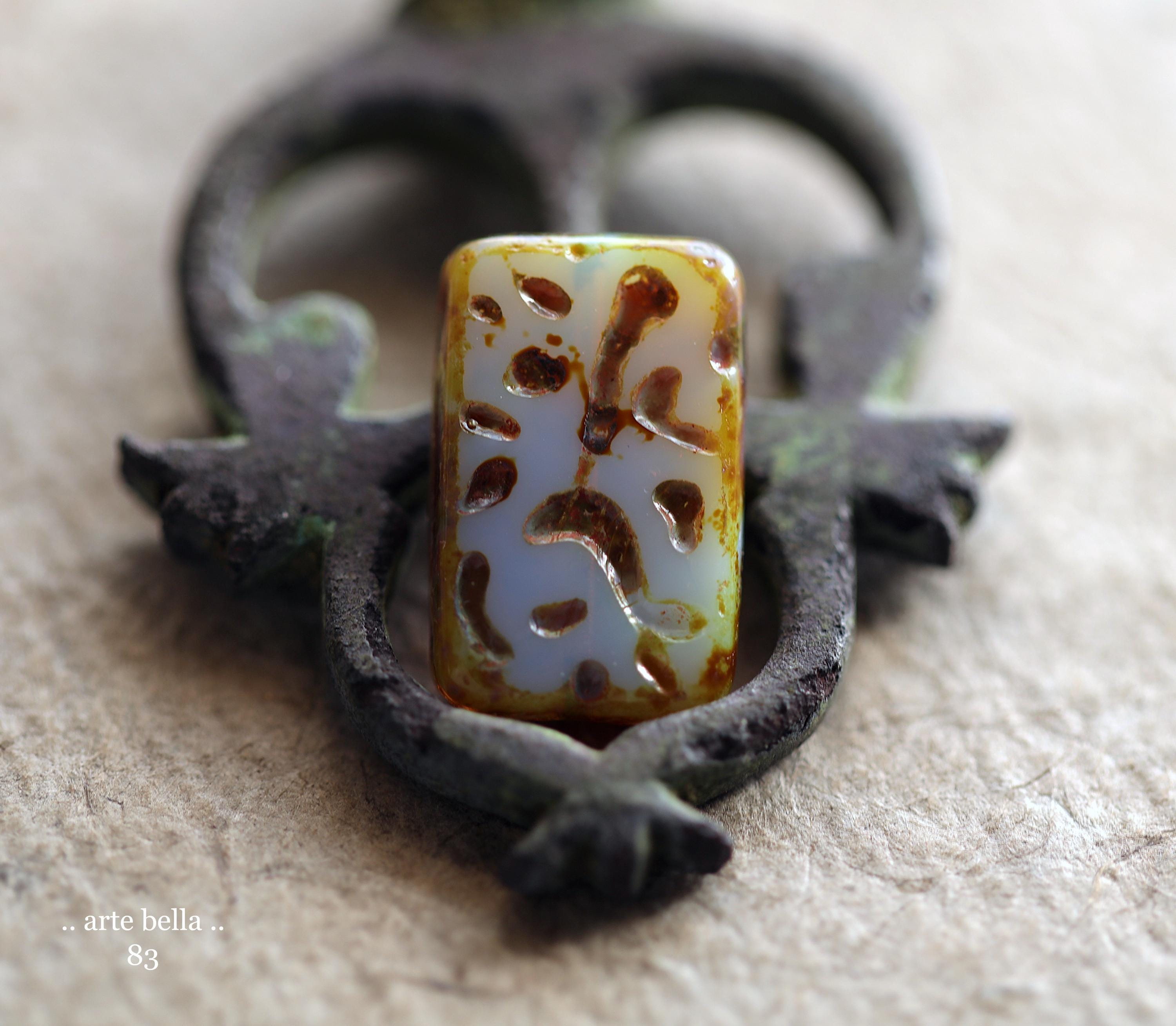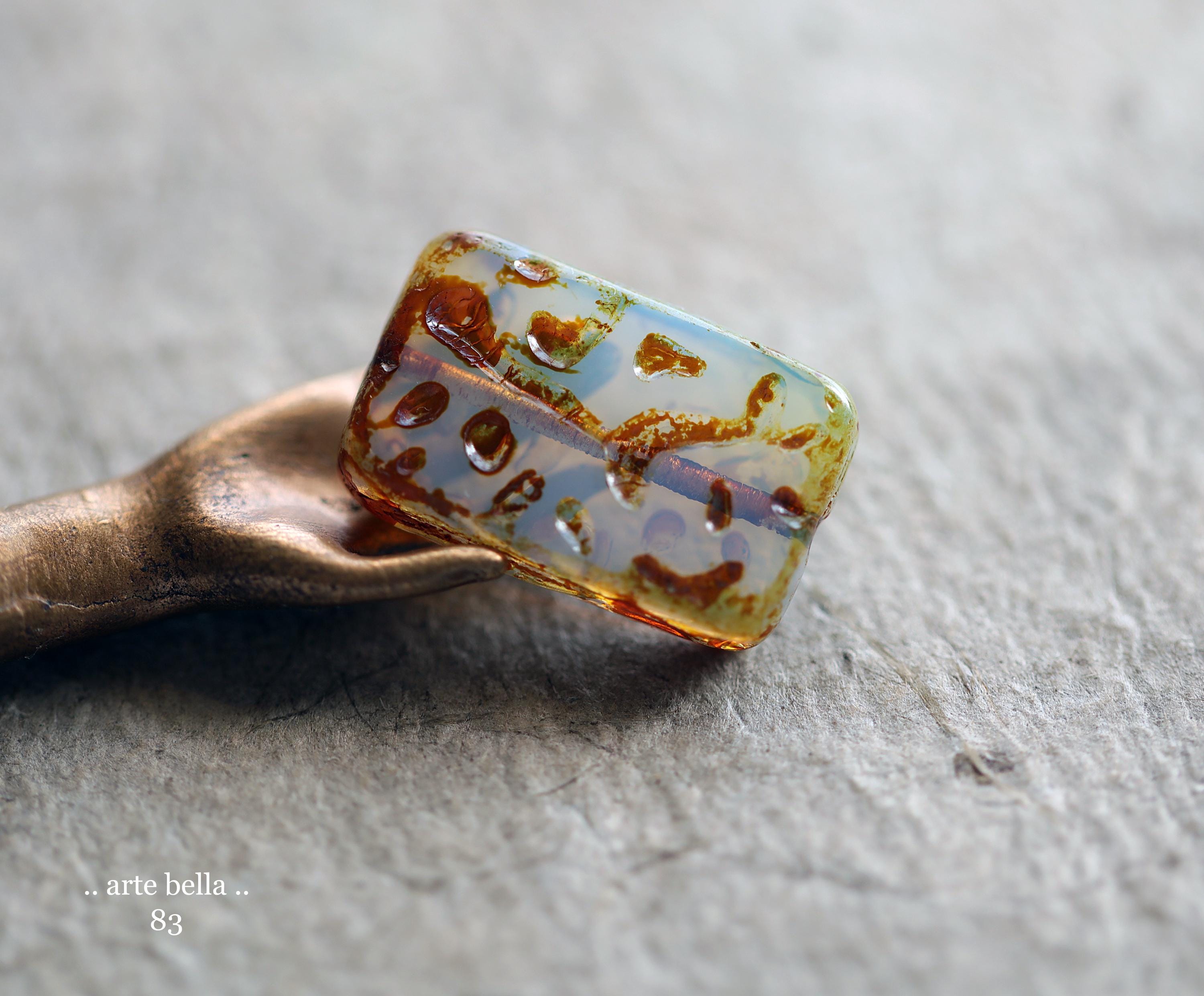 back in stock .. HYDRANGEA MIST .. 4 Premium Picasso Czech Glass Rectangle Beads 18x12mm (83-4) .. jewelry supplies