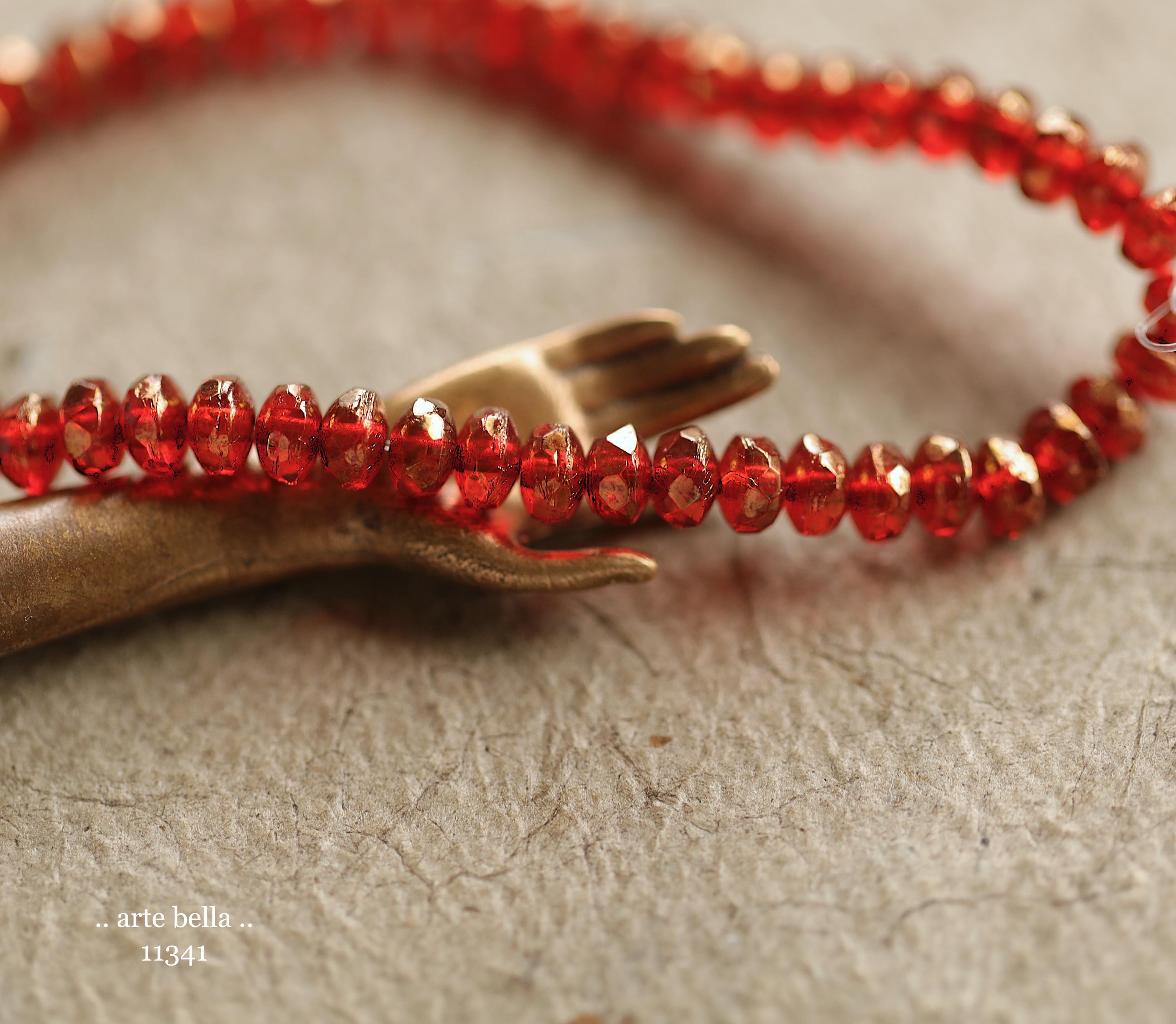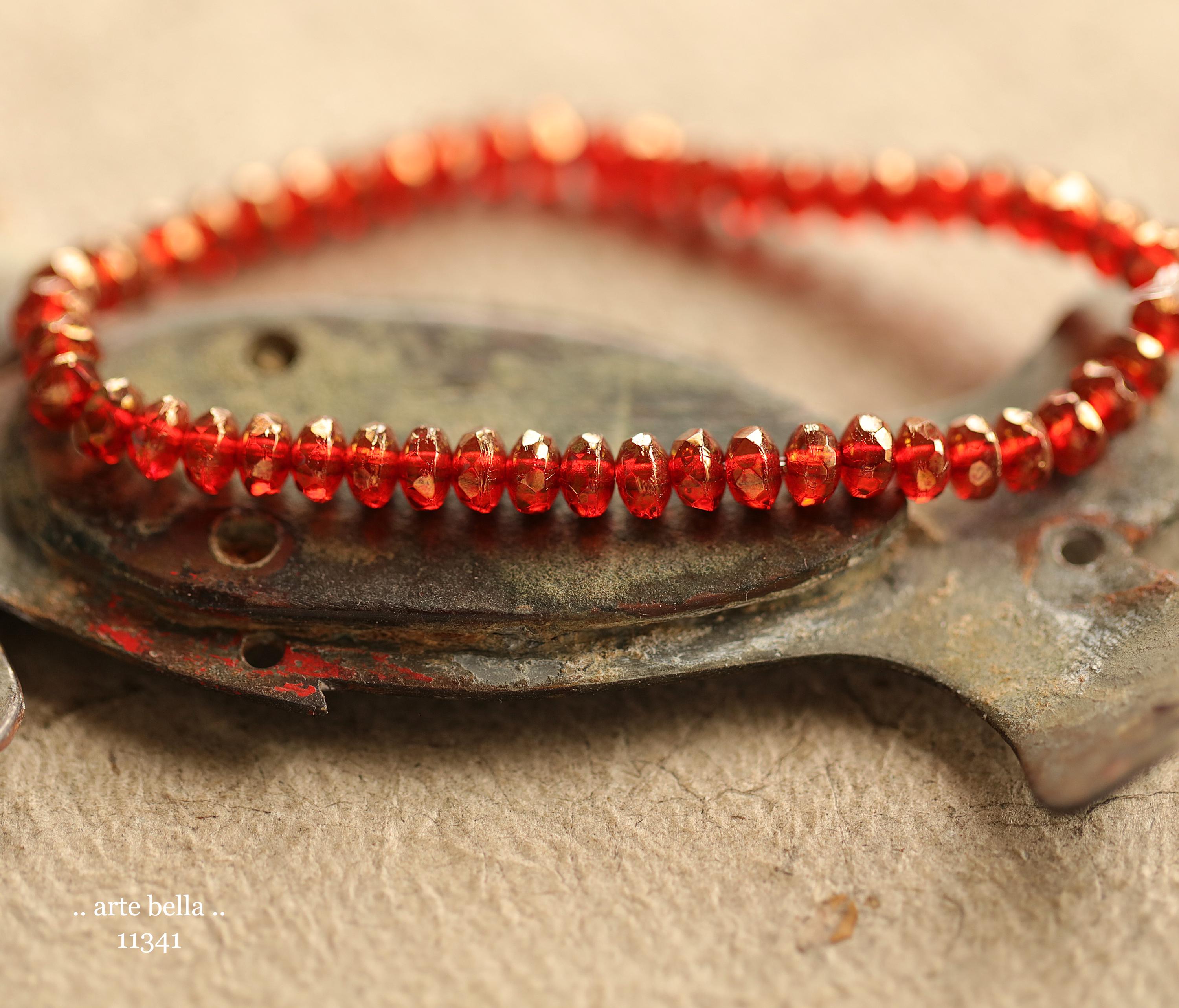 New .. GOLDEN POMEGRANATE BITS .. 50 Czech Glass Faceted Rondelle Beads 2.5x4mm (11341-st) .. jewelry making supplies