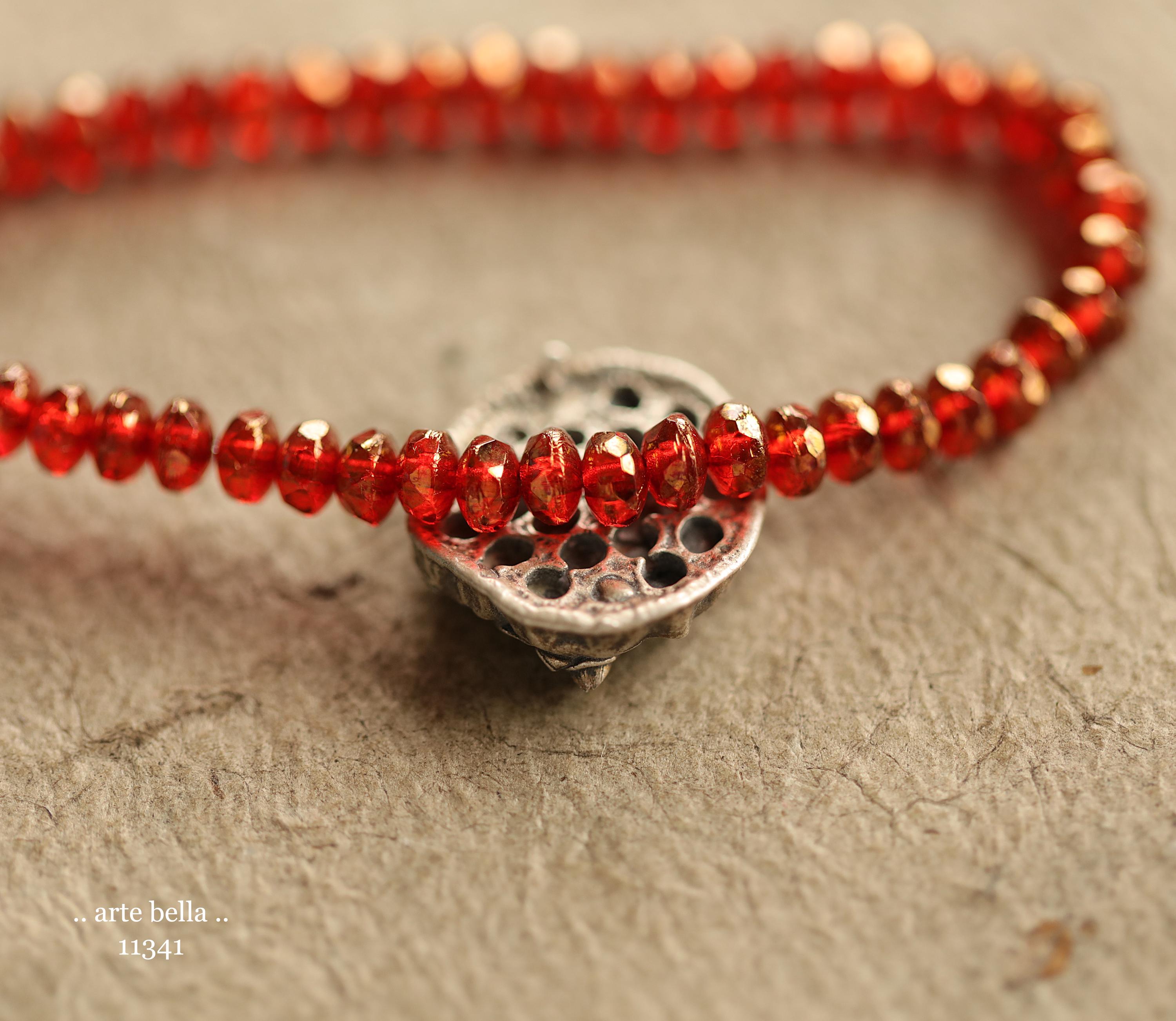 Translucent ruby red glass fully coated in a golden metallic luster finish .. great little spacer accent beads.