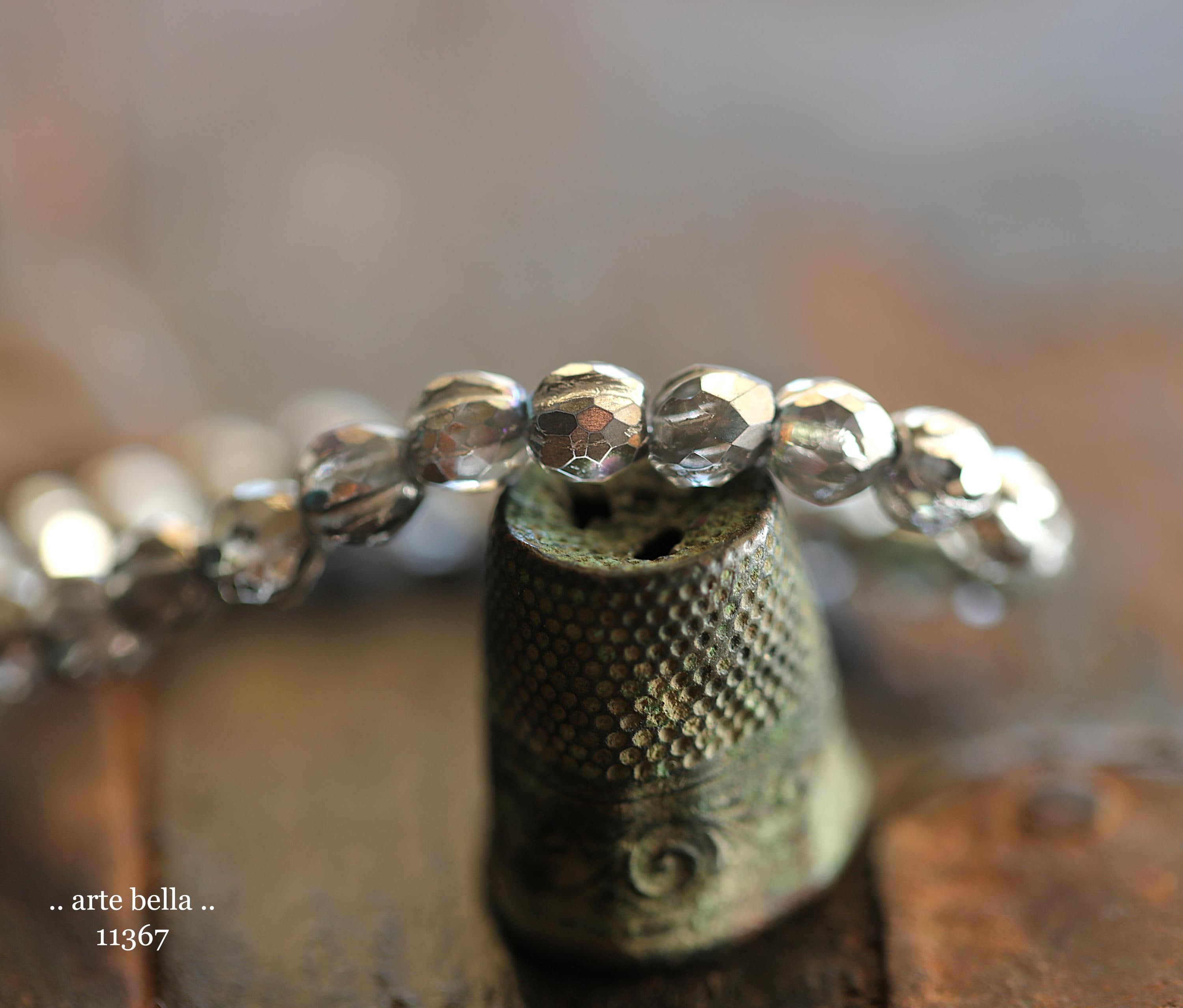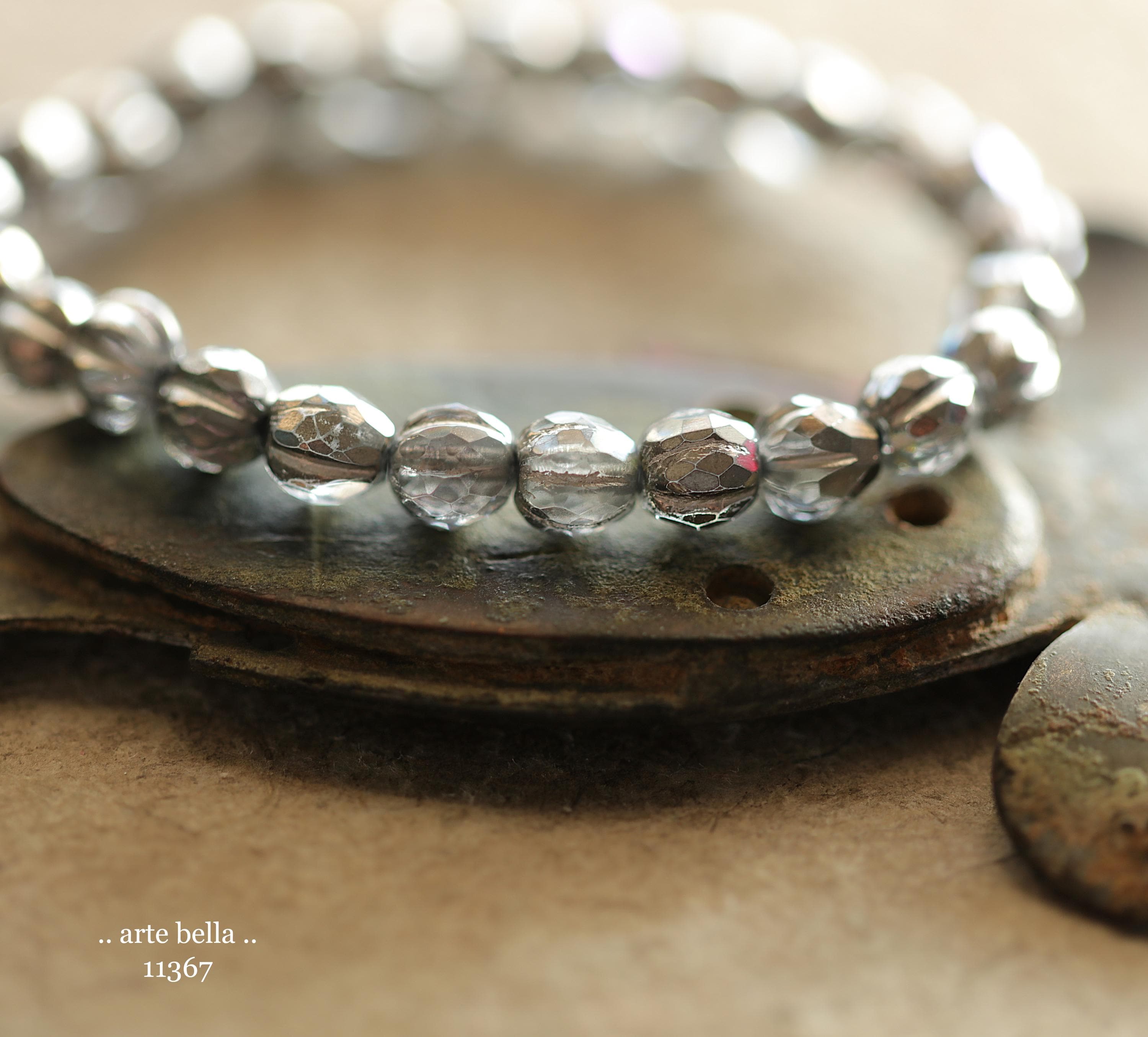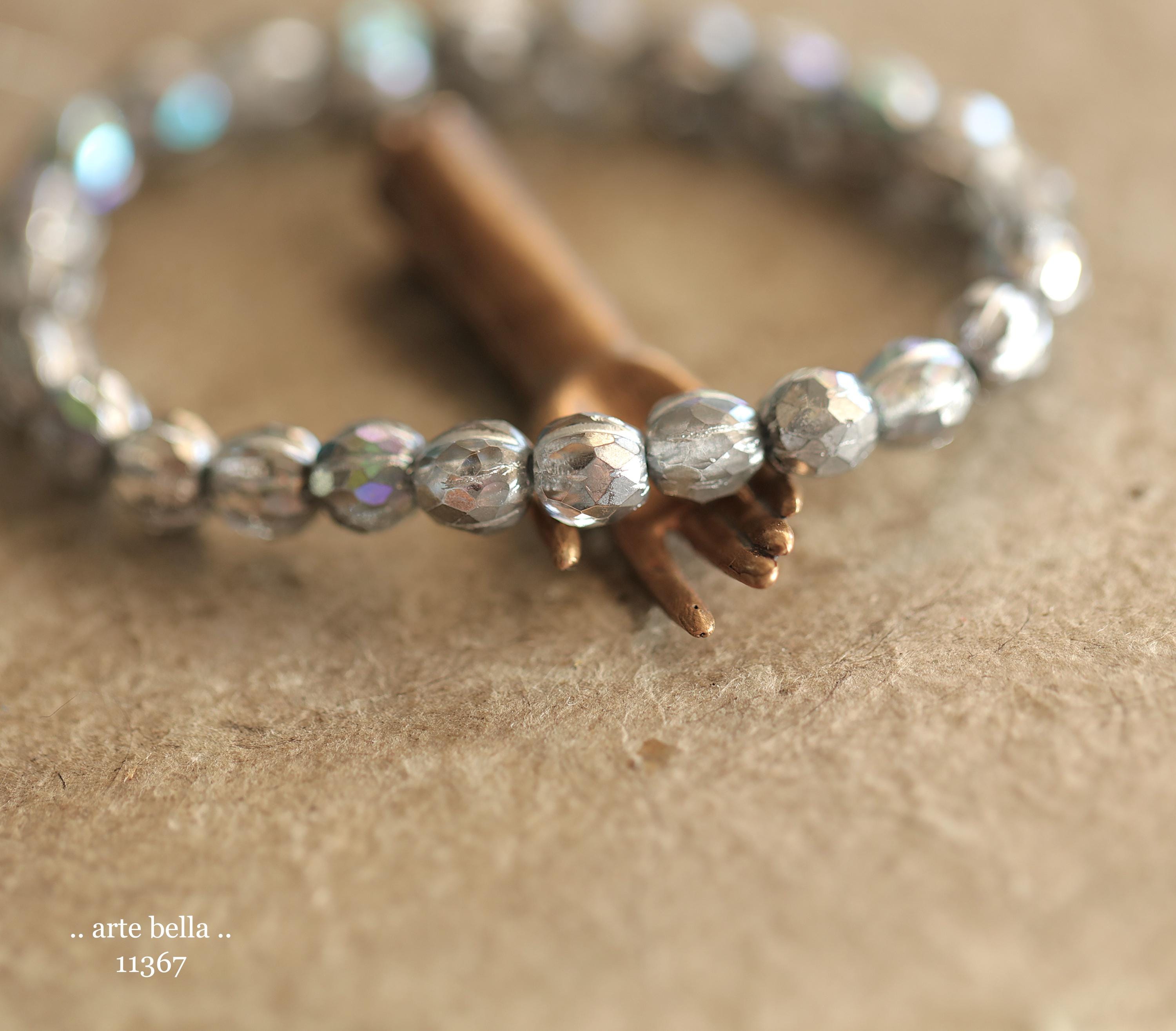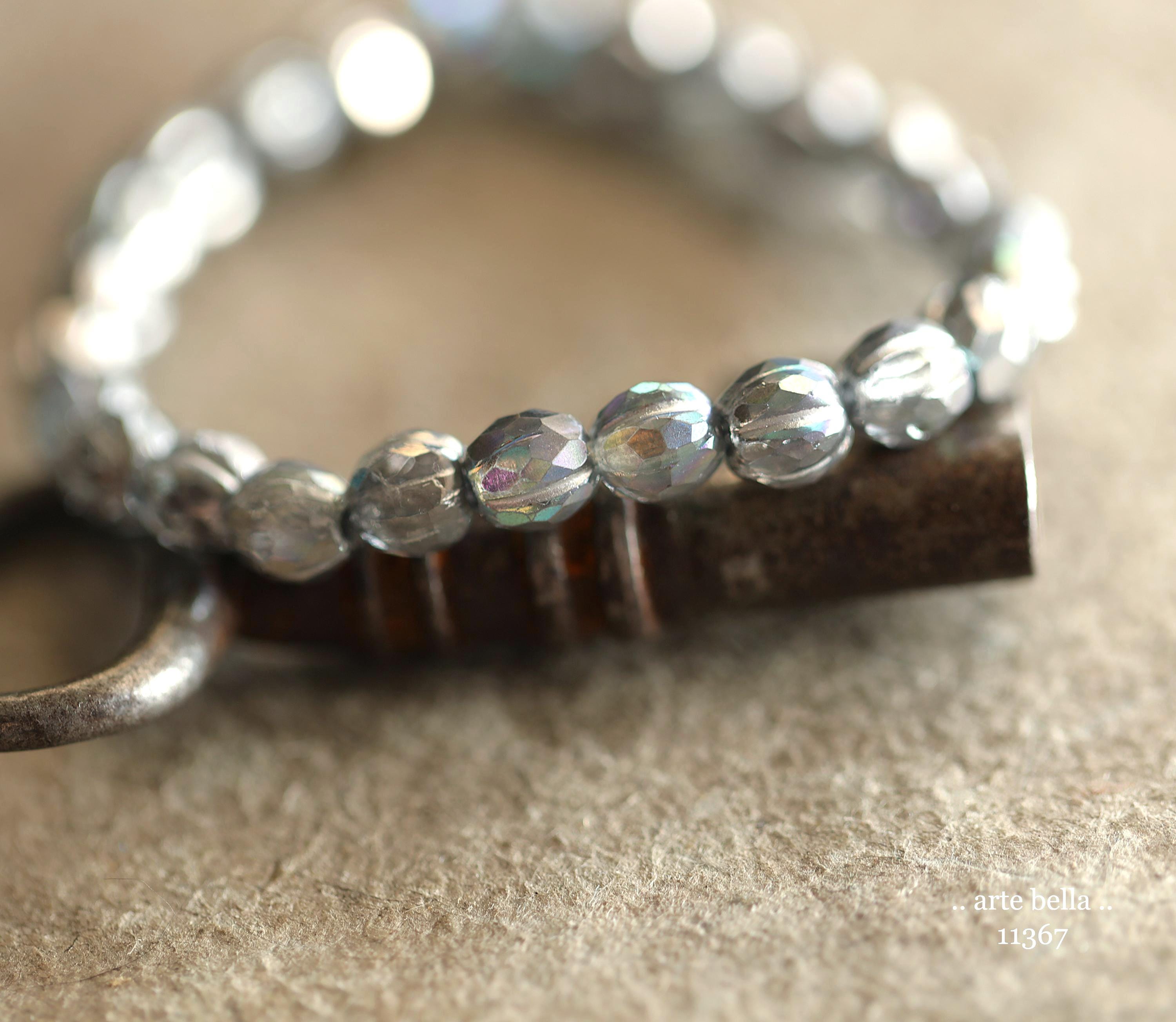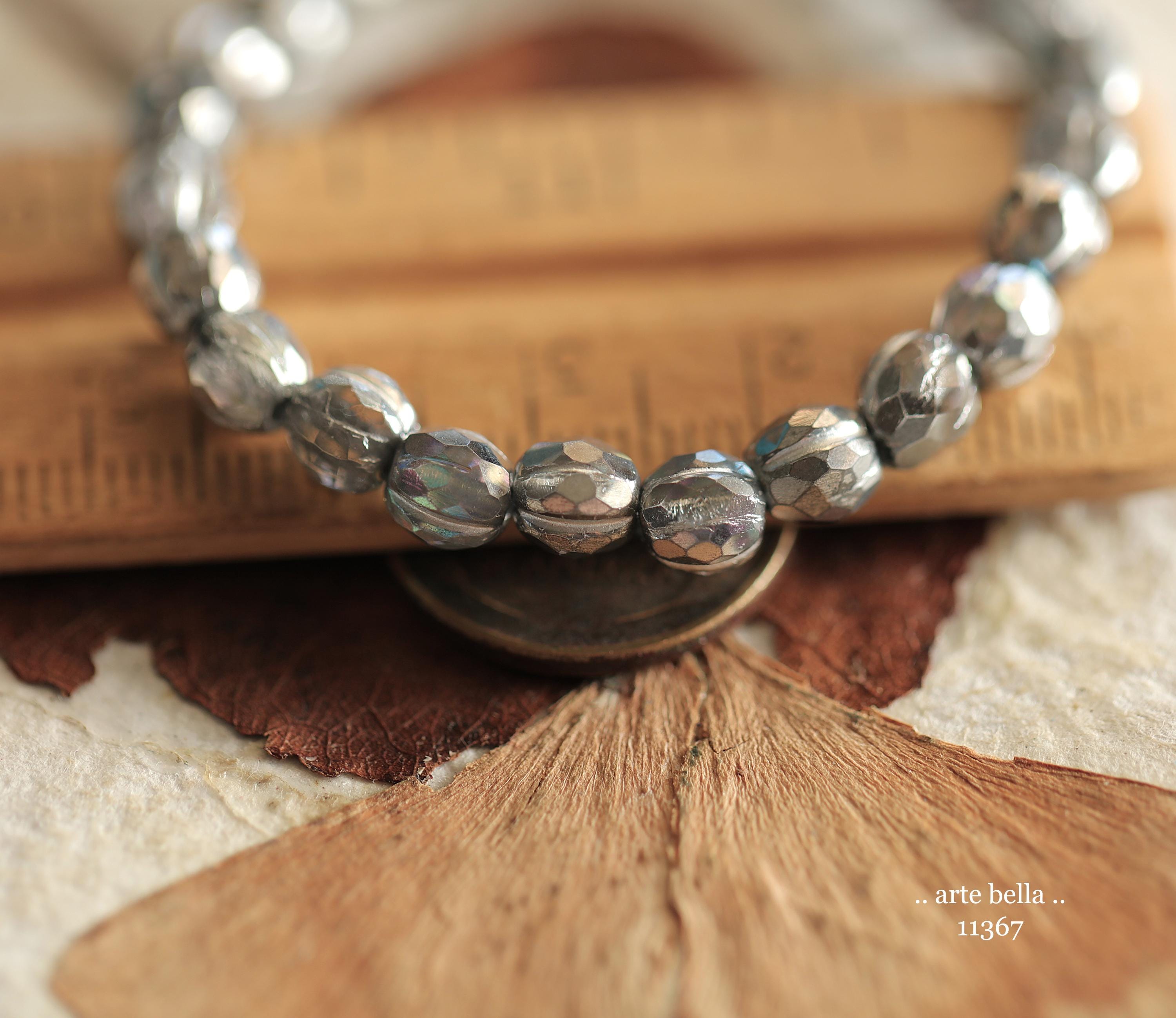 Gorgeous faceted melon beads in clear glass with a antique silver metallic, Aurora Borealis and silver metallic wash. PLEASE NOTE: These are not perfectly manufactured beads .. they are hand faceted and are not perfectly round as seen in my pictures. These have a vintage vibe going on.