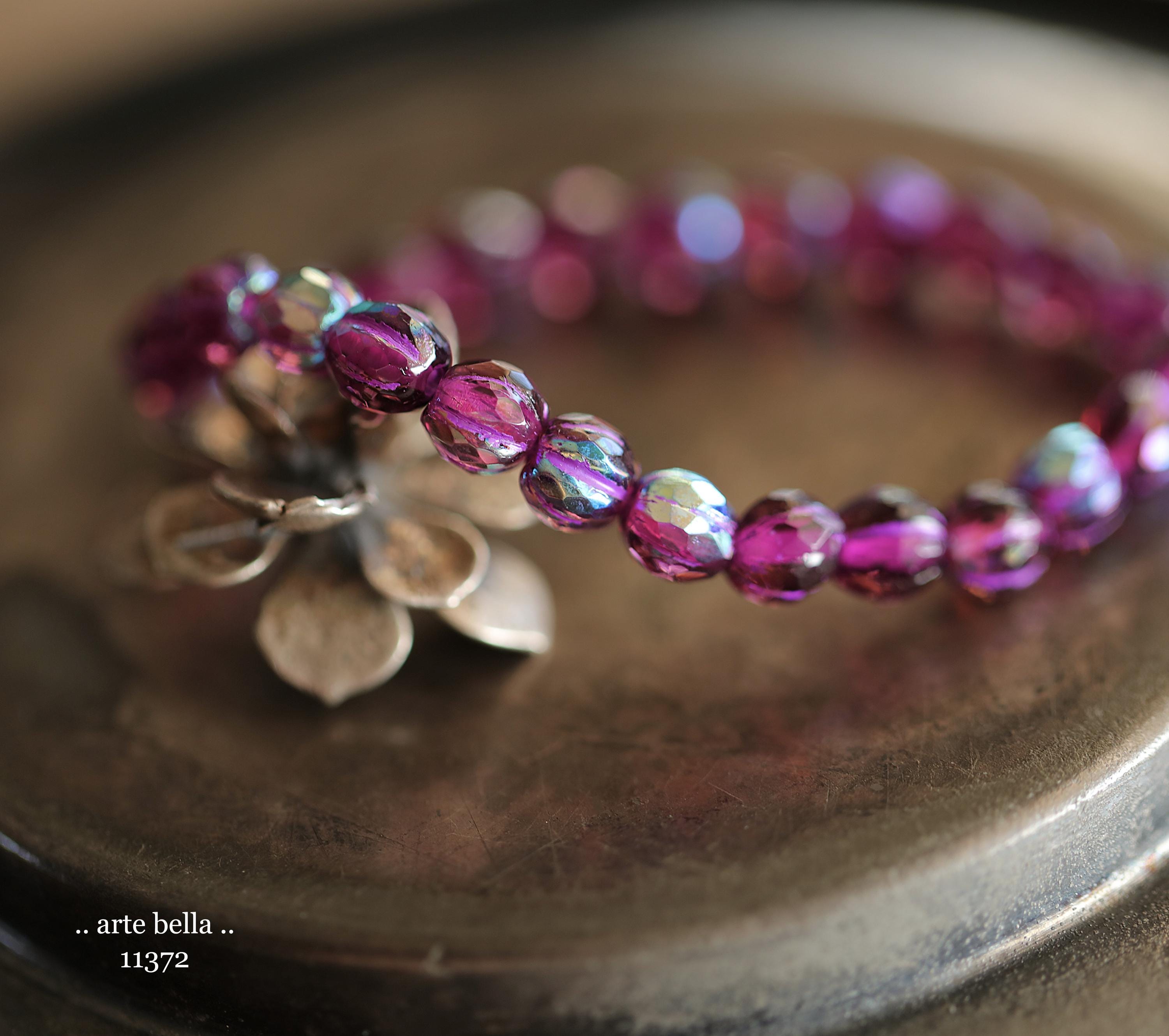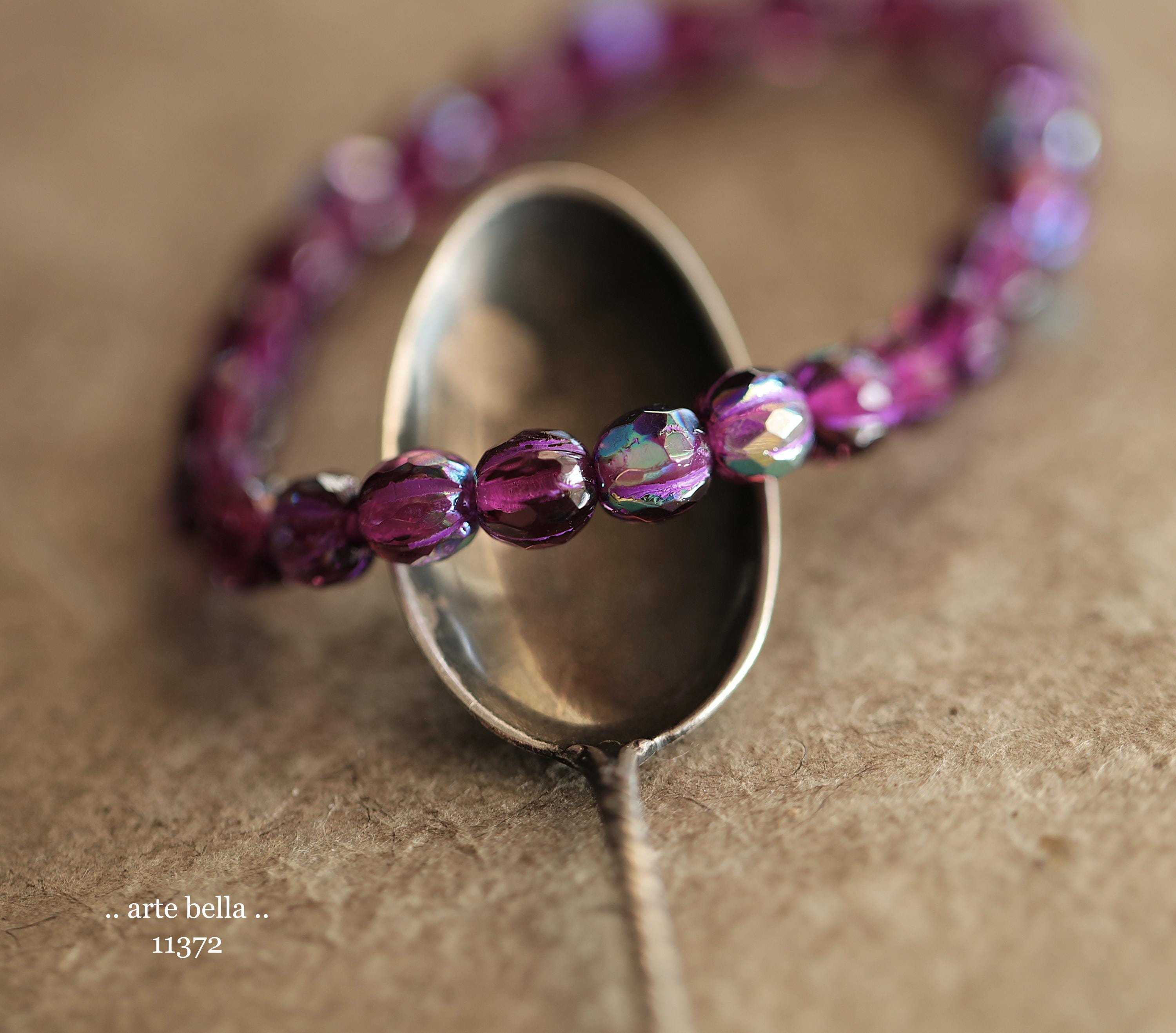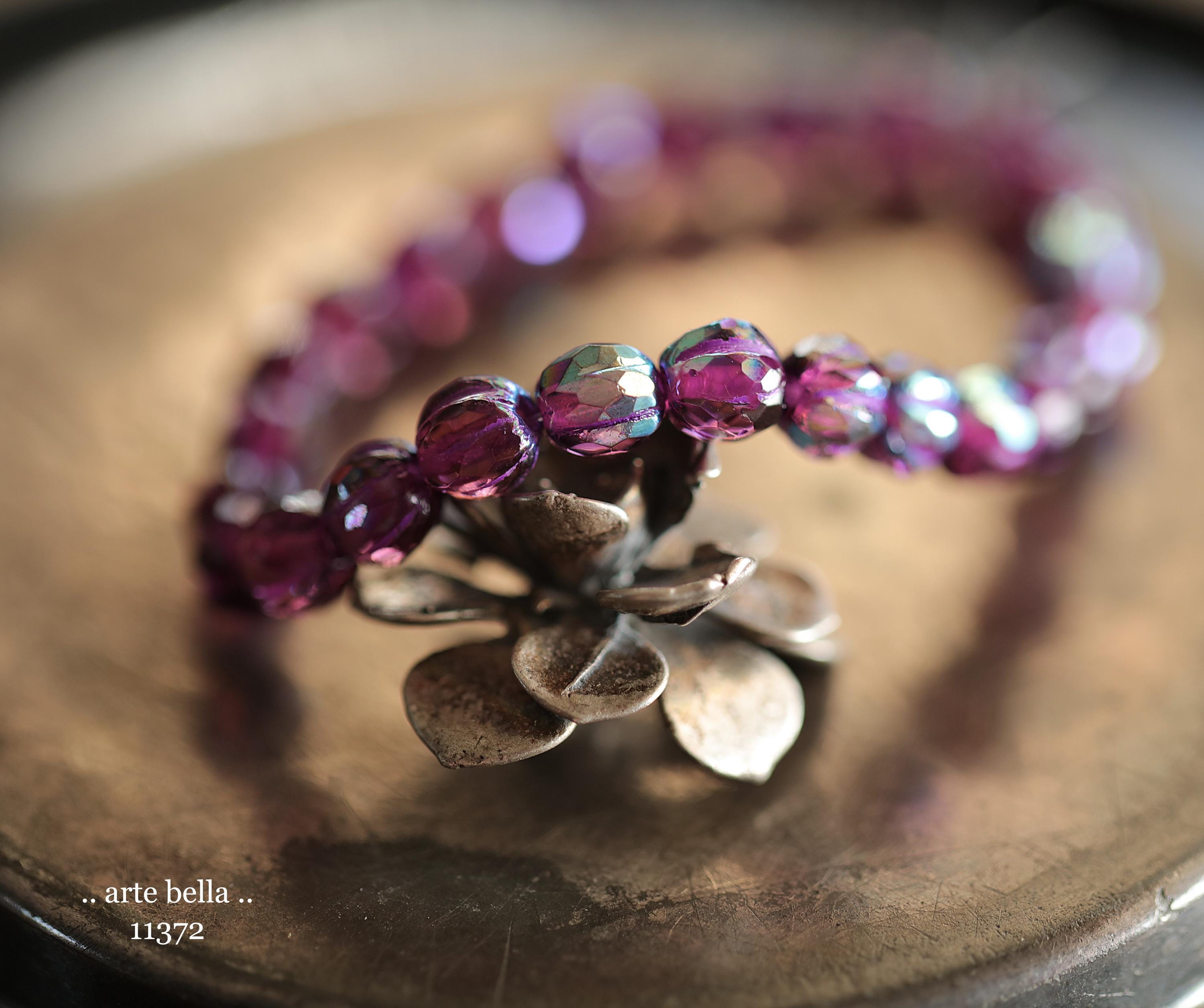 Gorgeous faceted melon beads in translucent pansy purple glass with a rainbow Aurora Borealis finish, purple wash and crisp fire polished facets. PLEASE NOTE: These are not perfectly manufactured beads .. they are hand faceted and are not perfectly round as seen in my pictures. These have a vintage vibe going on.