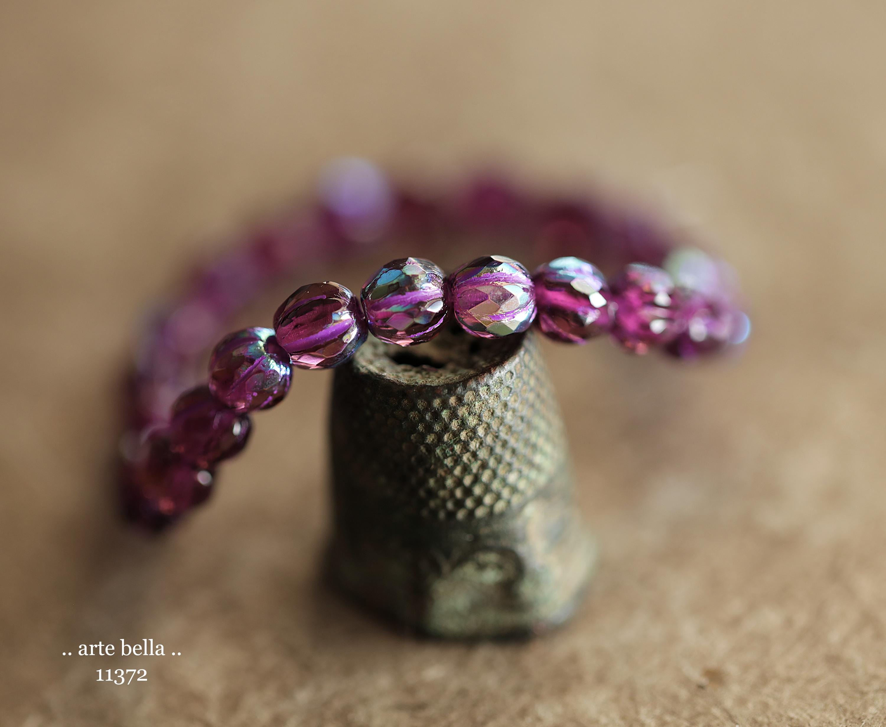 New .. MYSTIC PANSY GLITZ .. 25 Premium Czech Glass Faceted Melon Beads 6mm (11372-st) .. jewelry supplies