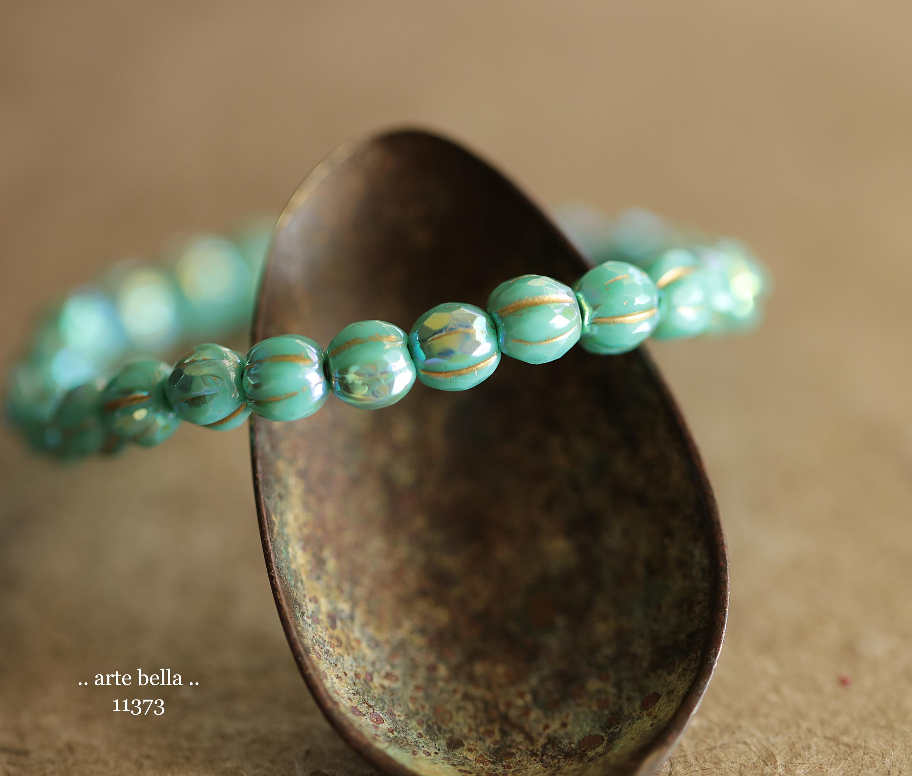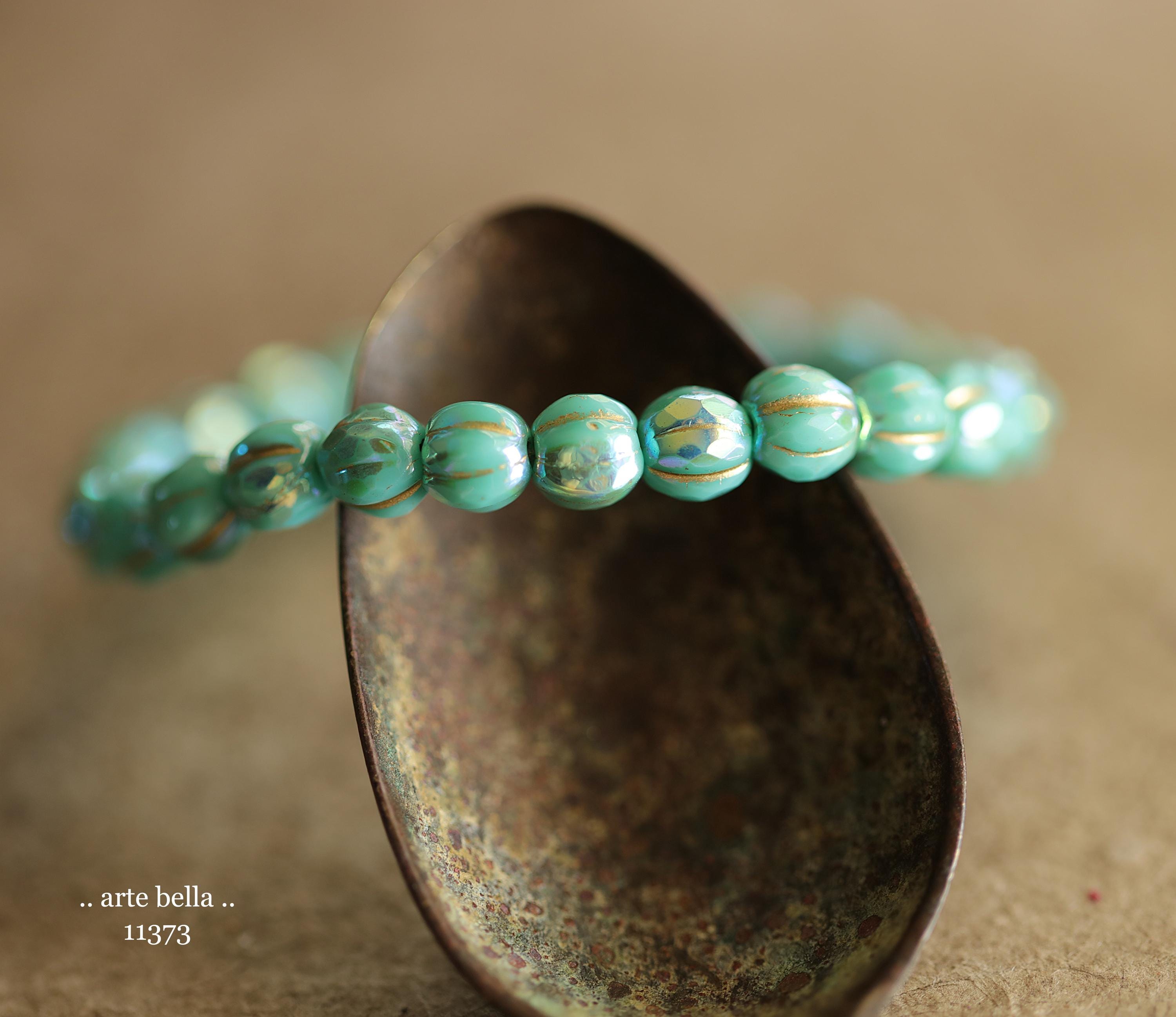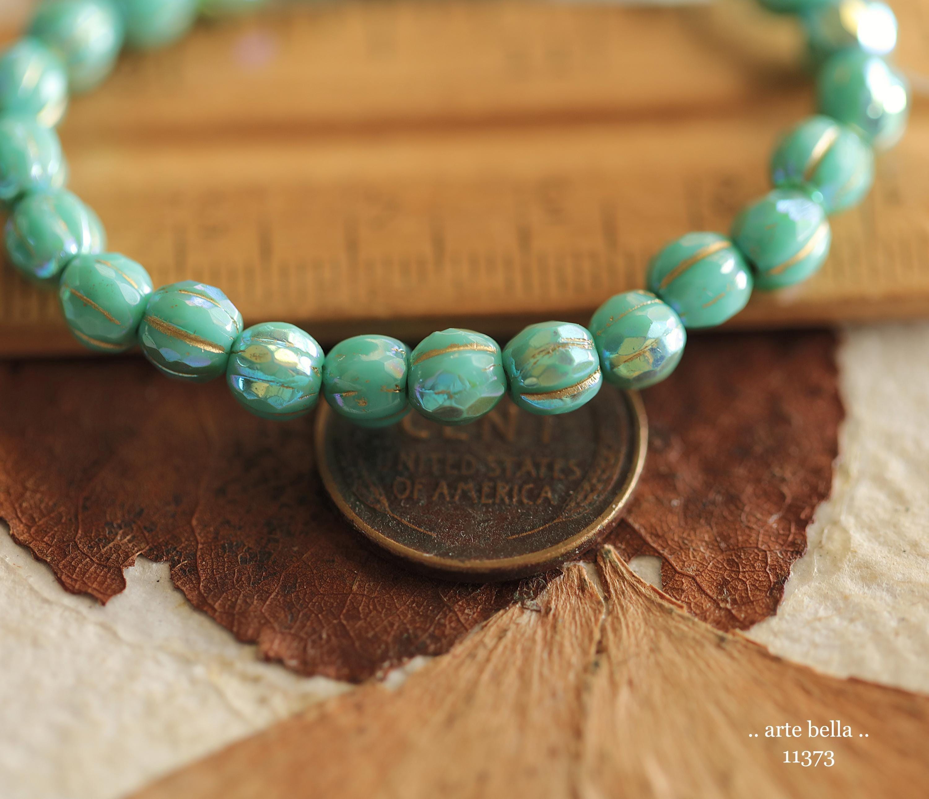 New .. MYSTIC TURQUOISE GLITZ 6mm .. 25 Premium Czech Glass Faceted Melon Beads (11373-st) .. jewelry supplies