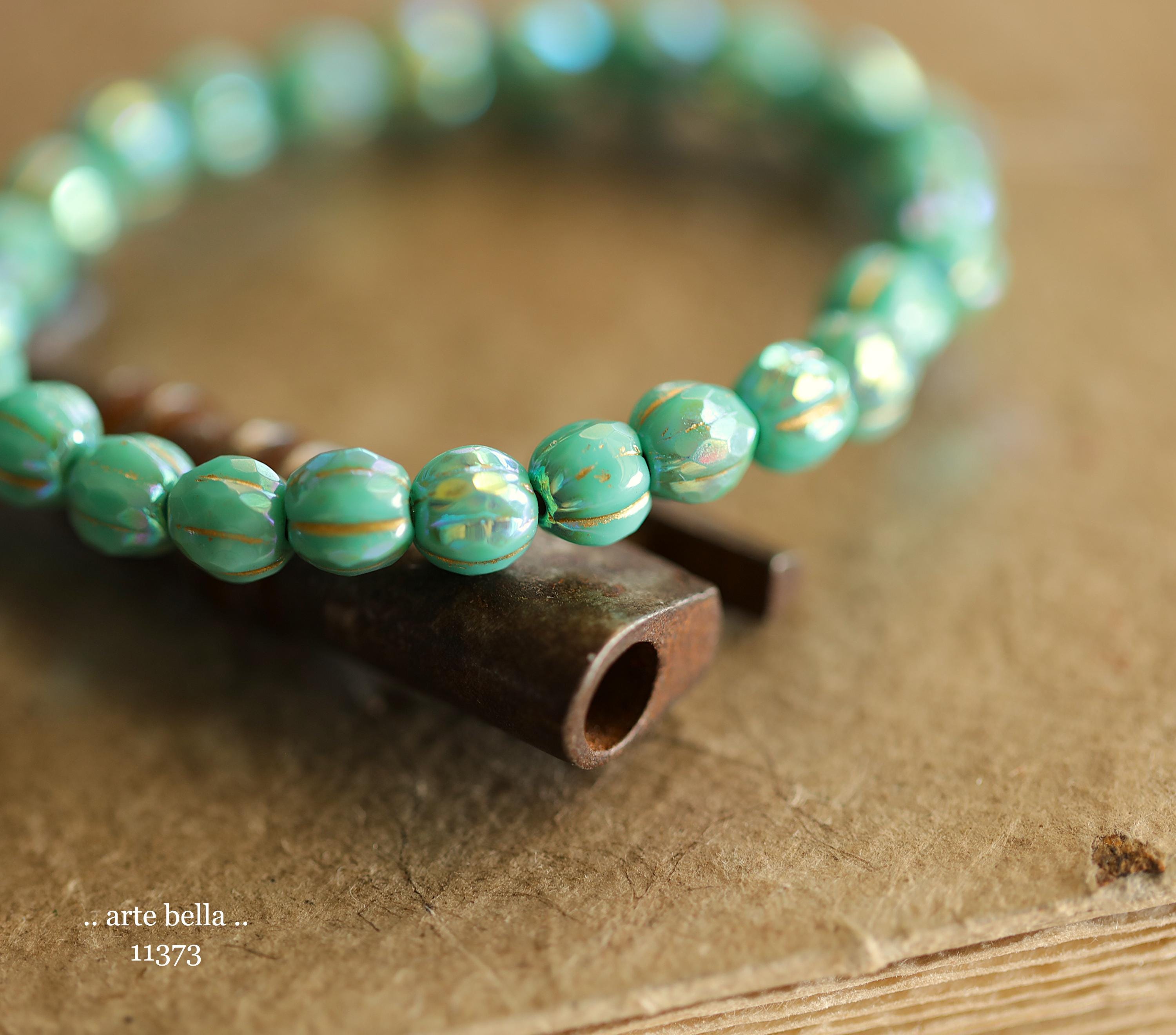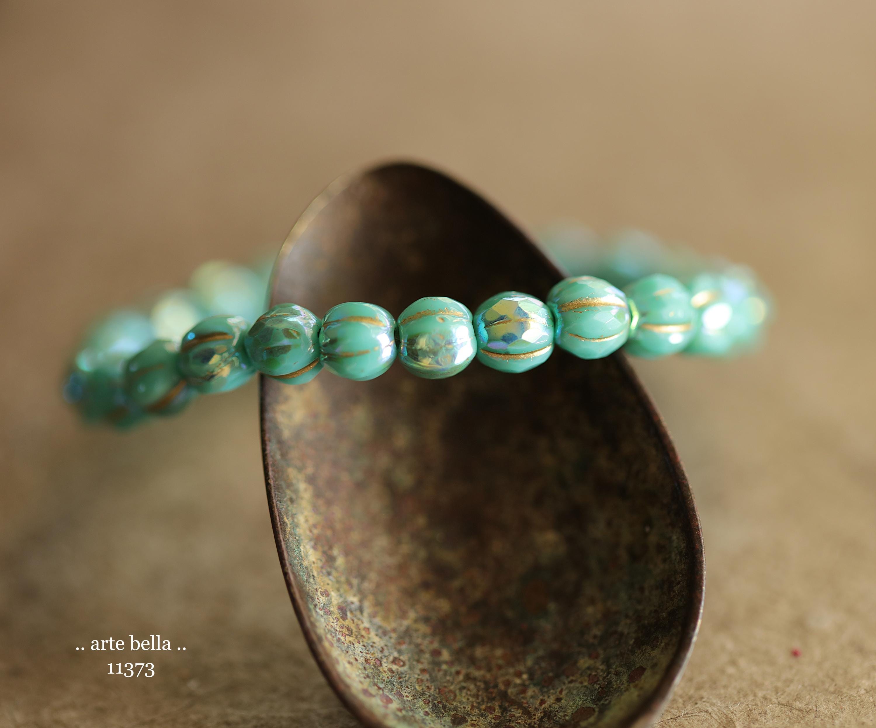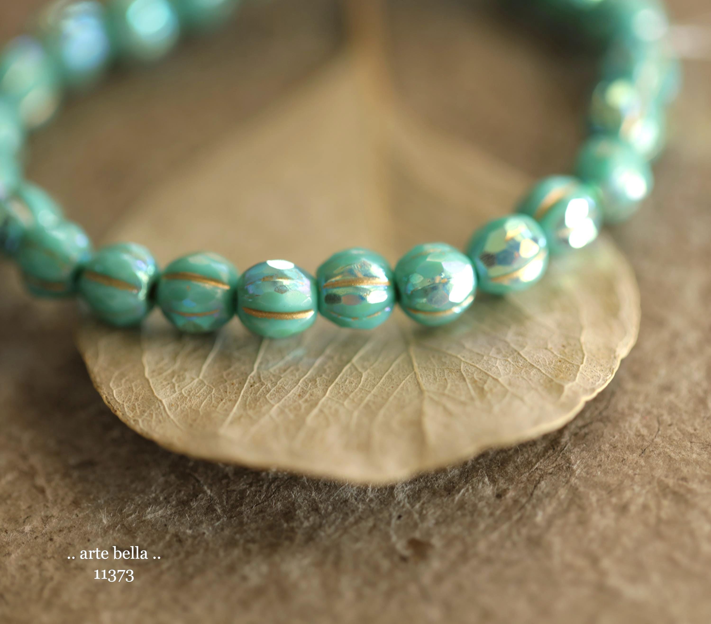 New .. MYSTIC TURQUOISE GLITZ 6mm .. 25 Premium Czech Glass Faceted Melon Beads (11373-st) .. jewelry supplies