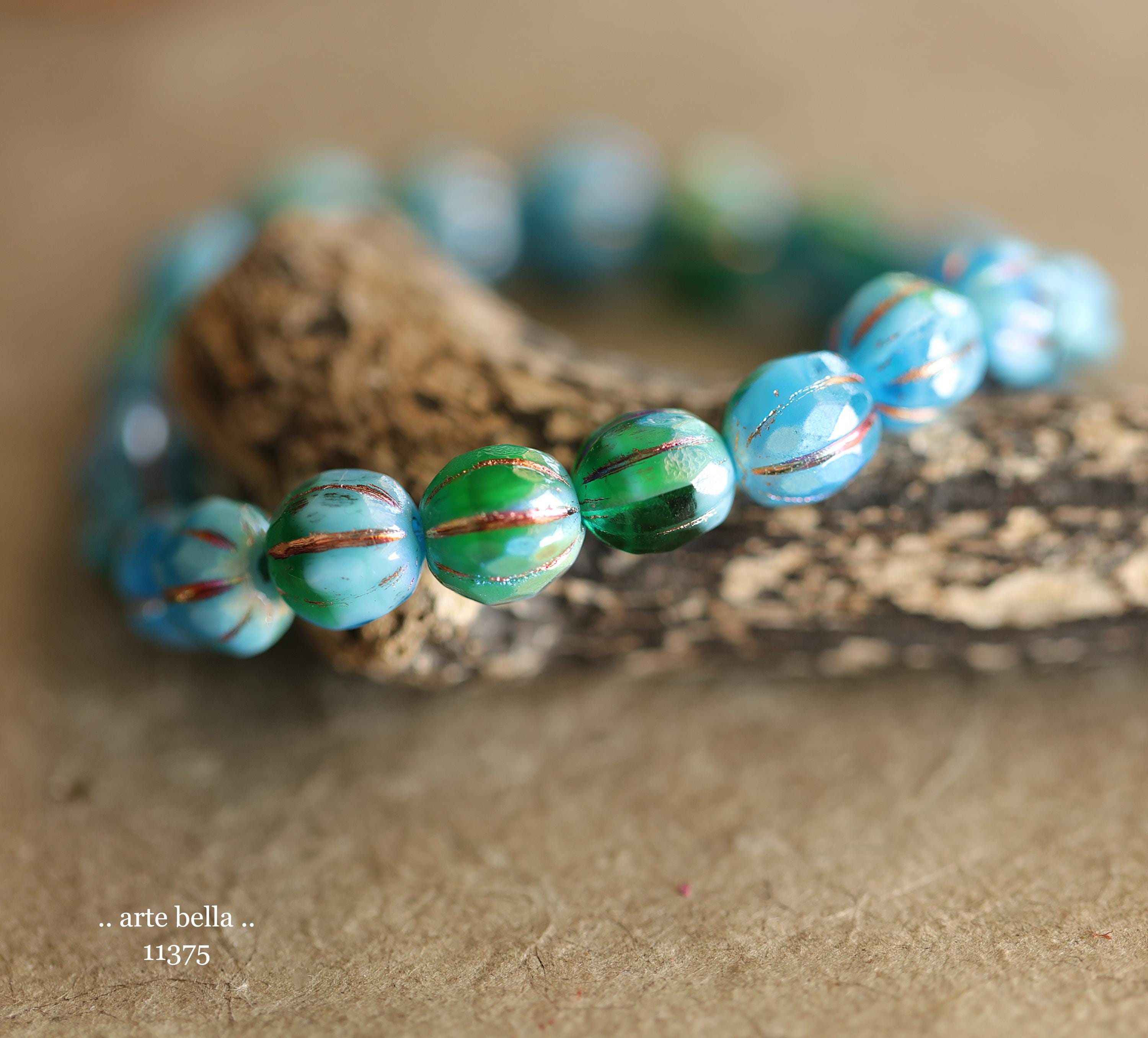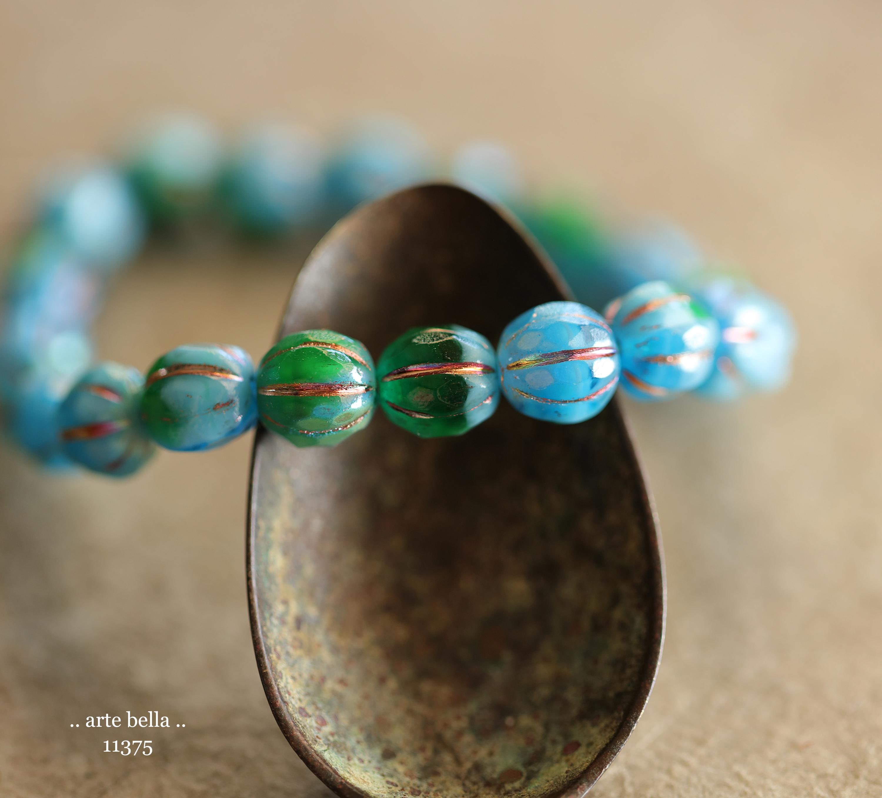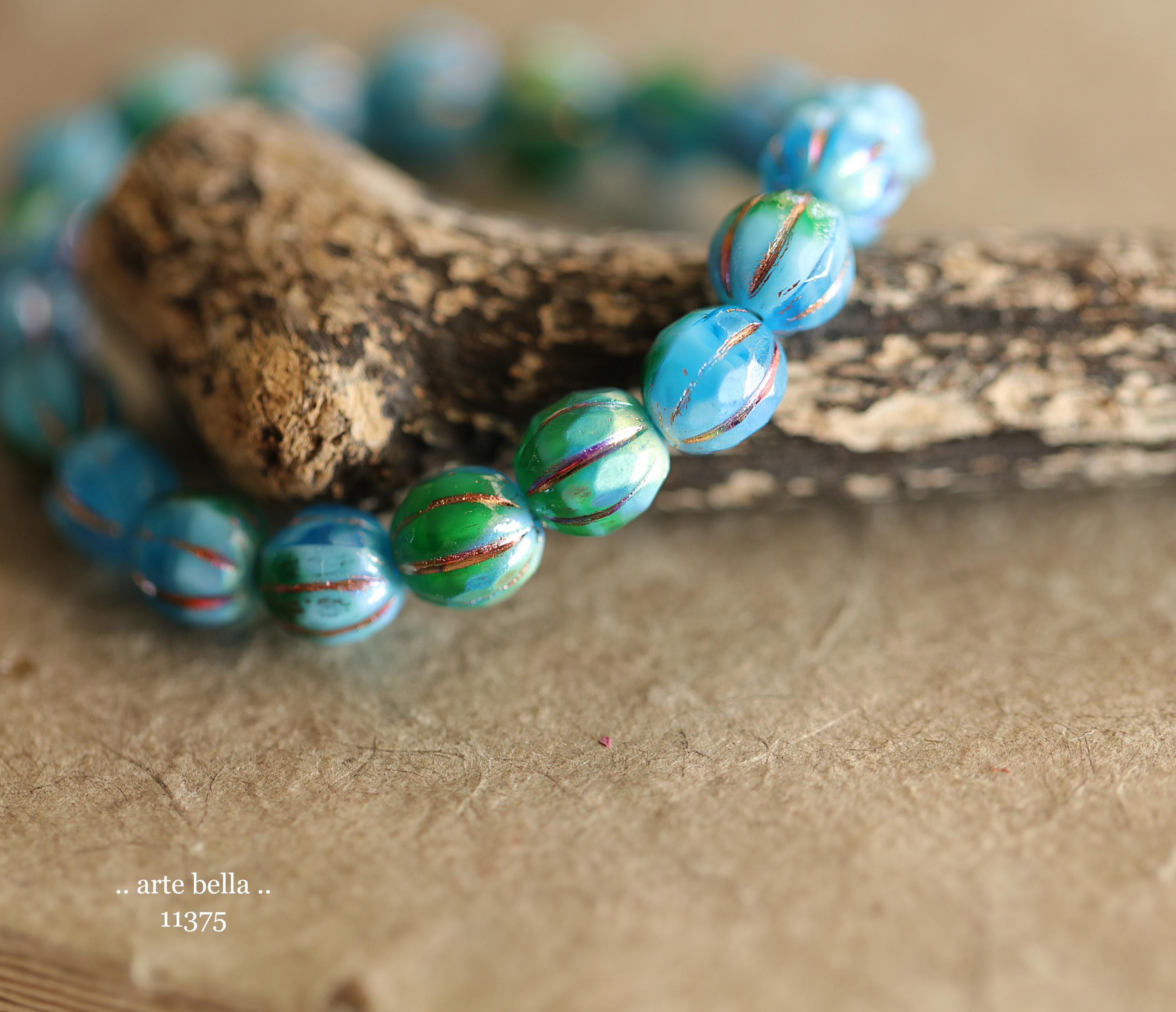 New .. MYSTIC EMERALD SKY Glitz 8mm .. 20 Premium Czech Glass Faceted Melon Beads (11375-st) .. jewelry supplies