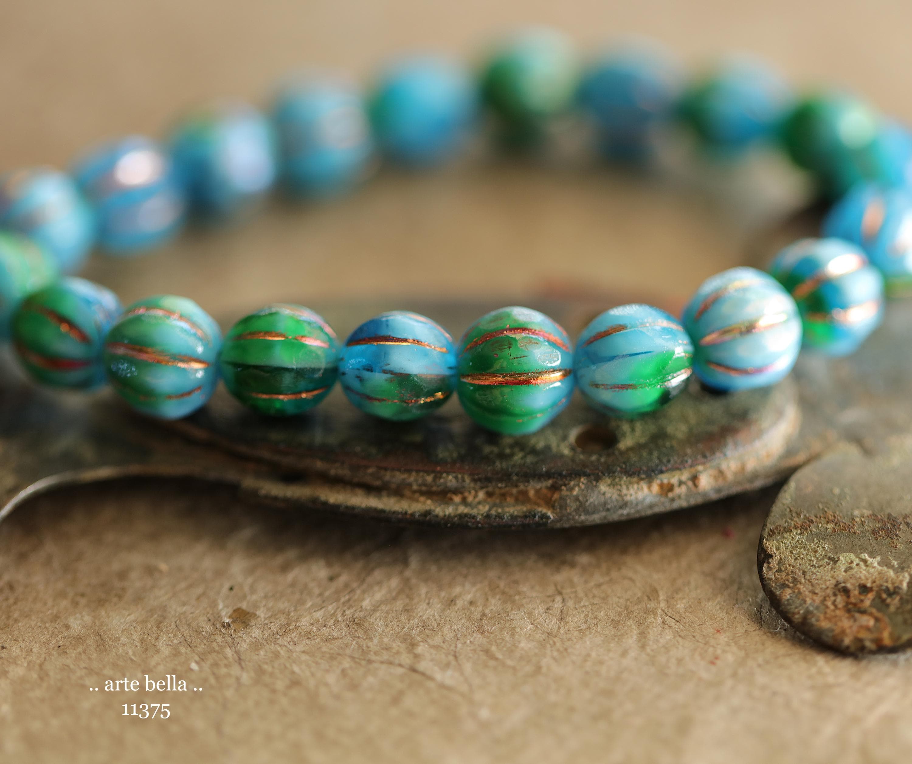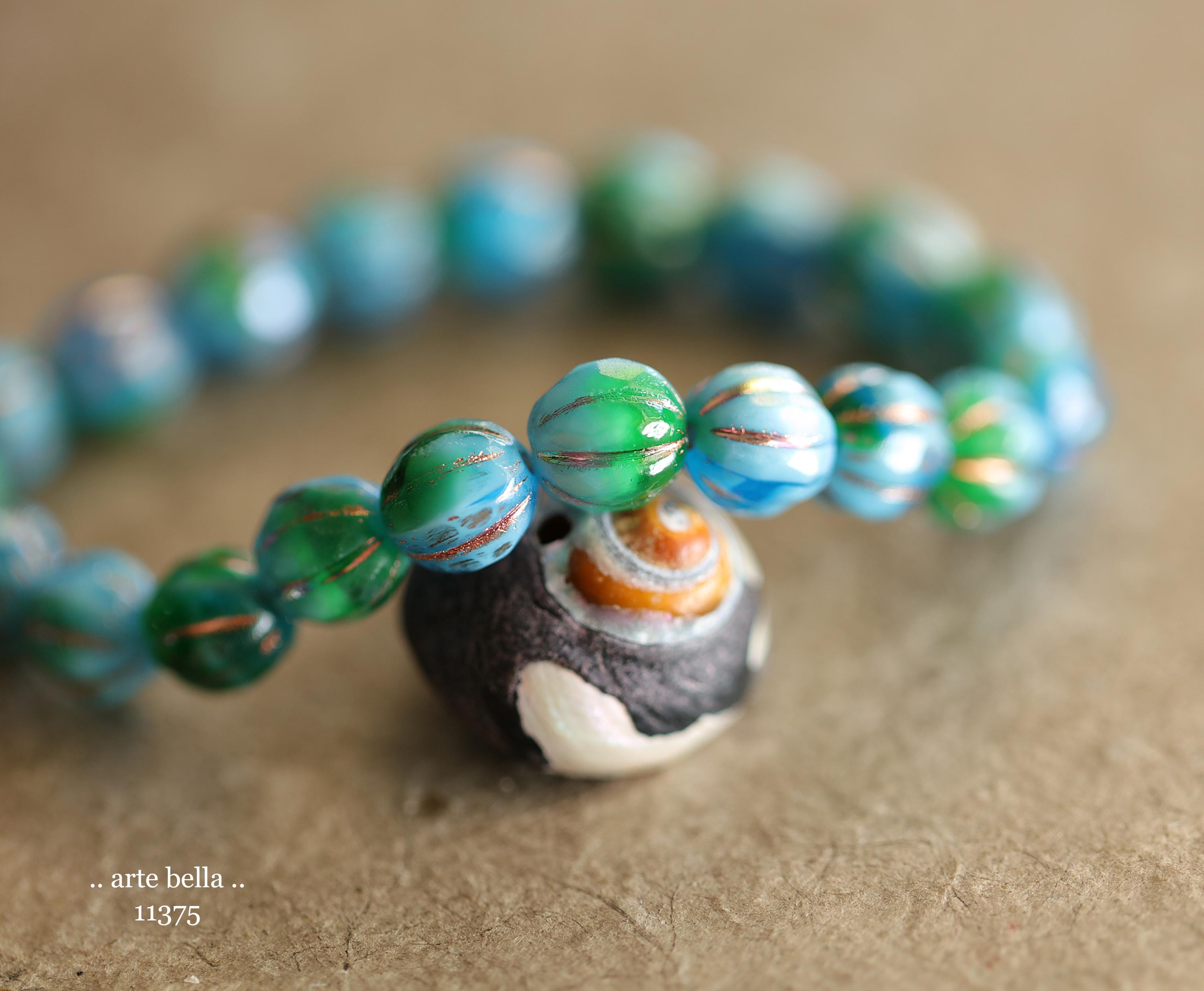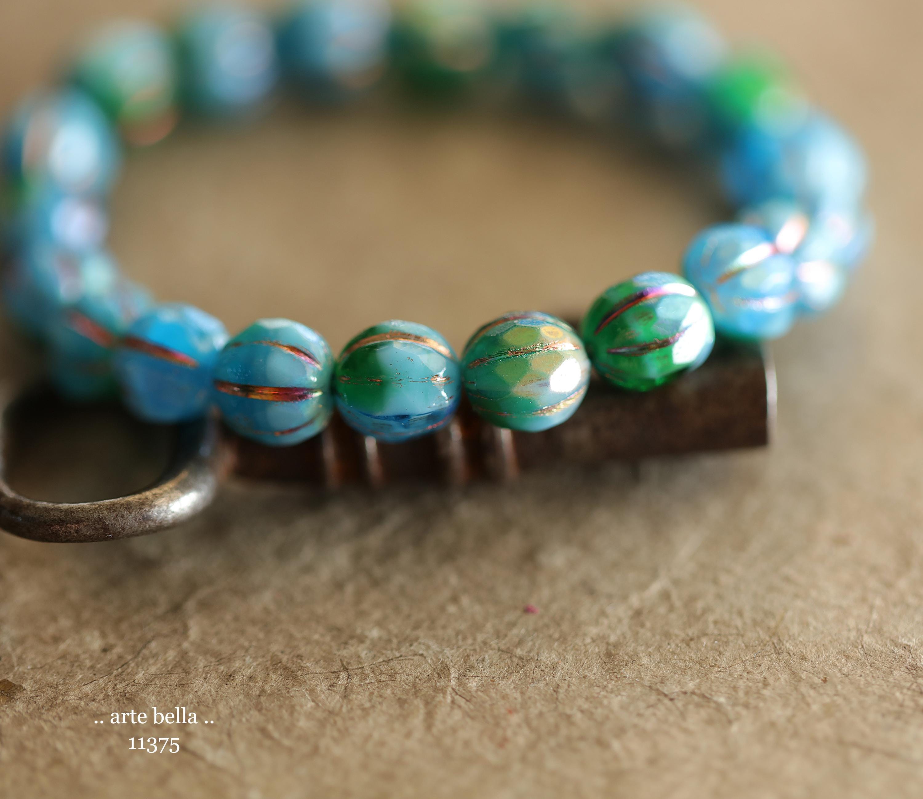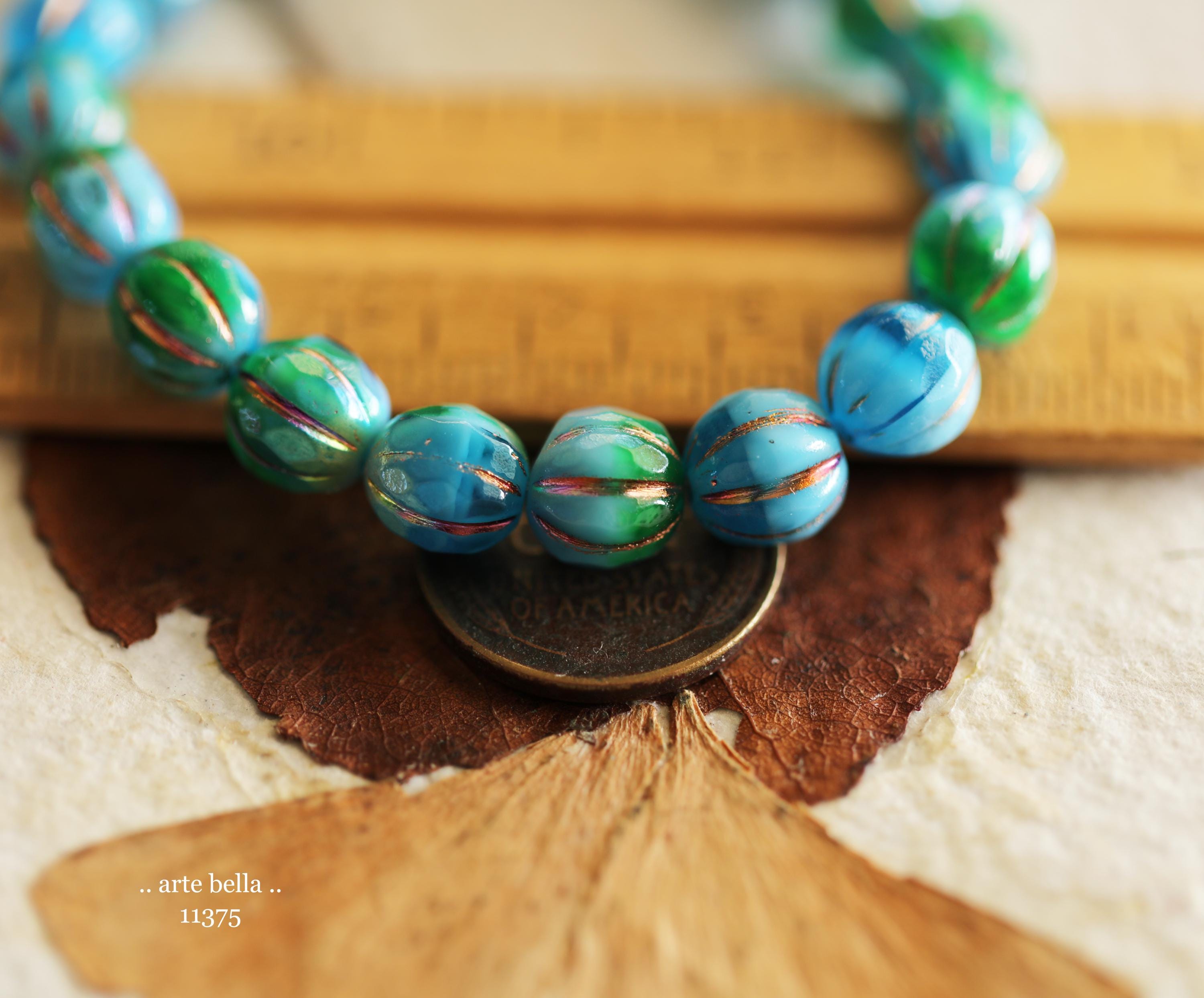 New .. MYSTIC EMERALD SKY Glitz 8mm .. 20 Premium Czech Glass Faceted Melon Beads (11375-st) .. jewelry supplies