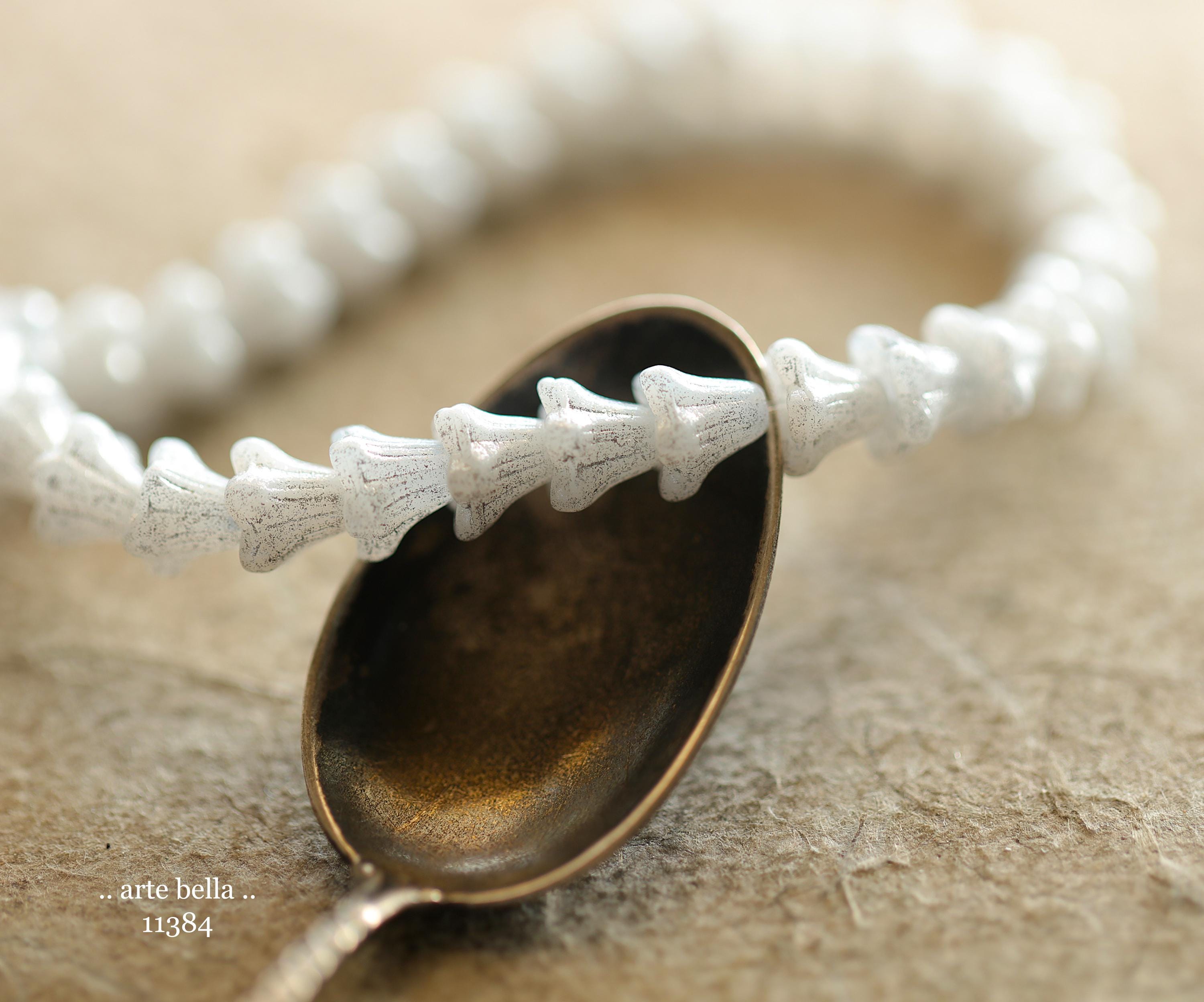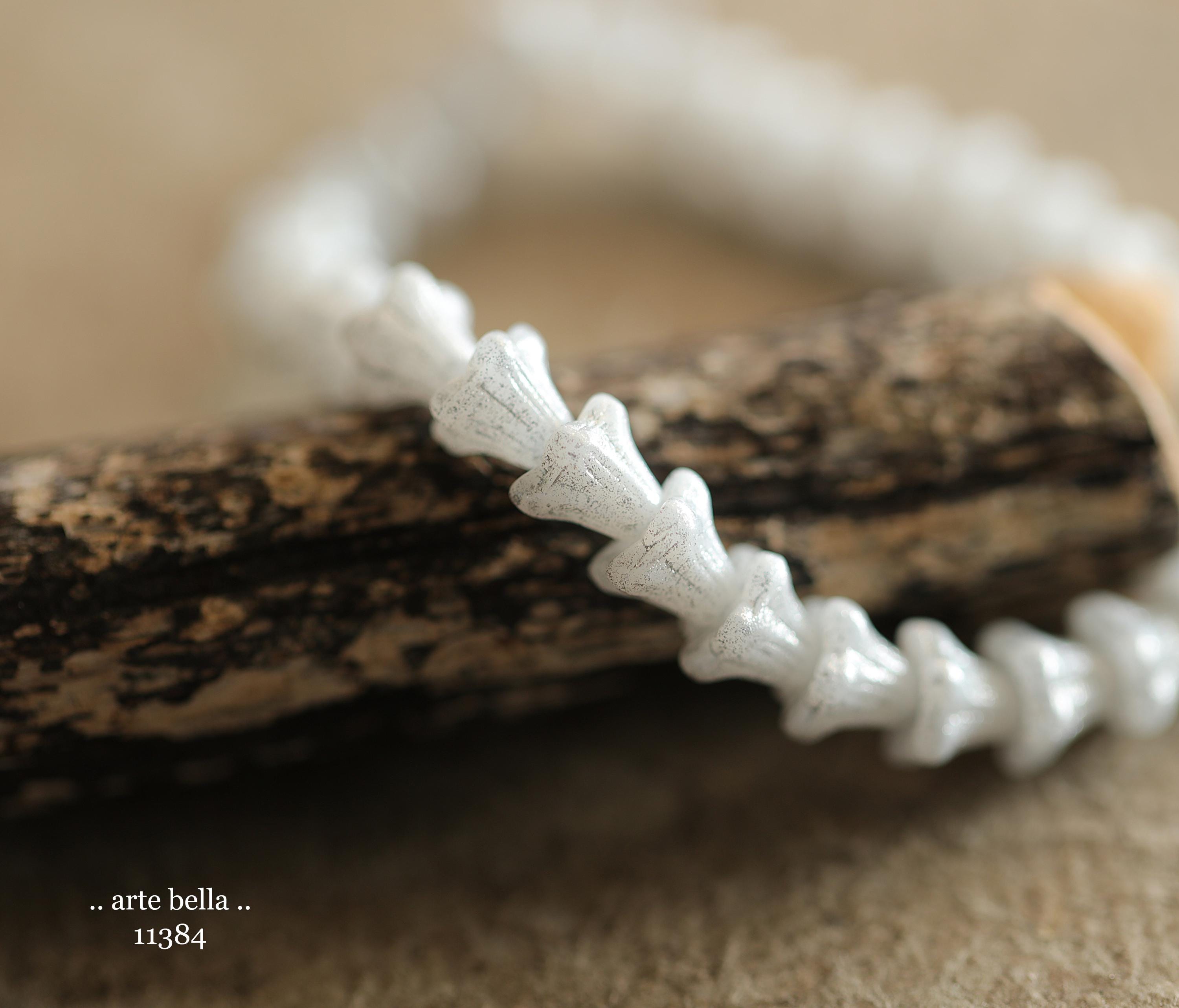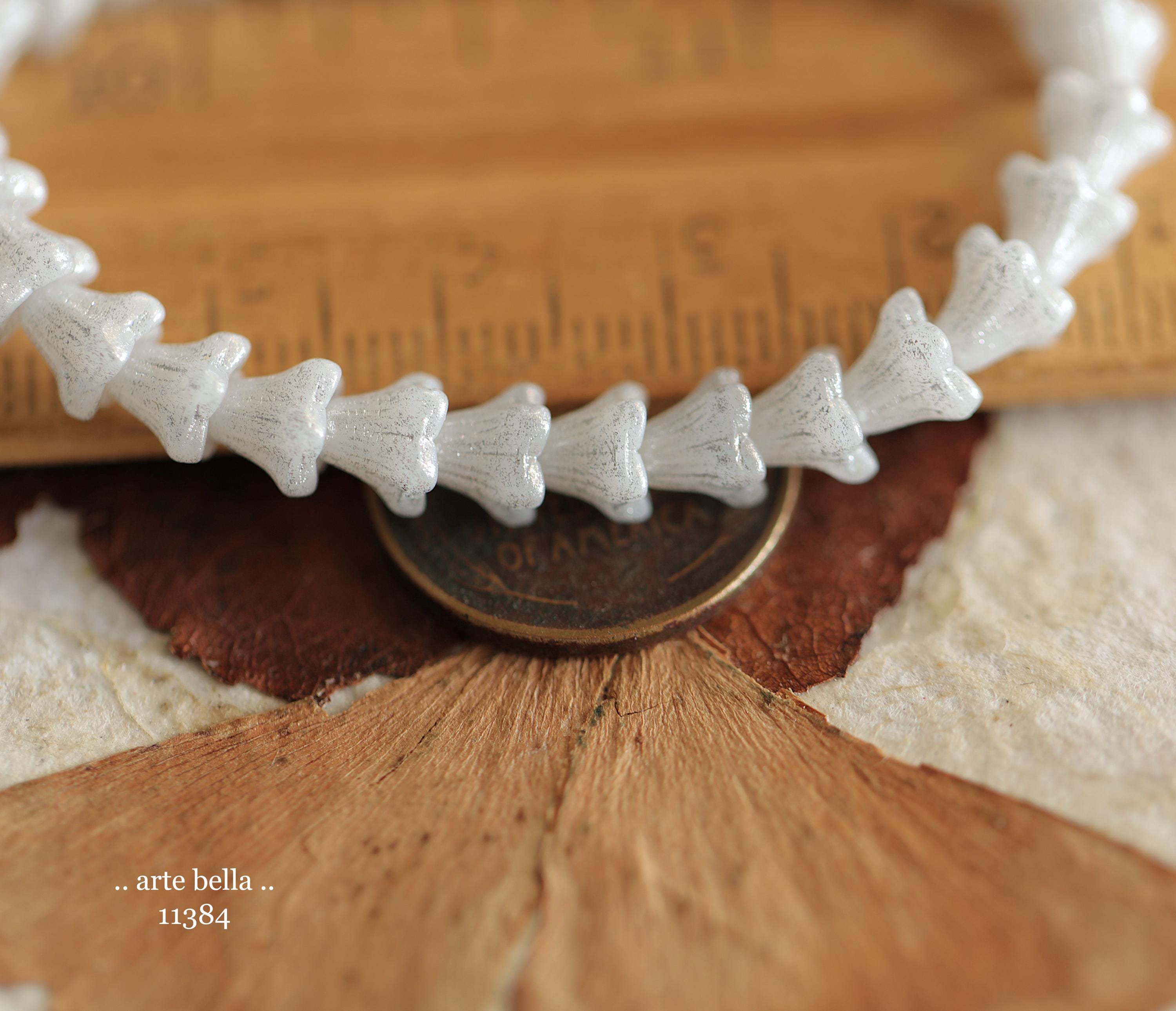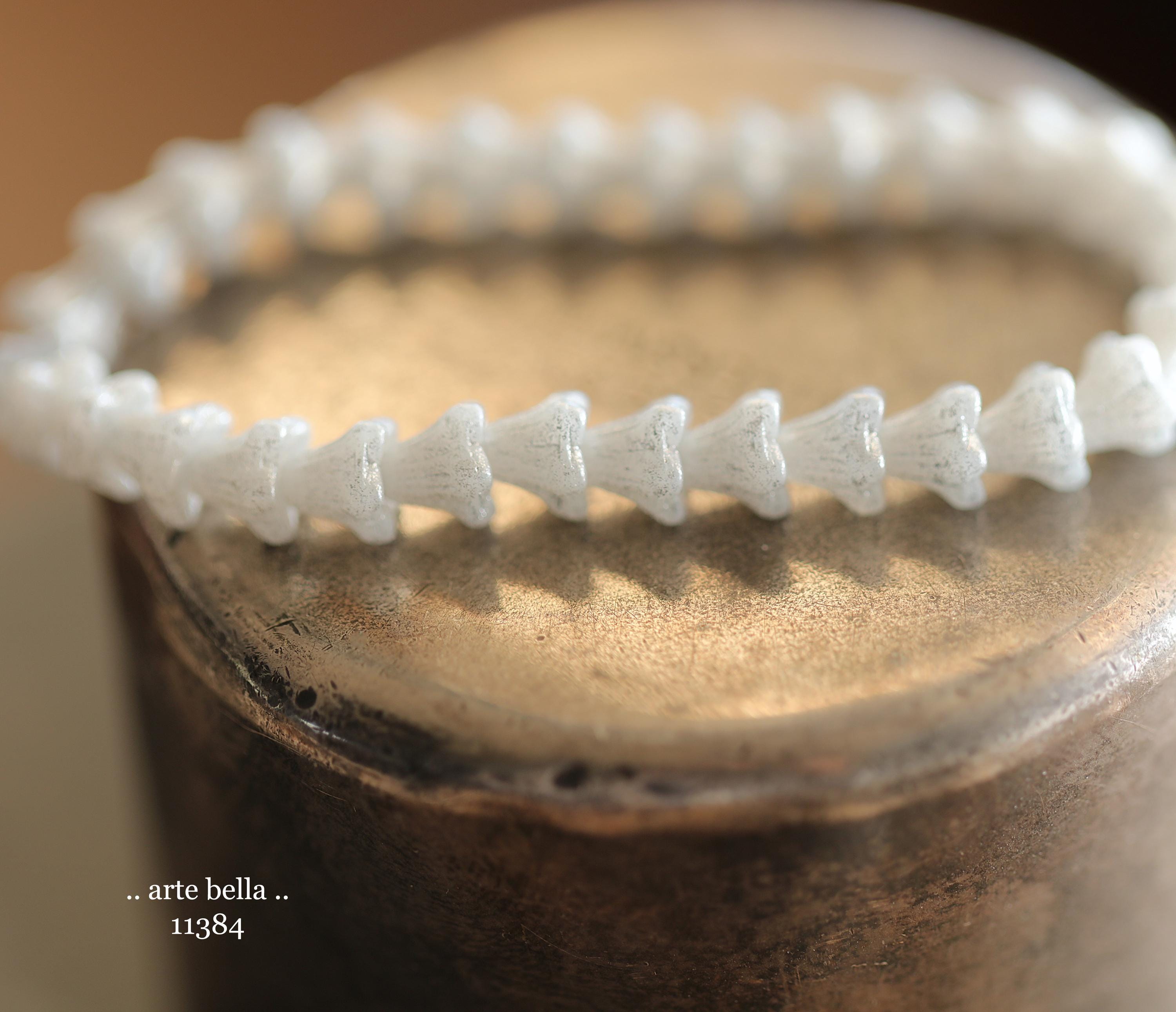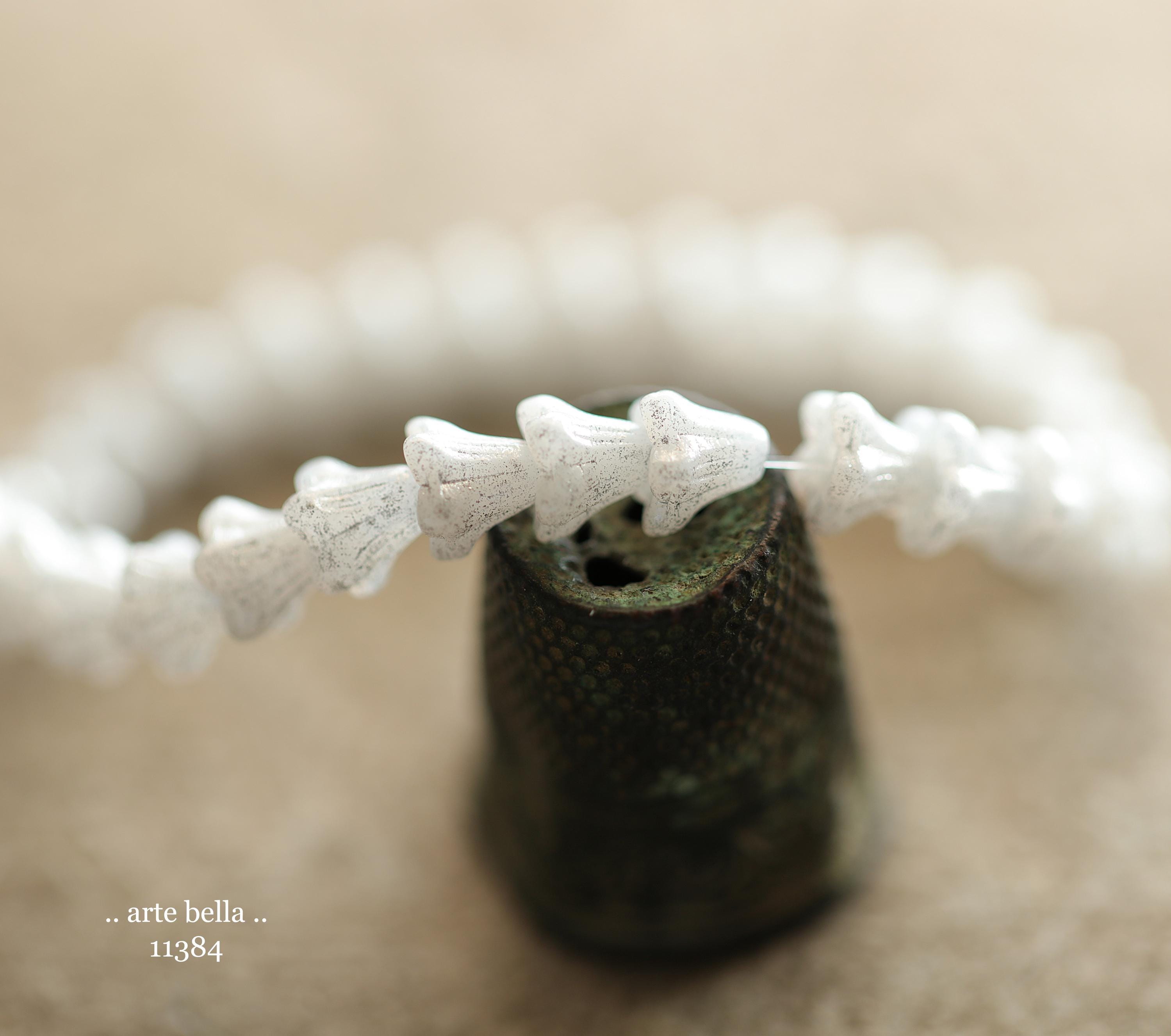 New .. SILVERED SNOW BELLS .. 30 Premium Czech Glass Baby Bell Flower Bead 5x6mm (11384-st) .. jewelry supplies