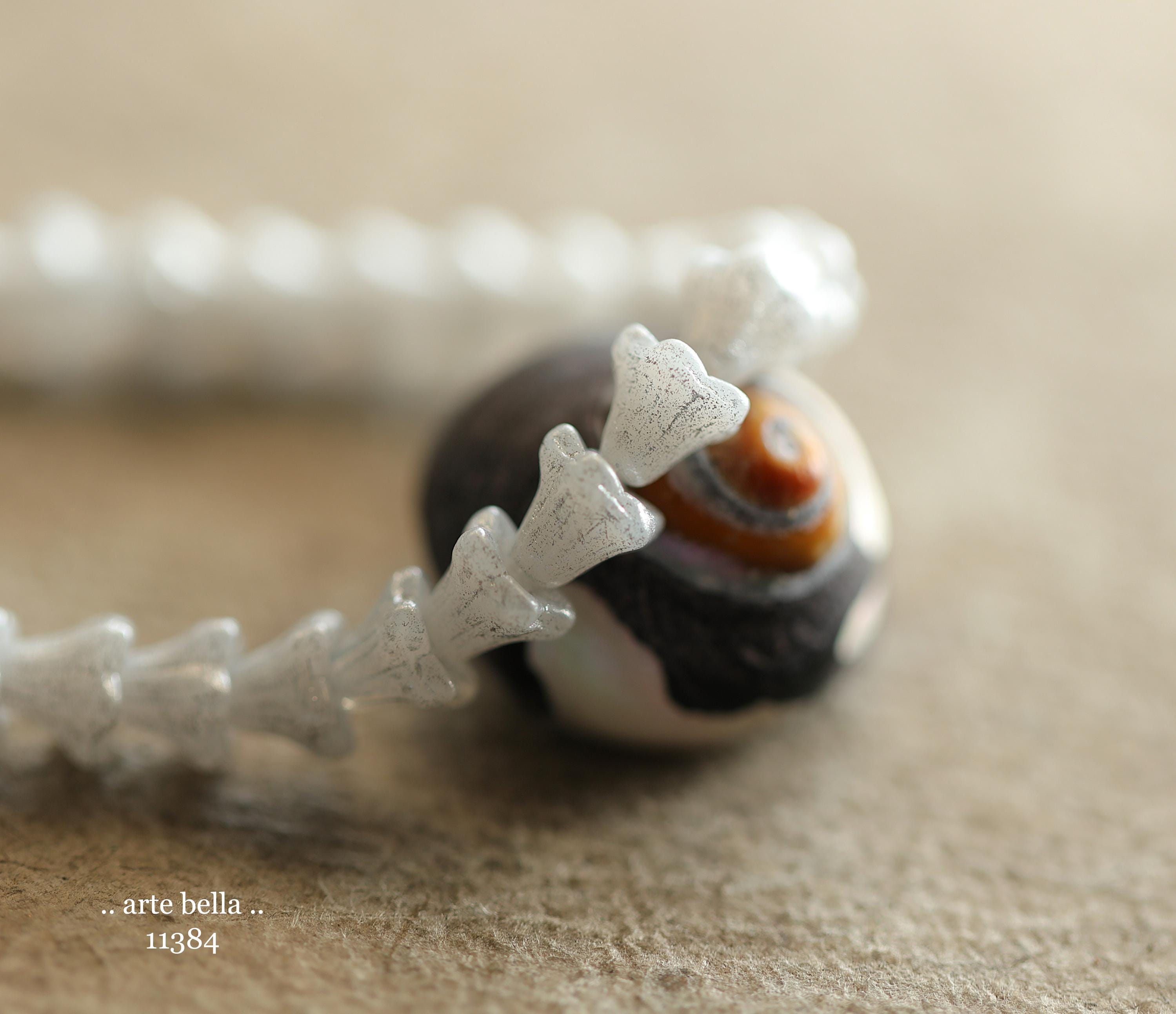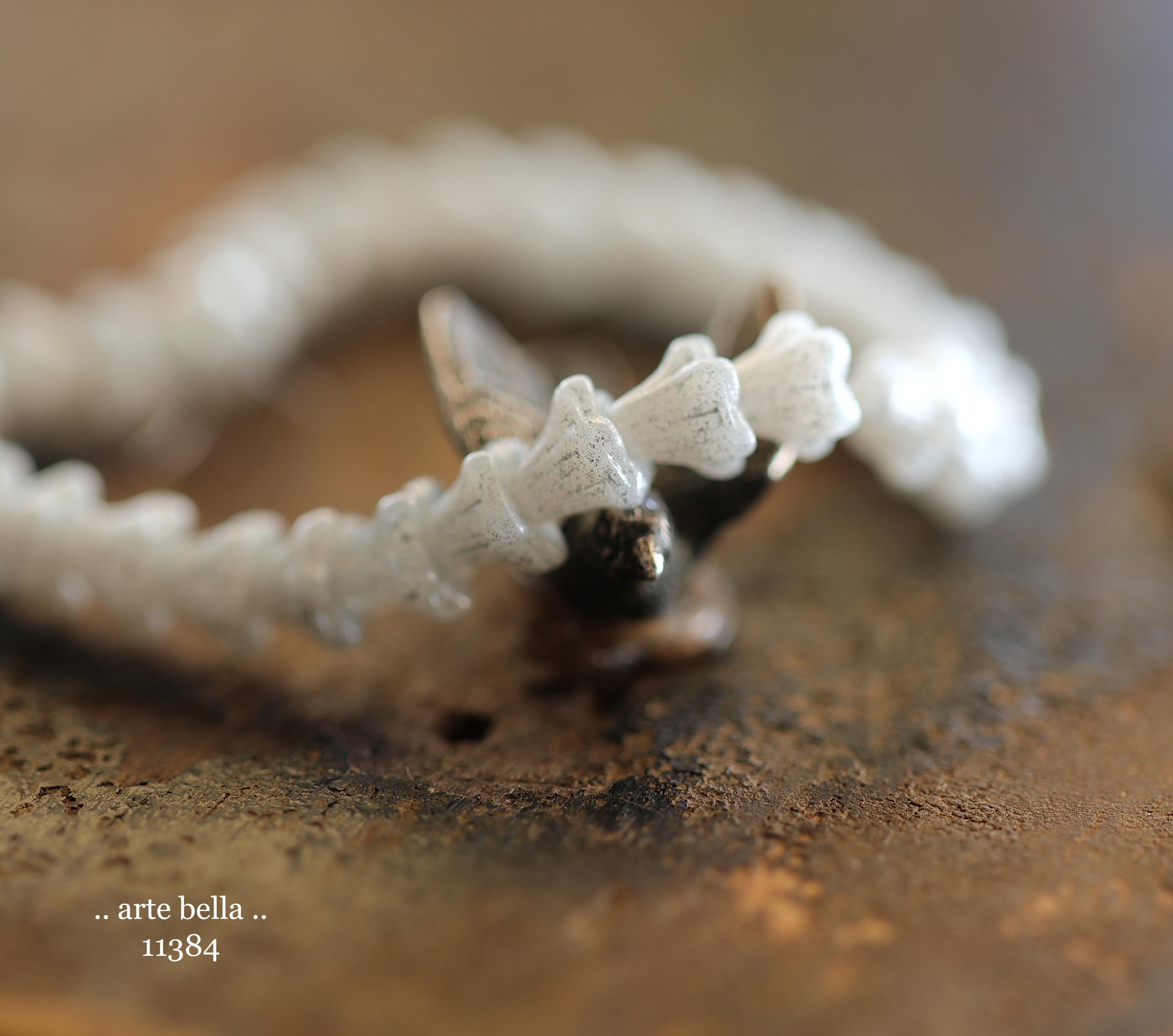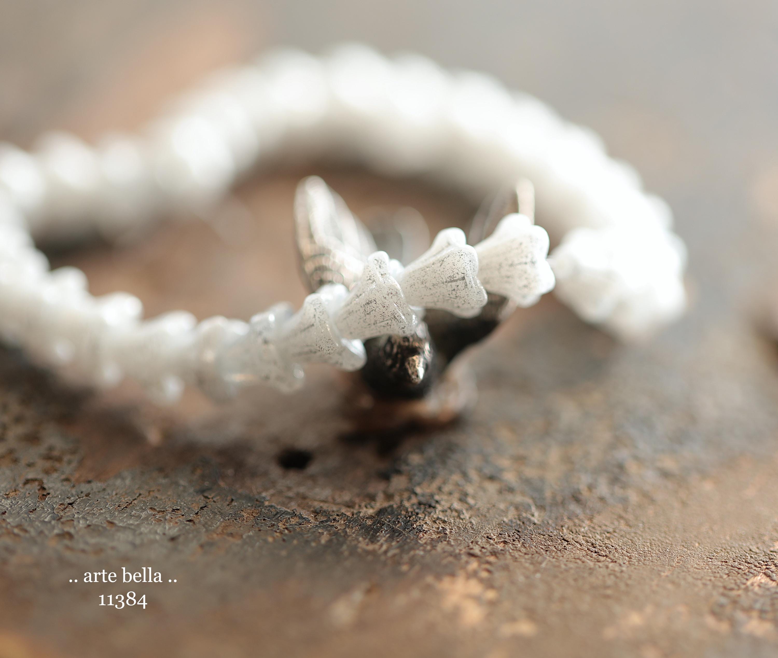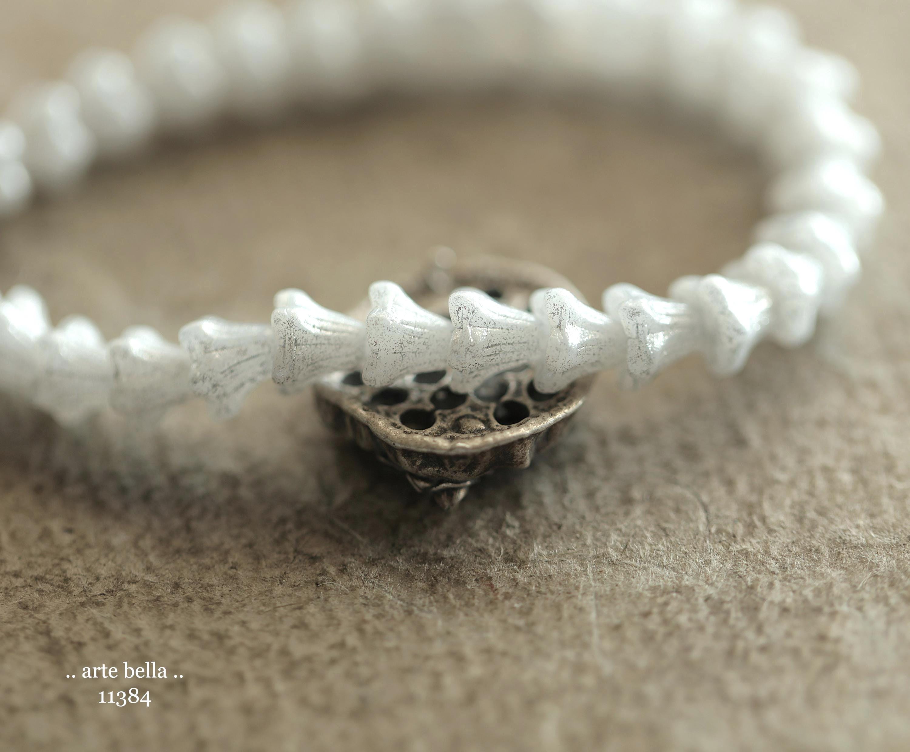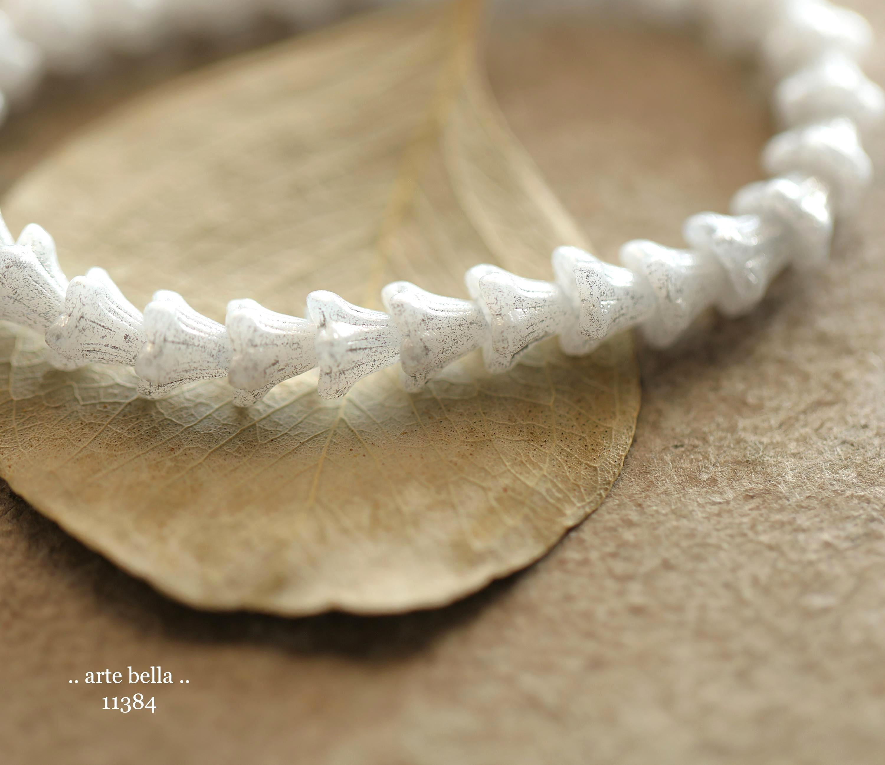 New .. SILVERED SNOW BELLS .. 30 Premium Czech Glass Baby Bell Flower Bead 5x6mm (11384-st) .. jewelry supplies