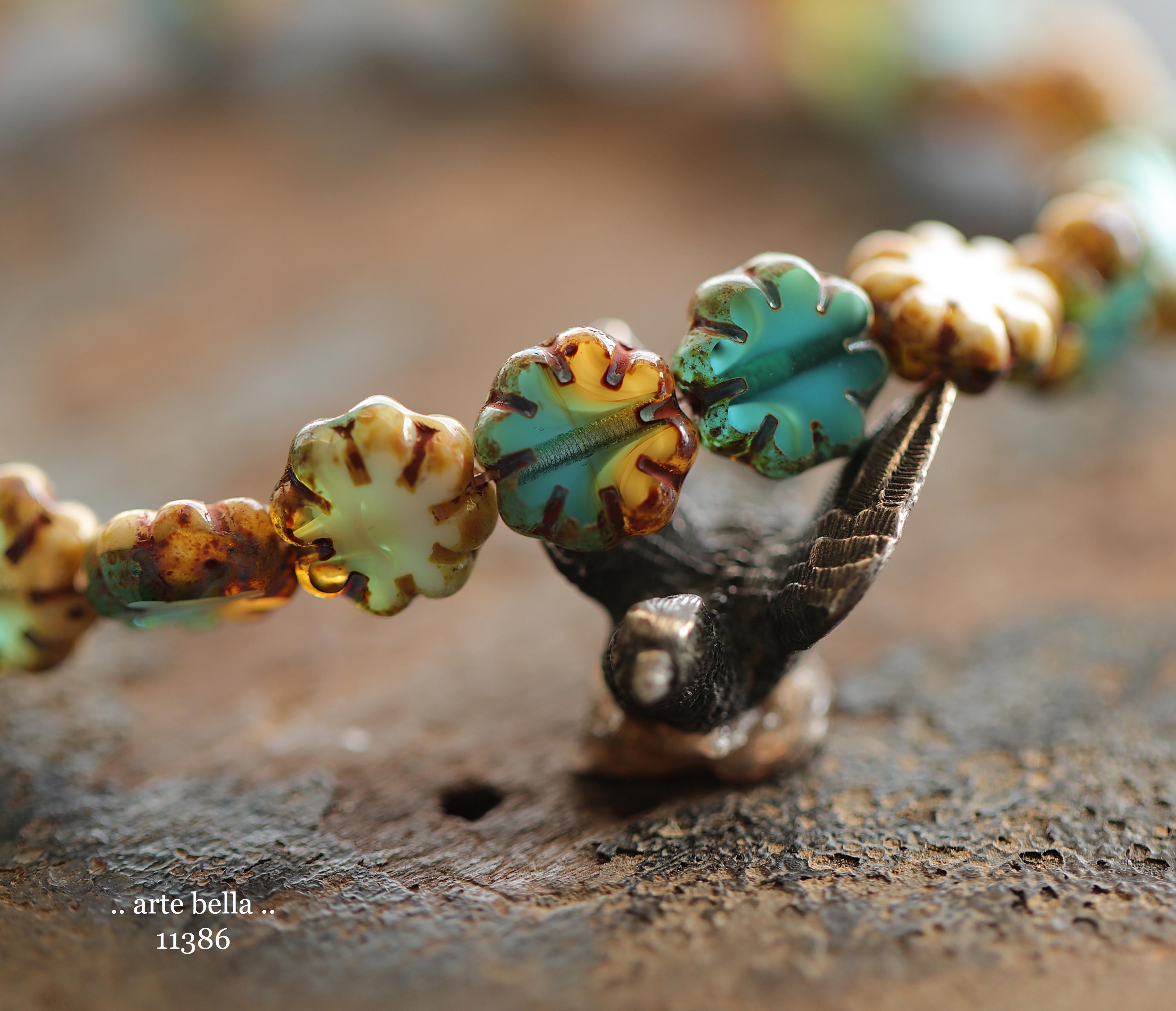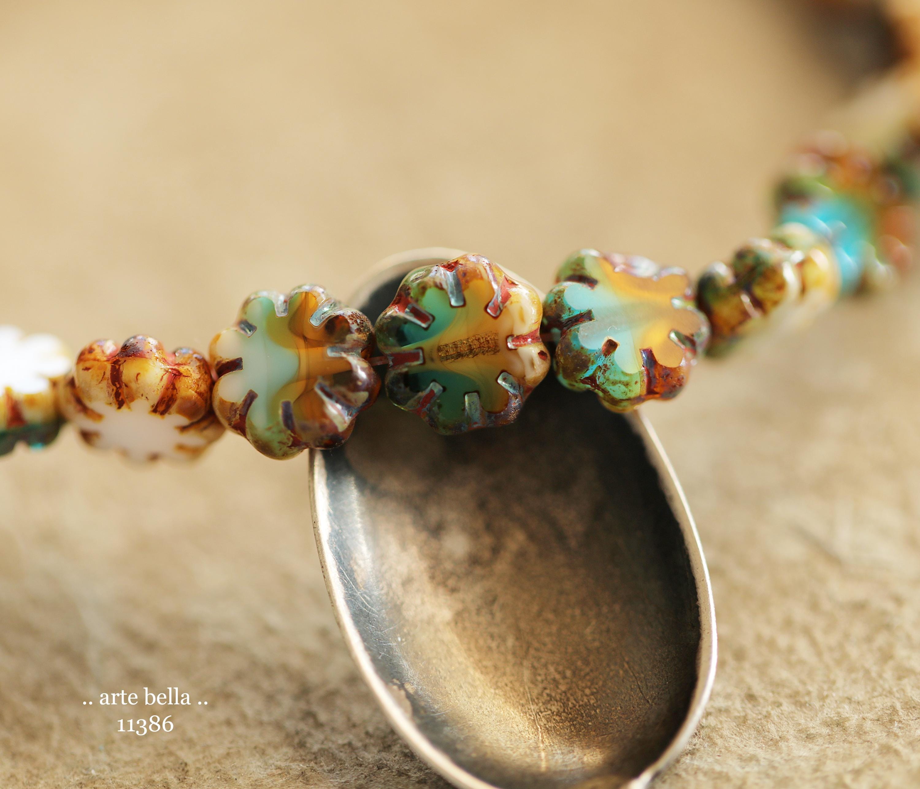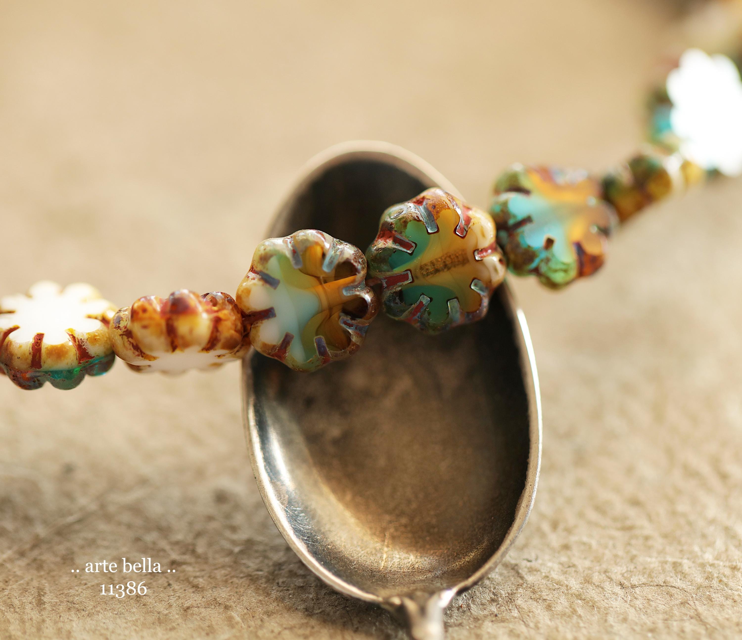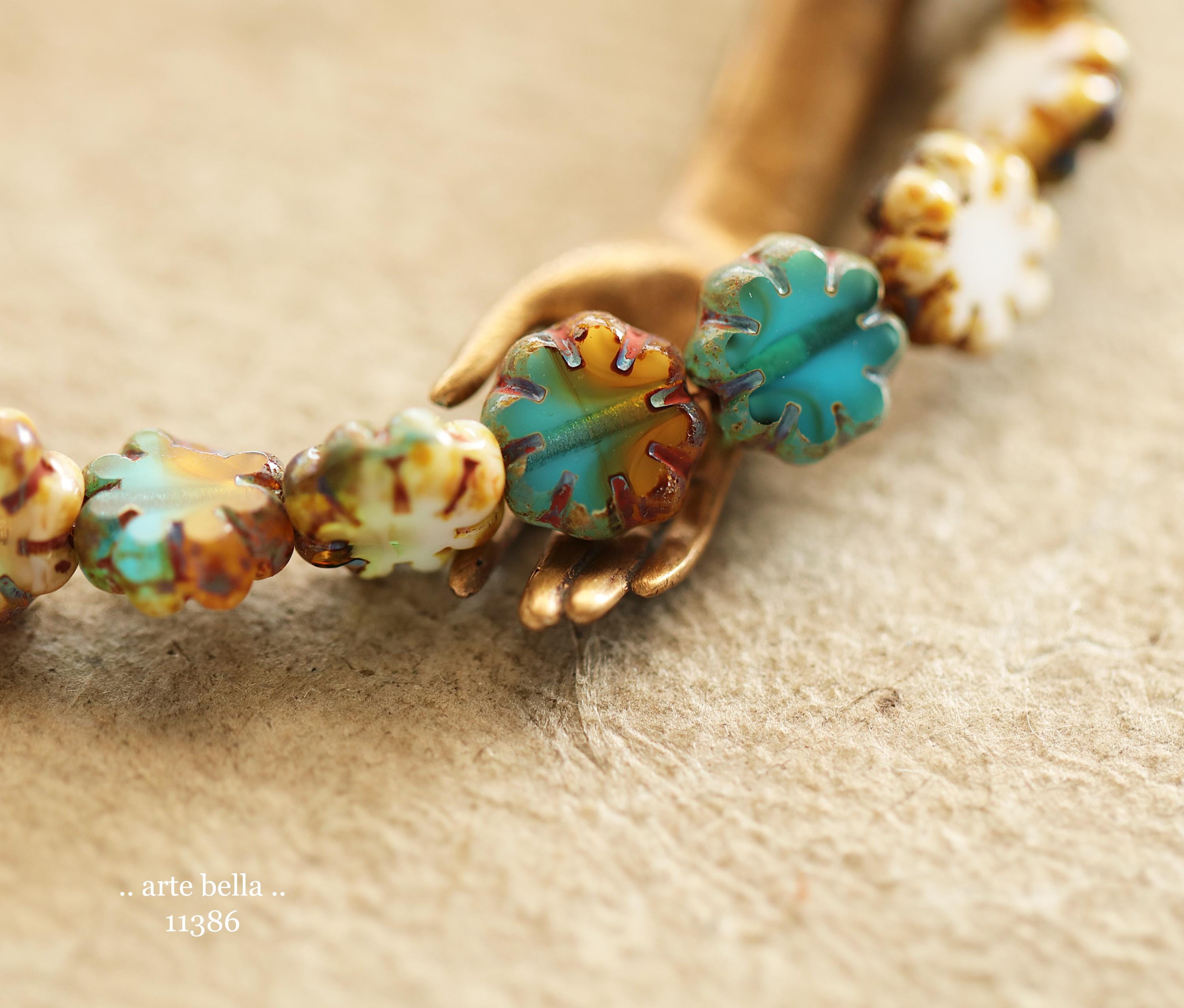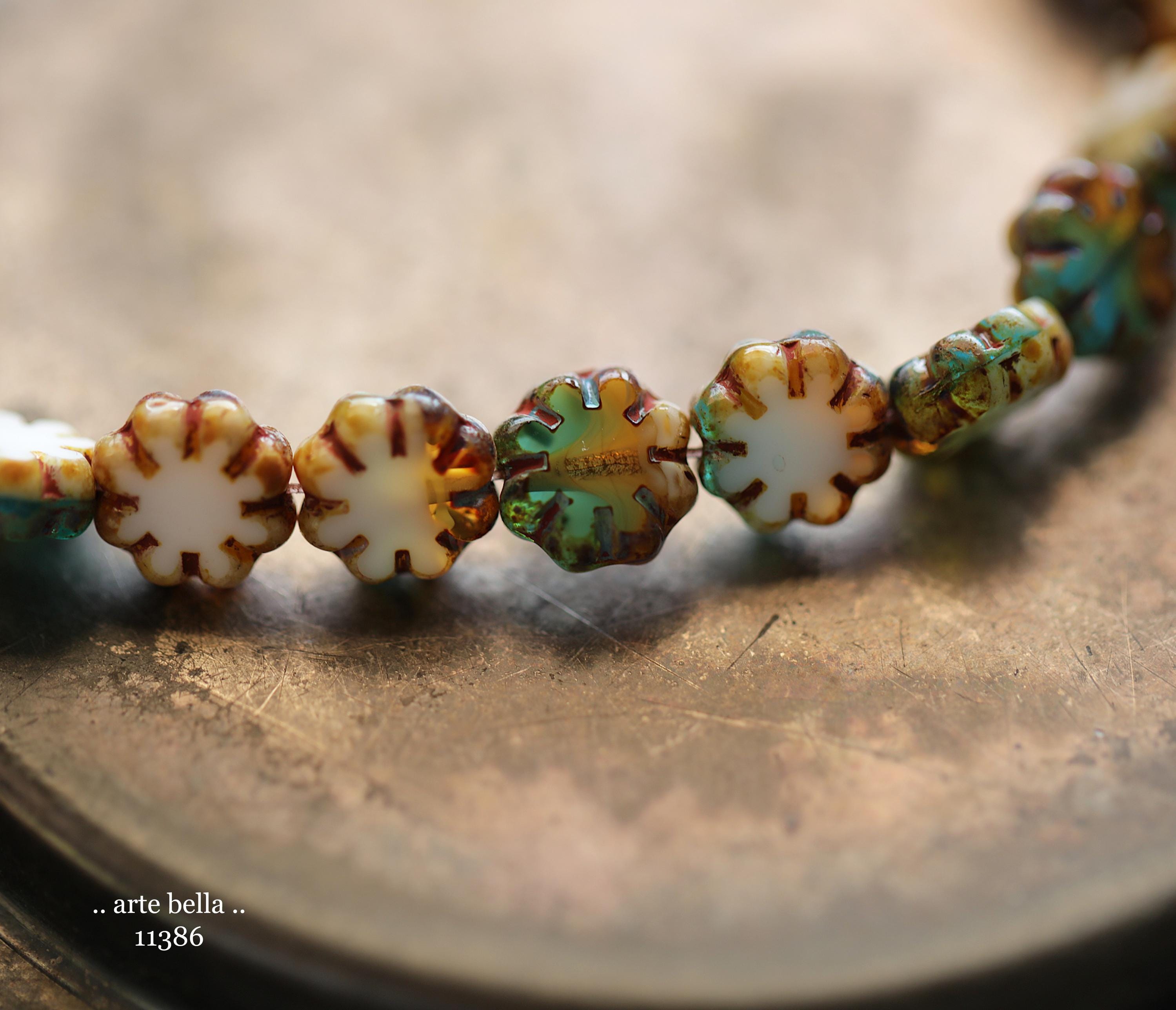 New .. RIVER WILD BLOOMS .. 25 Picasso Czech Glass Cactus Flower Beads 9mm (11386-st) .. jewelry supplies