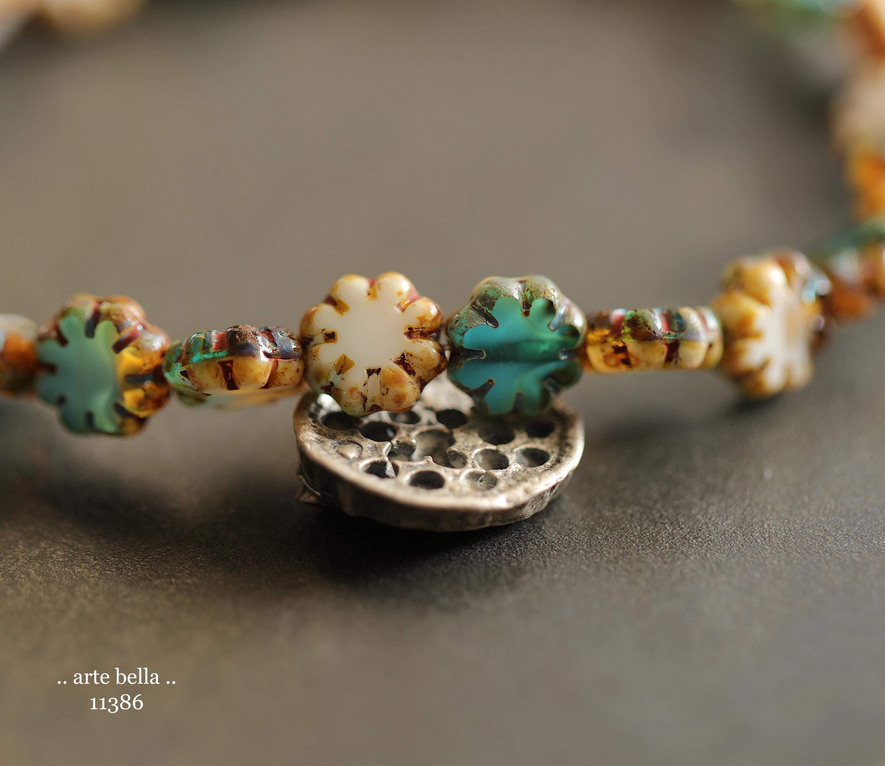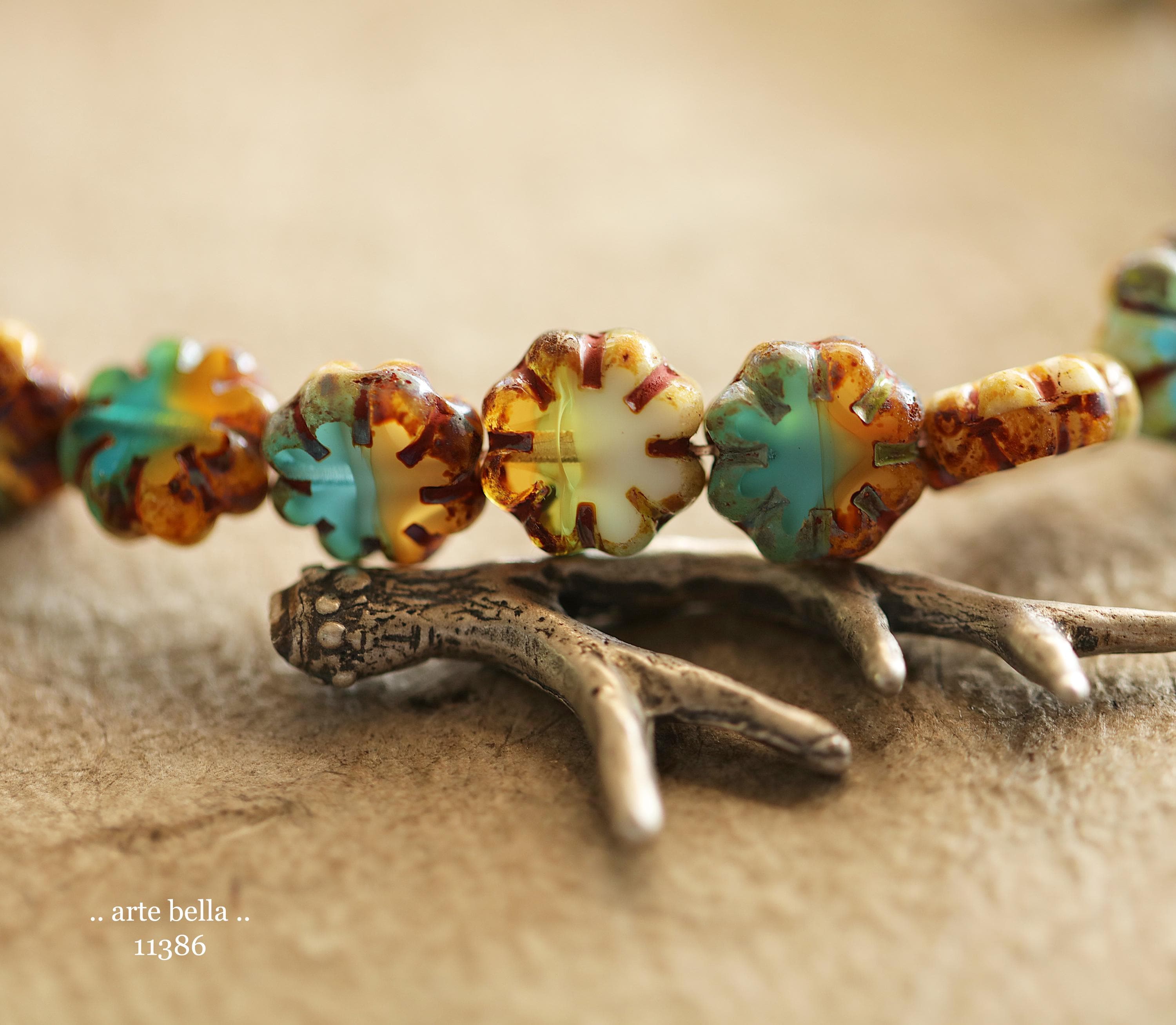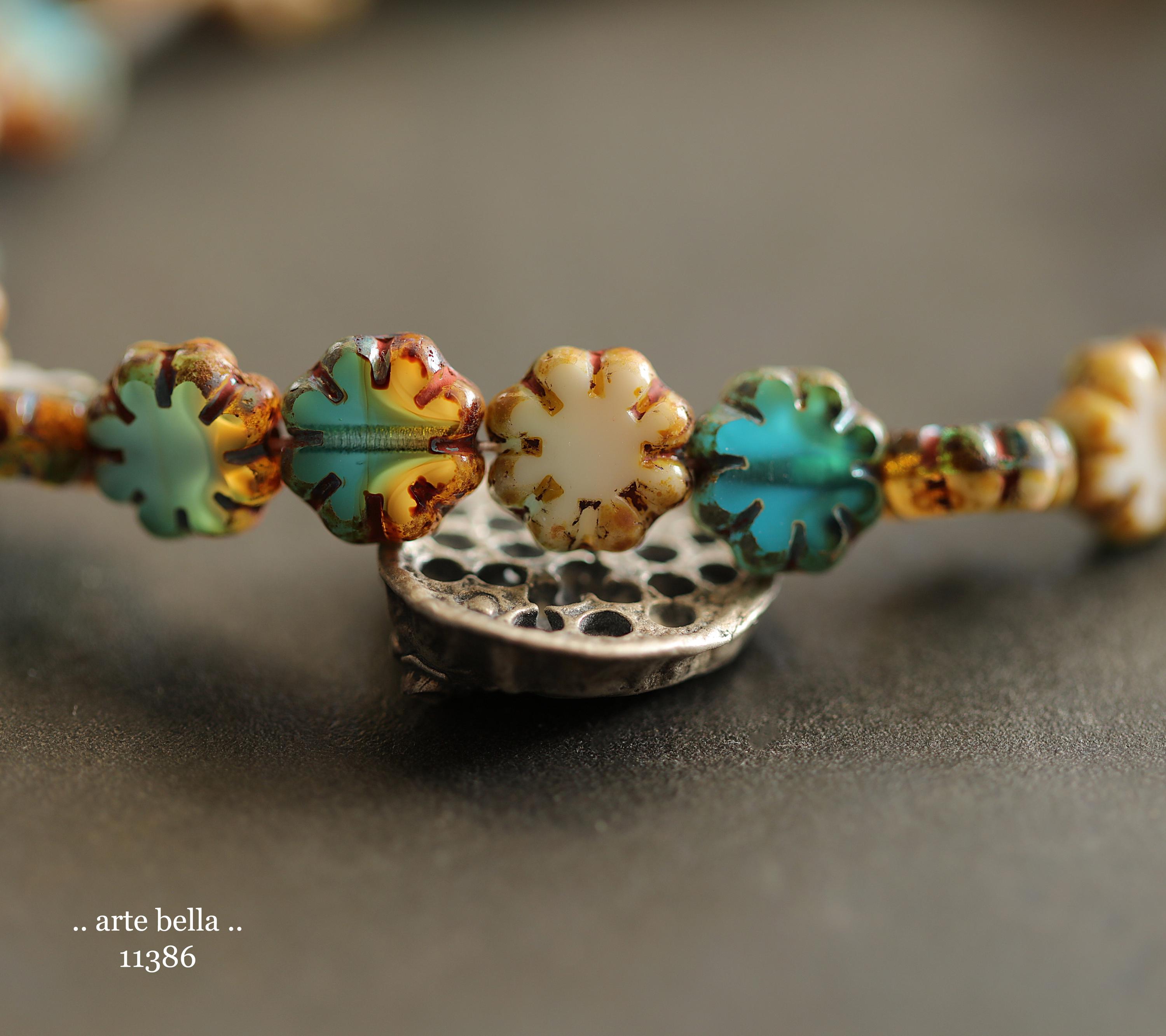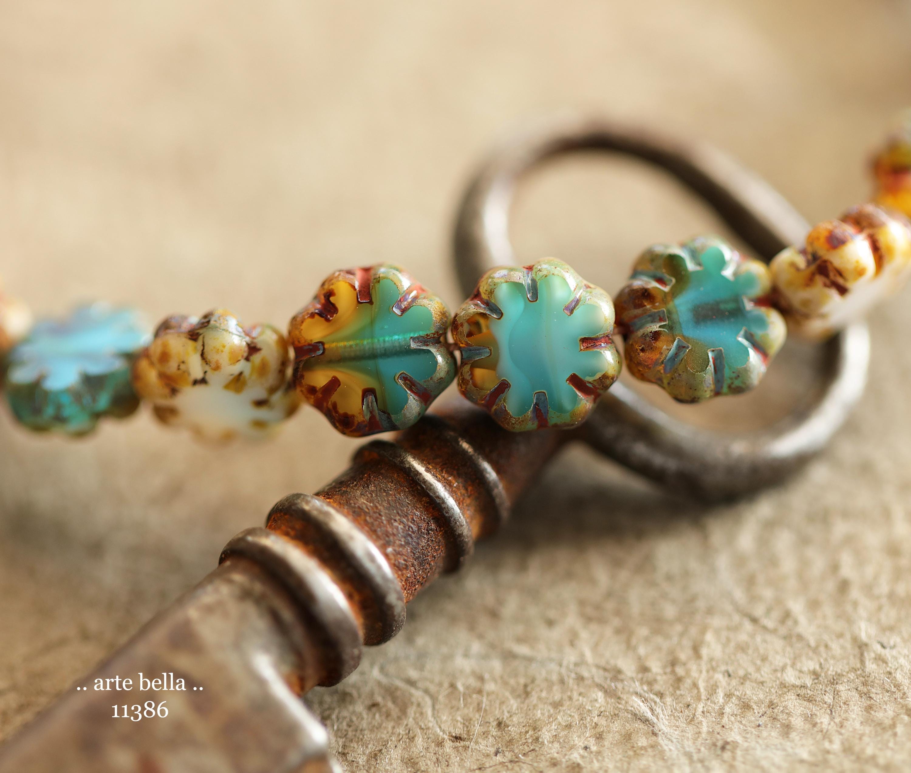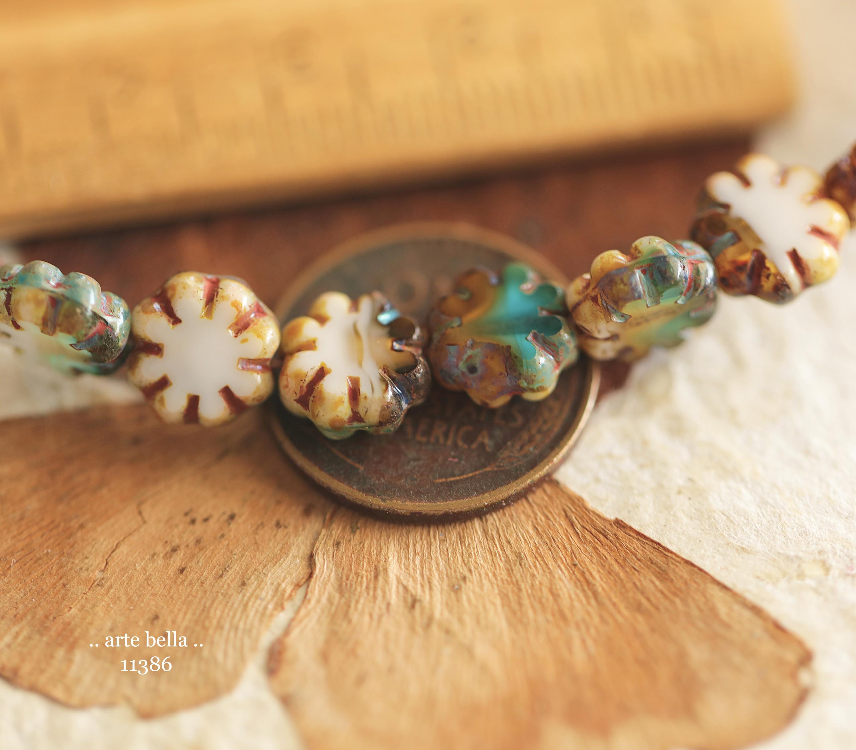 New .. RIVER WILD BLOOMS .. 25 Picasso Czech Glass Cactus Flower Beads 9mm (11386-st) .. jewelry supplies