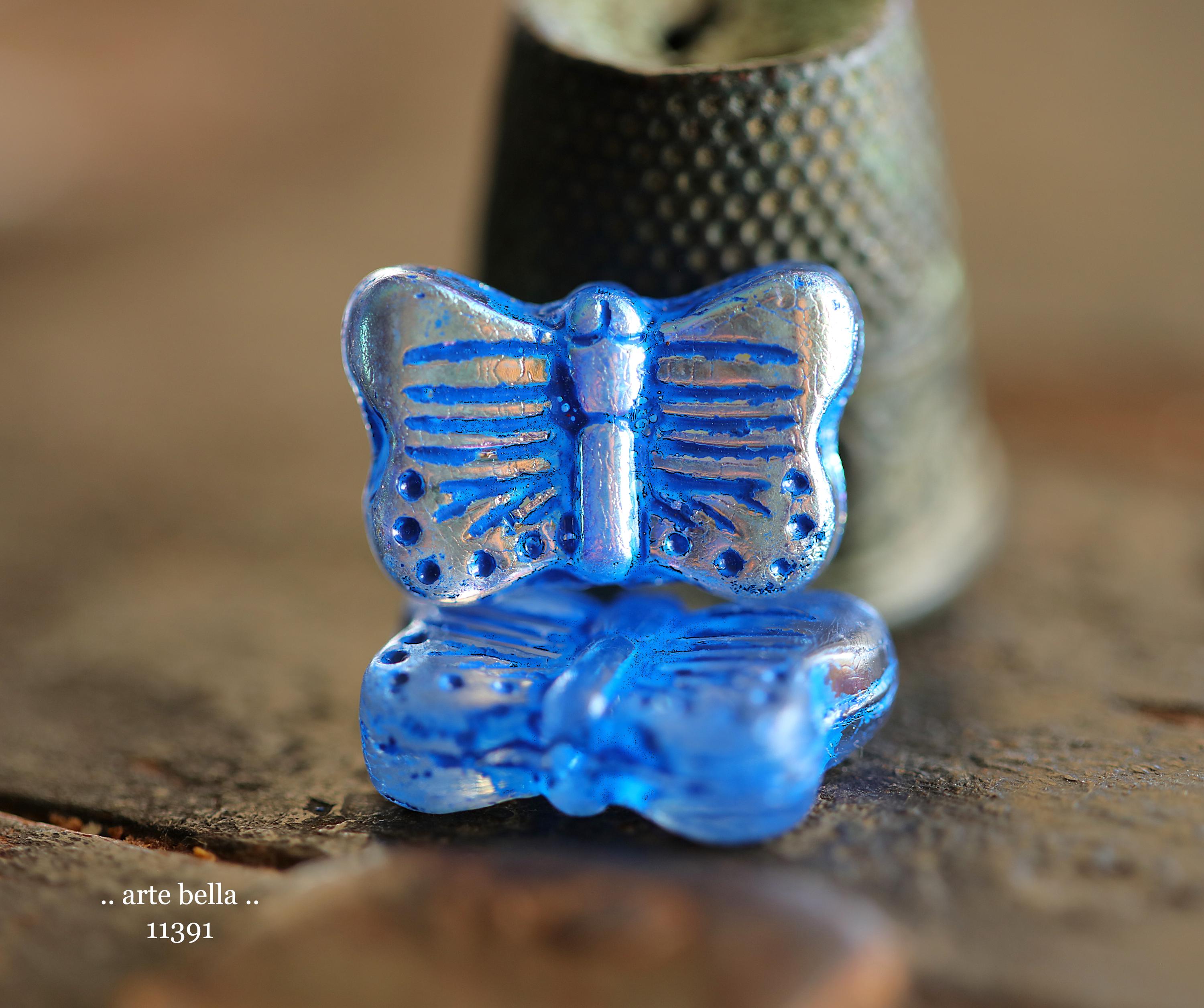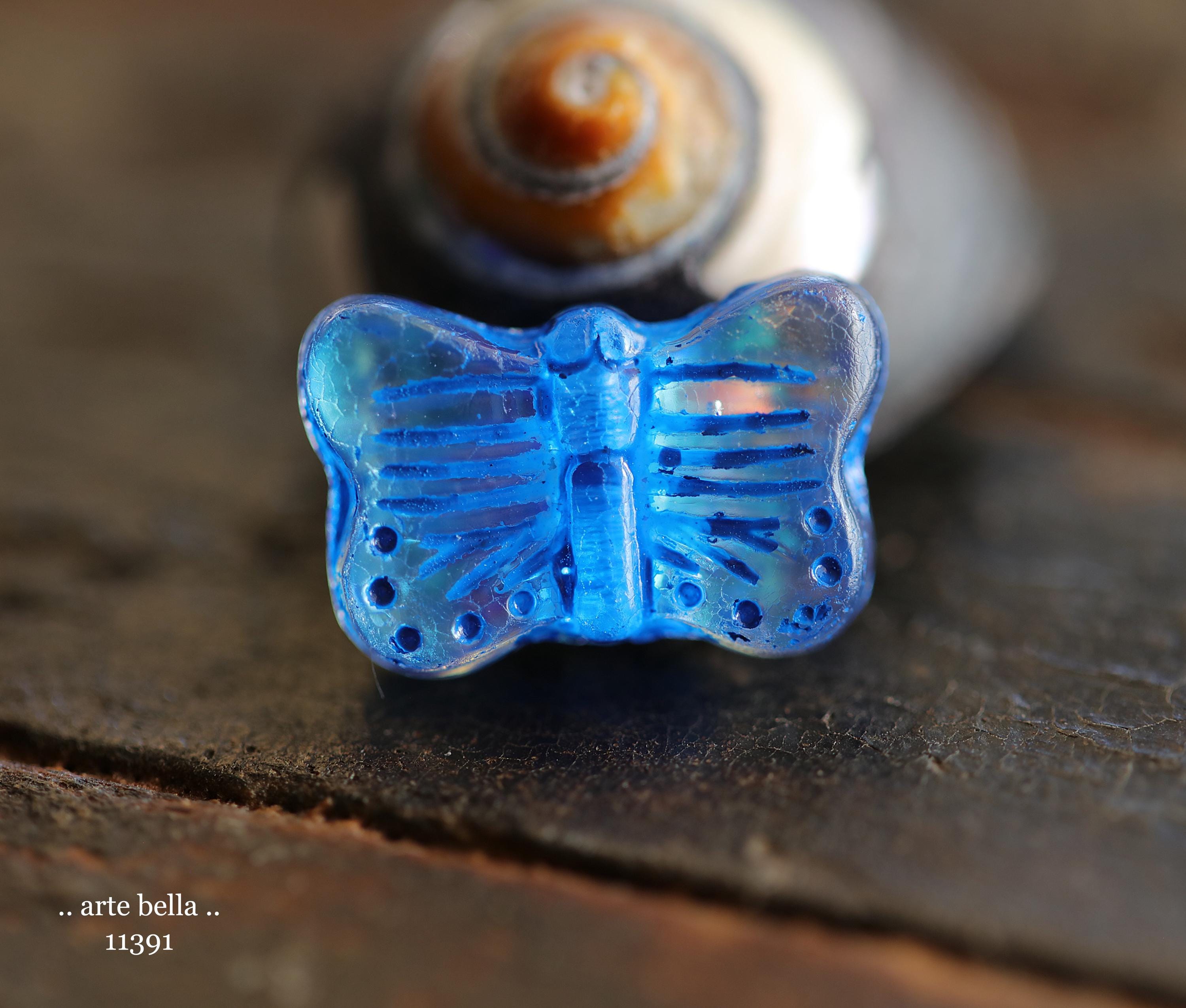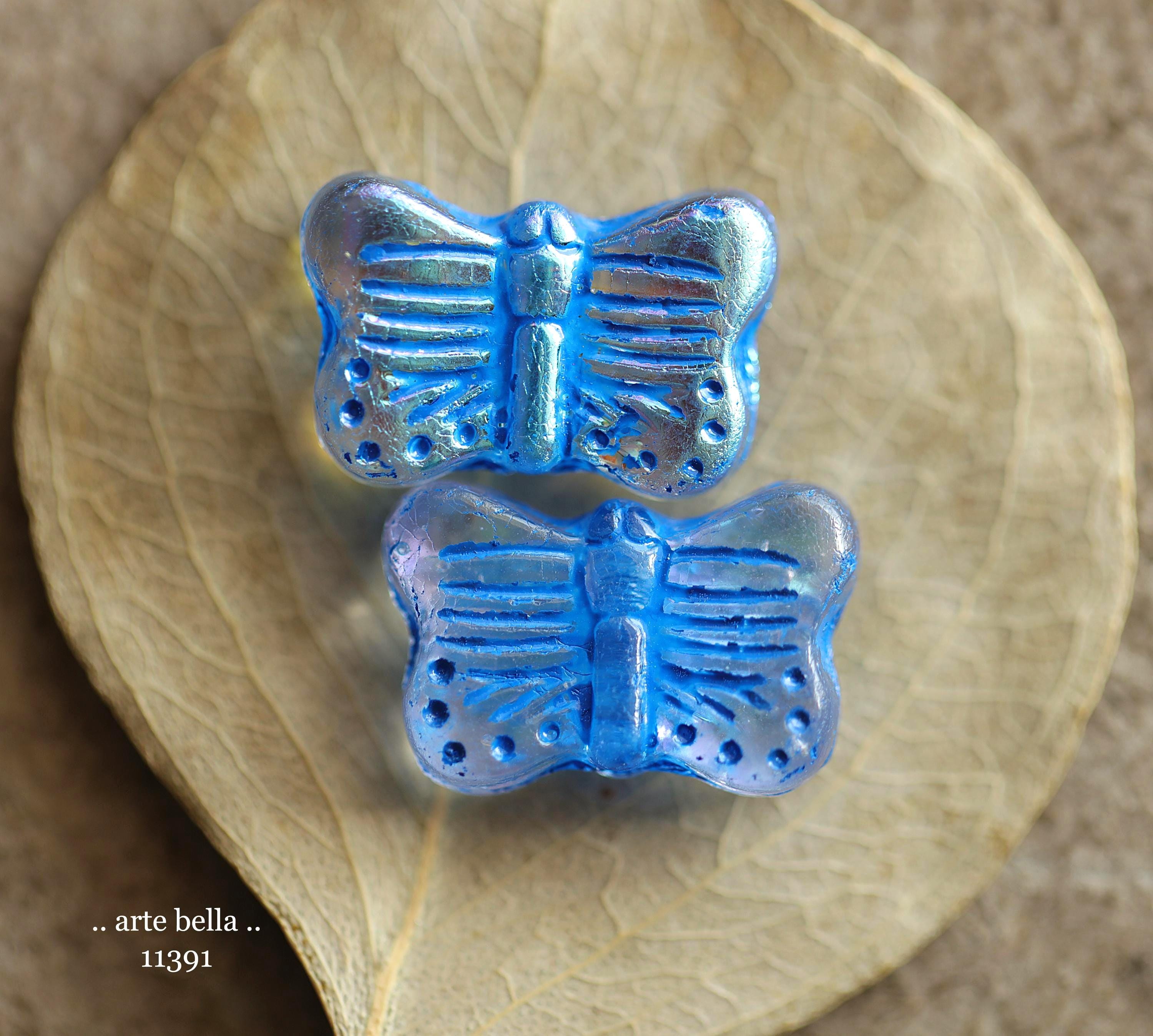 New .. MYSTIC MORPHO FLUTTER Mix .. 10 Premium Czech Glass Butterfly Beads 11x16mm (11391-st) .. jewelry supplies
