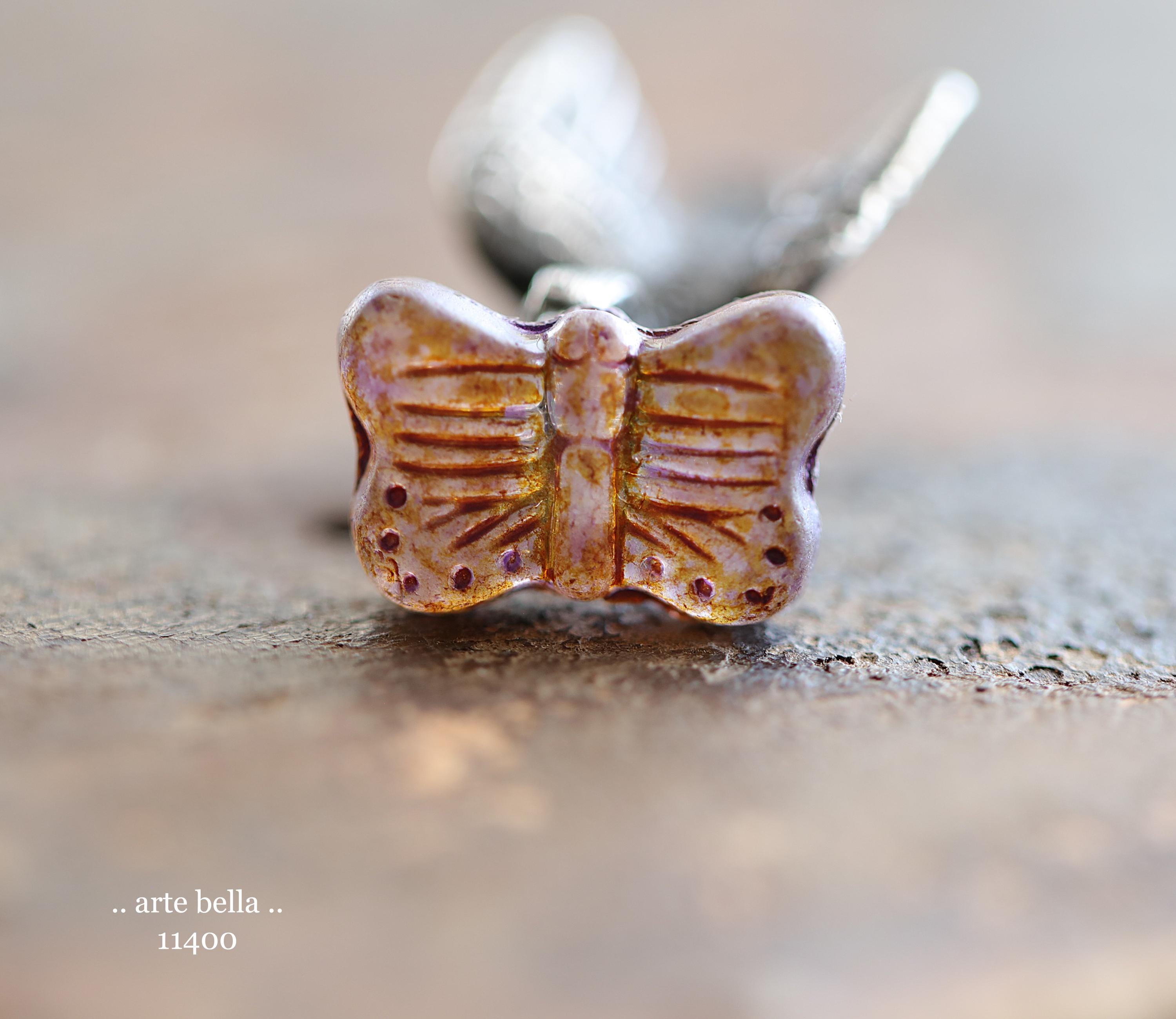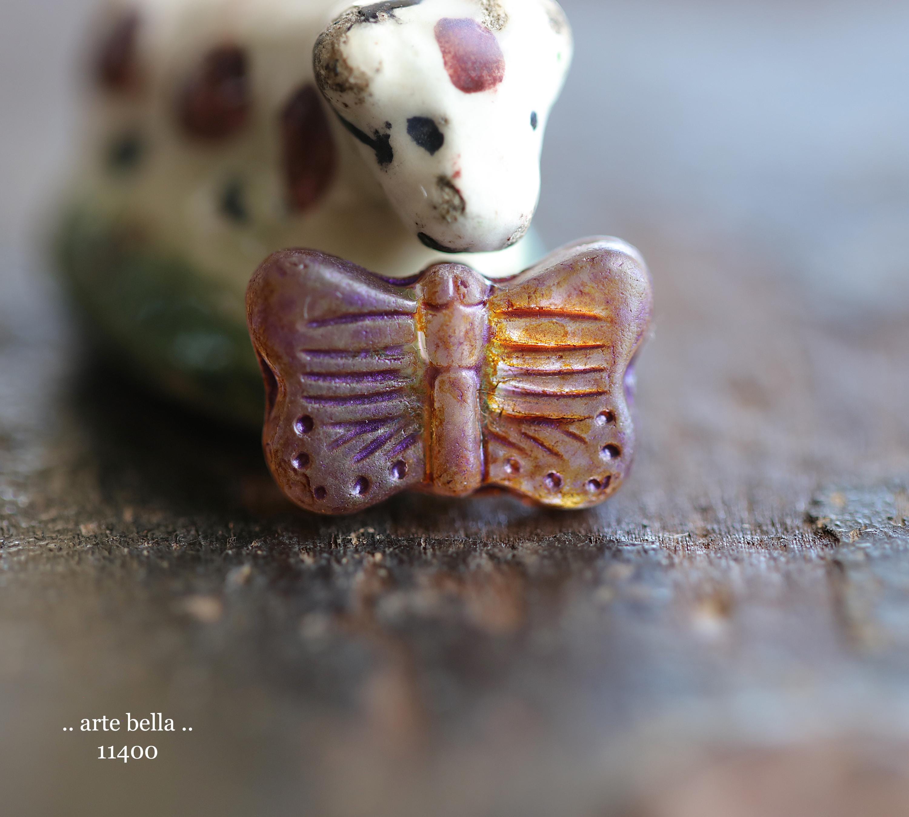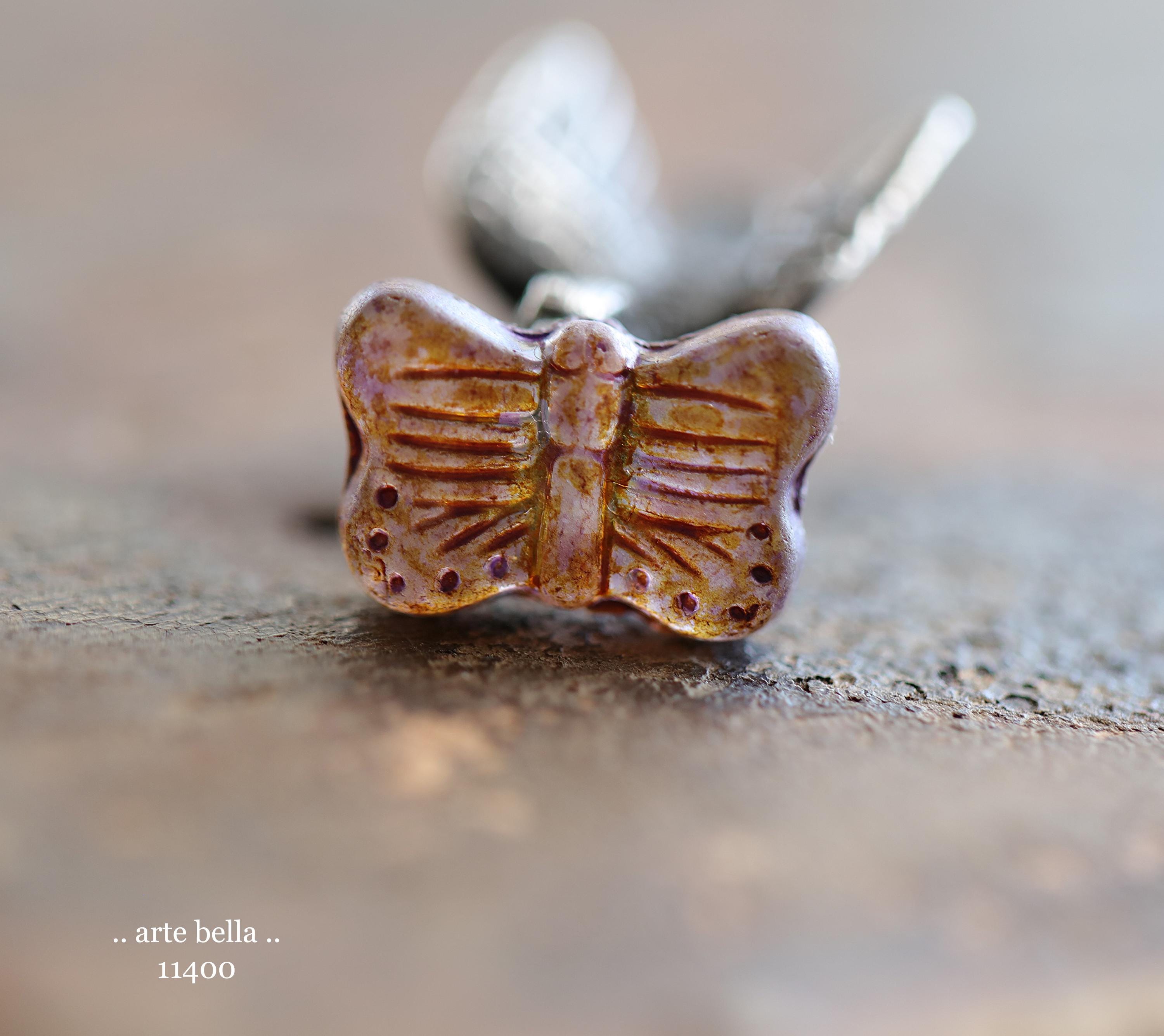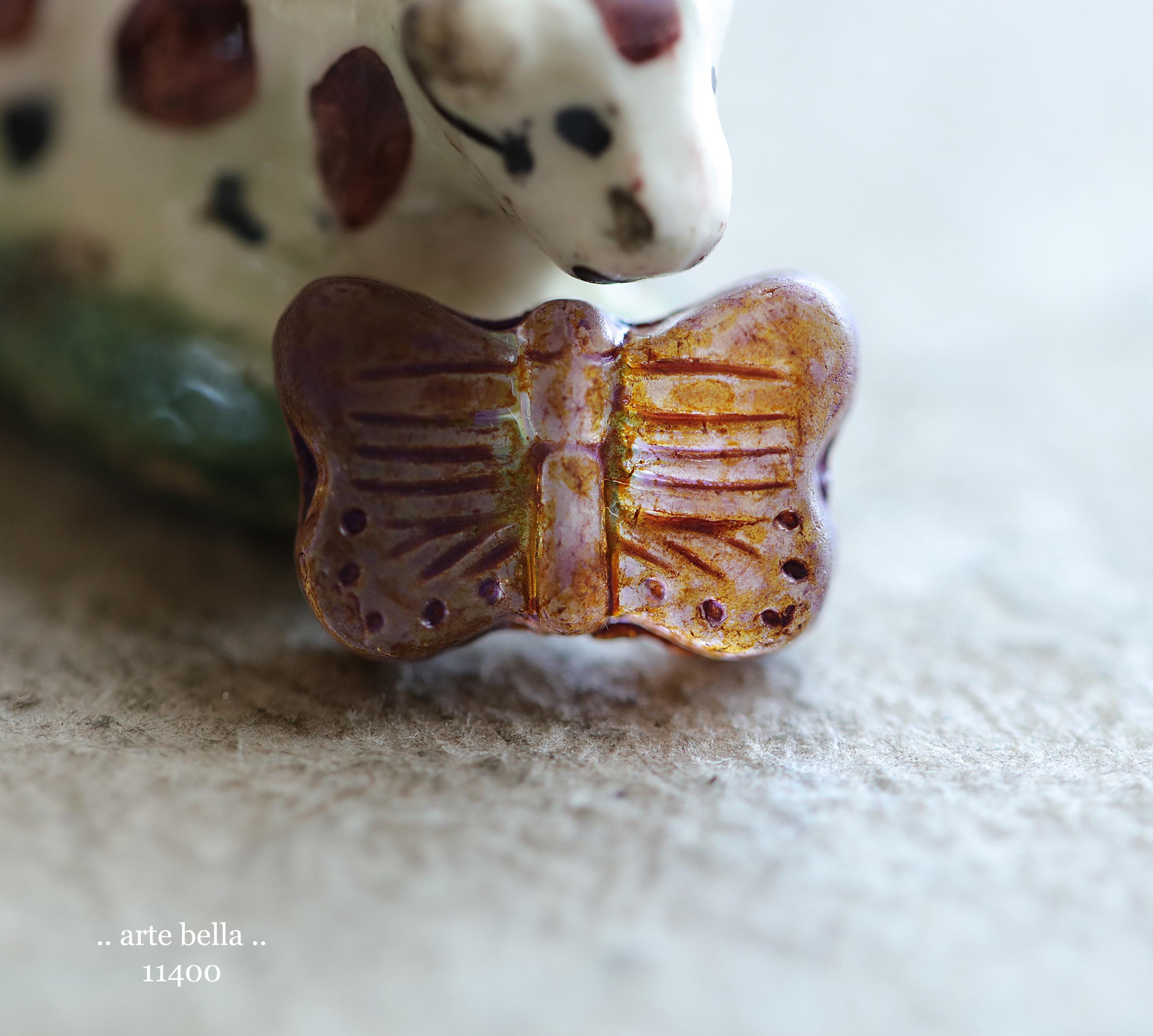 New .. EARTHY AUTUMN FLUTTERS .. 10 Matte Picasso Czech Glass Butterfly Beads 11x16mm (11400-st) .. jewelry supplies