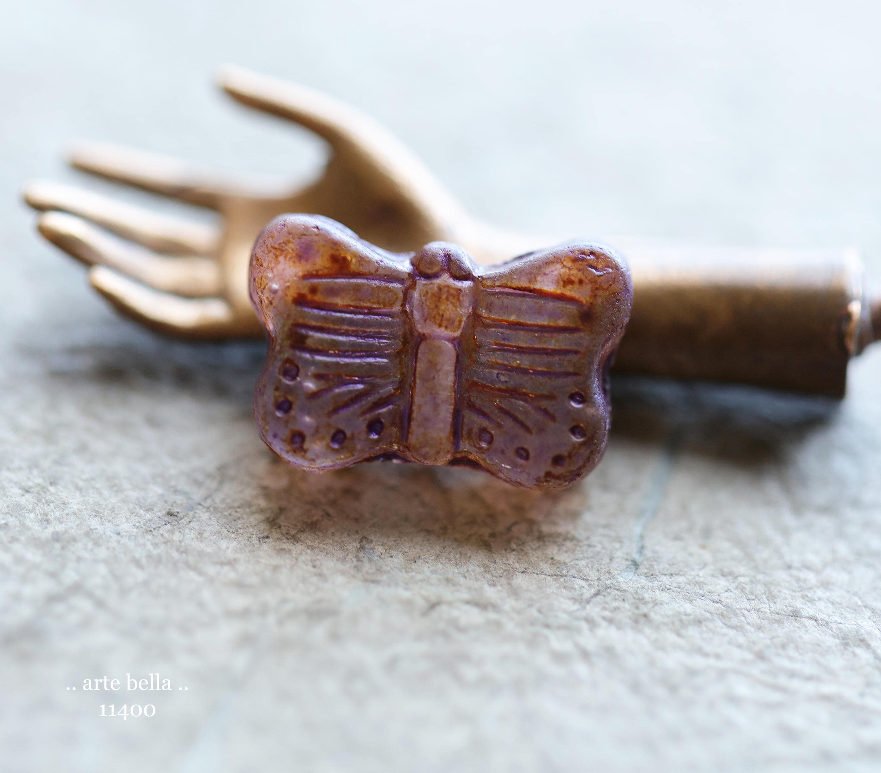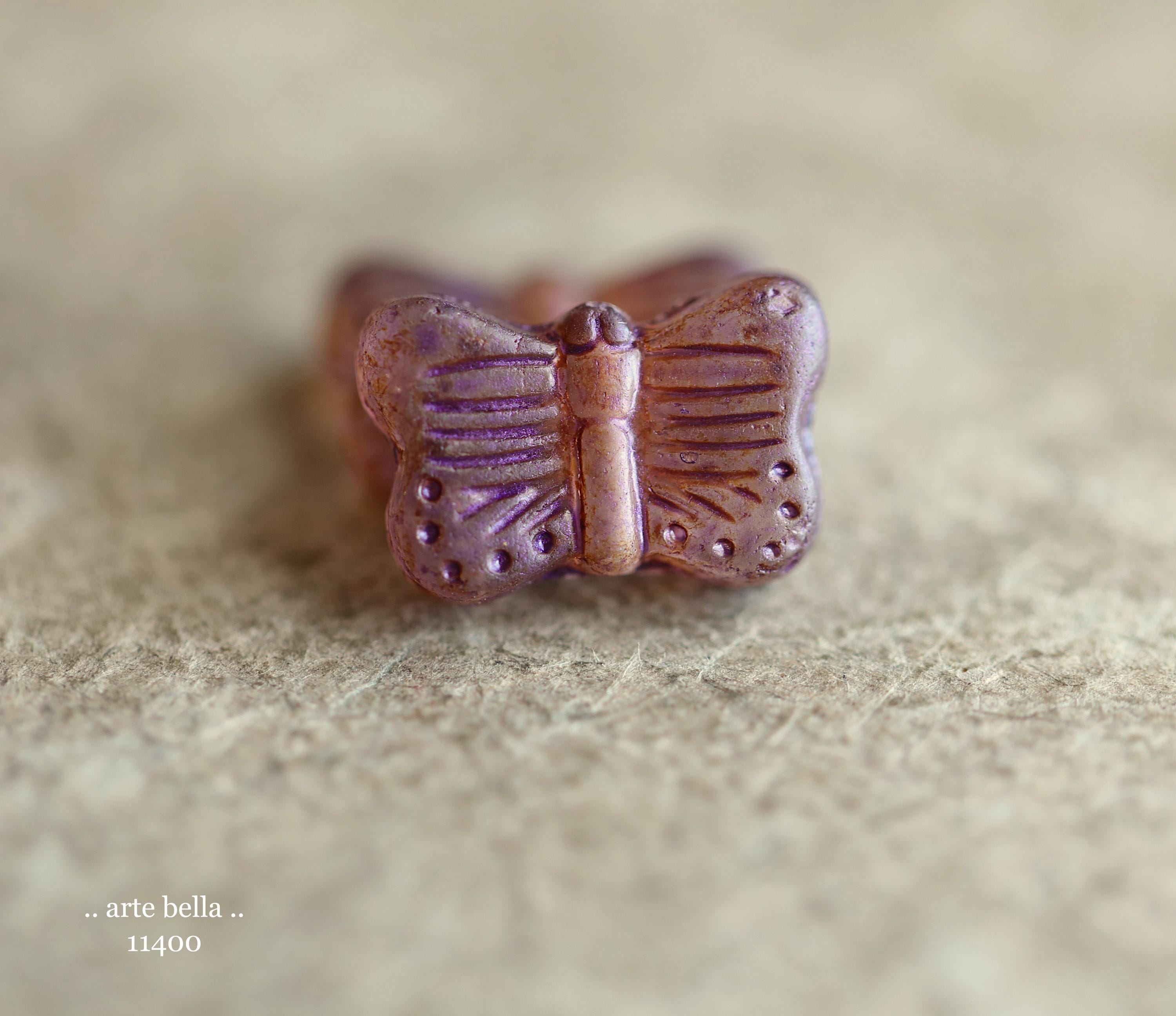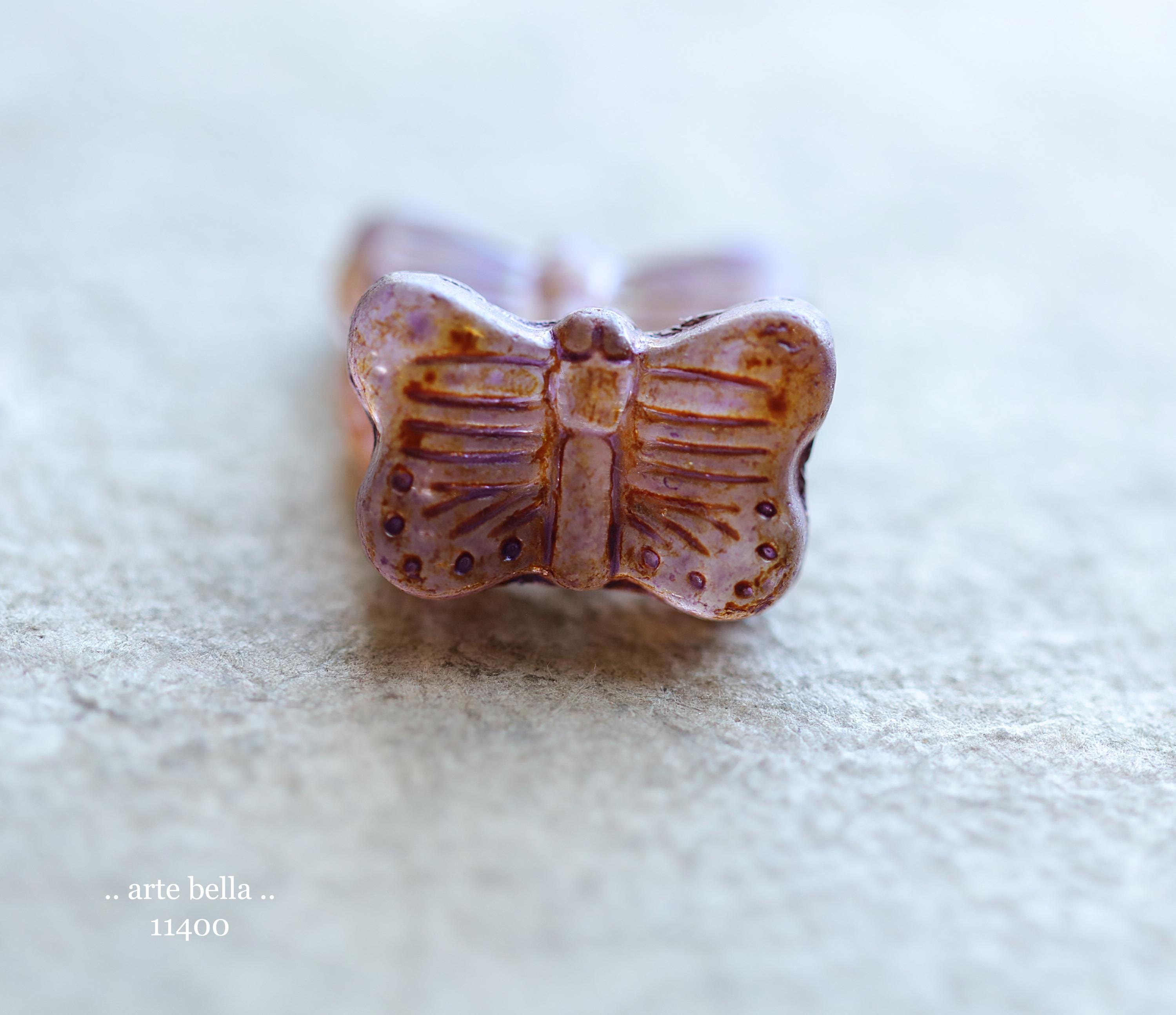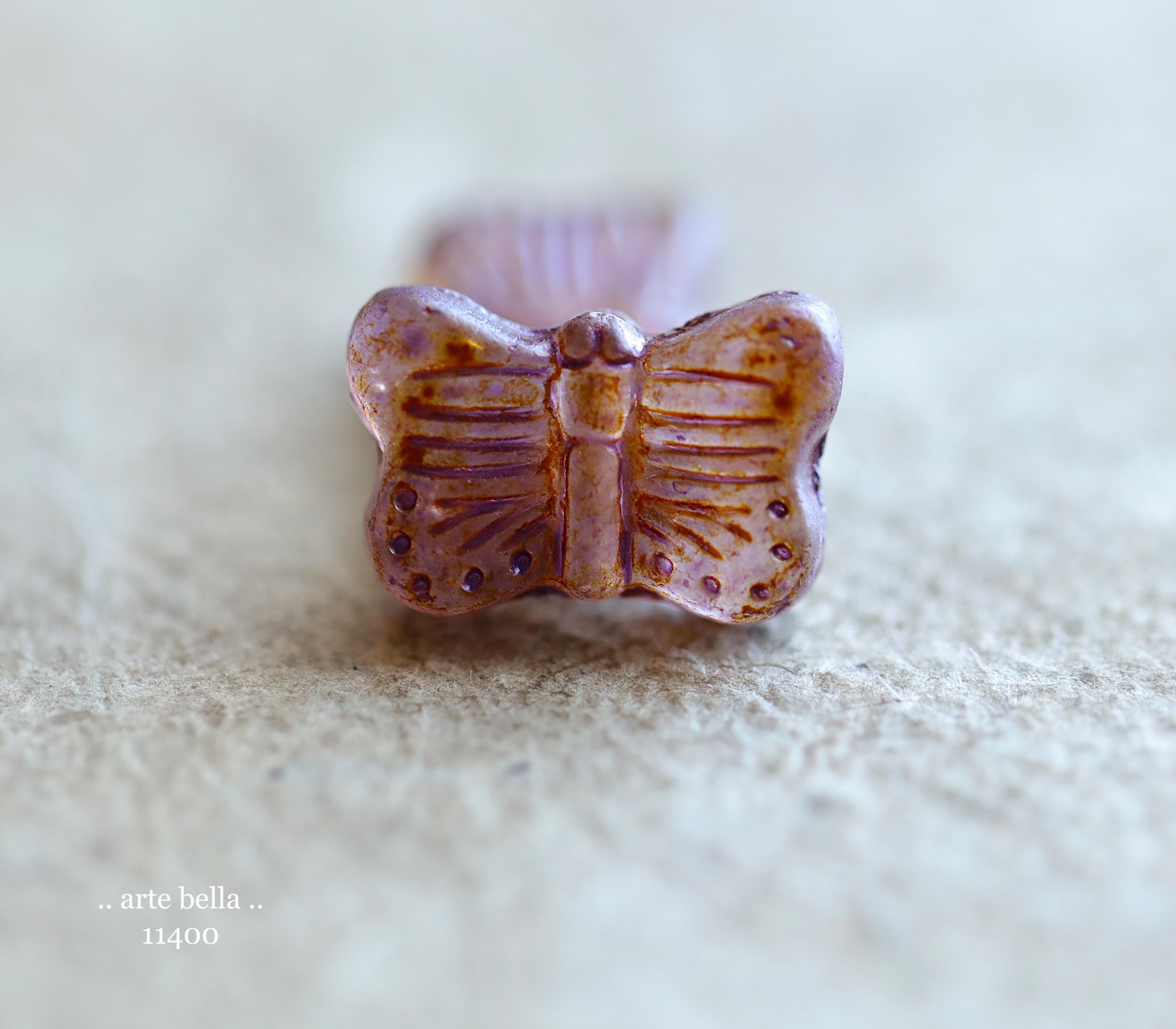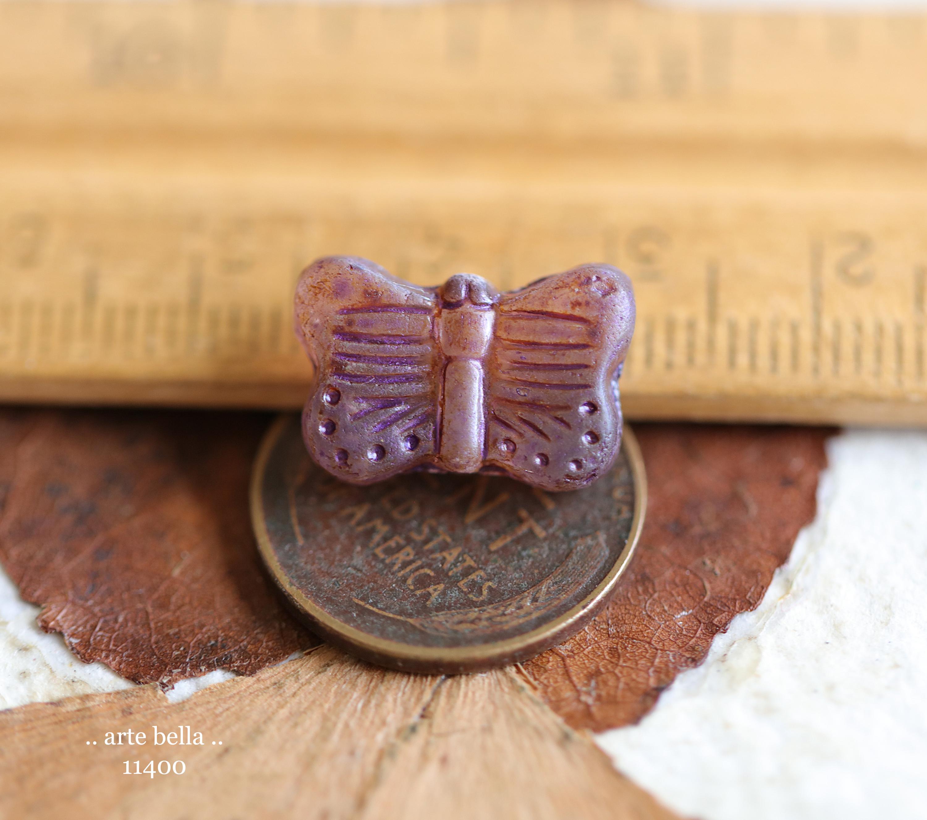 New .. EARTHY AUTUMN FLUTTERS .. 10 Matte Picasso Czech Glass Butterfly Beads 11x16mm (11400-st) .. jewelry supplies