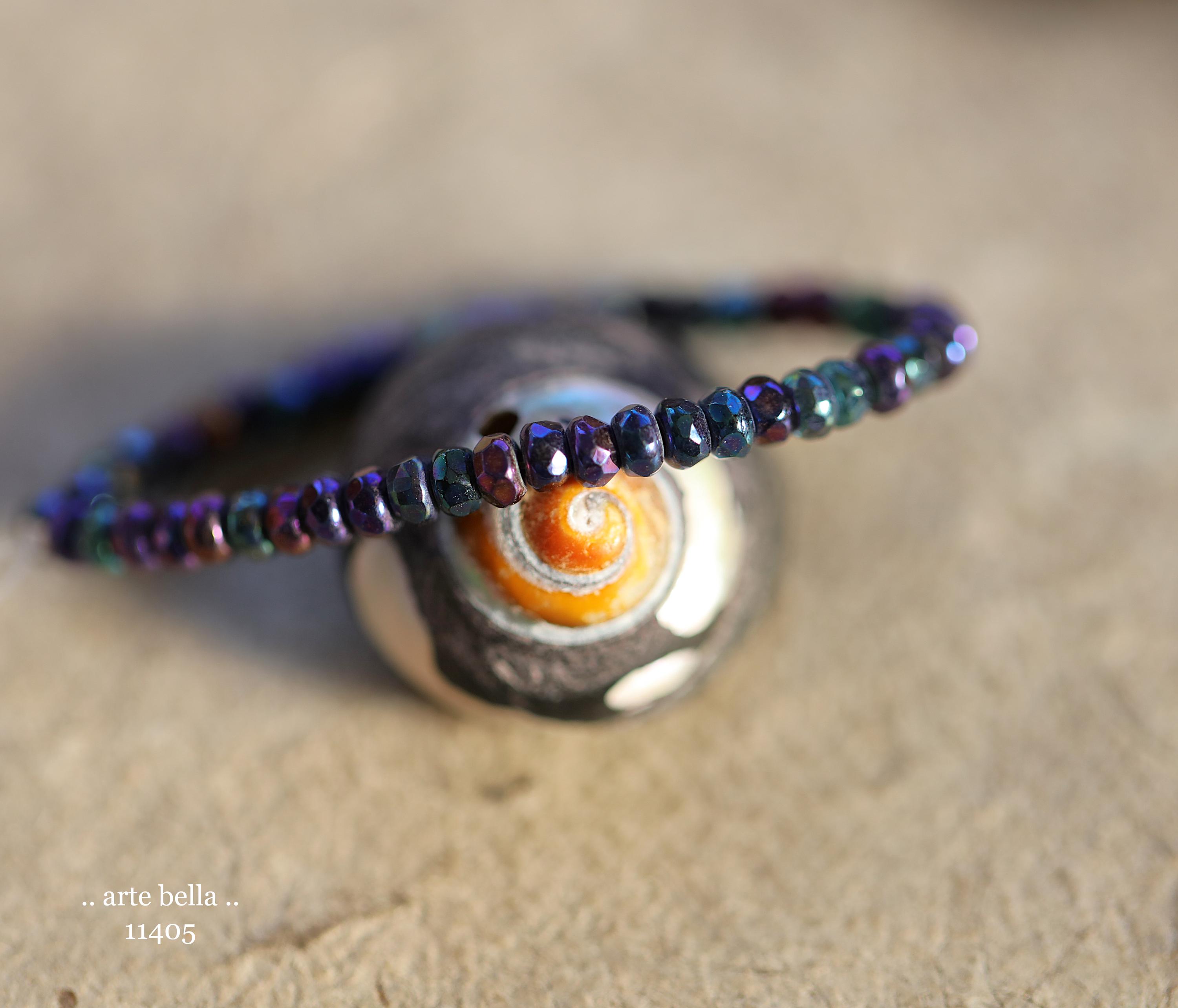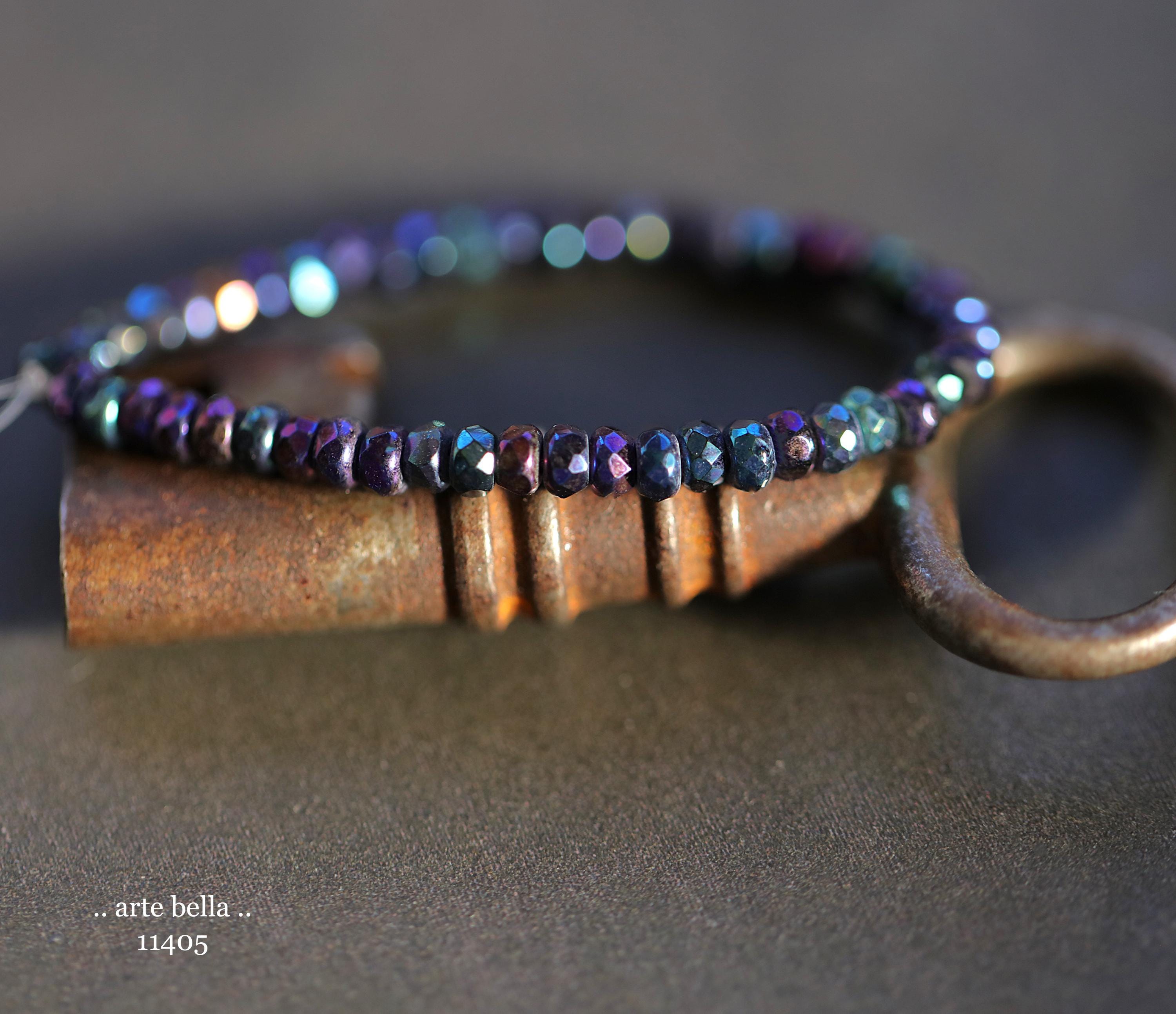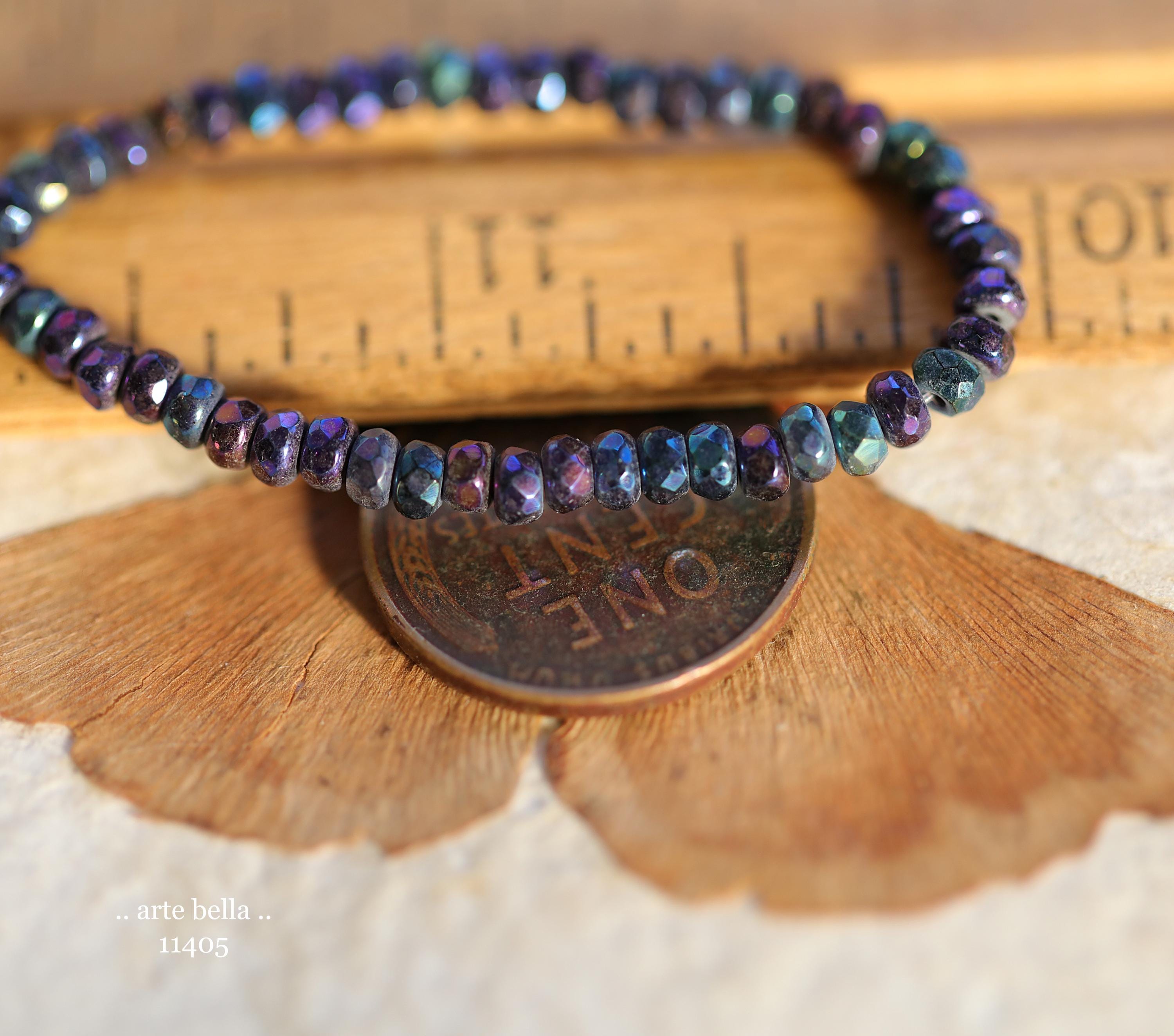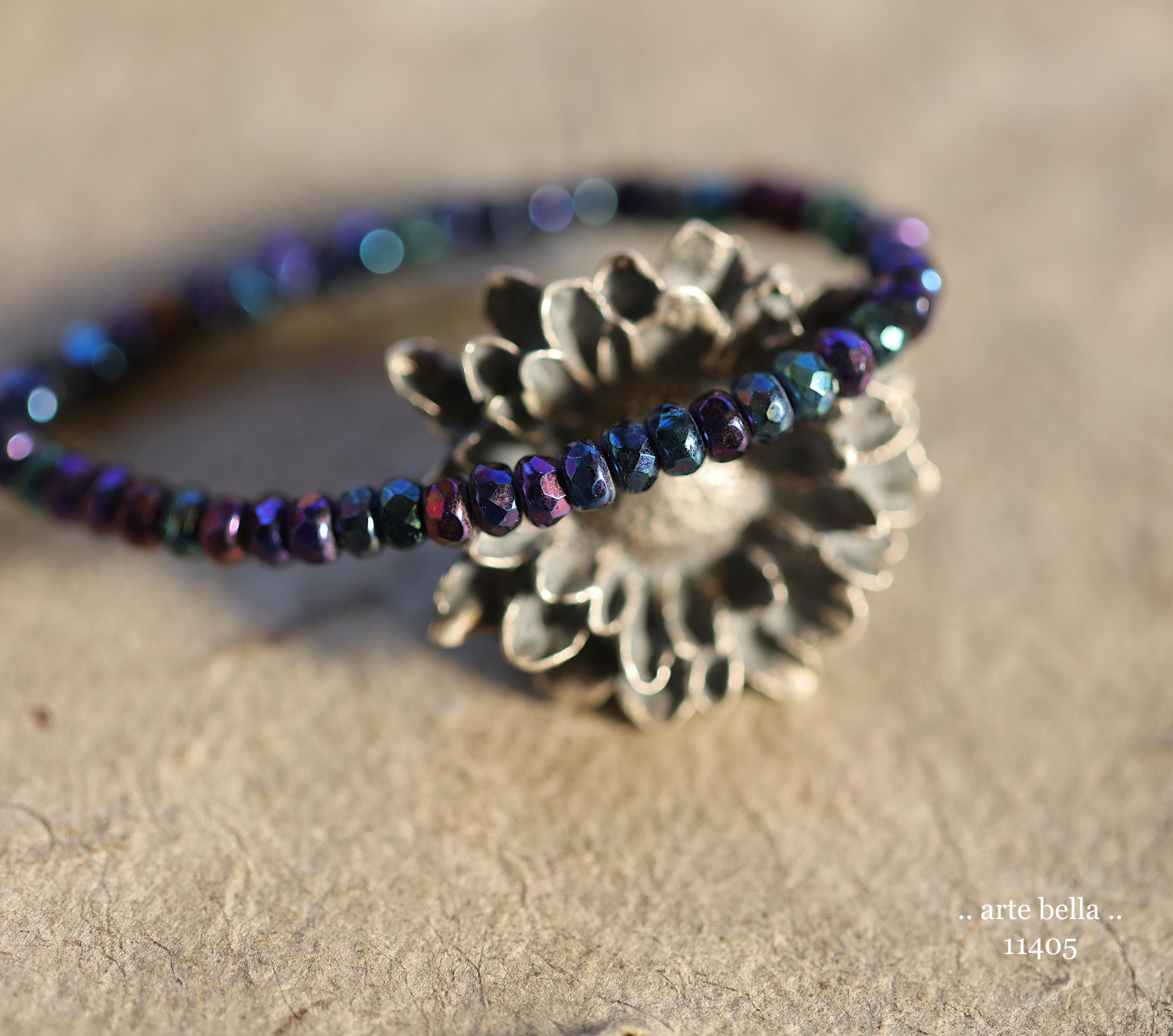 Tiny micro spacers in opaque glass with a mix of purple, blue, green, bronze iris metallic finish. Super crisp gemstone cut facets give these lots of sparkle. Great for spacer beads!