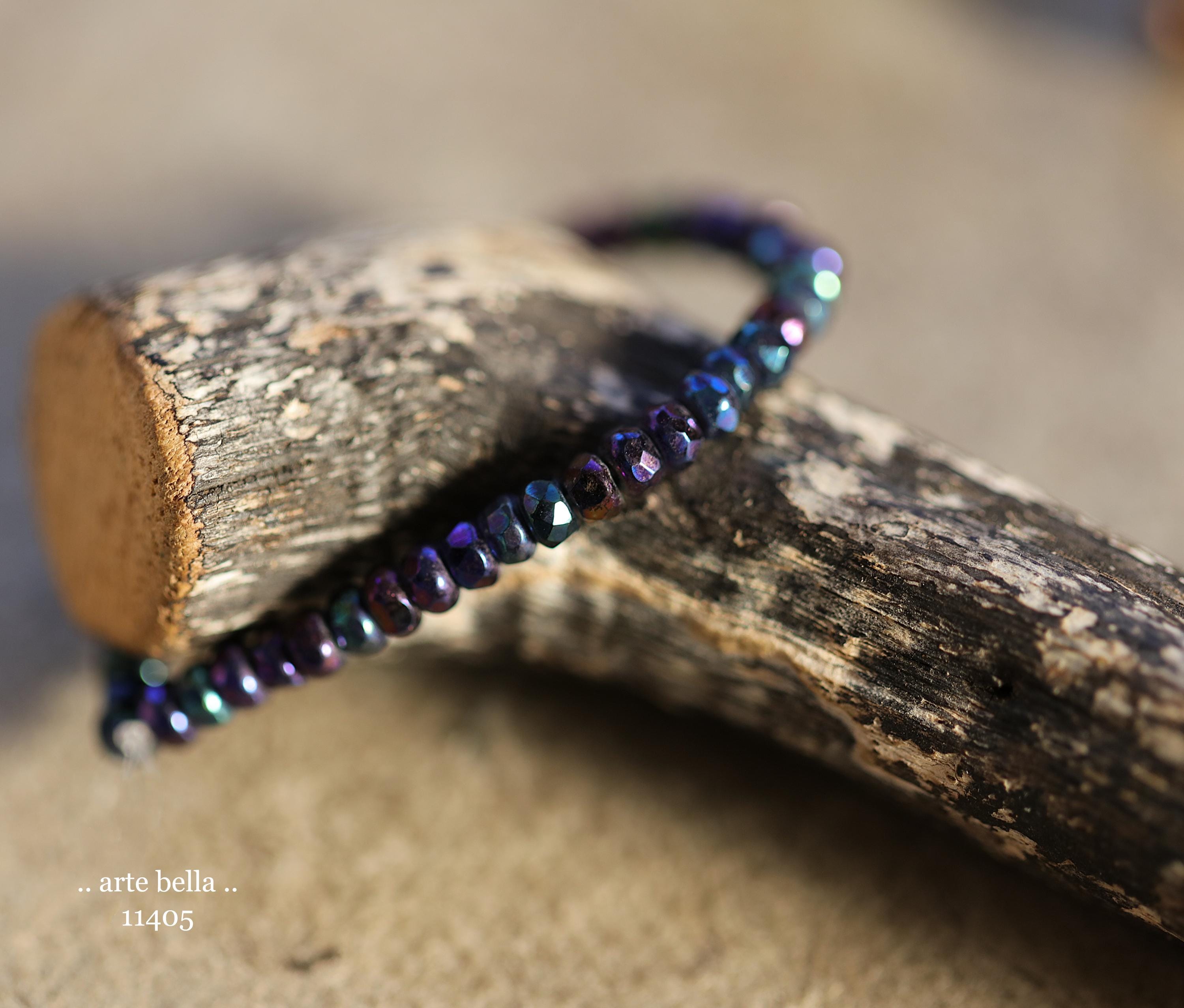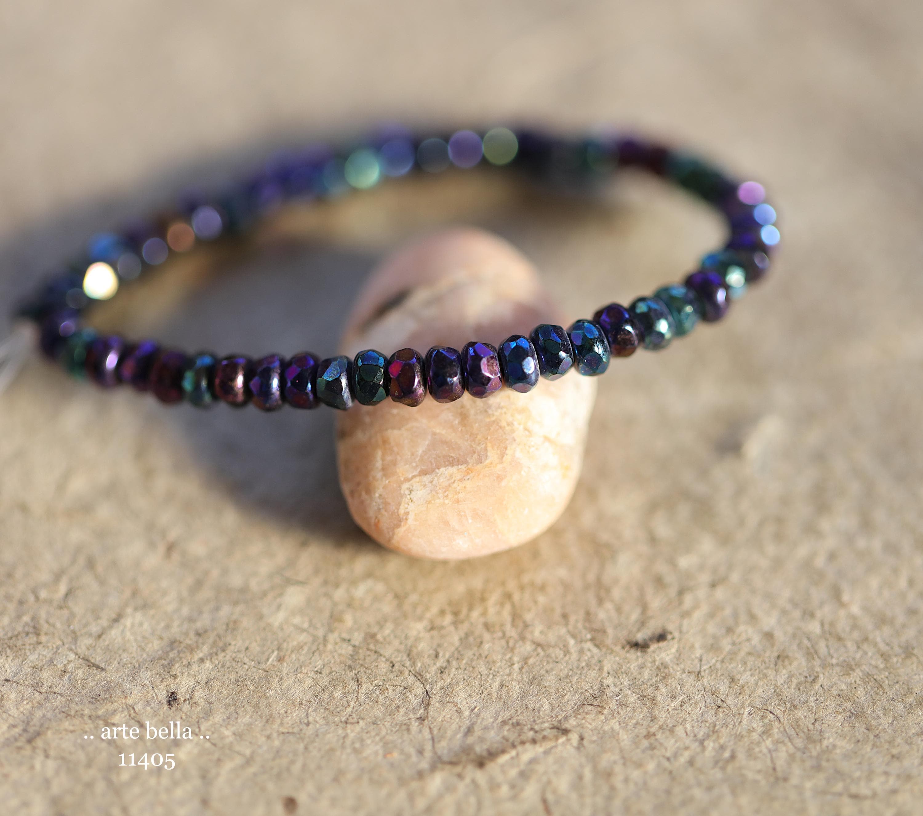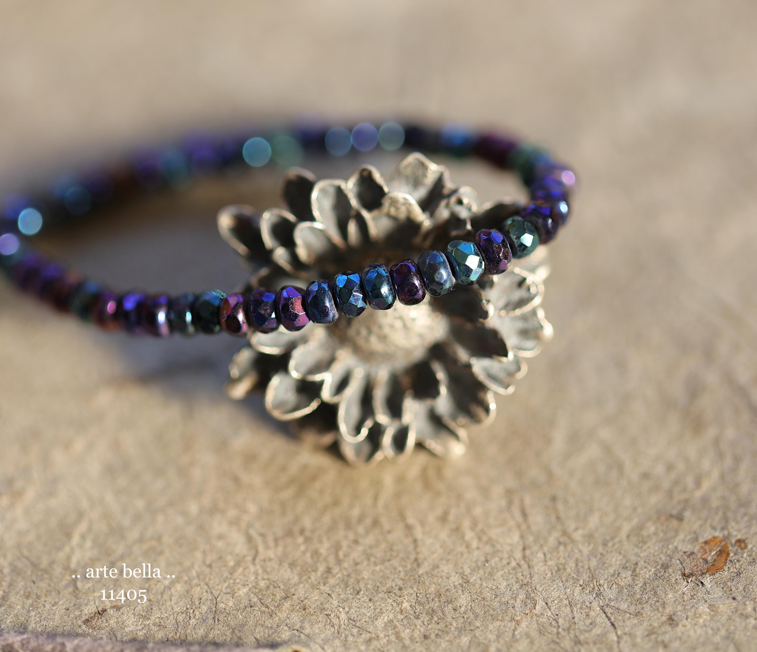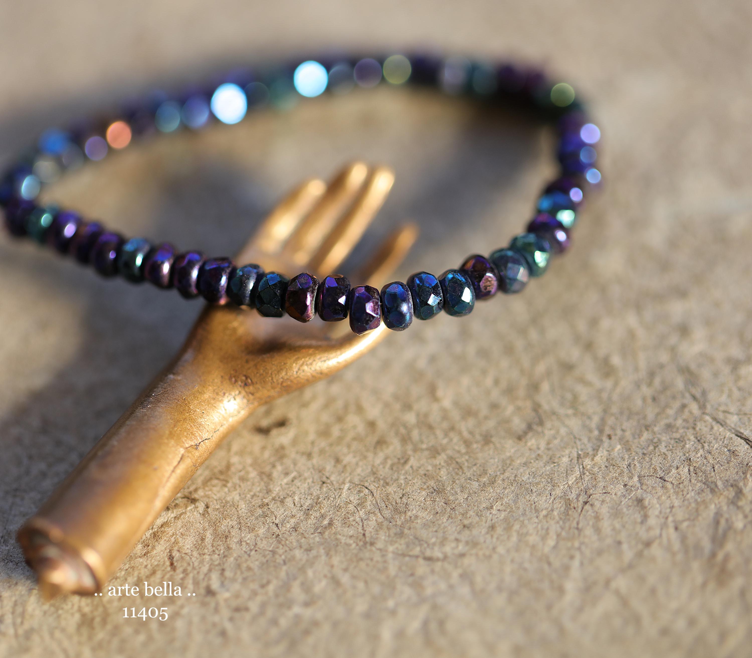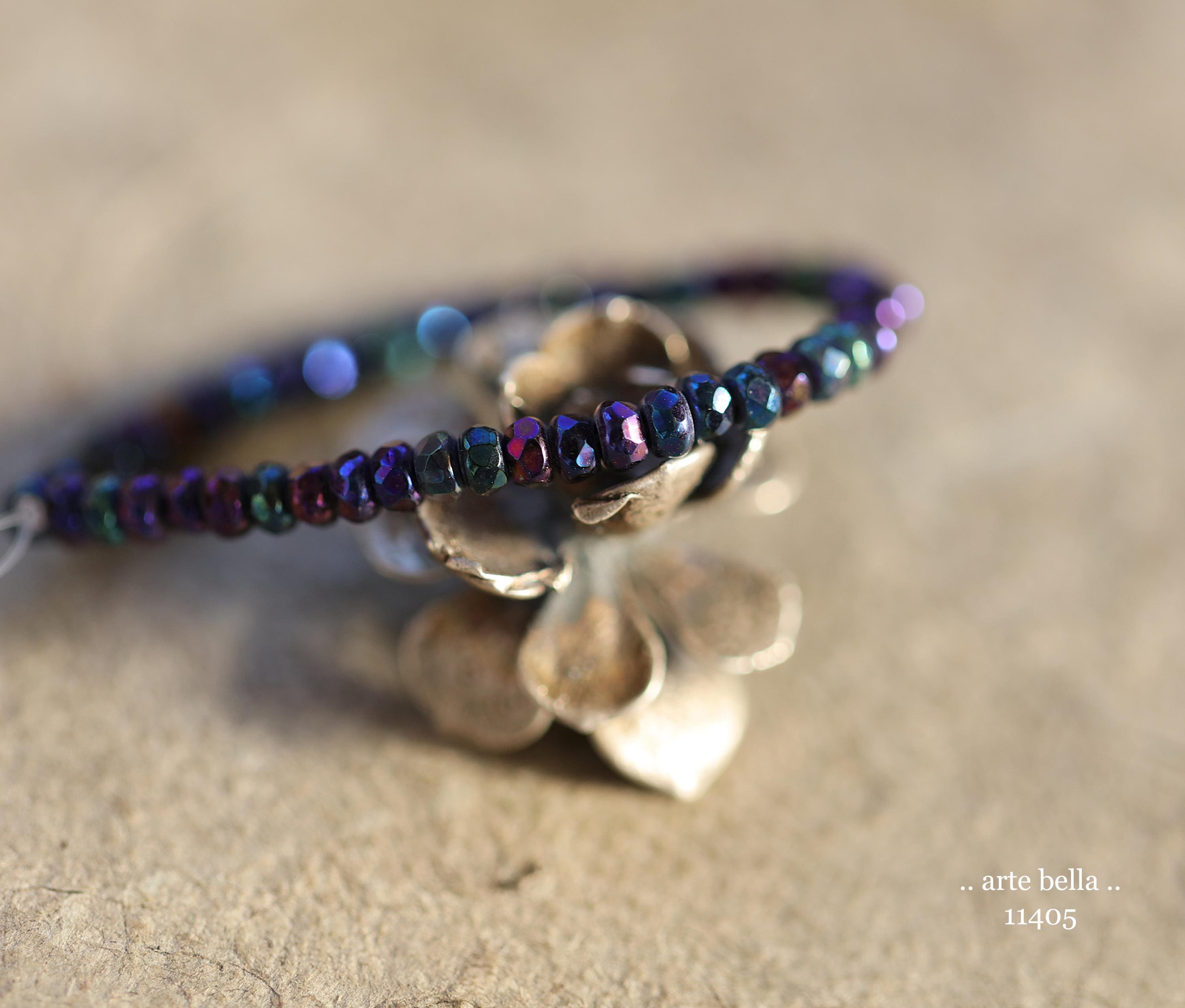 Tiny micro spacers in opaque glass with a mix of purple, blue, green, bronze iris metallic finish. Super crisp gemstone cut facets give these lots of sparkle. Great for spacer beads!