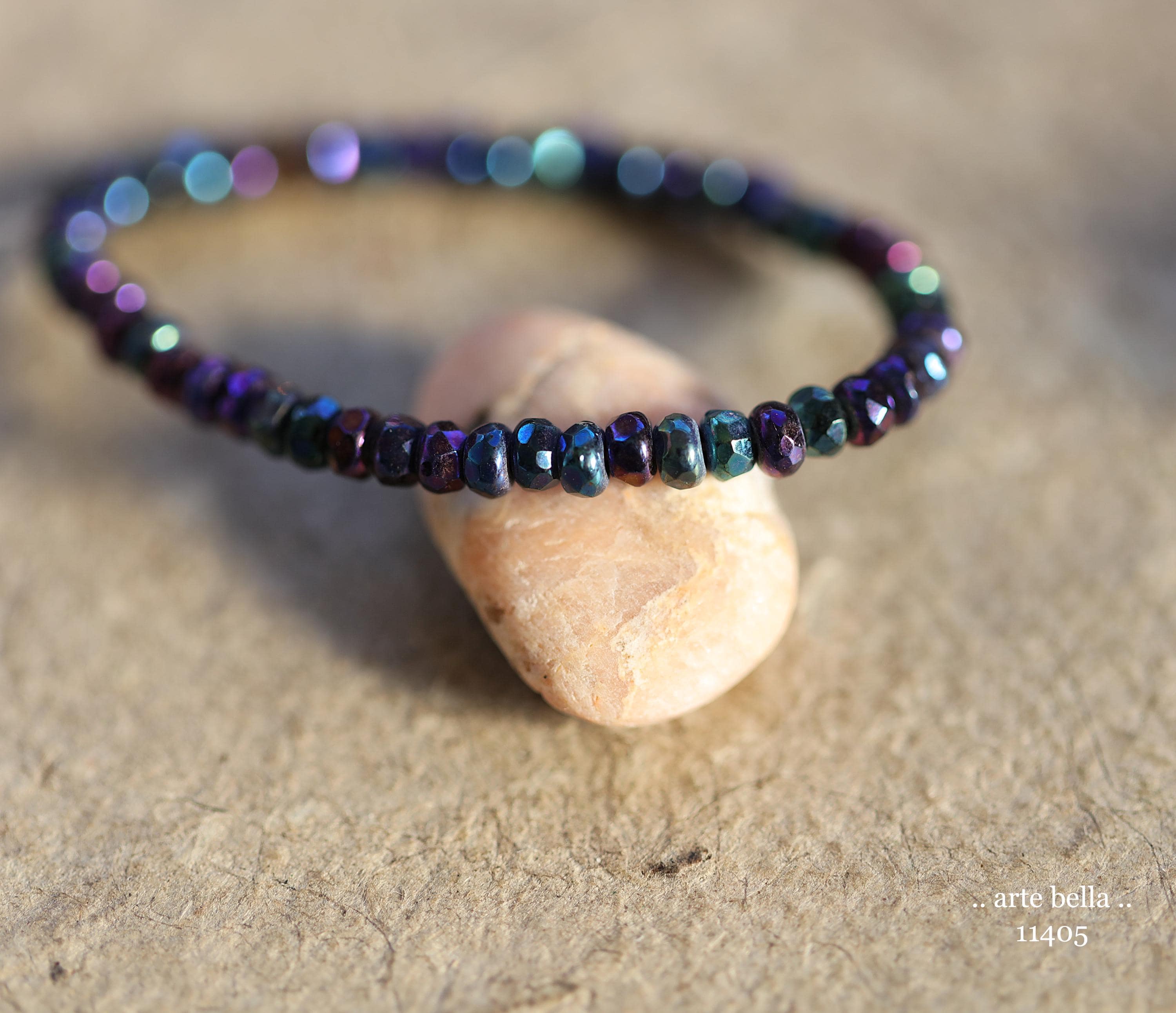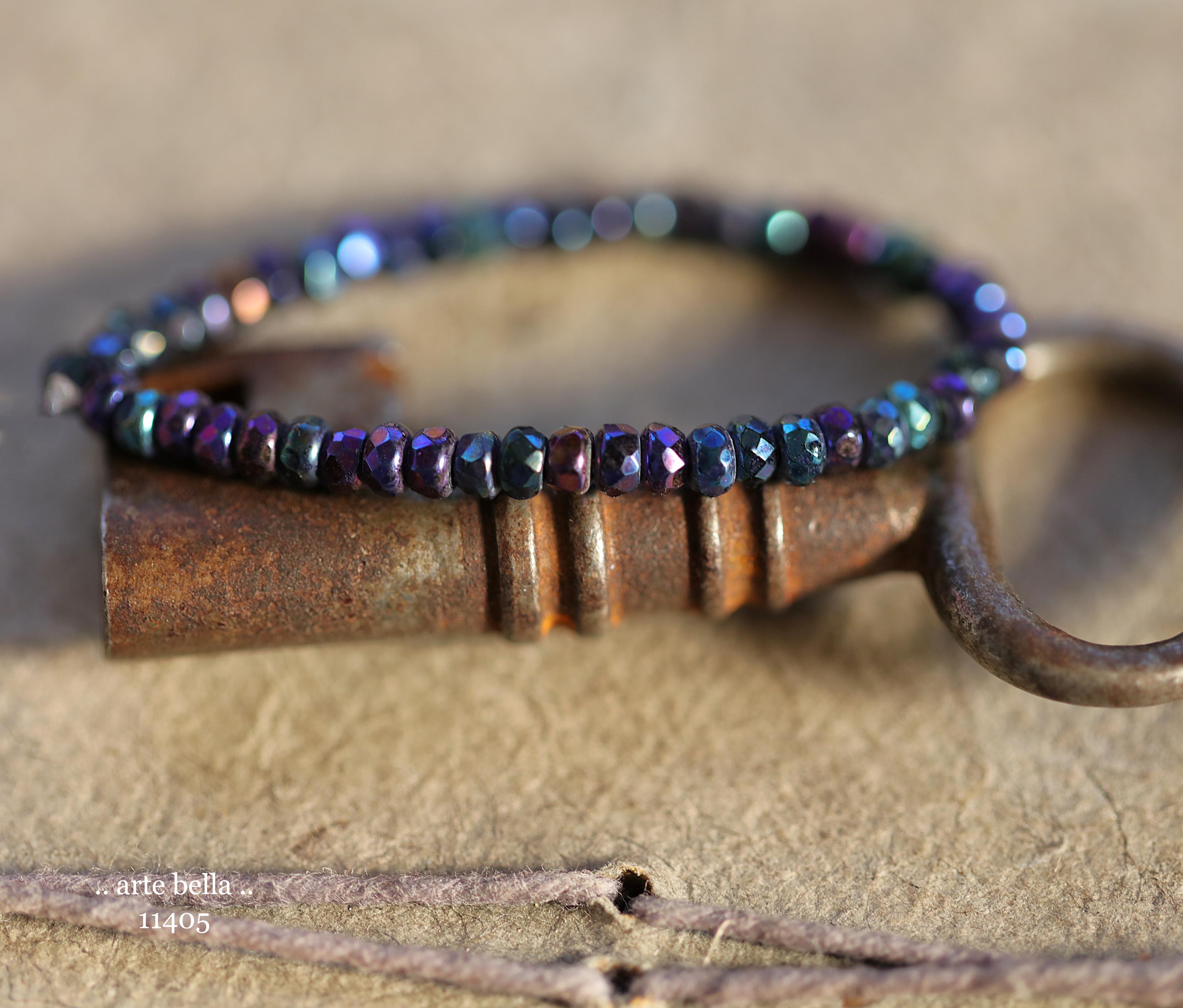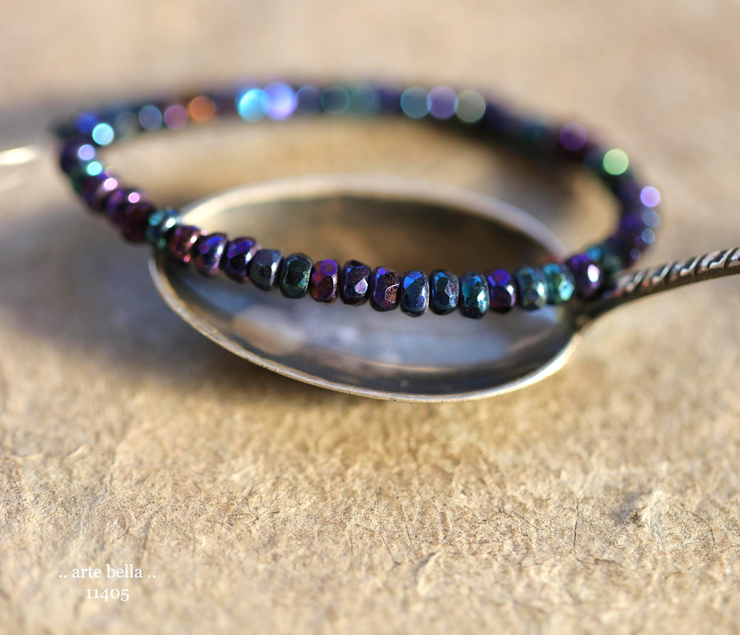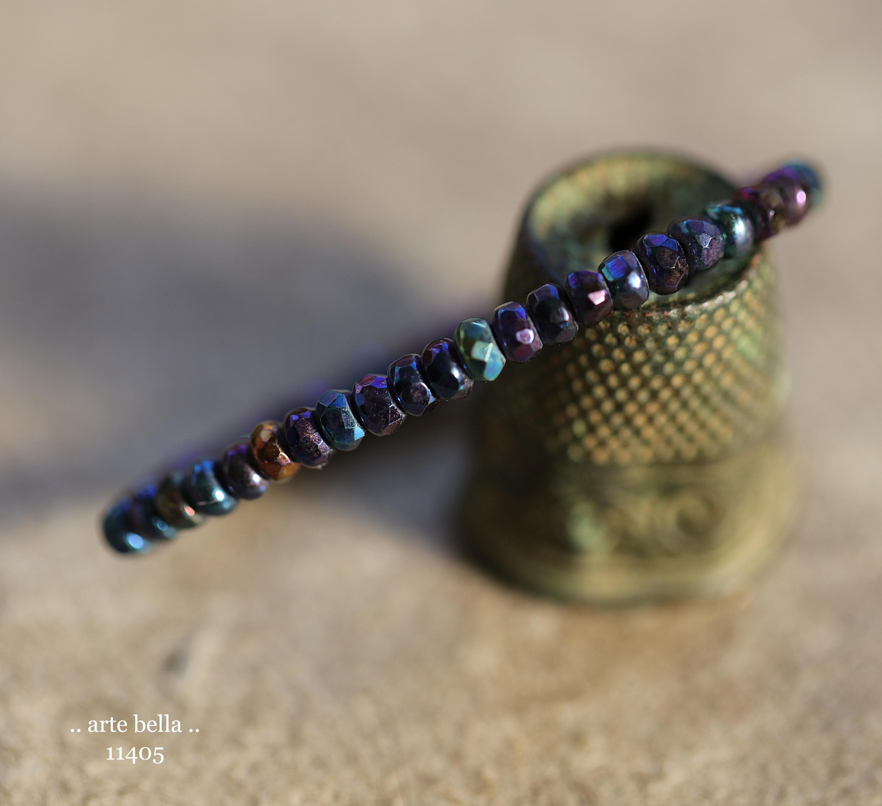 Tiny micro spacers in opaque glass with a mix of purple, blue, green, bronze iris metallic finish. Super crisp gemstone cut facets give these lots of sparkle. Great for spacer beads!