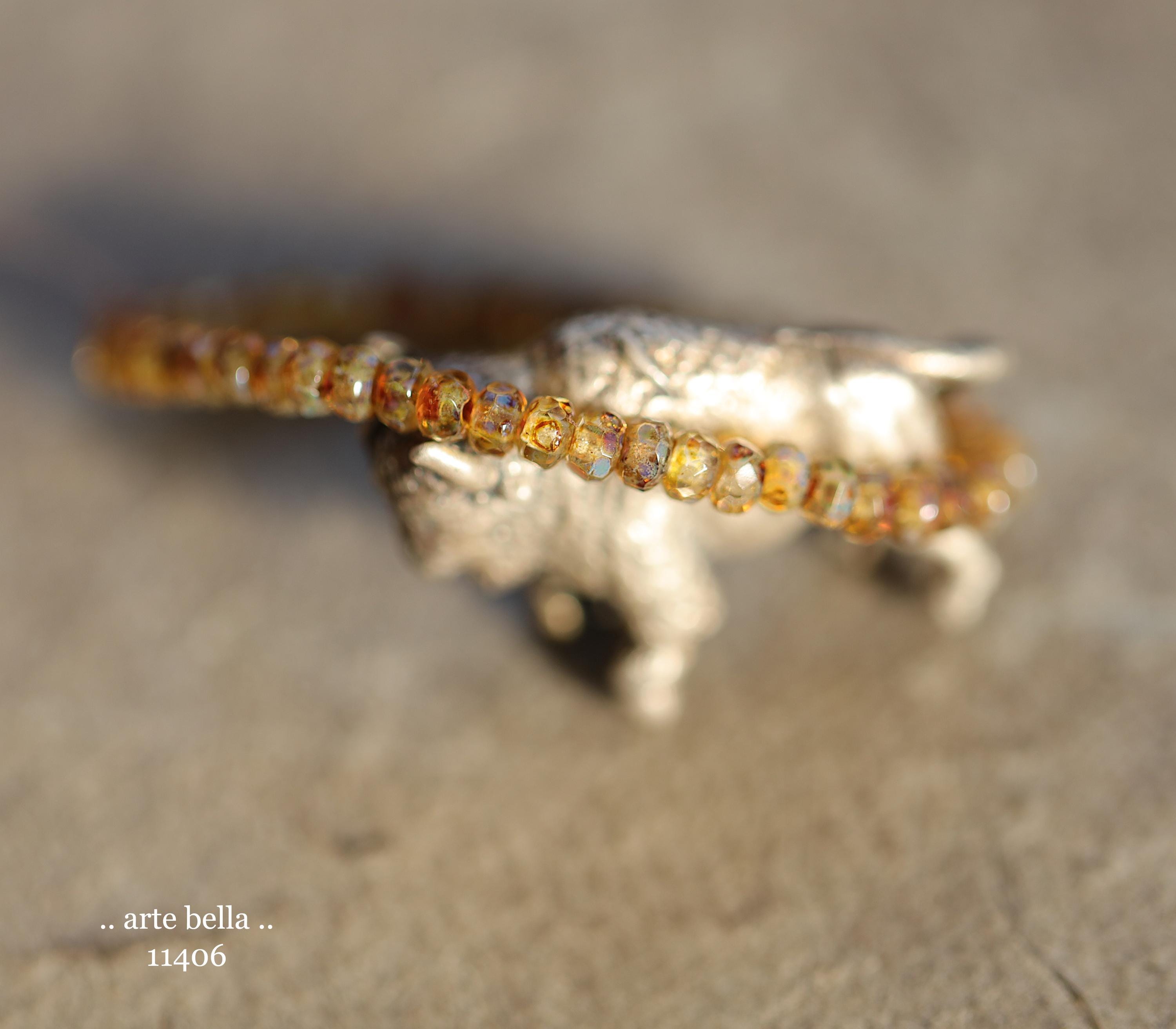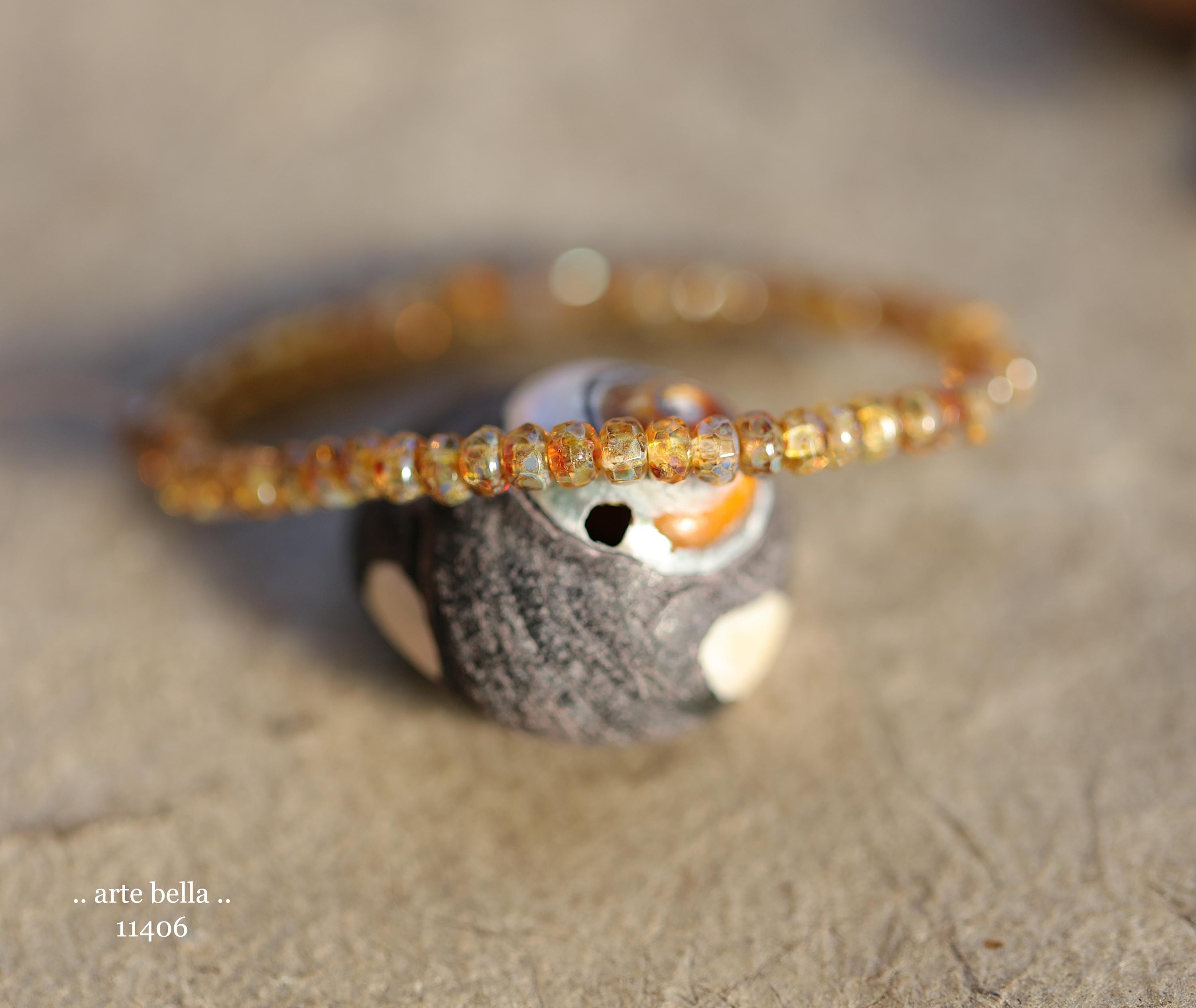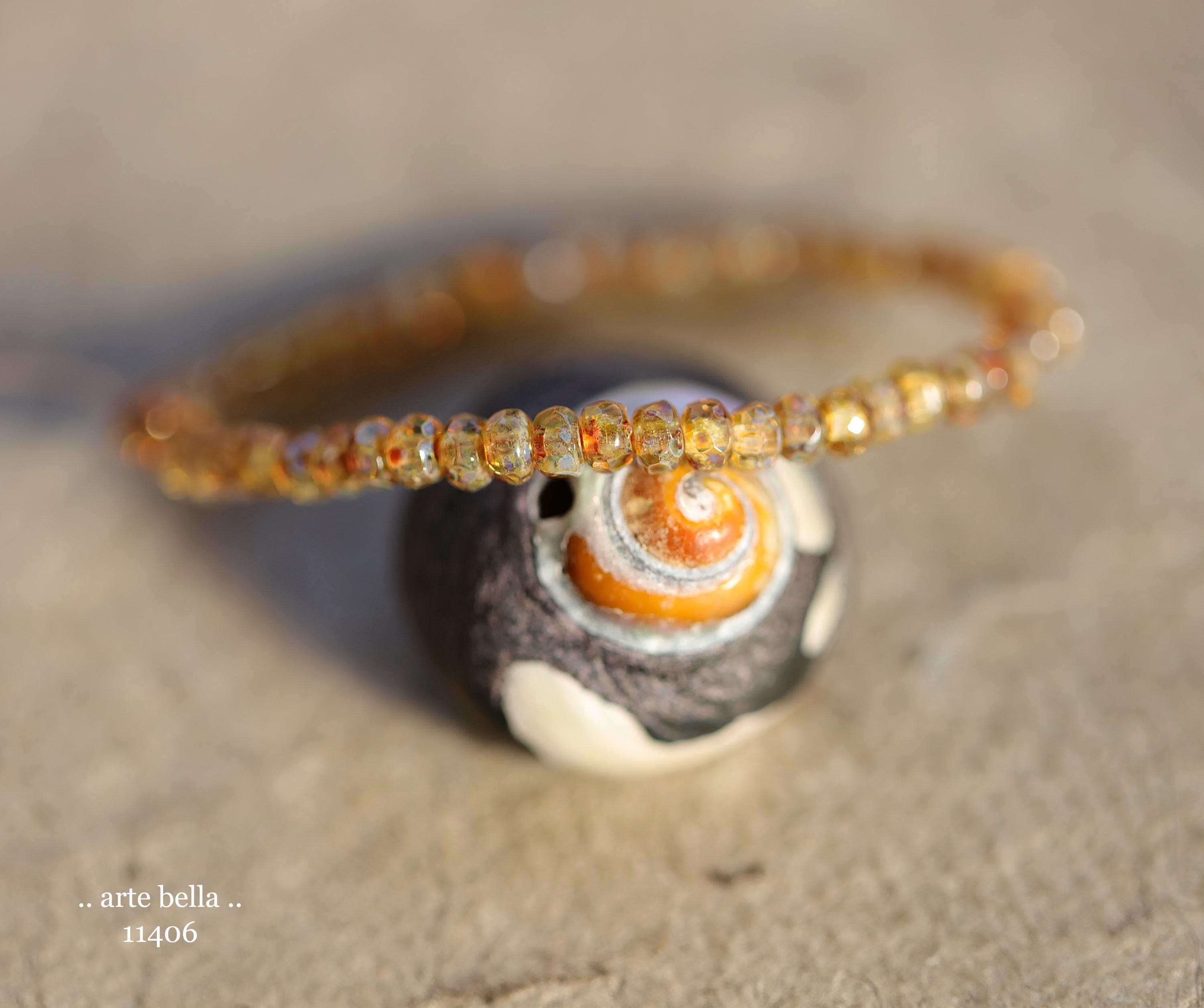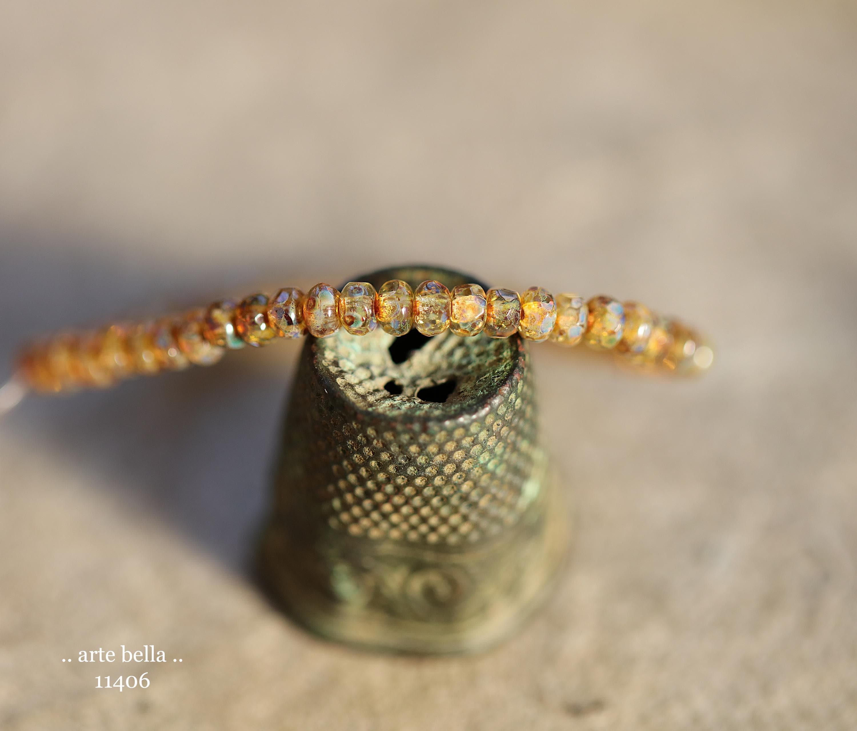 Tiny micro spacers in clear glass with a an golden amber cognac with specks of blue in the gorgeous Picasso finish. Super crisp gemstone cut facets give these lots of sparkle. Great for spacer beads!