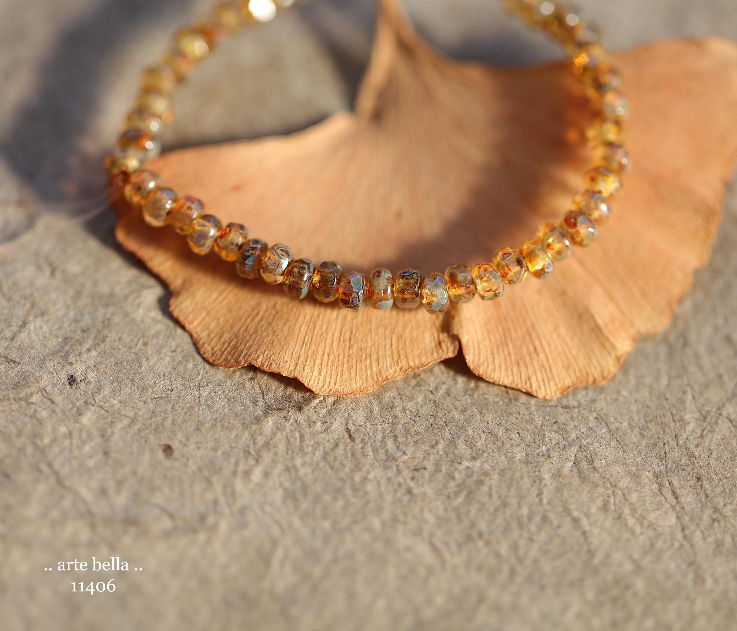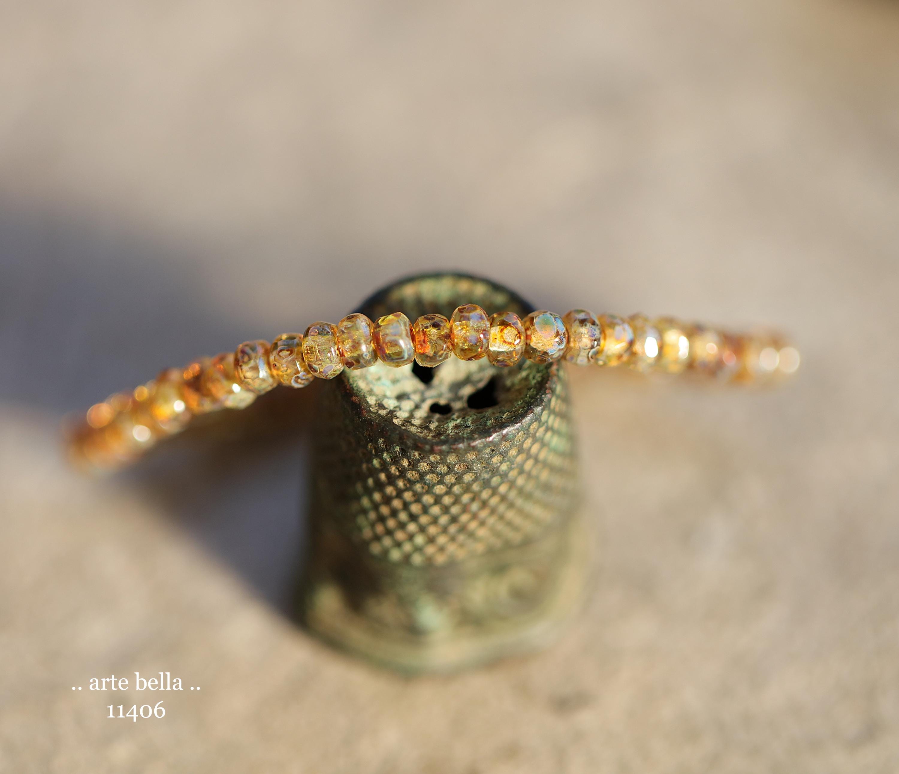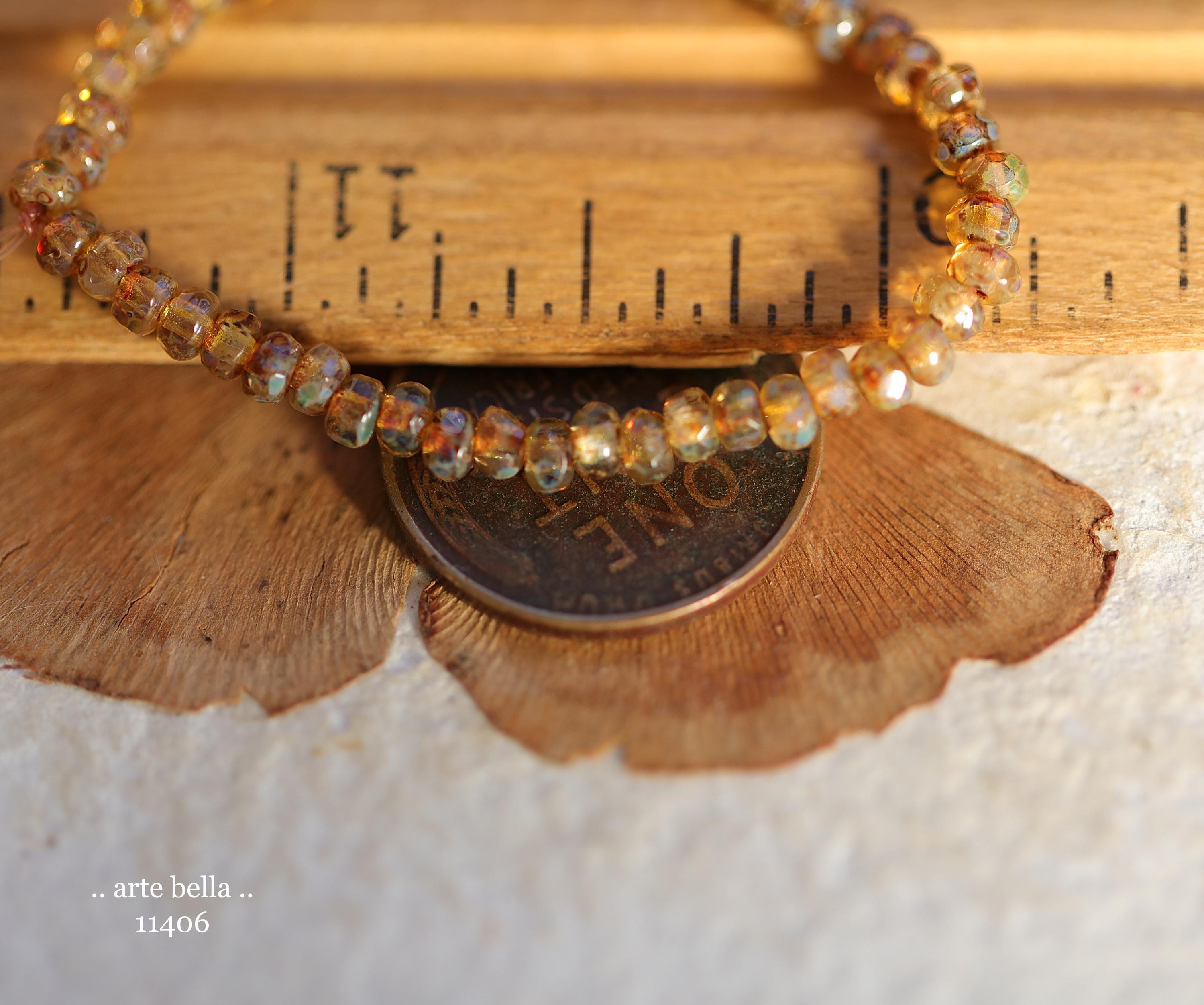 New .. GOLDEN COGNAC BITS .. 50 Picasso Czech Glass Gem Cut Micro Faceted Rondelle Bead Mix 3x2mm (11406-st) .. jewelry supplies