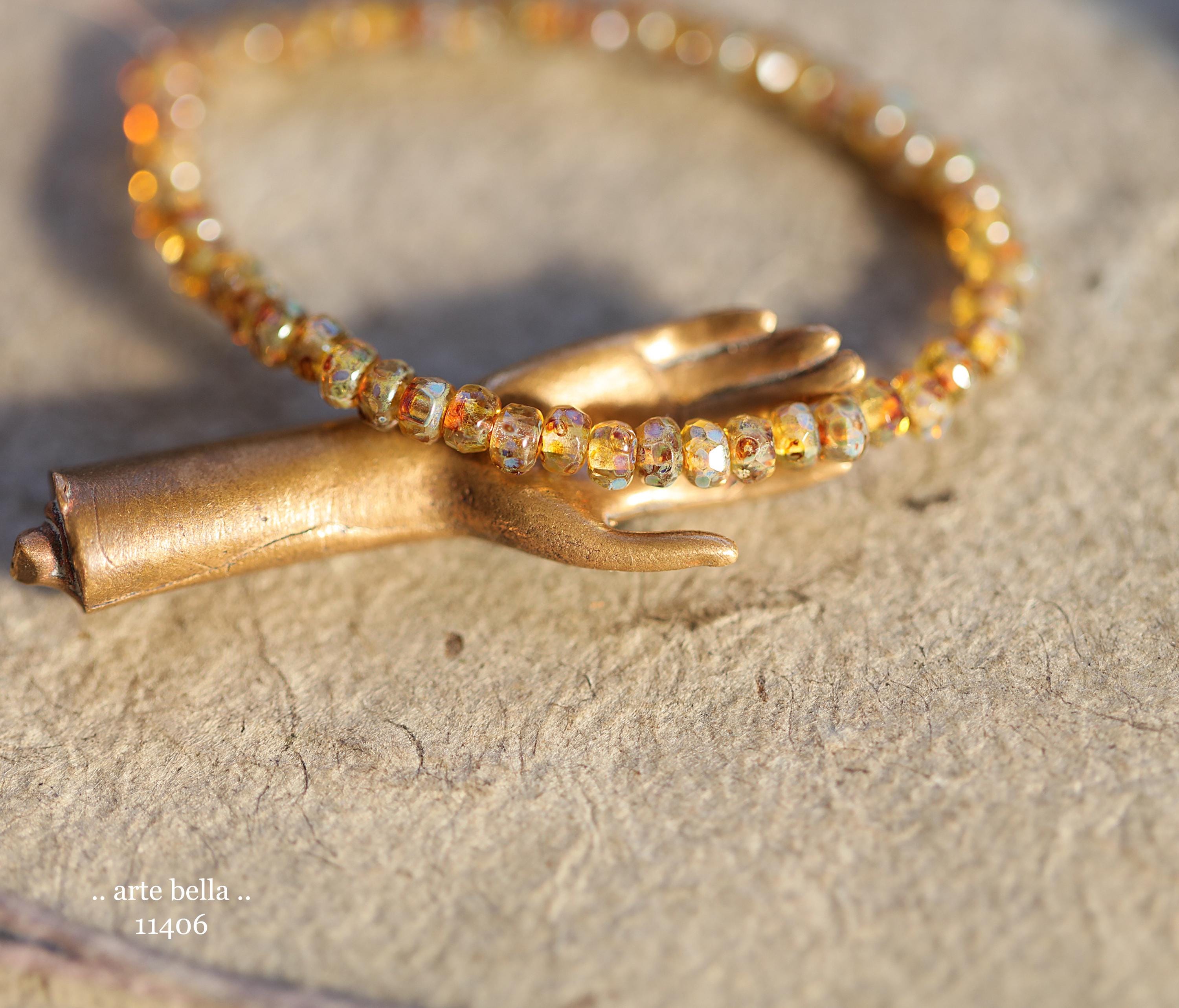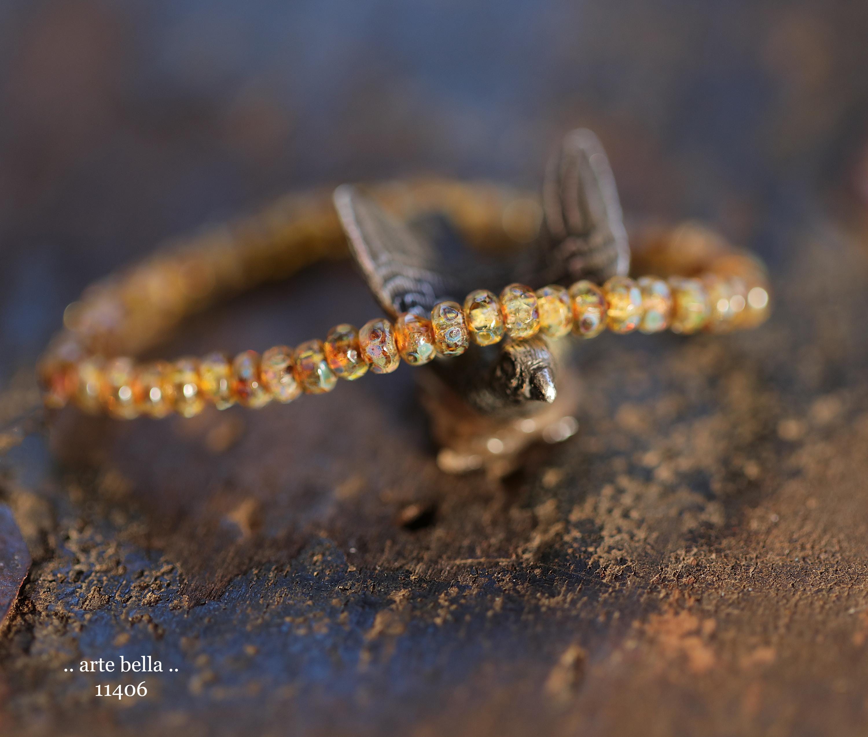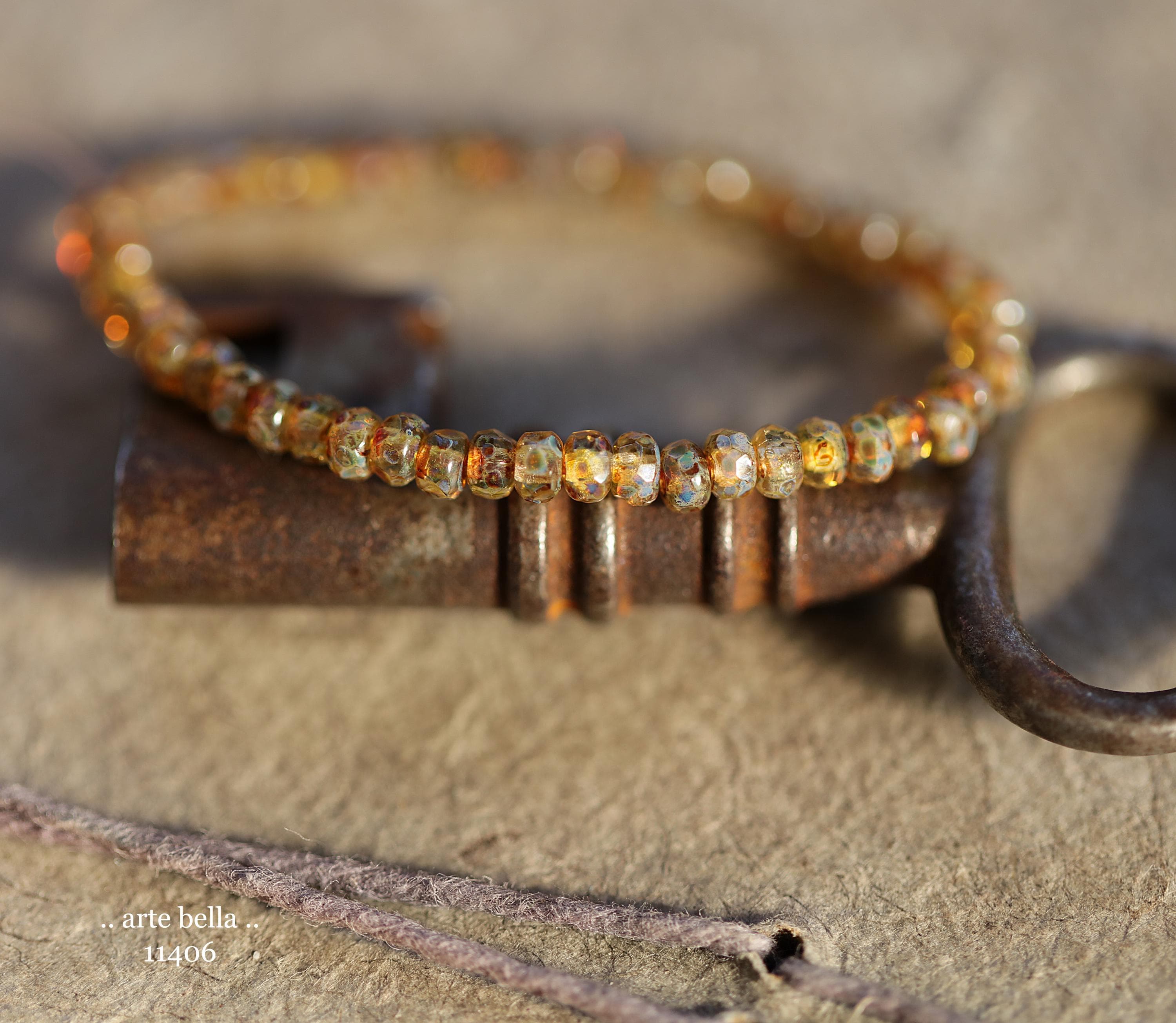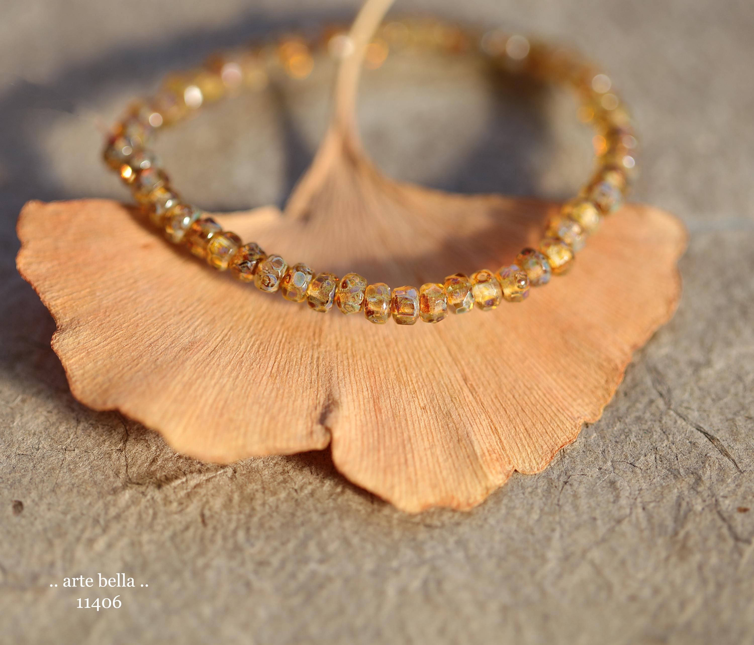 New .. GOLDEN COGNAC BITS .. 50 Picasso Czech Glass Gem Cut Micro Faceted Rondelle Bead Mix 3x2mm (11406-st) .. jewelry supplies