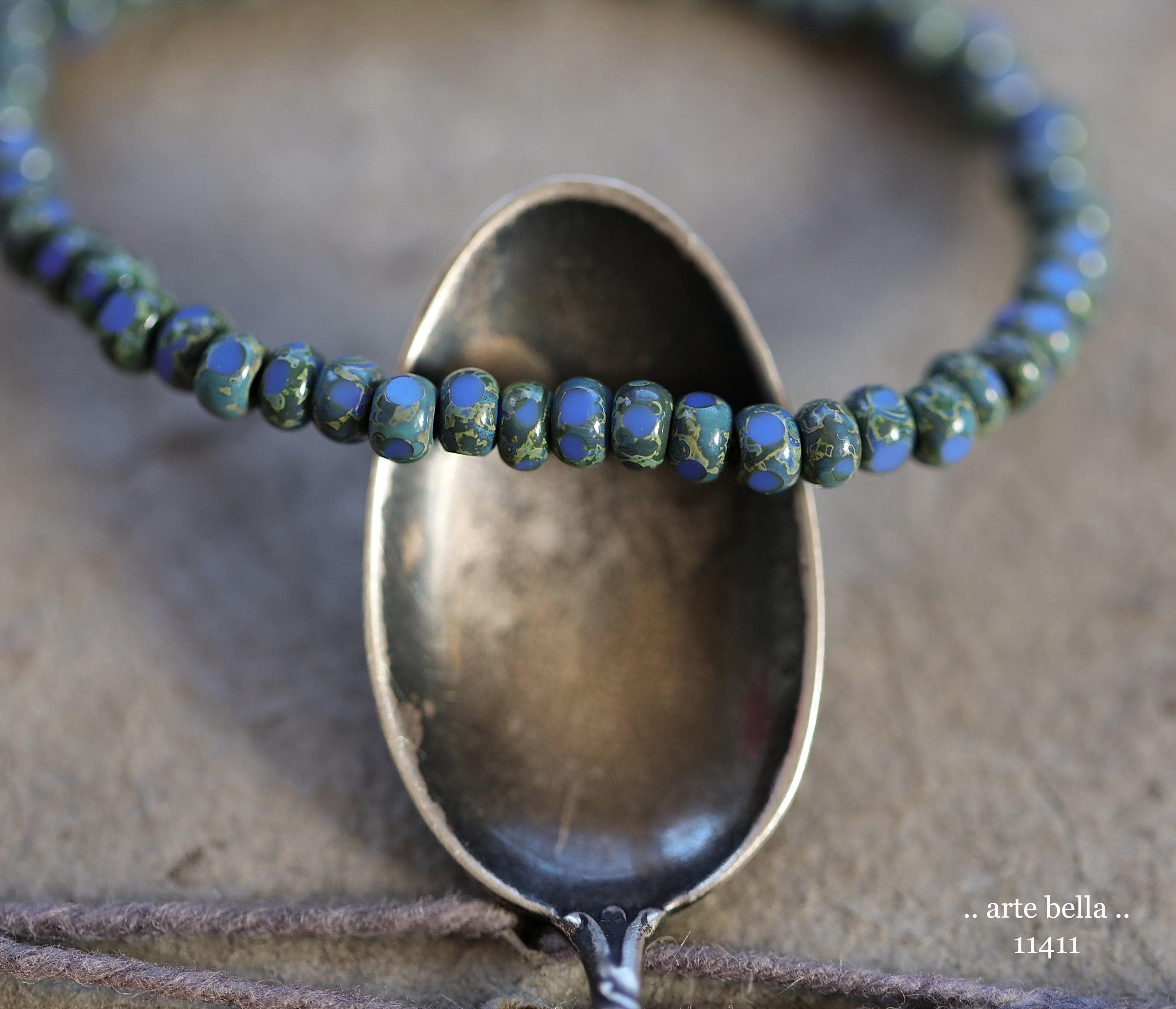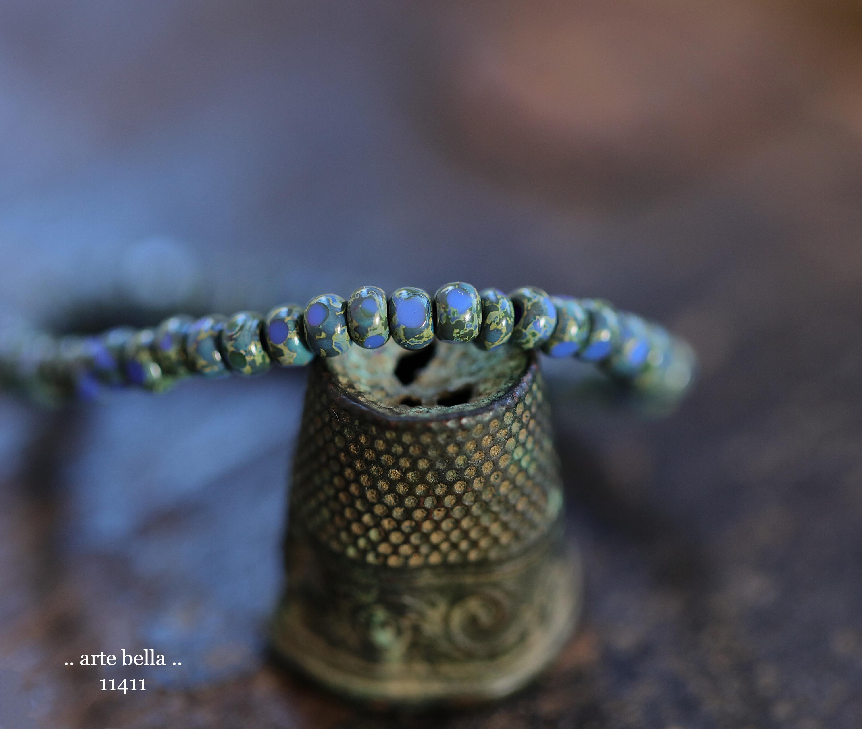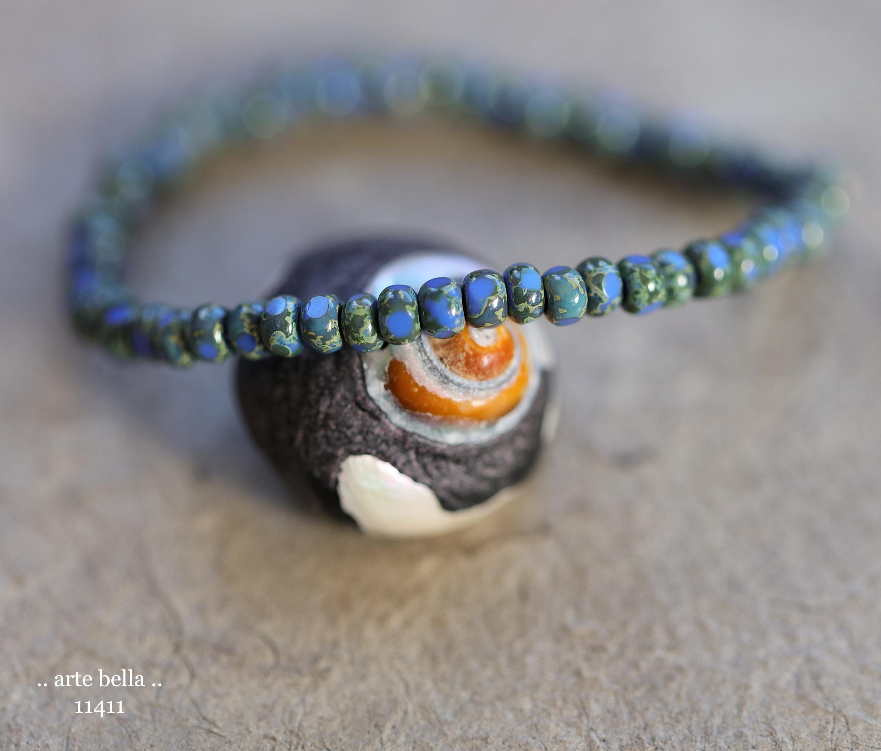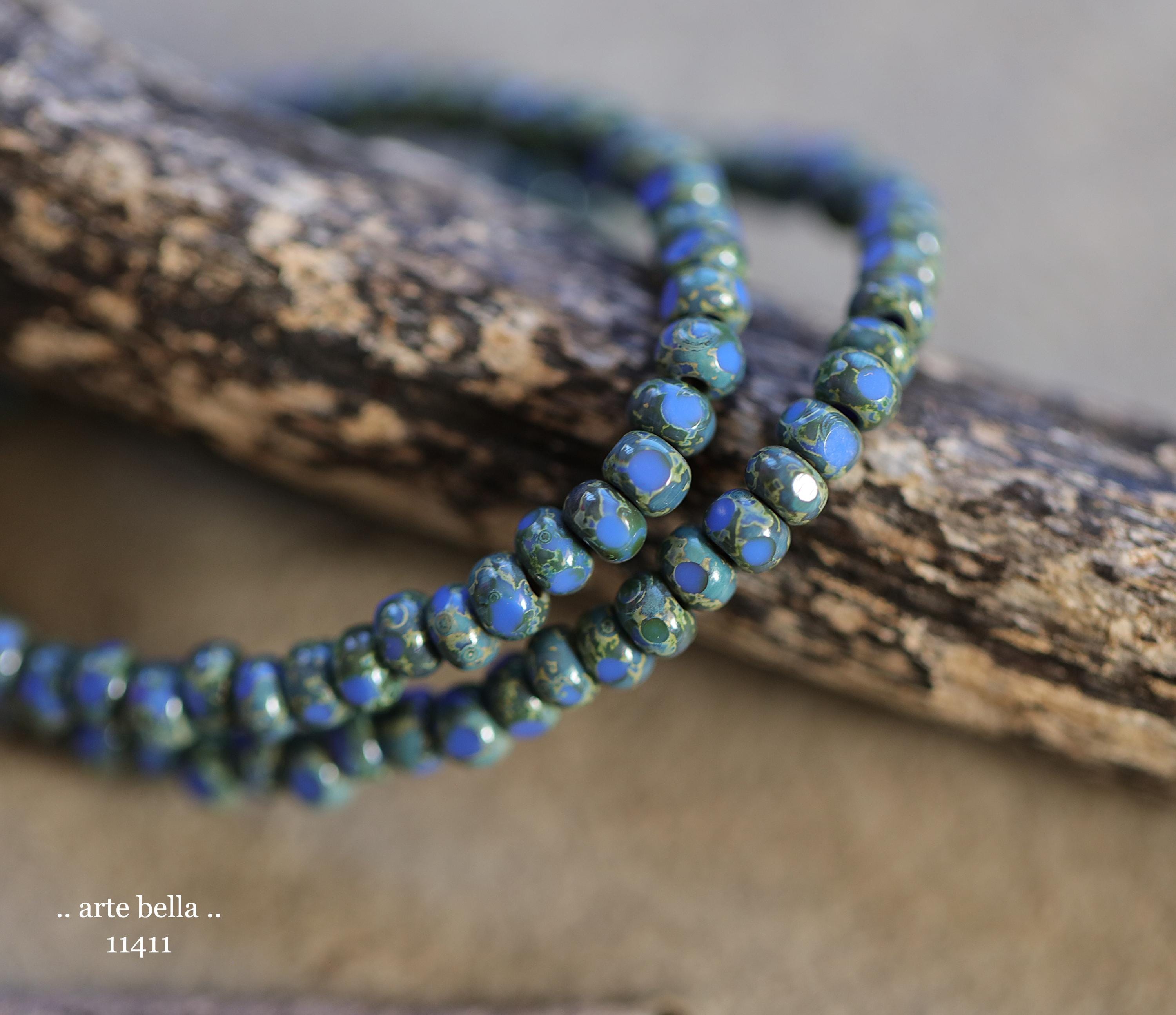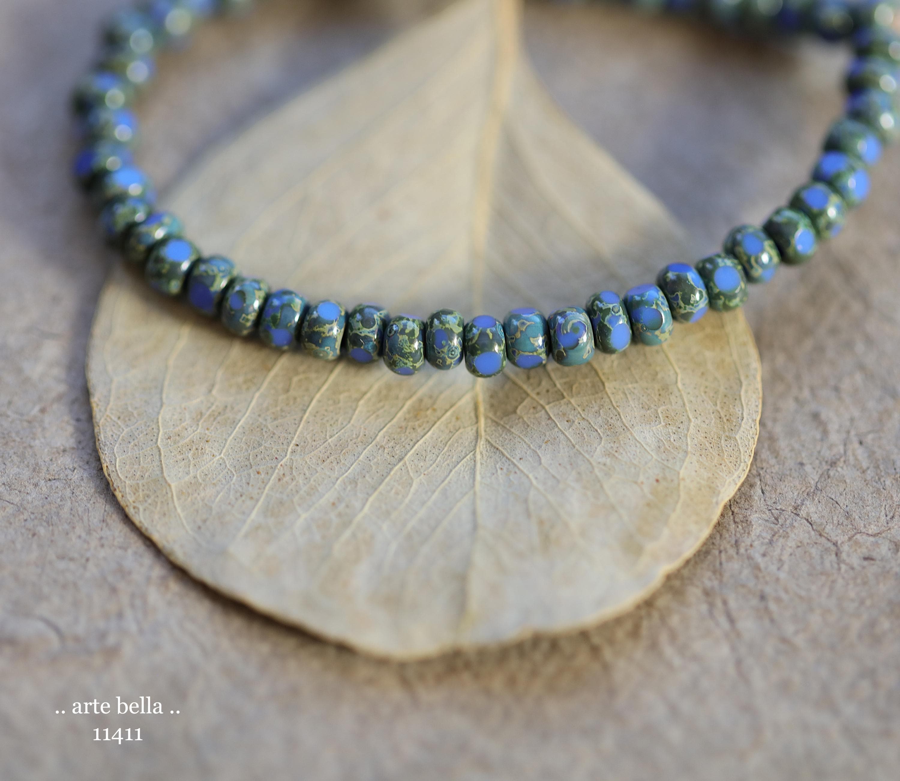 New .. MOSSY ROYAL SEEDS .. 50 Premium Picasso Czech Glass Faceted Seed Beads Size 6/0 4x3mm (11411-st) .. jewelry supplies