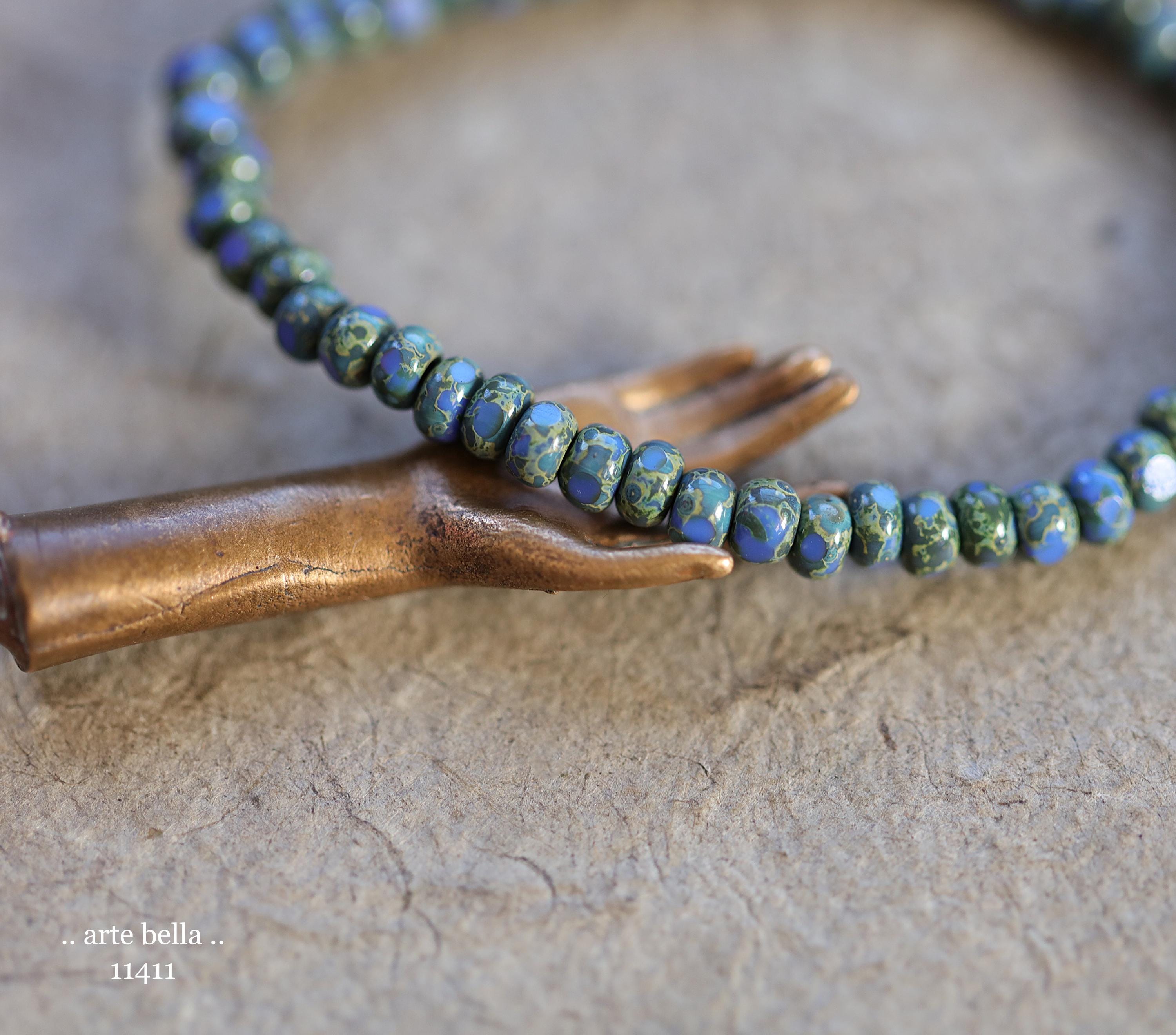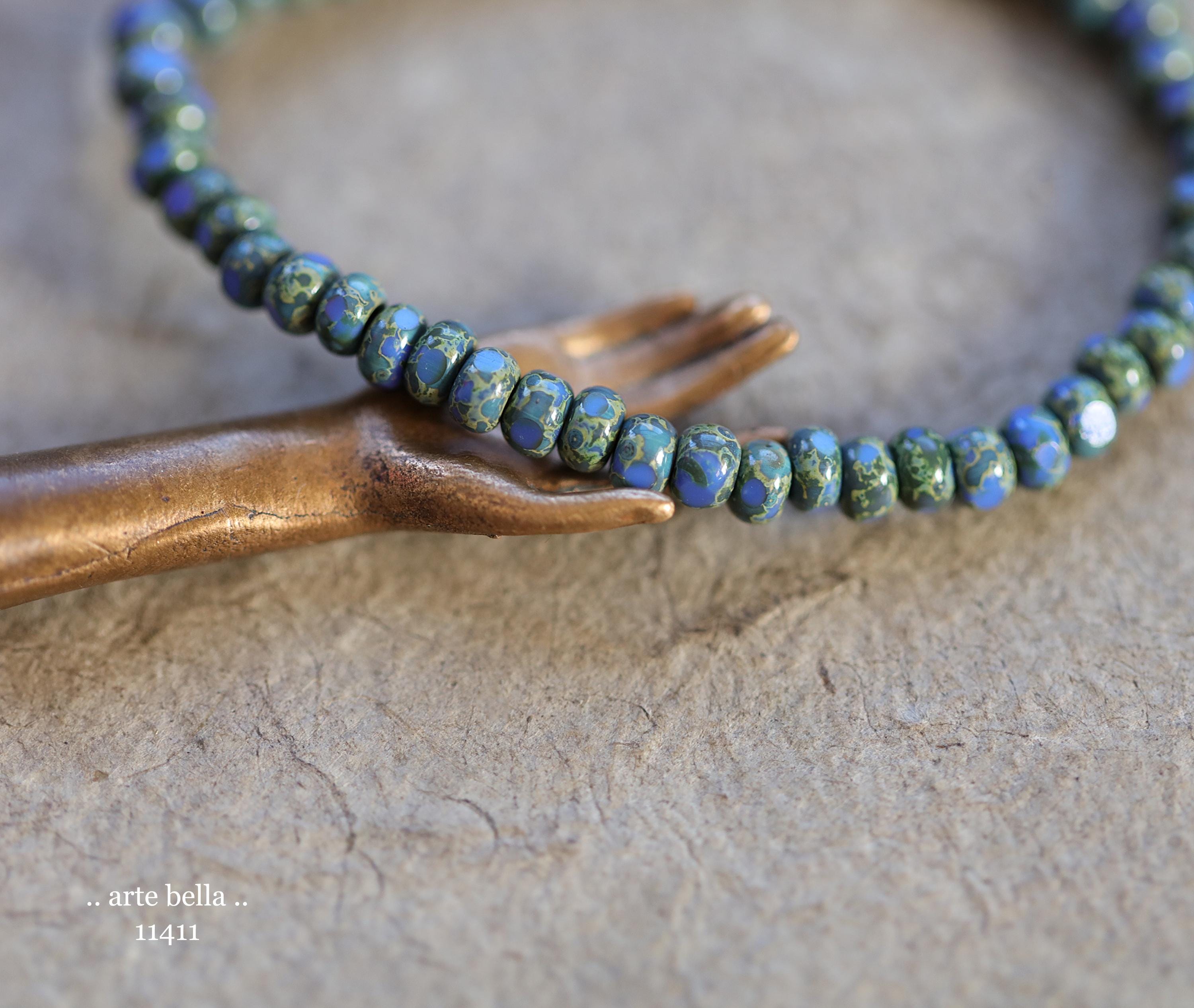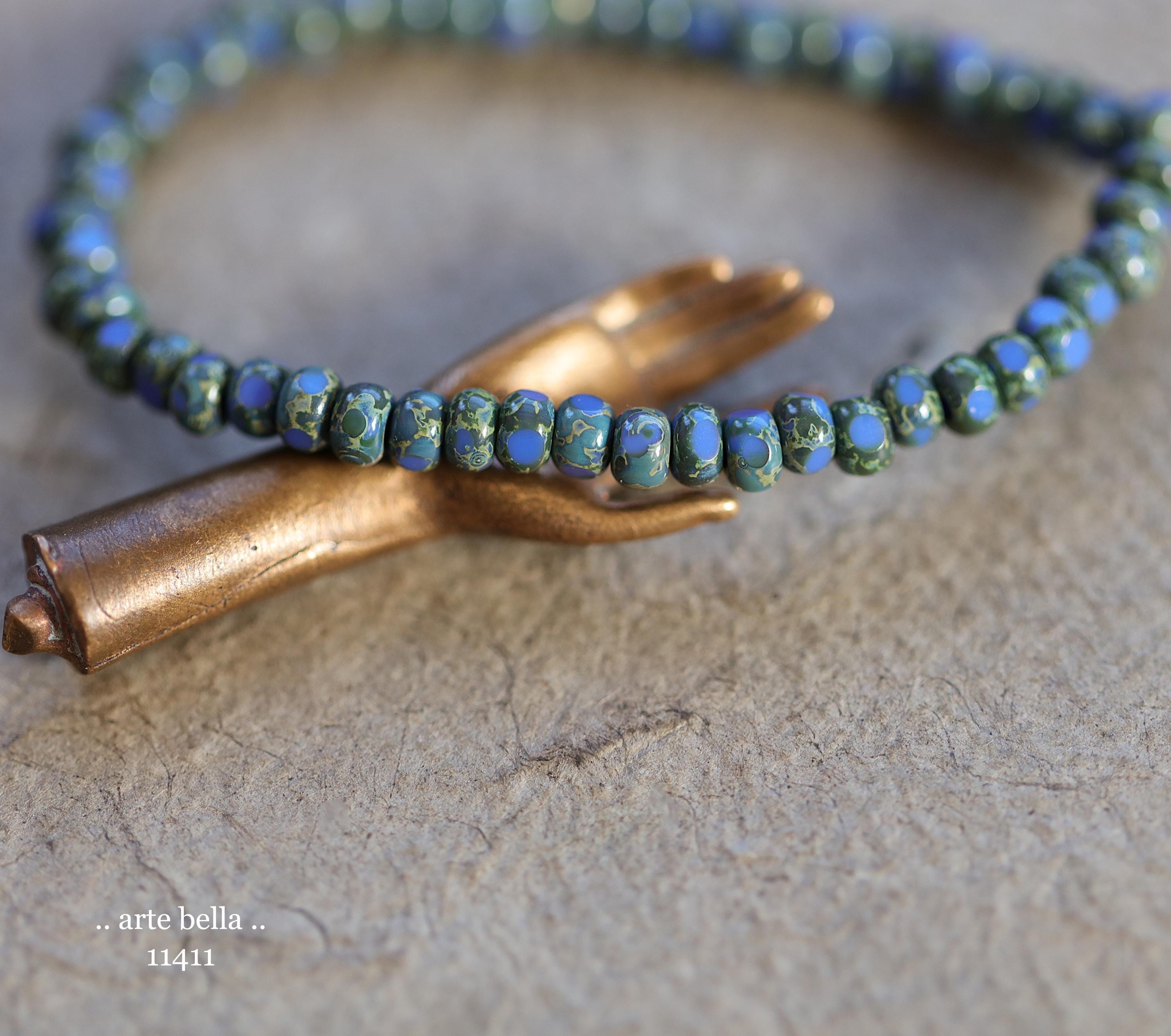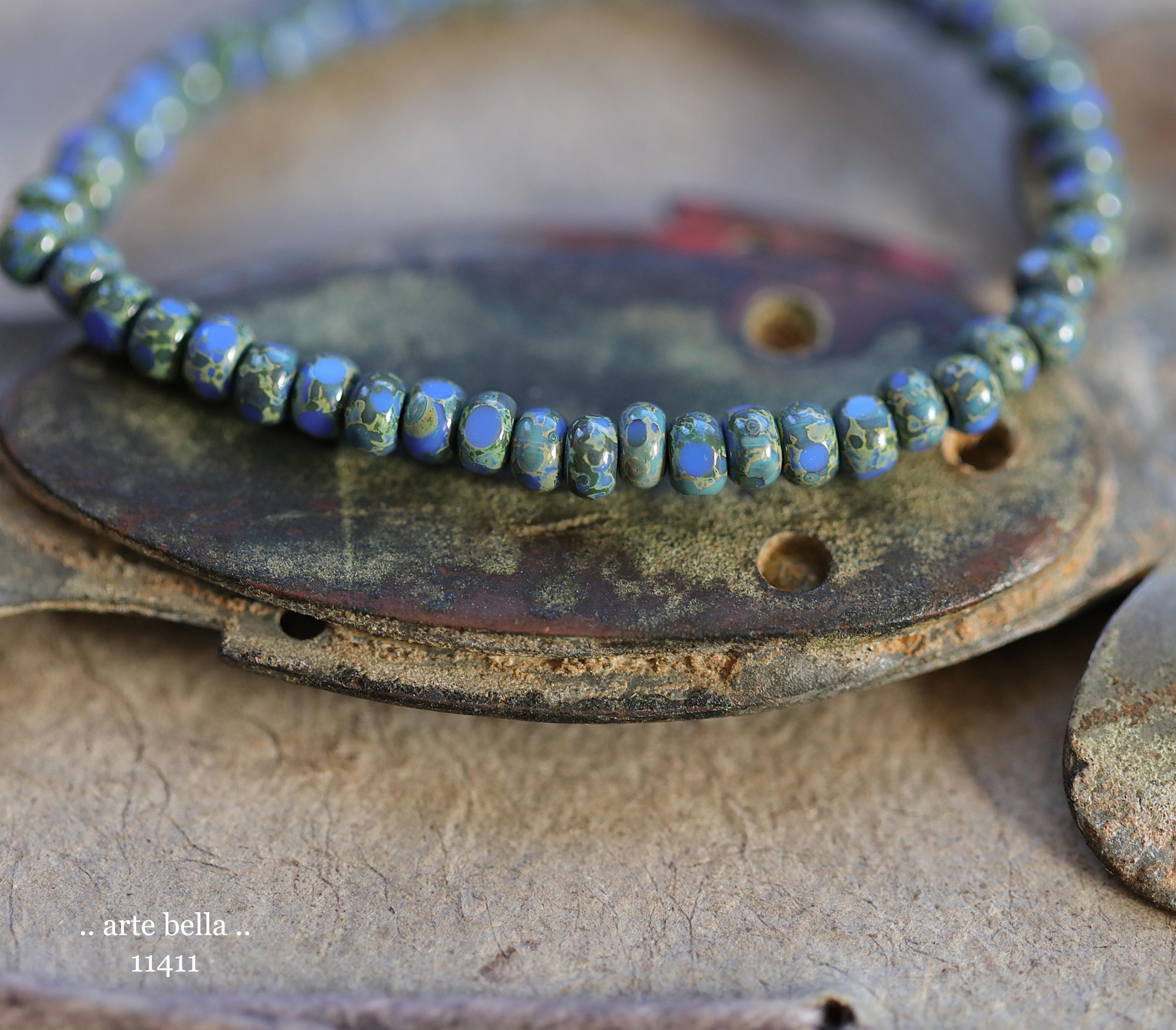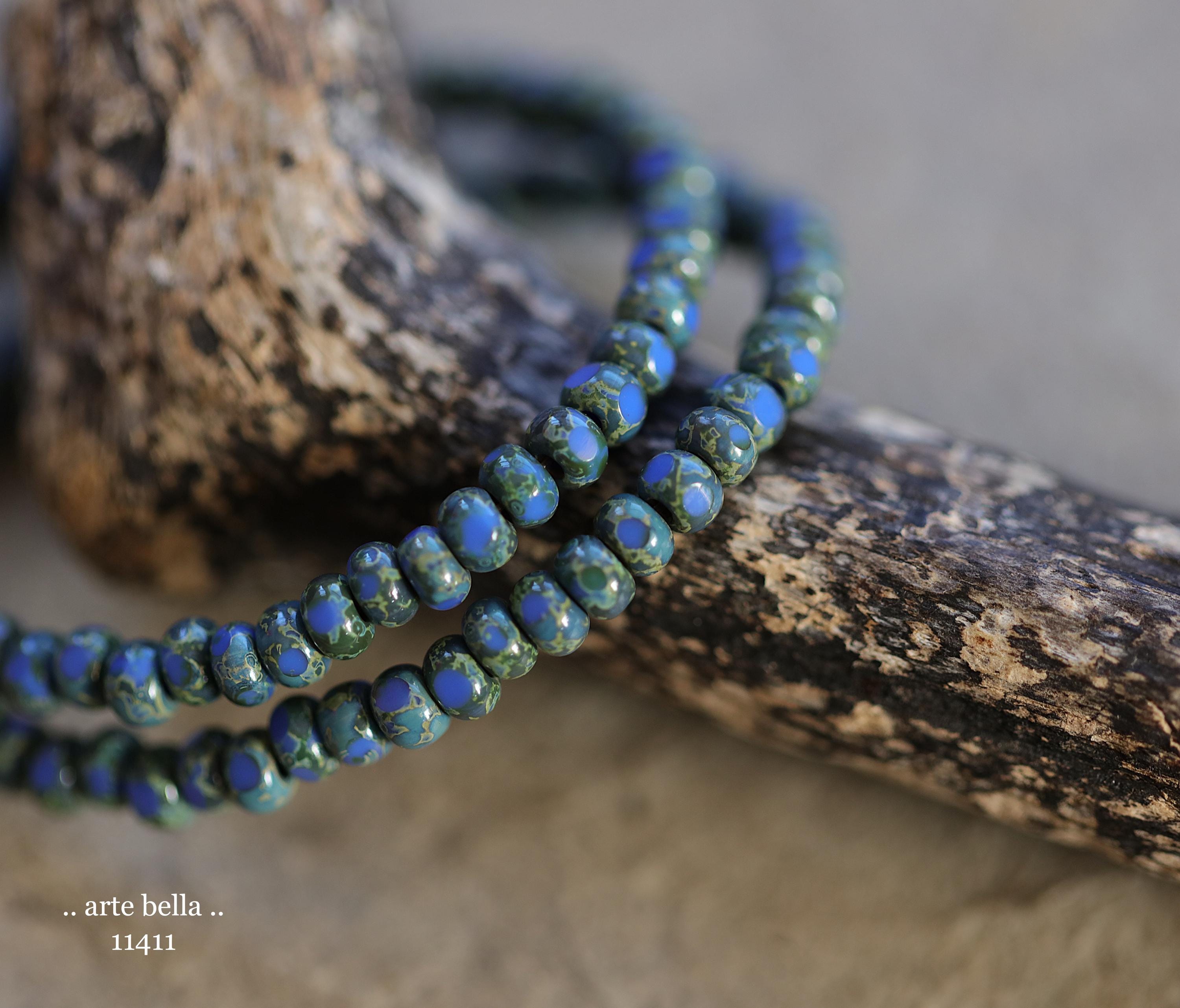 New .. MOSSY ROYAL SEEDS .. 50 Premium Picasso Czech Glass Faceted Seed Beads Size 6/0 4x3mm (11411-st) .. jewelry supplies