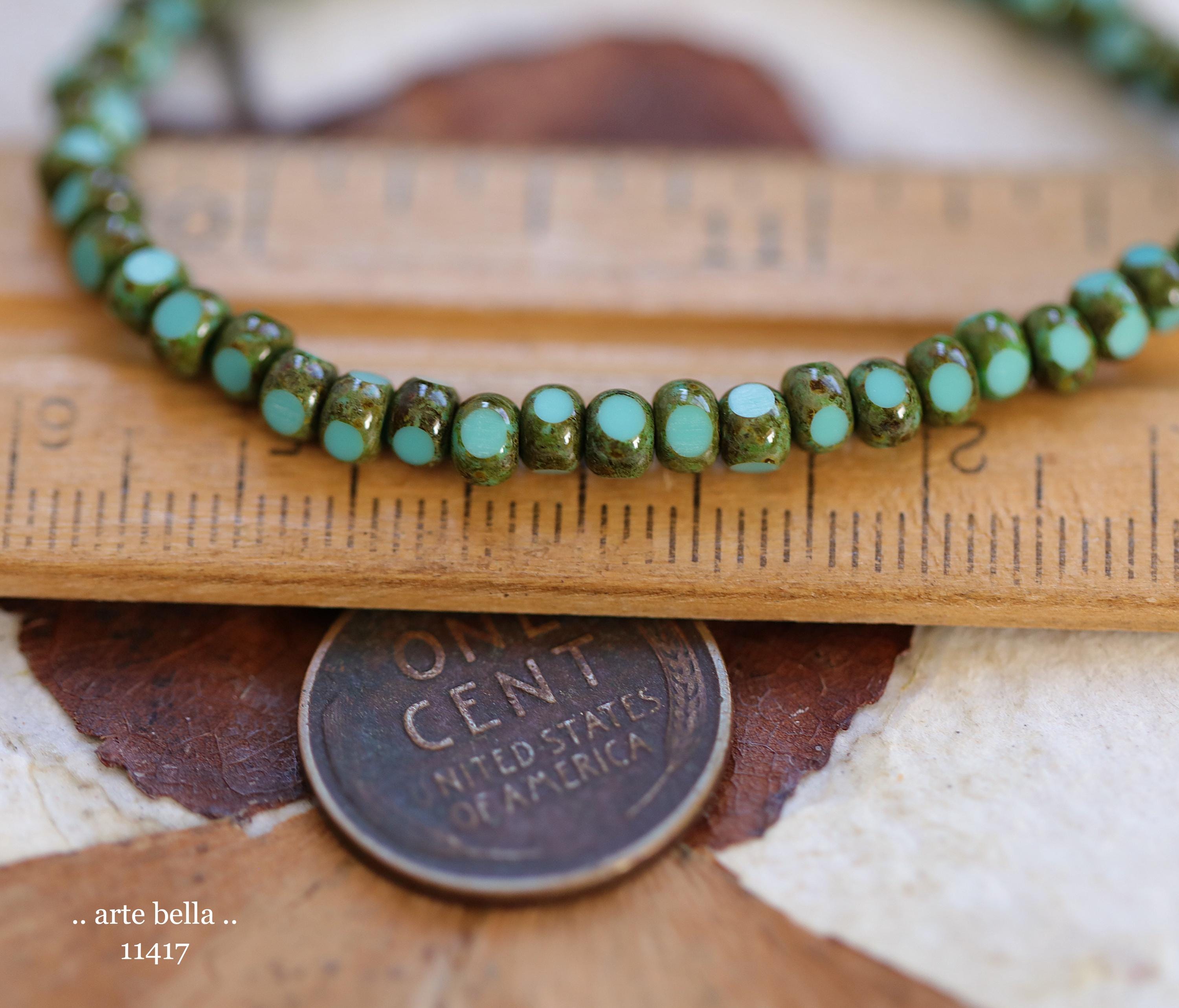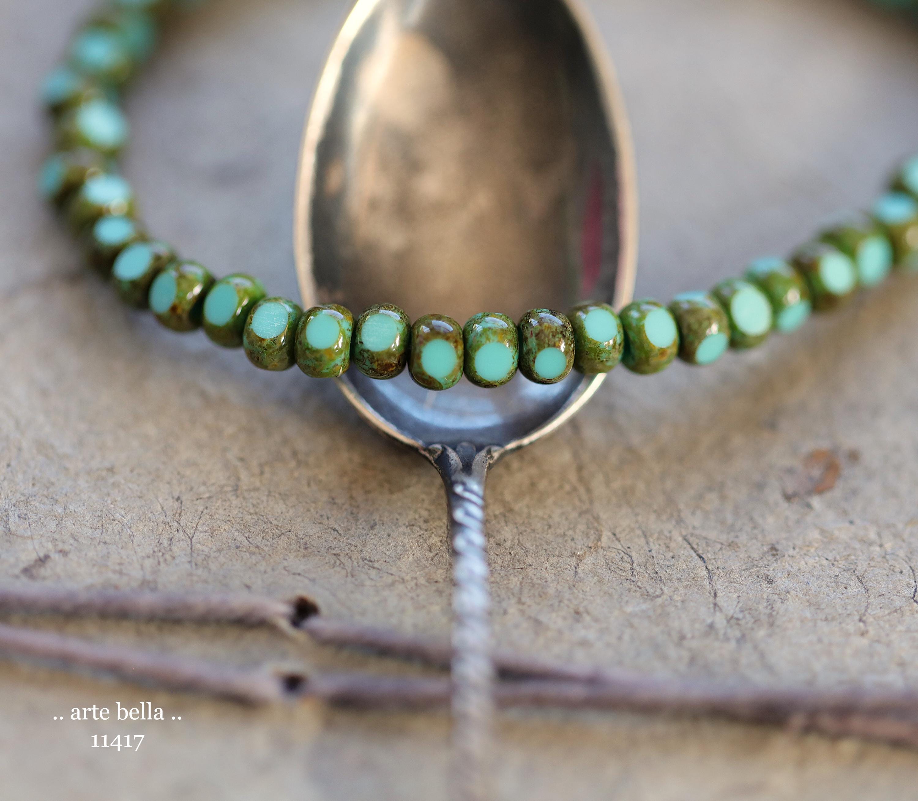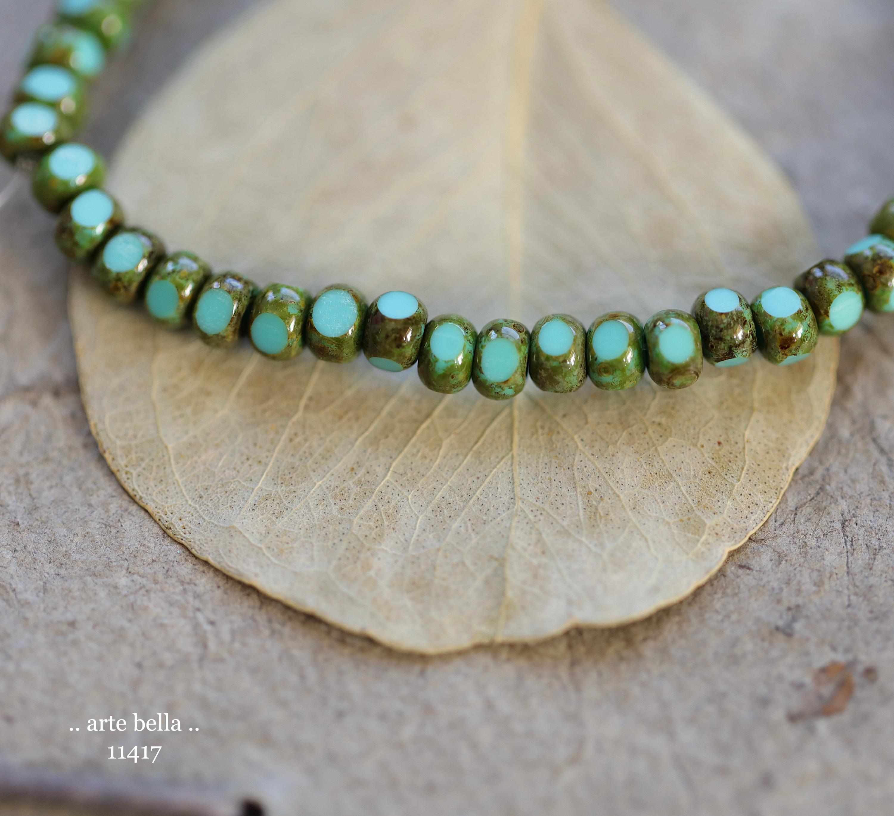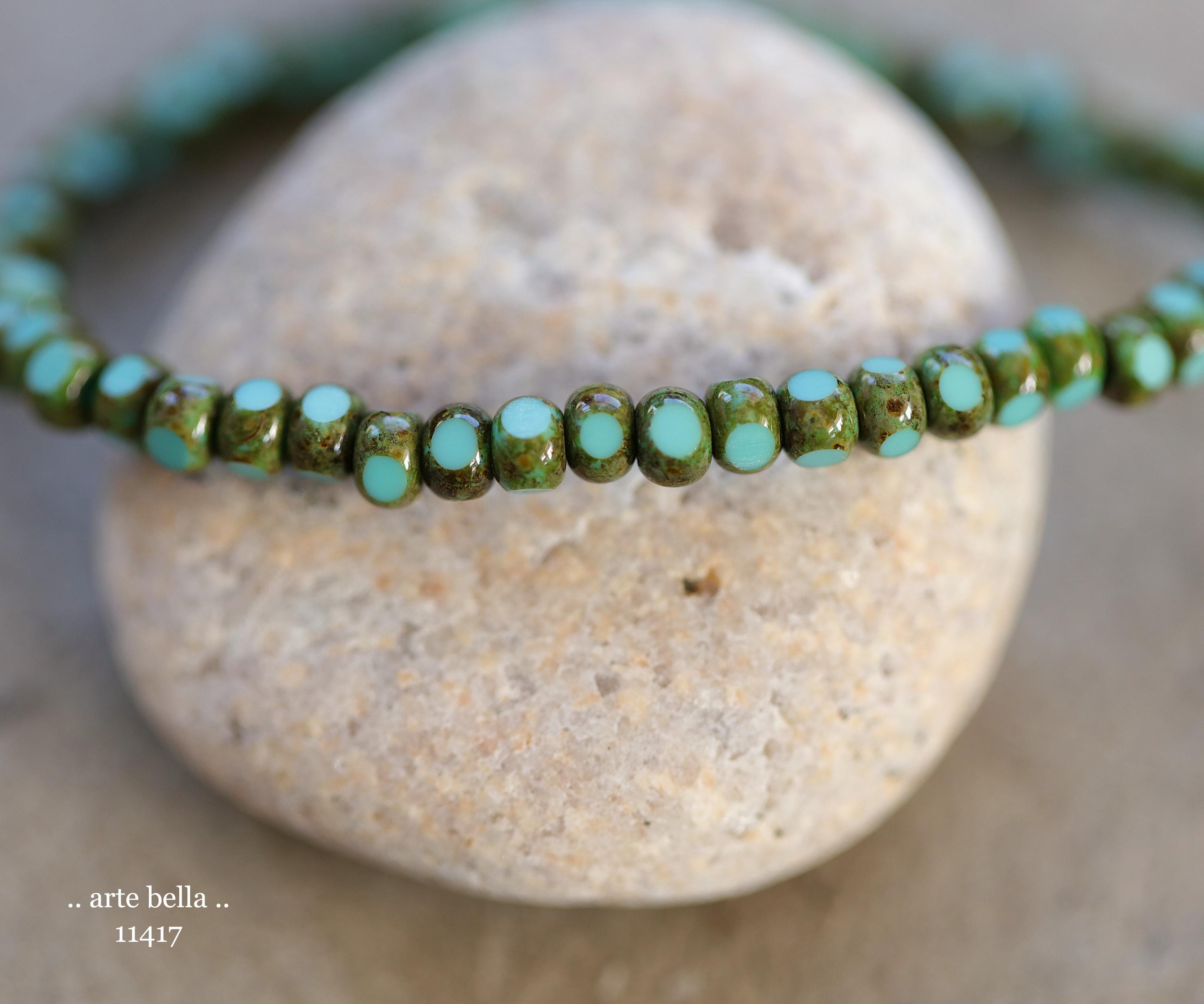 New .. MOSSY TURQUOISE SEEDS .. 50 Premium Picasso Czech Glass Faceted Seed Beads Size 6/0 4x3mm (11417-st) .. jewelry supplies