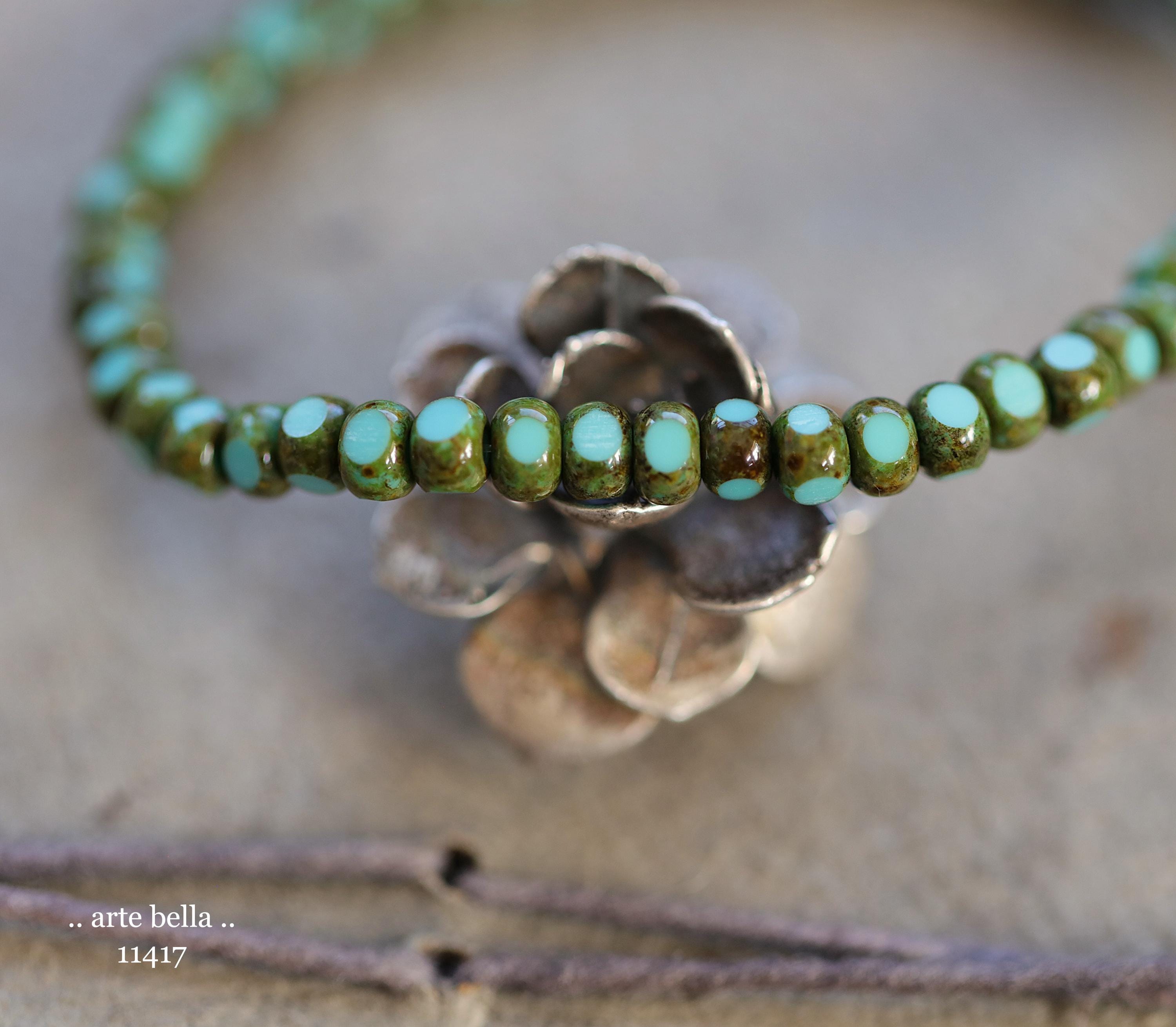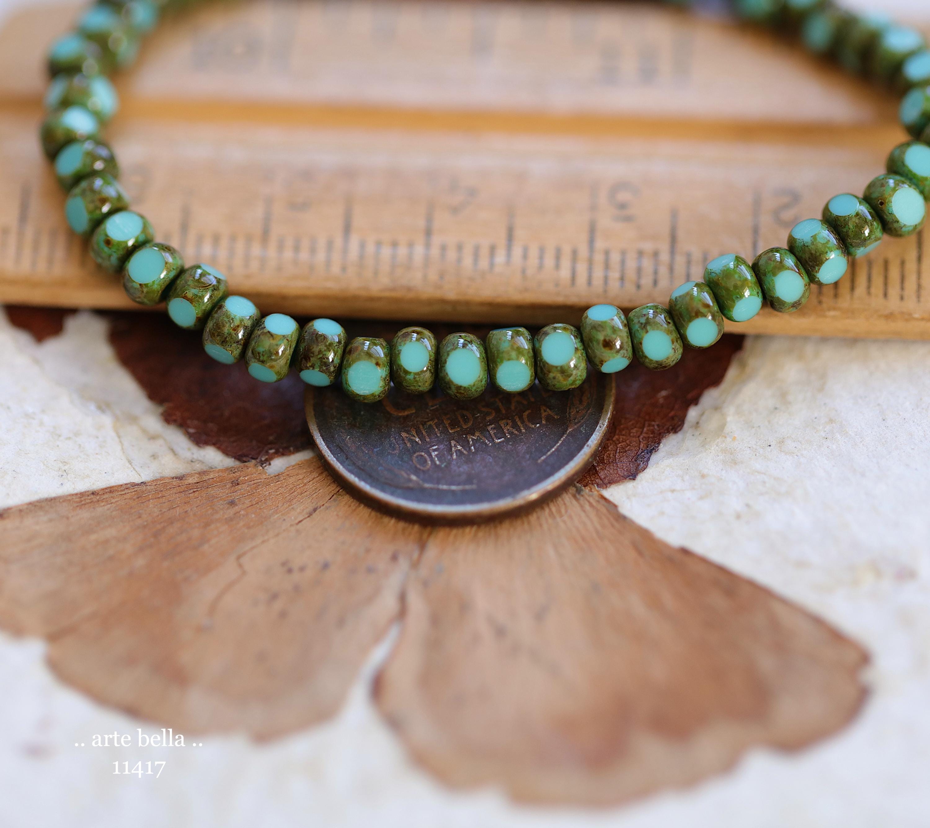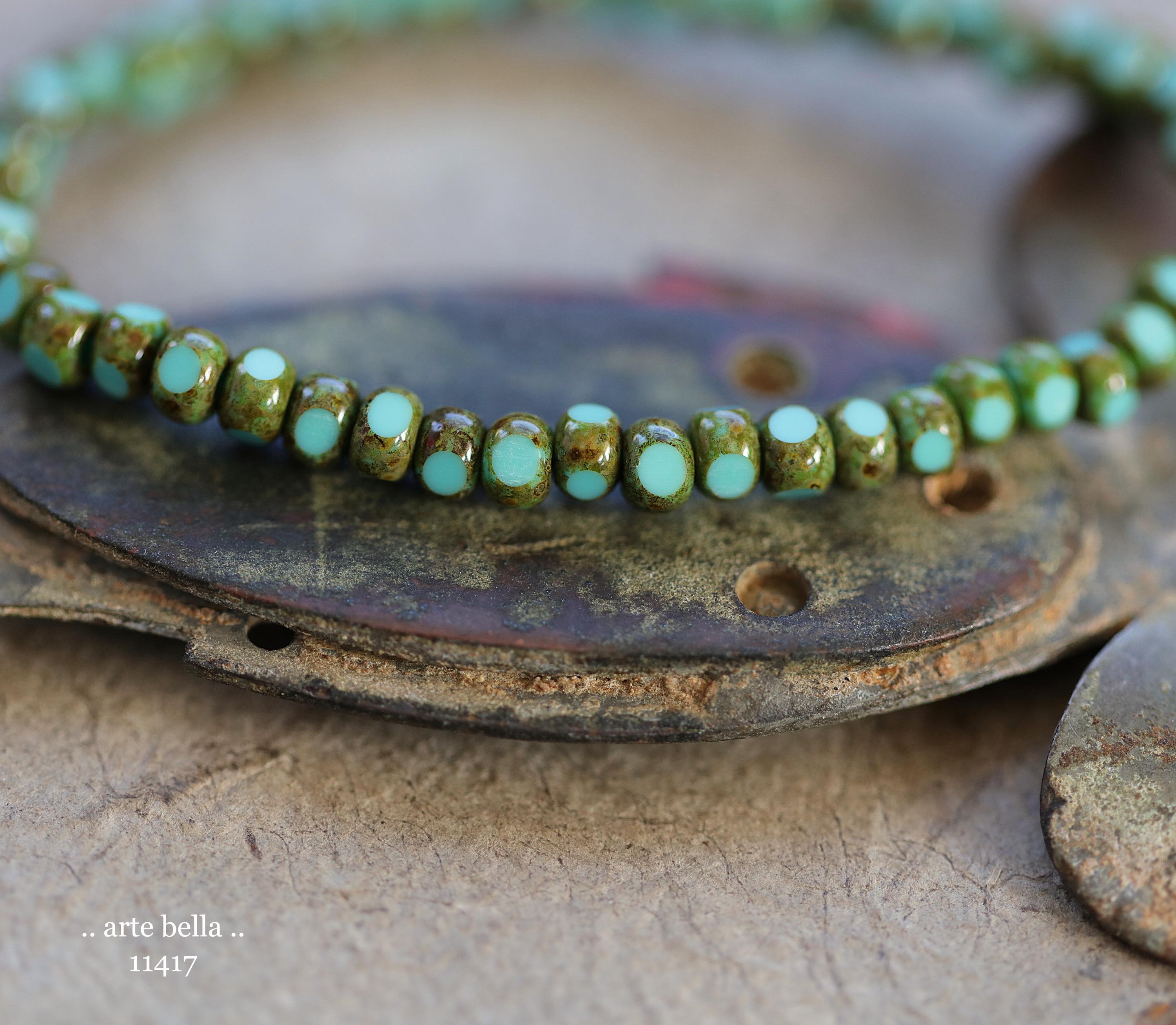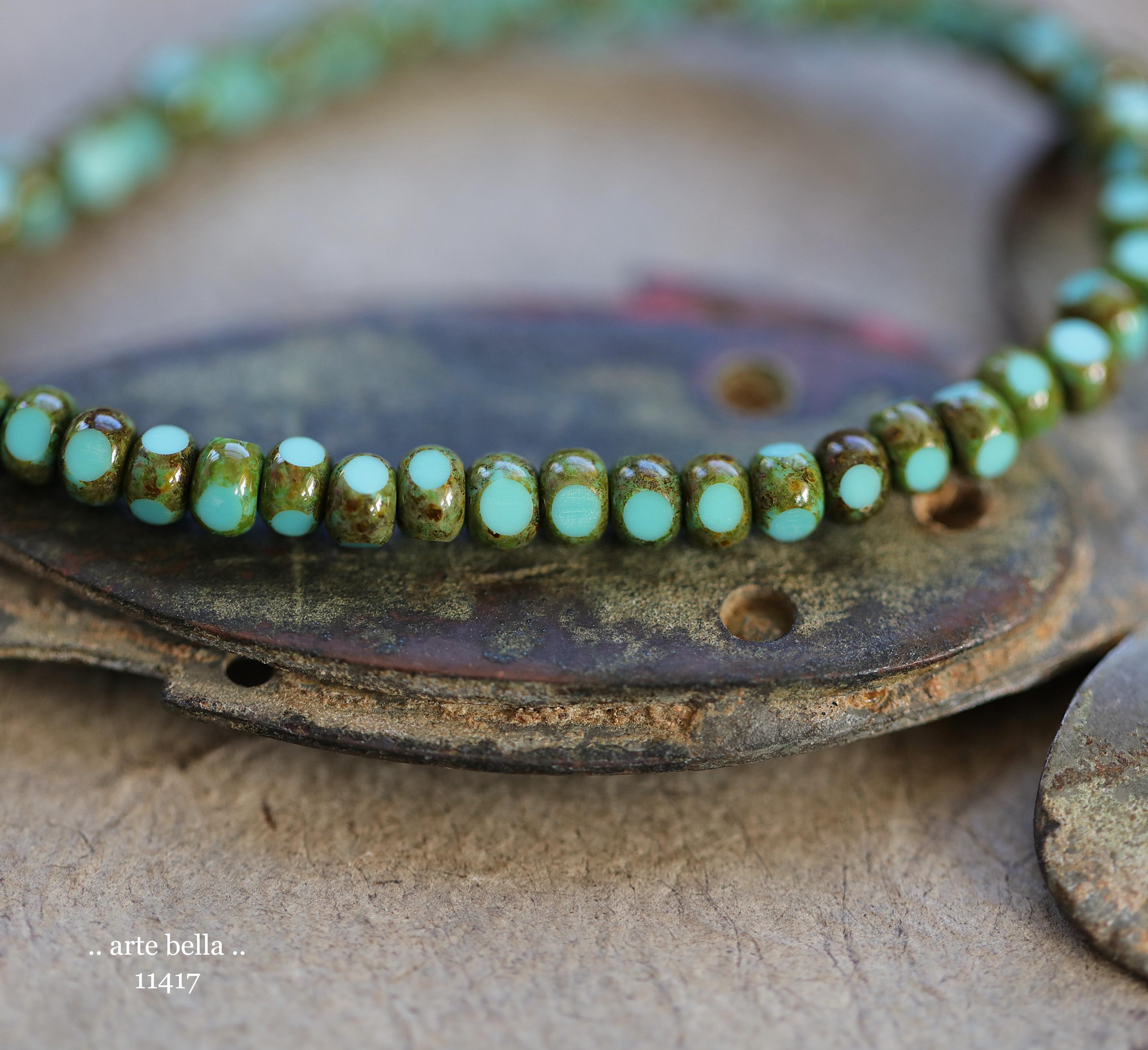 New .. MOSSY TURQUOISE SEEDS .. 50 Premium Picasso Czech Glass Faceted Seed Beads Size 6/0 4x3mm (11417-st) .. jewelry supplies