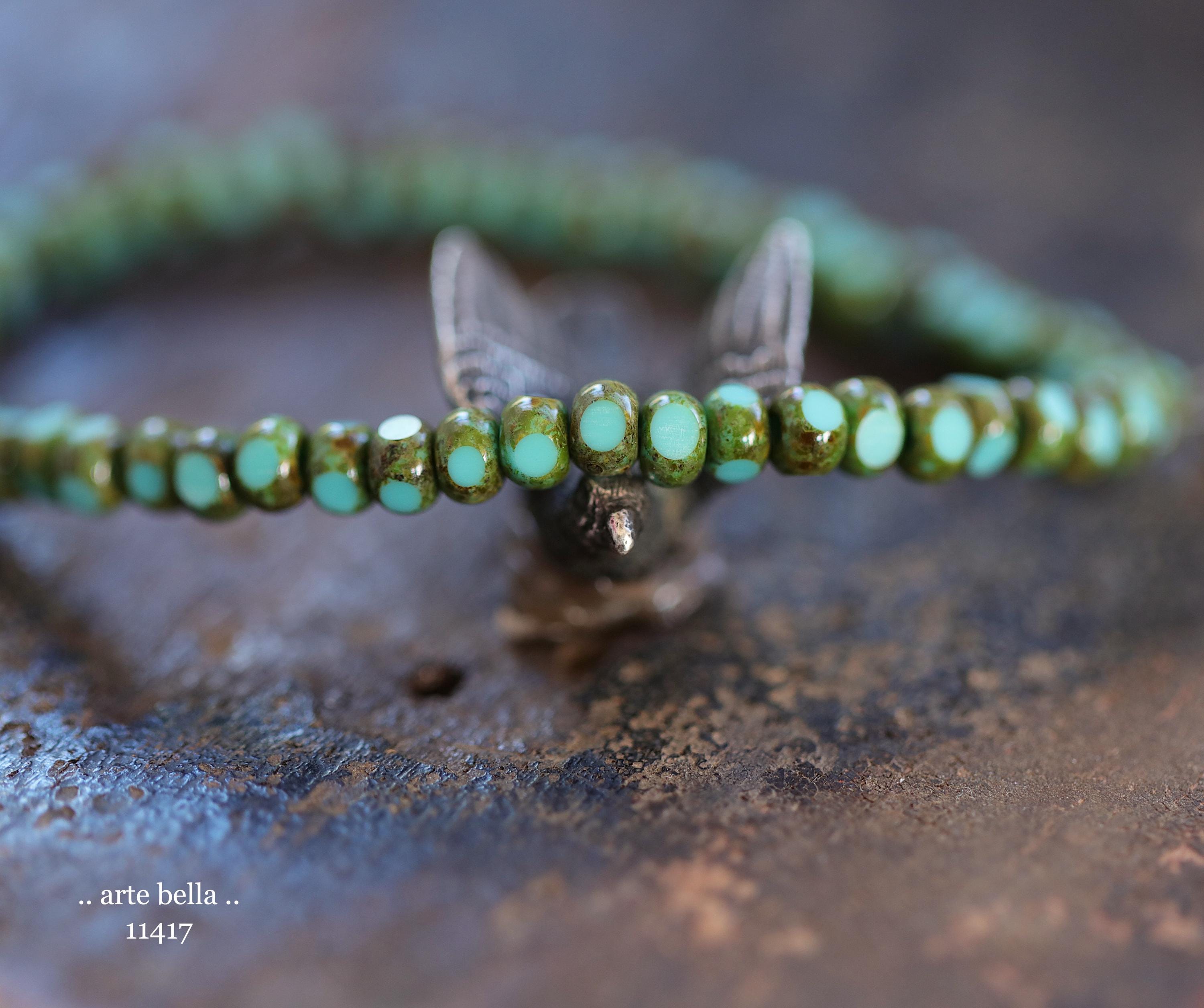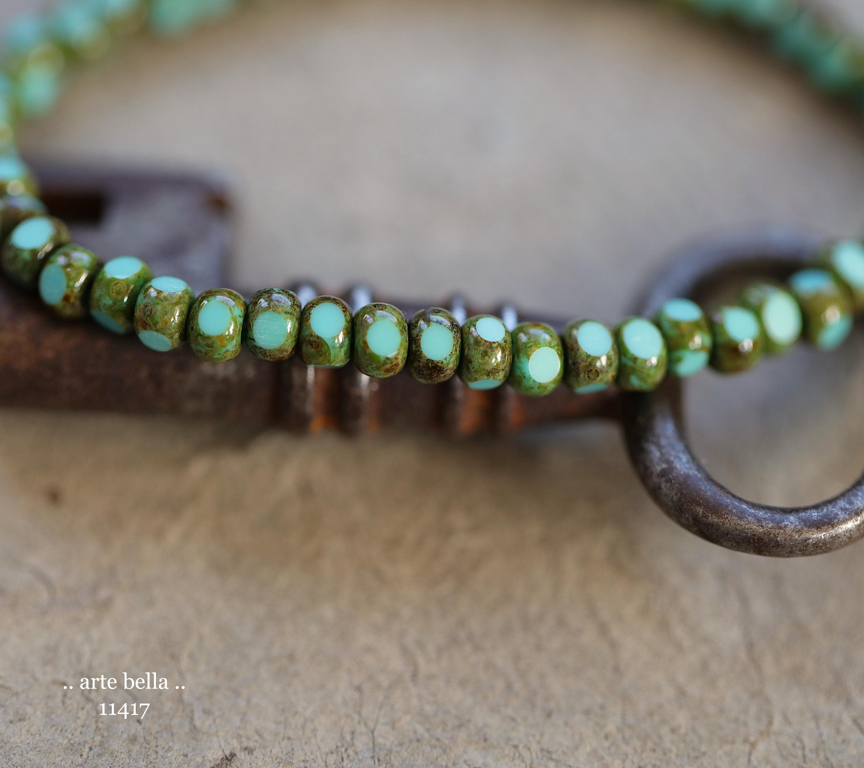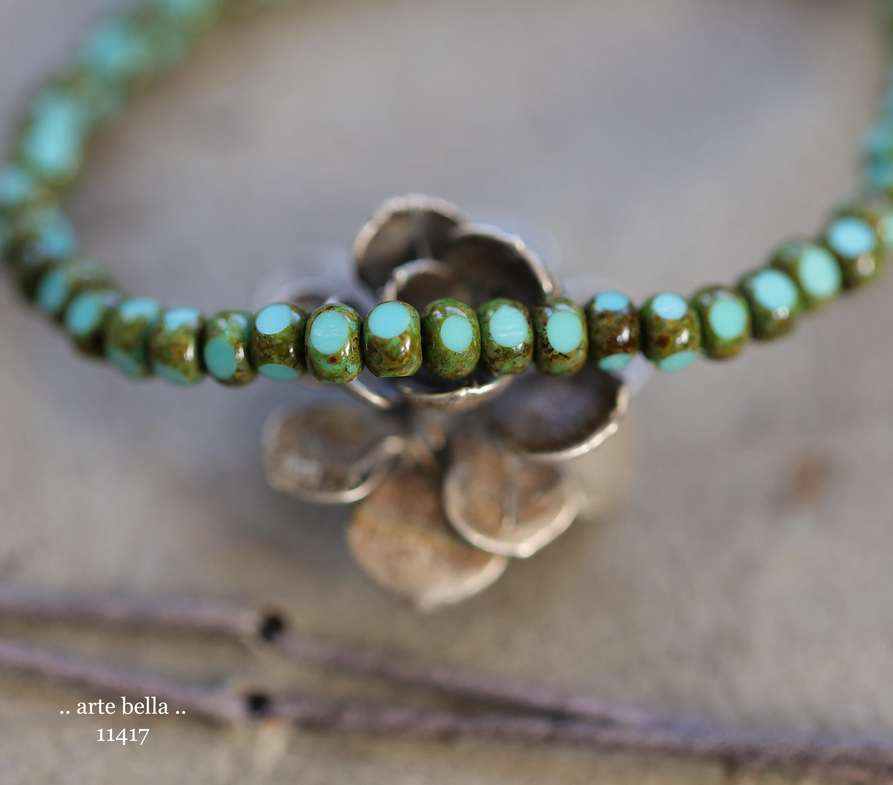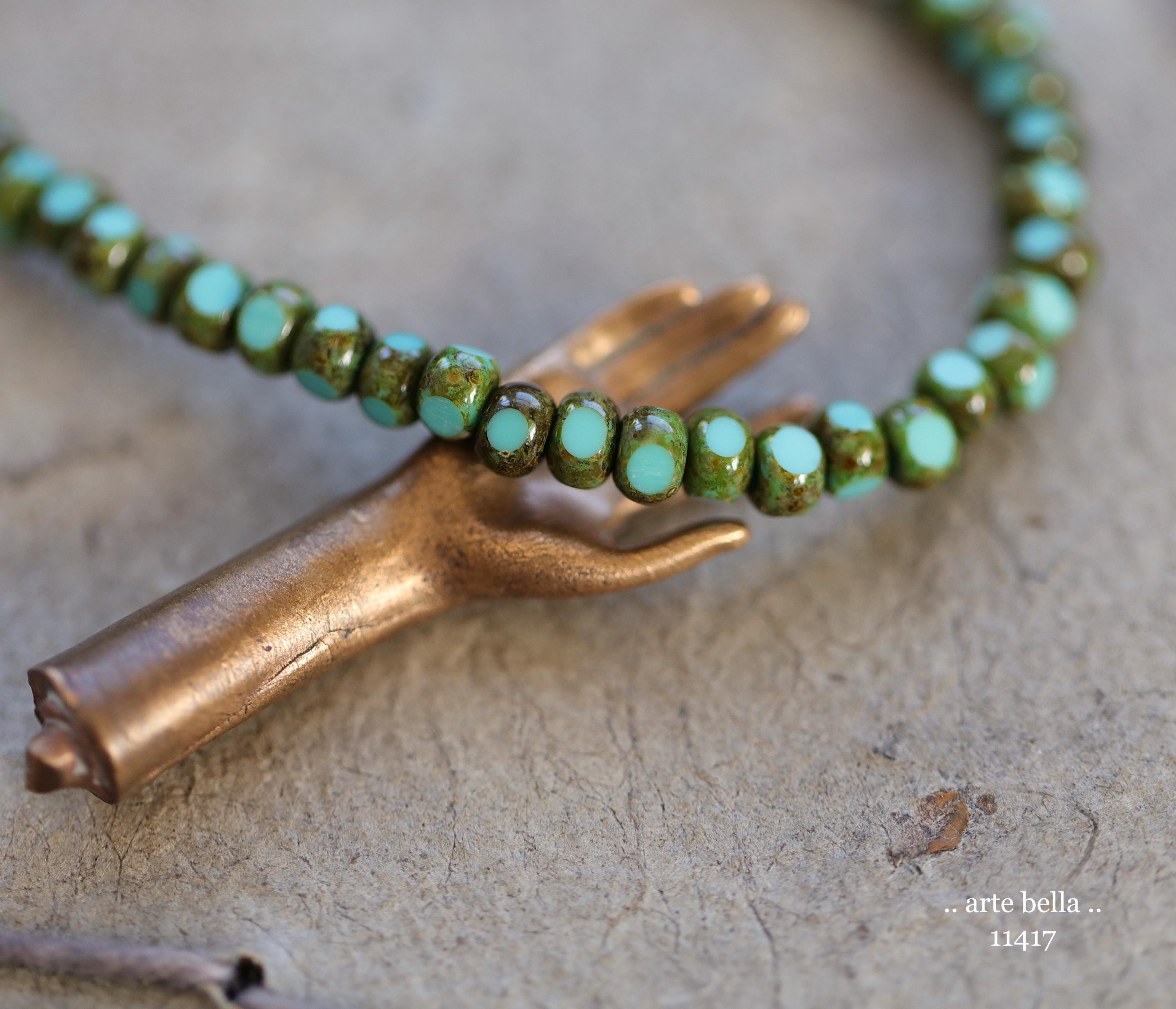 New .. MOSSY TURQUOISE SEEDS .. 50 Premium Picasso Czech Glass Faceted Seed Beads Size 6/0 4x3mm (11417-st) .. jewelry supplies