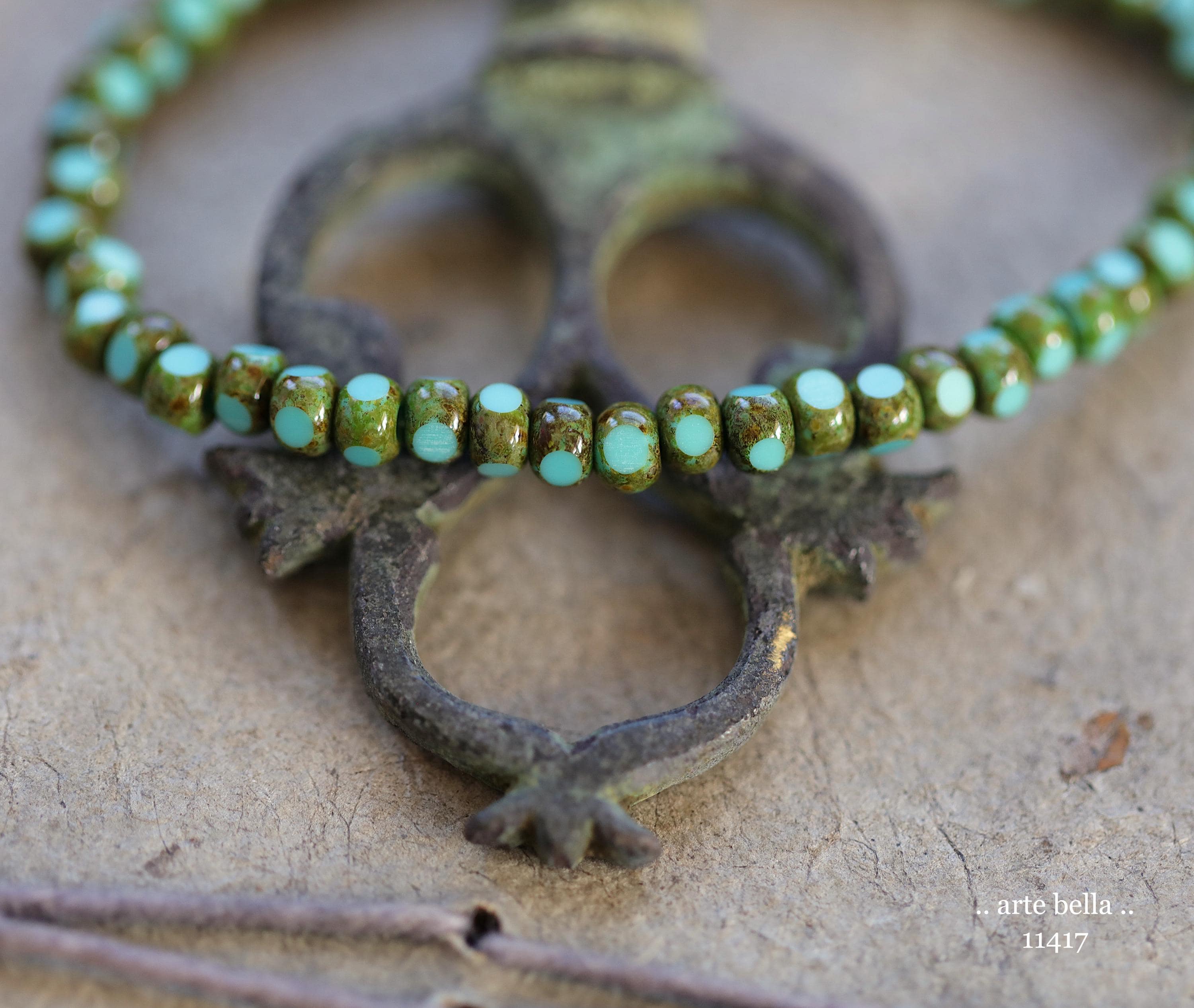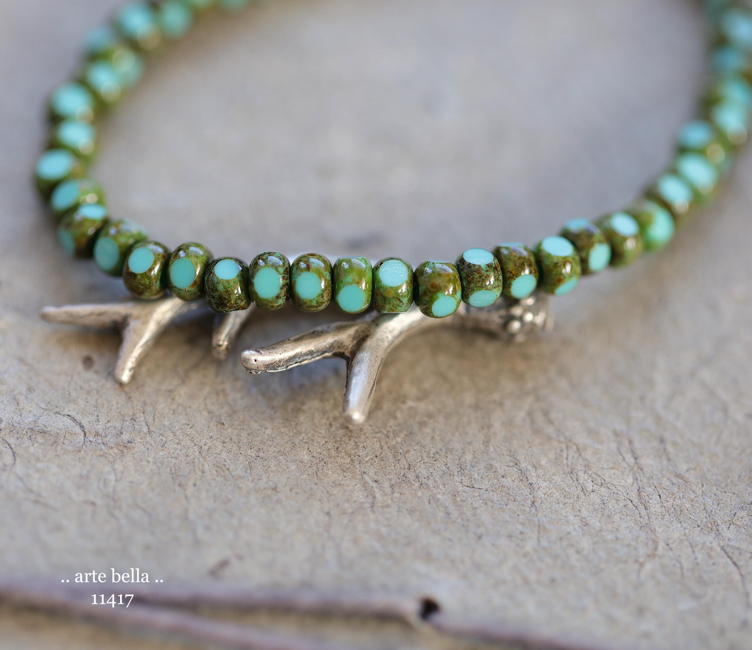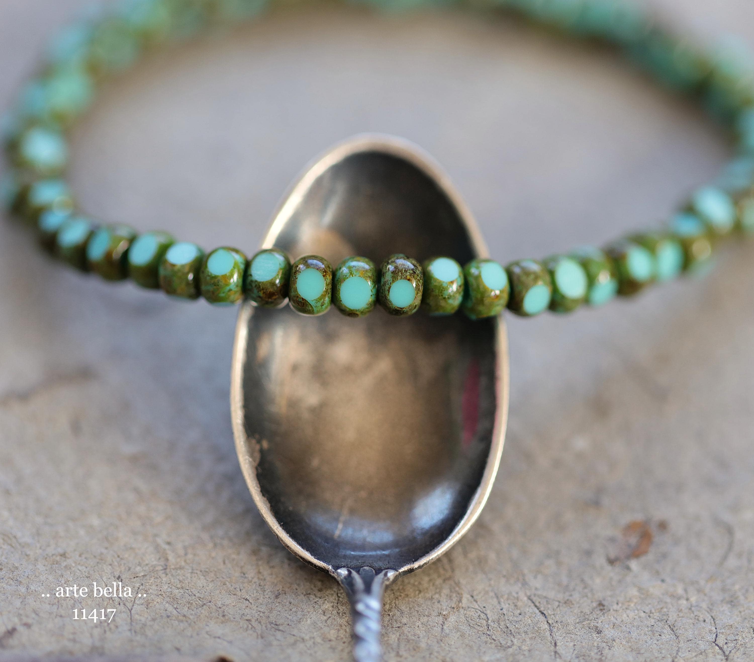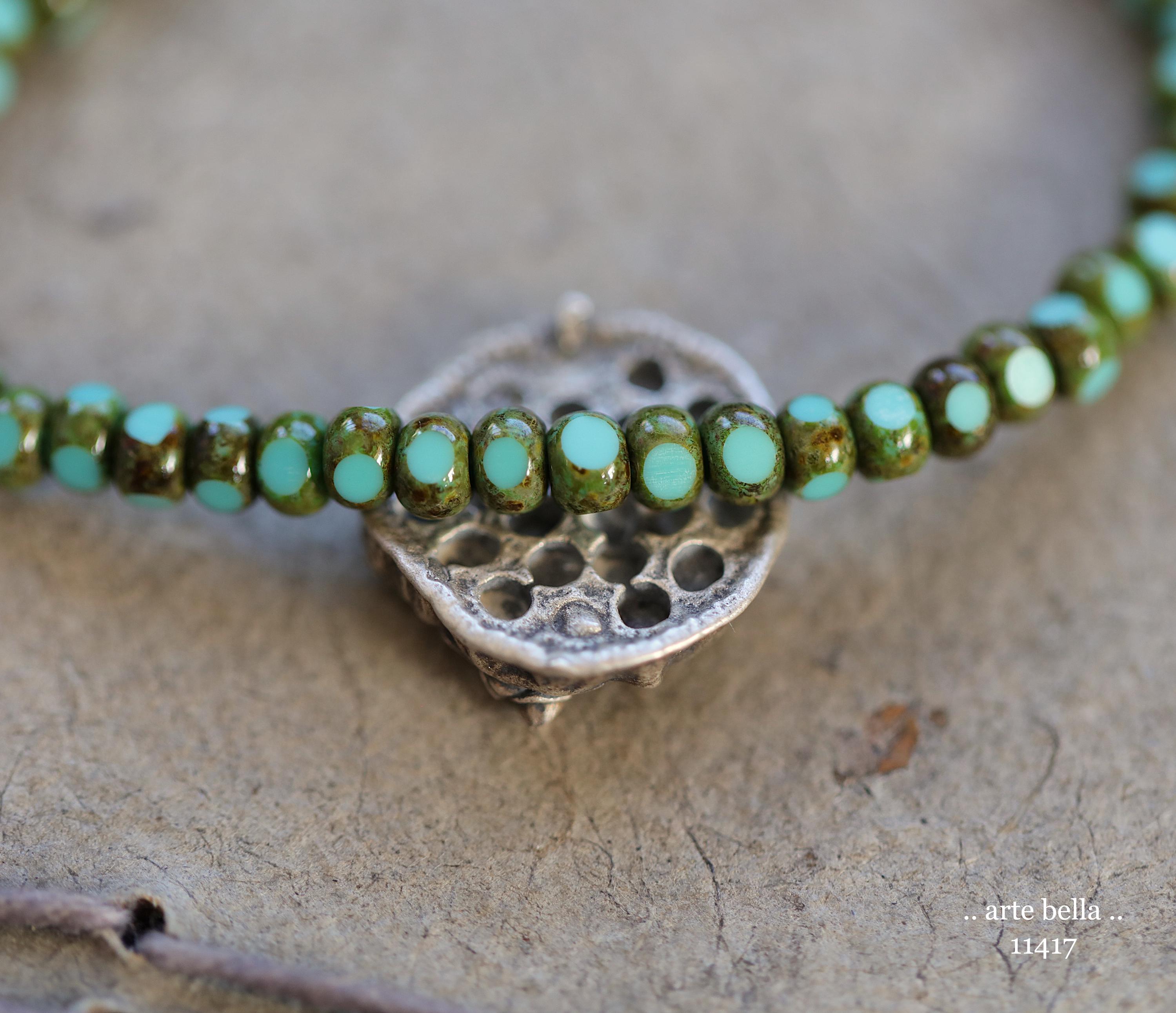 New .. MOSSY TURQUOISE SEEDS .. 50 Premium Picasso Czech Glass Faceted Seed Beads Size 6/0 4x3mm (11417-st) .. jewelry supplies