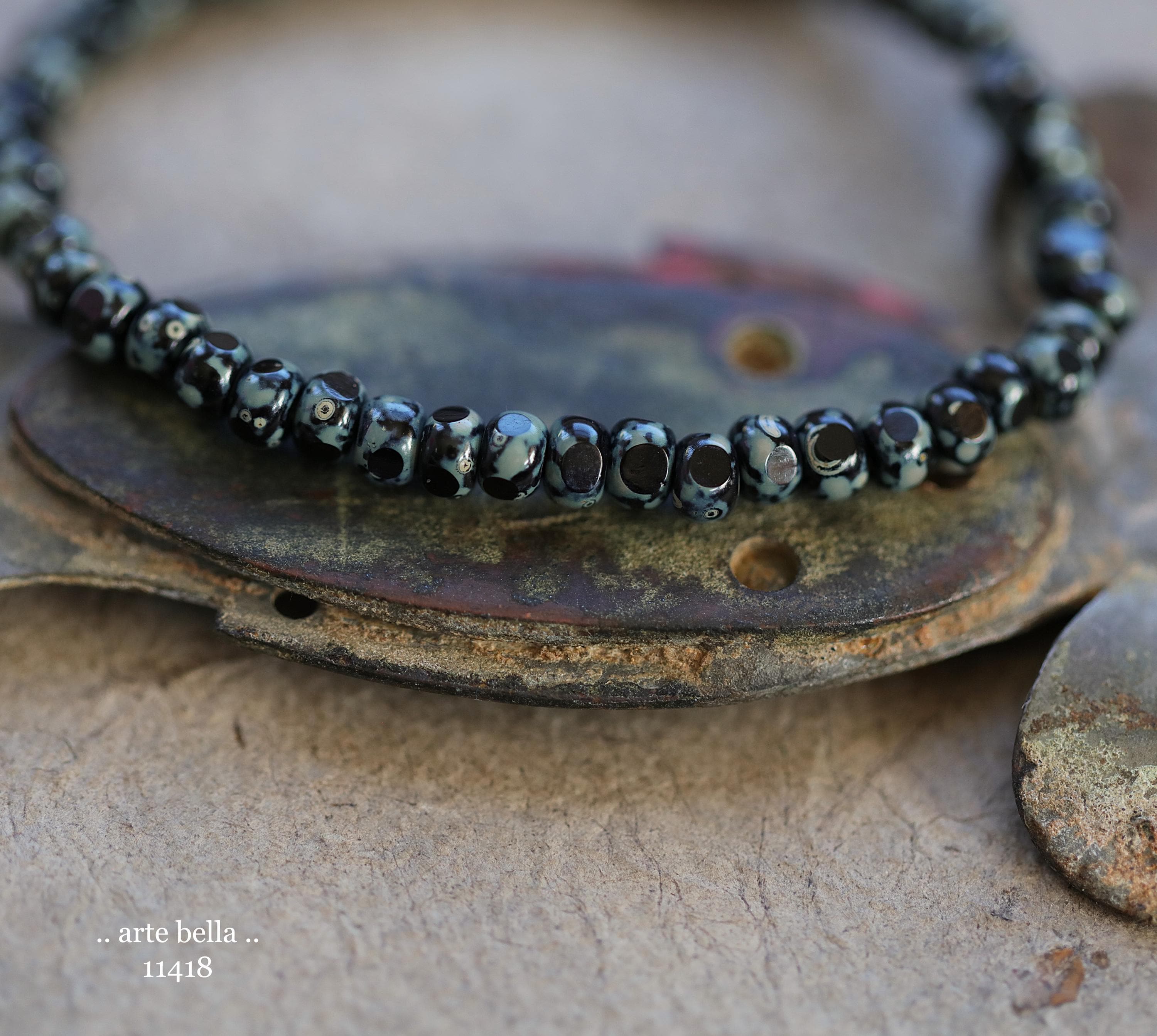 New .. MOSSY TWILIGHT SEEDS .. 50 Premium Picasso Czech Glass Faceted Seed Beads Size 6/0 4x3mm (11418-st) .. jewelry supplies