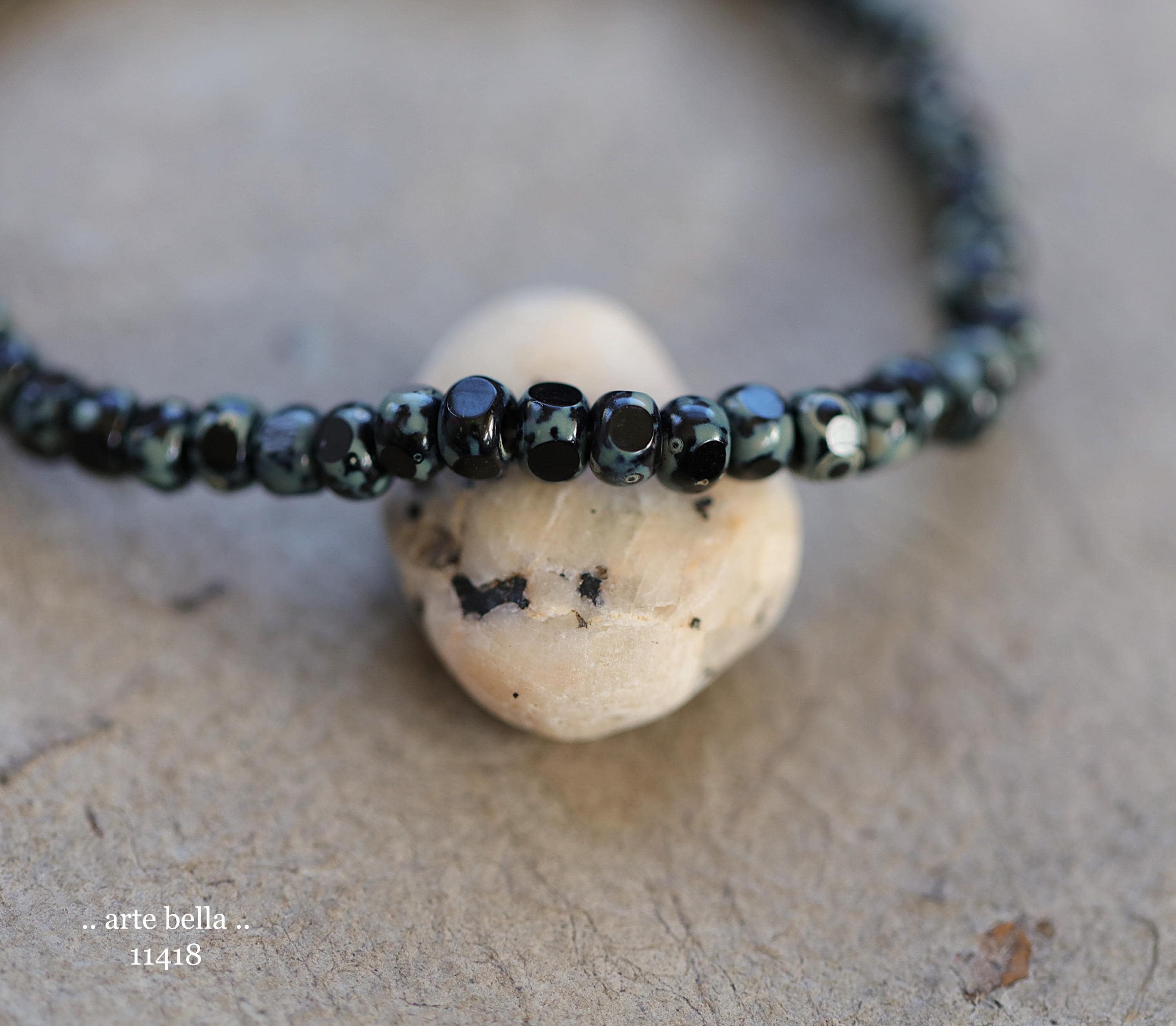 Pretty faceted seed beads in opaque black glass with an earthy Picasso finish, fire polished facets. **PLEASE NOTE: I did notice that some beads are not perfectly faceted due to the handmade nature. Size of the beads do vary, please take this into account before ordering if you require beads to be a precise size for your project.**