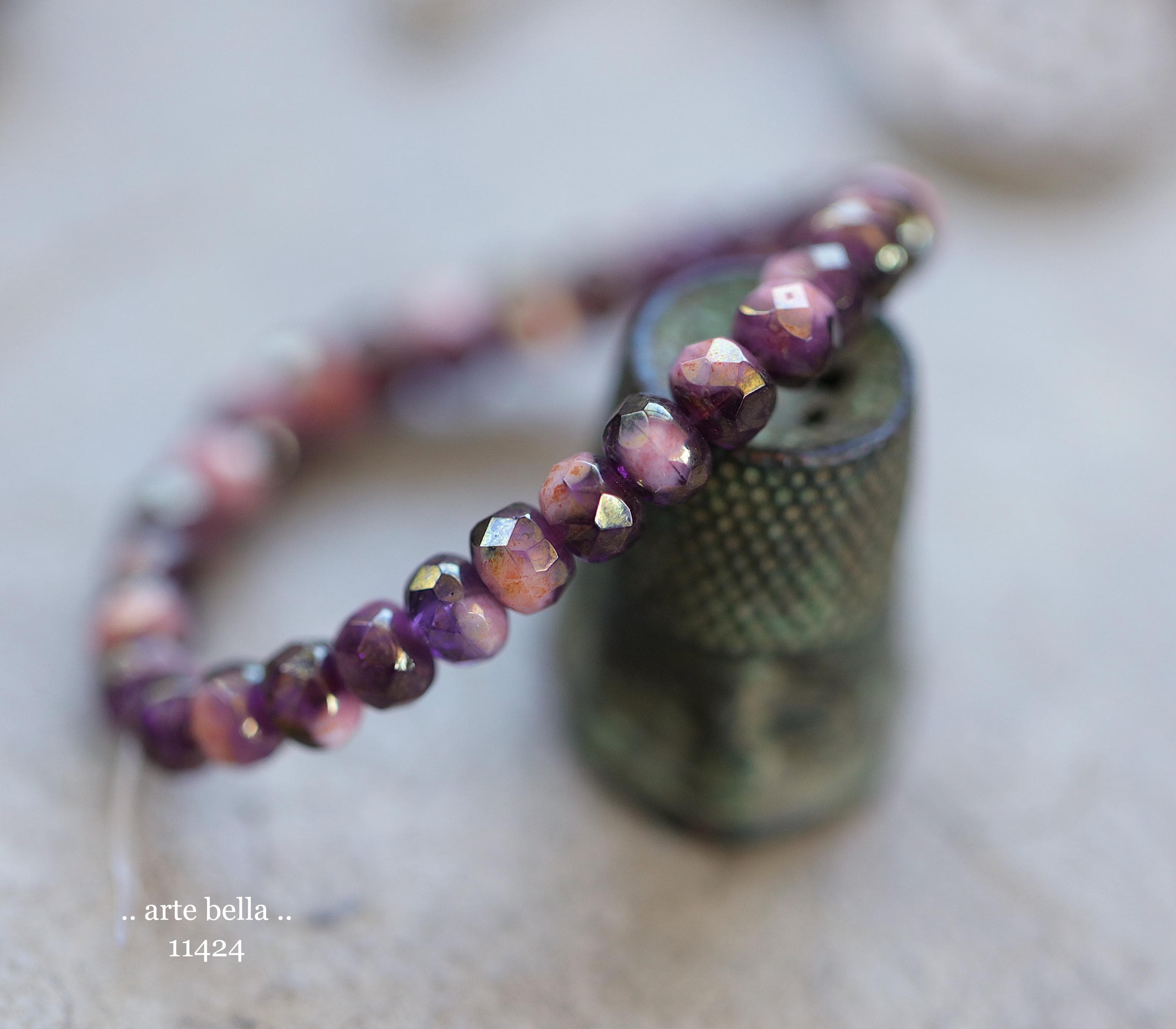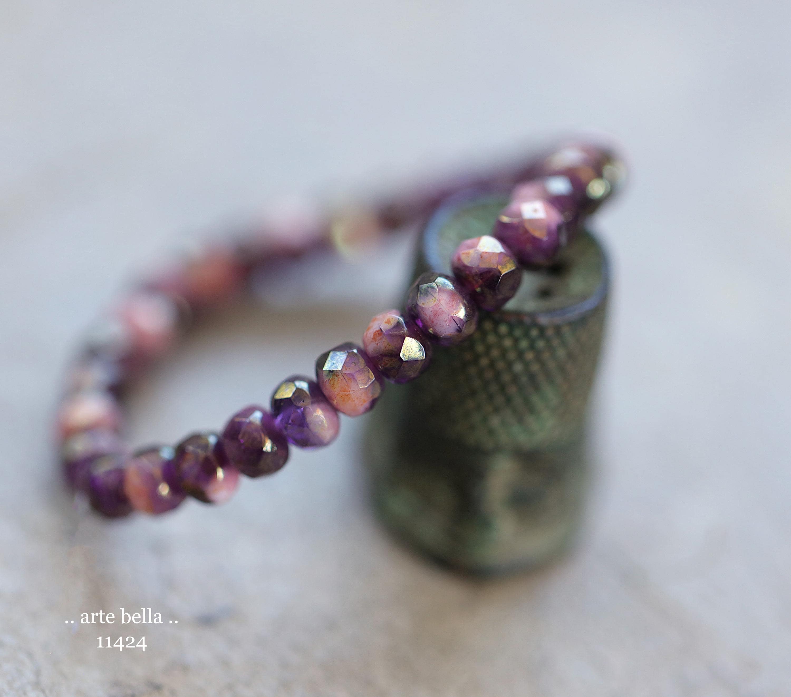 New .. GOLDEN PINK GRAPE Babies .. 30 Premium Czech Glass Faceted Rondelle Beads 3x5mm (11424-st) .. jewelry supplies