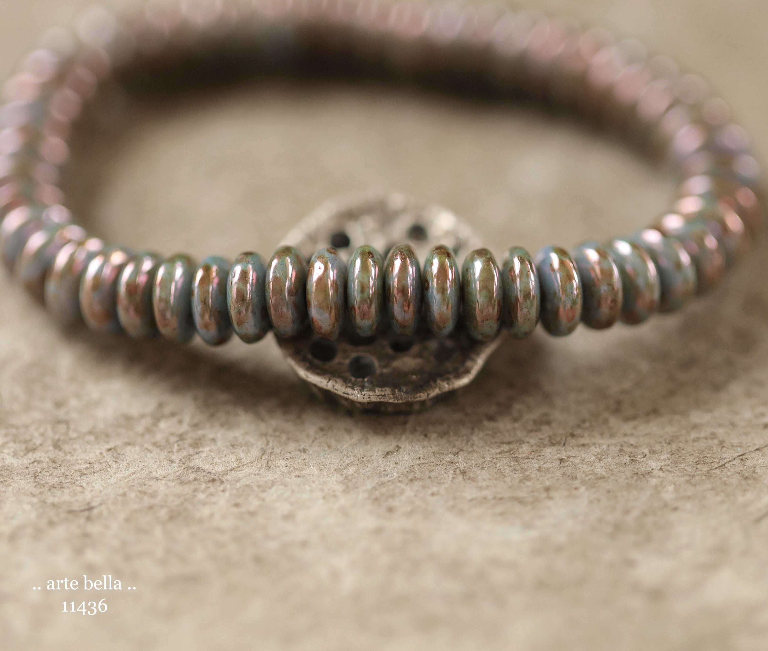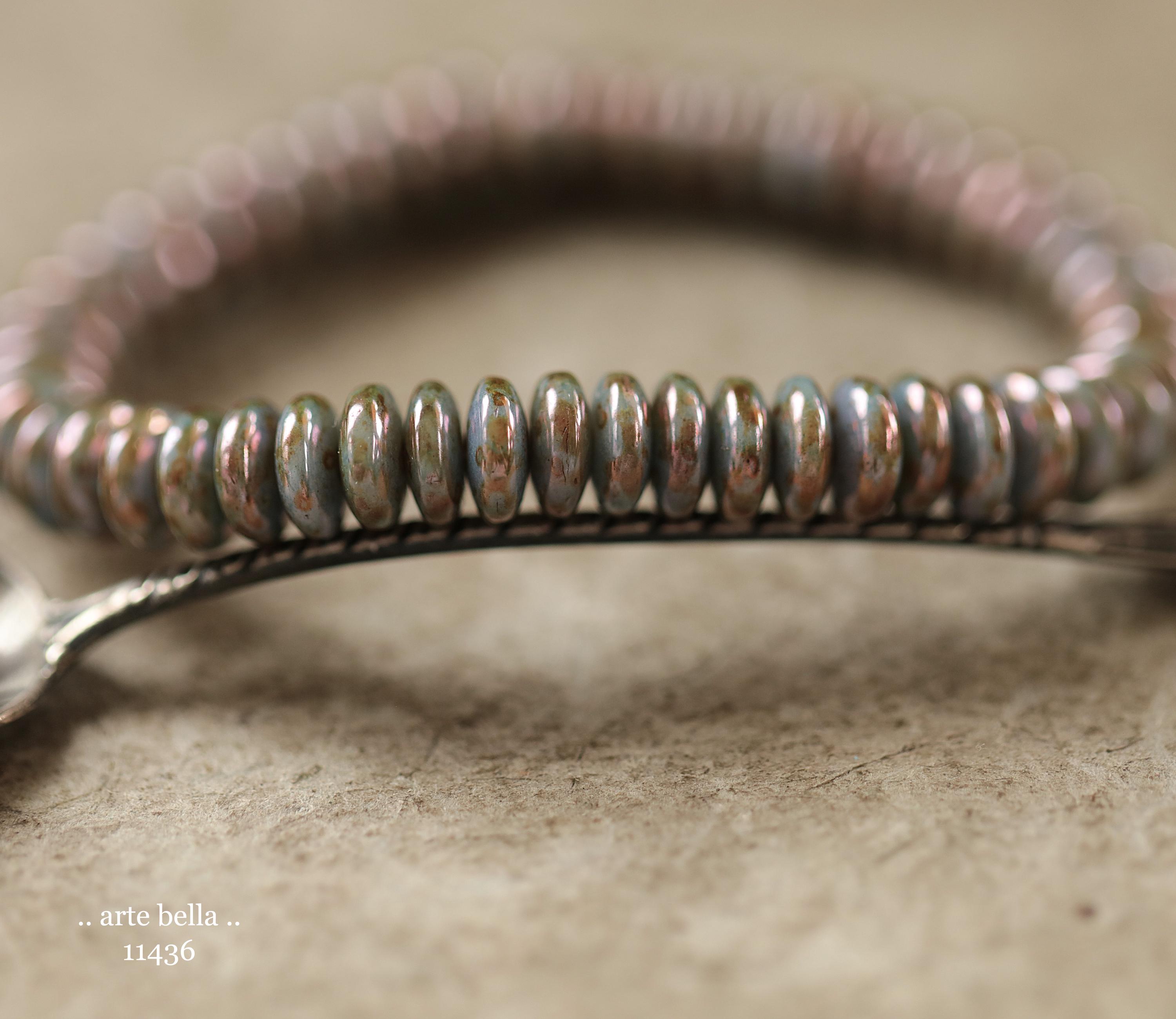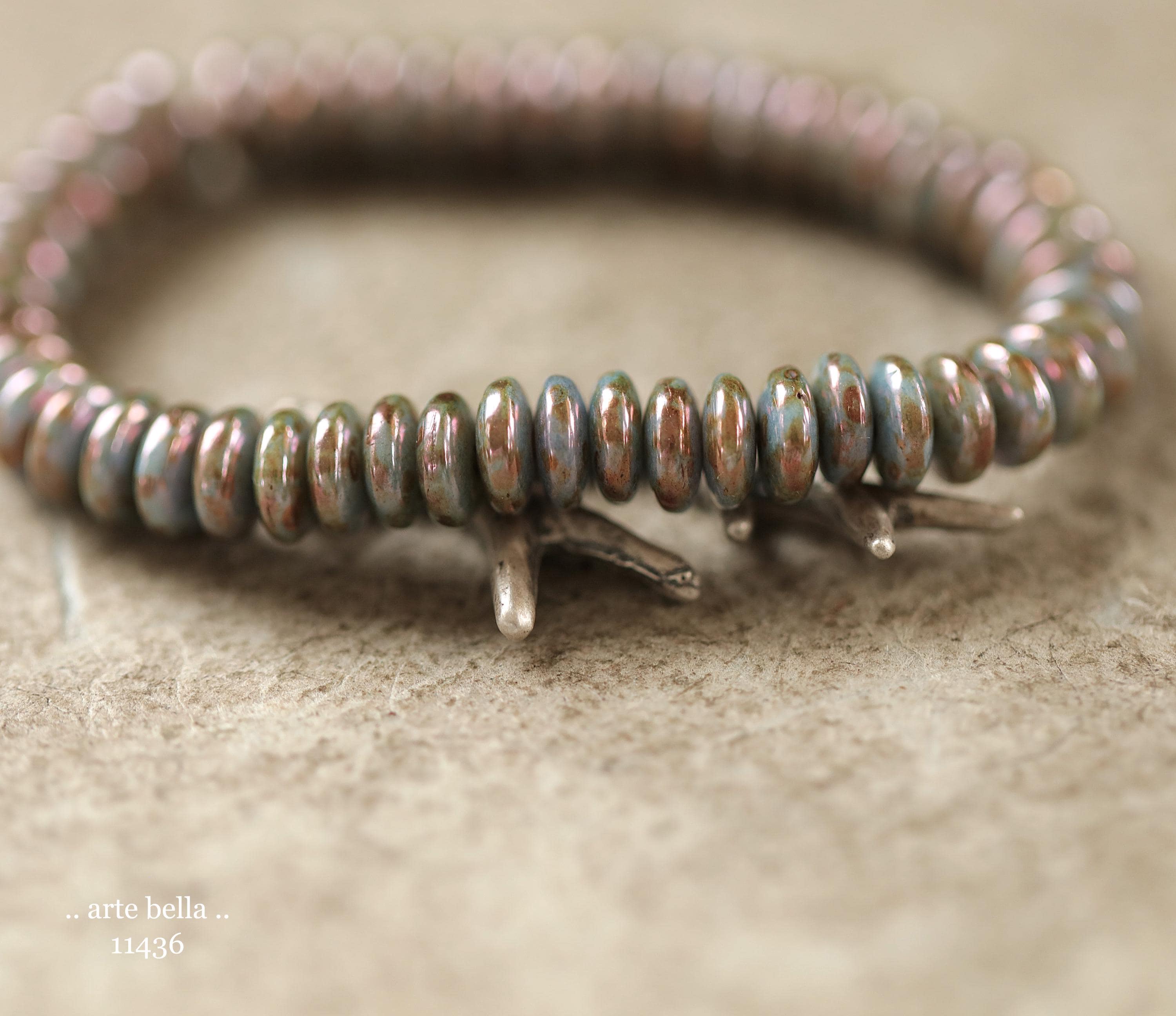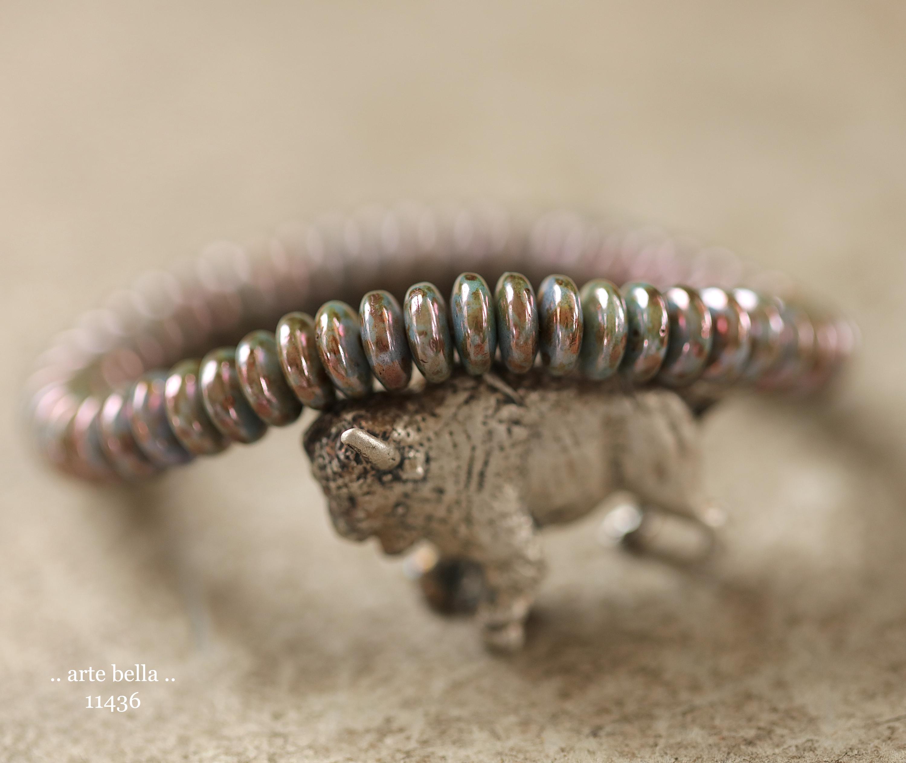 Gorgeous varying shades of blue, sage and purple Picasso with a bronze metallic luster finish. **PLEASE NOTE: The bead colors do vary as seen in my pictures.**