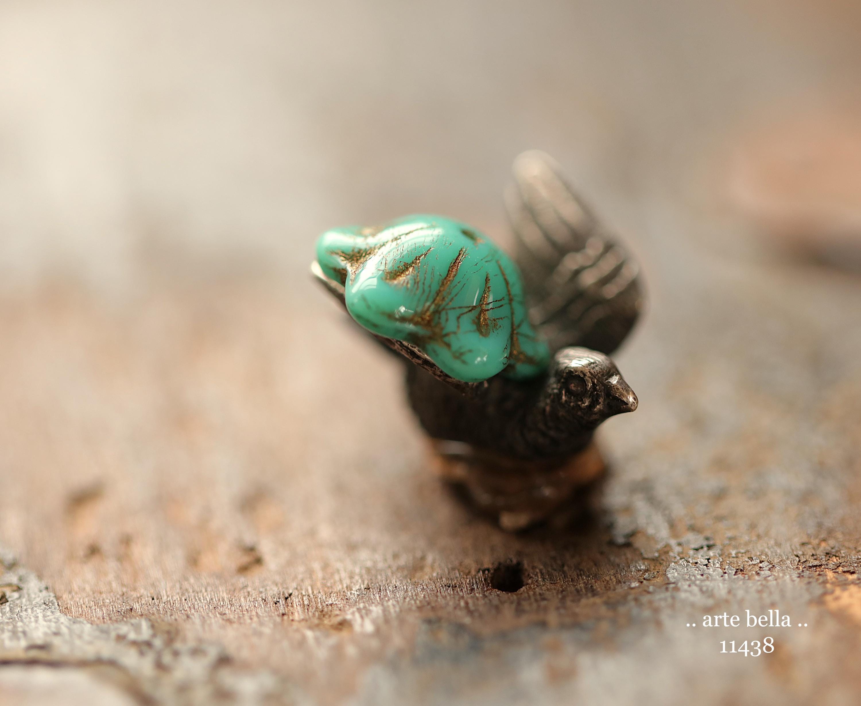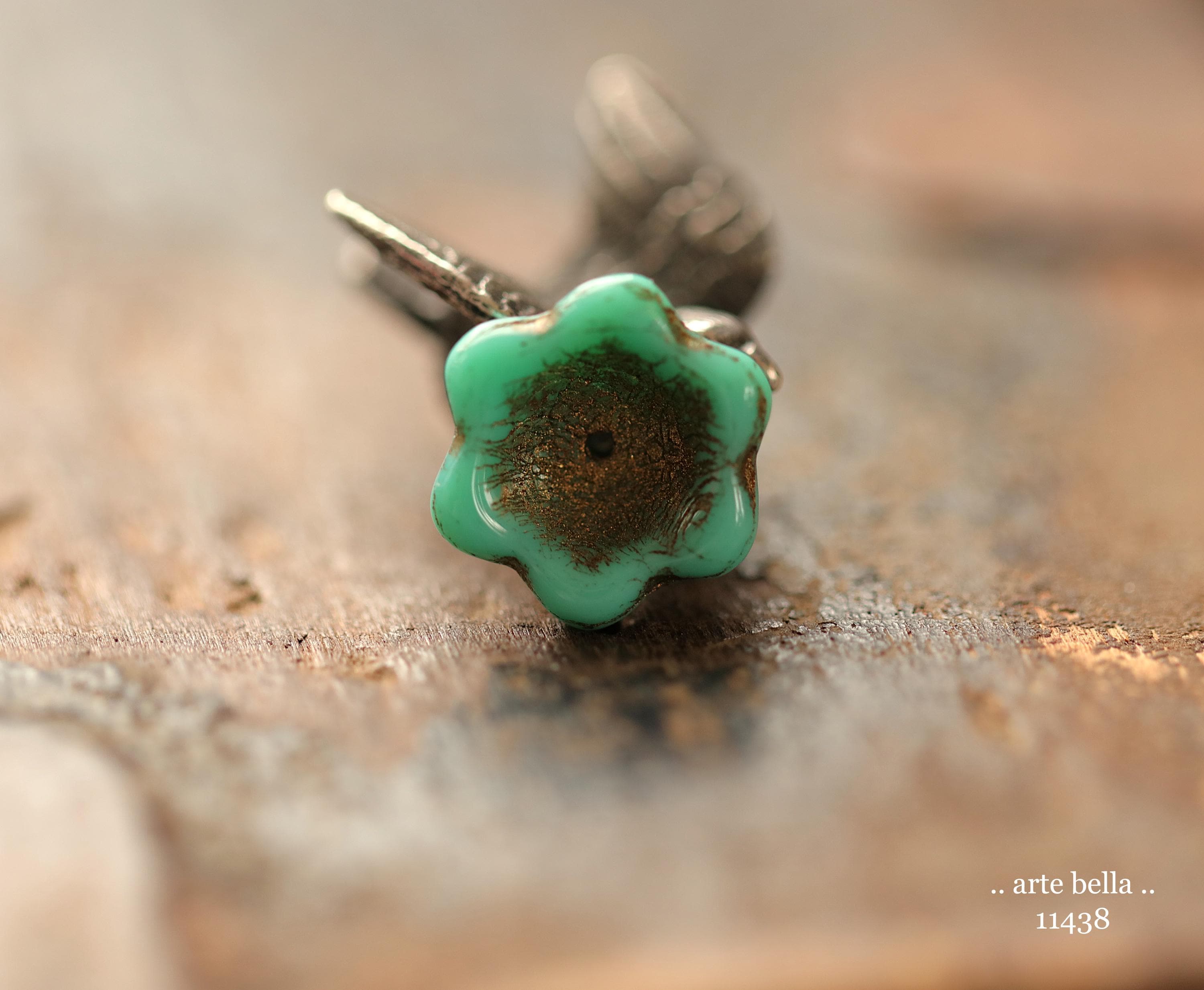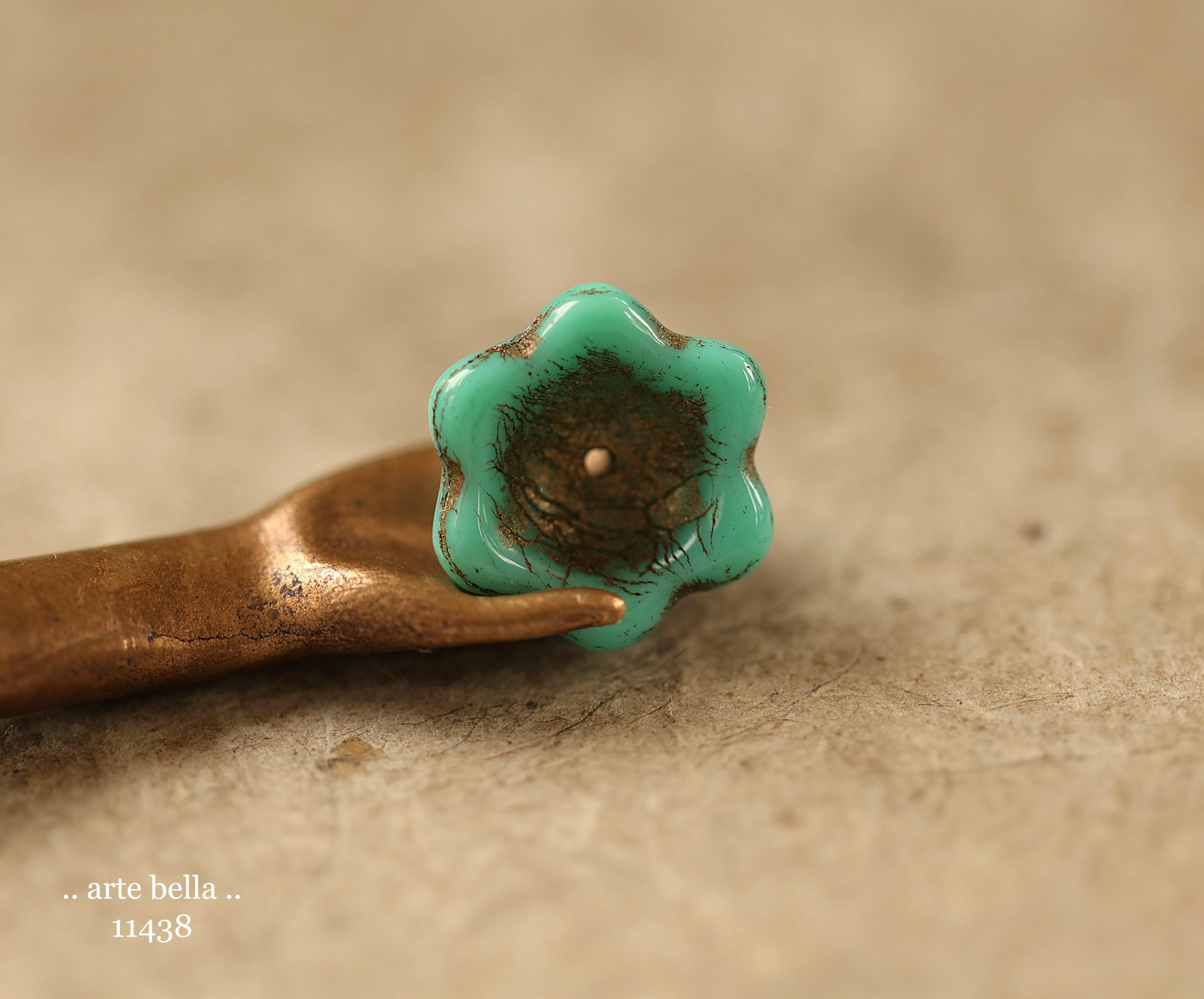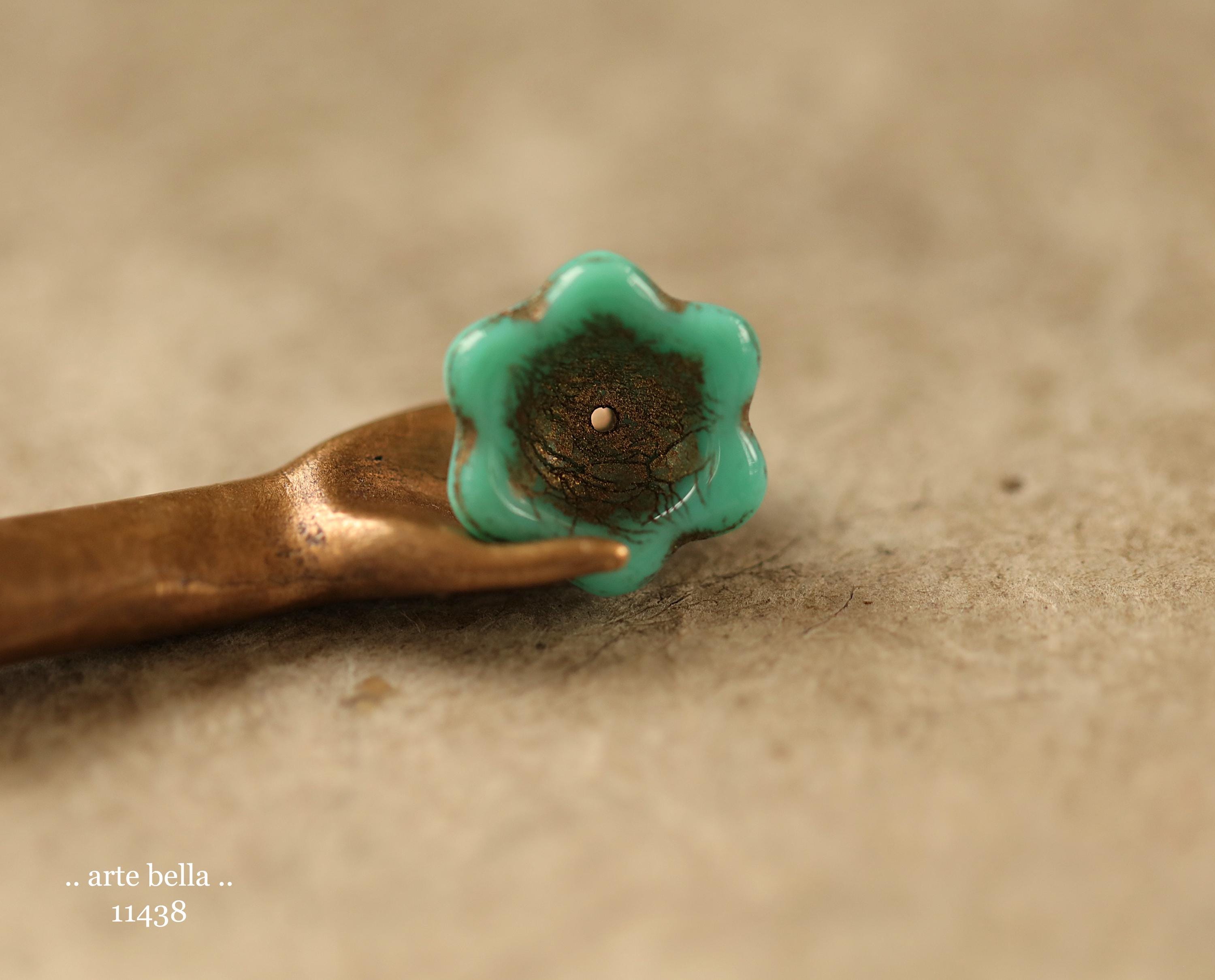 New .. BRONZED TURQUOISE WHIMSY .. 20 Premium Czech Glass Bellflower Beads 14x6mm (11438-st) .. jewelry supplies