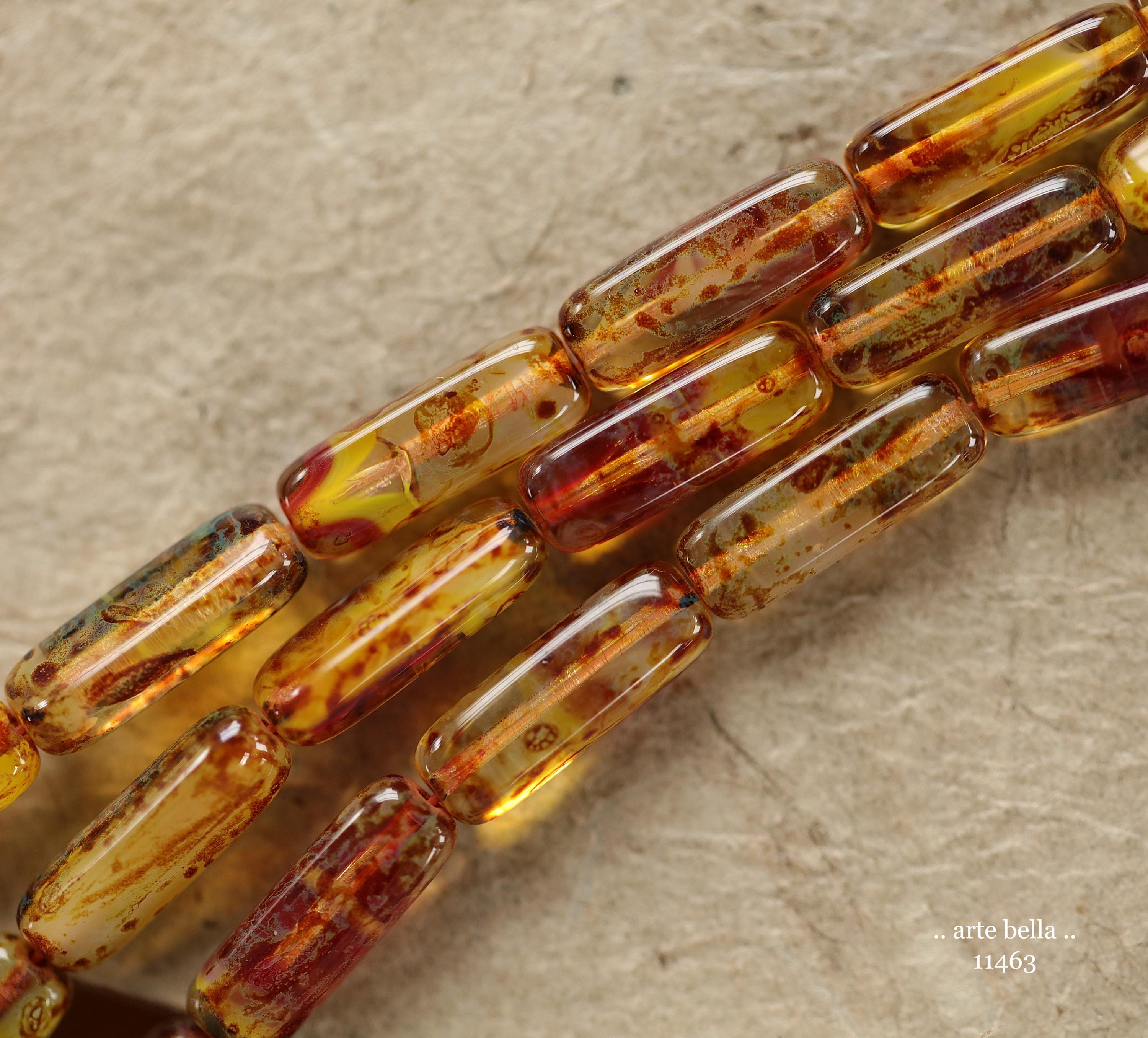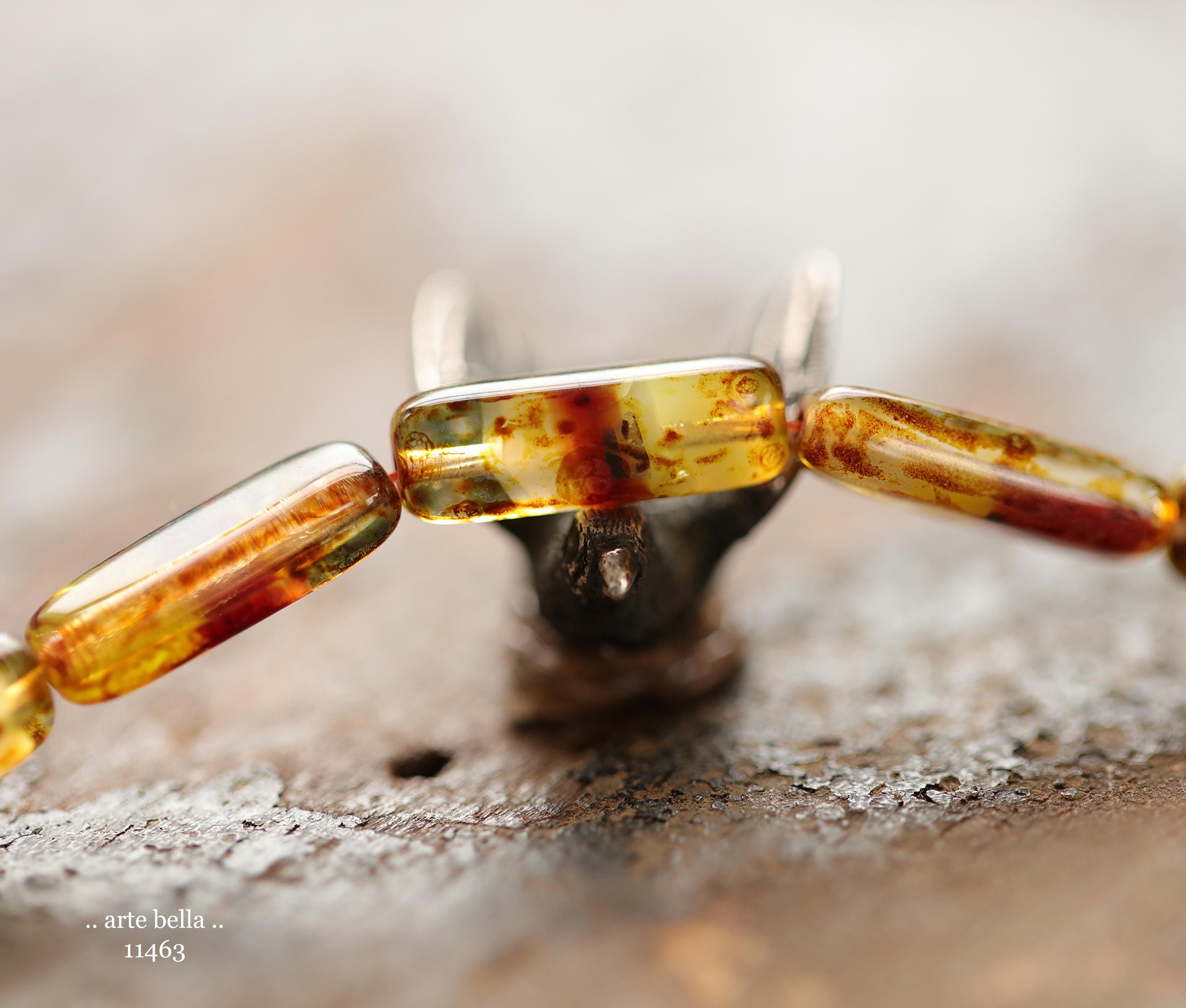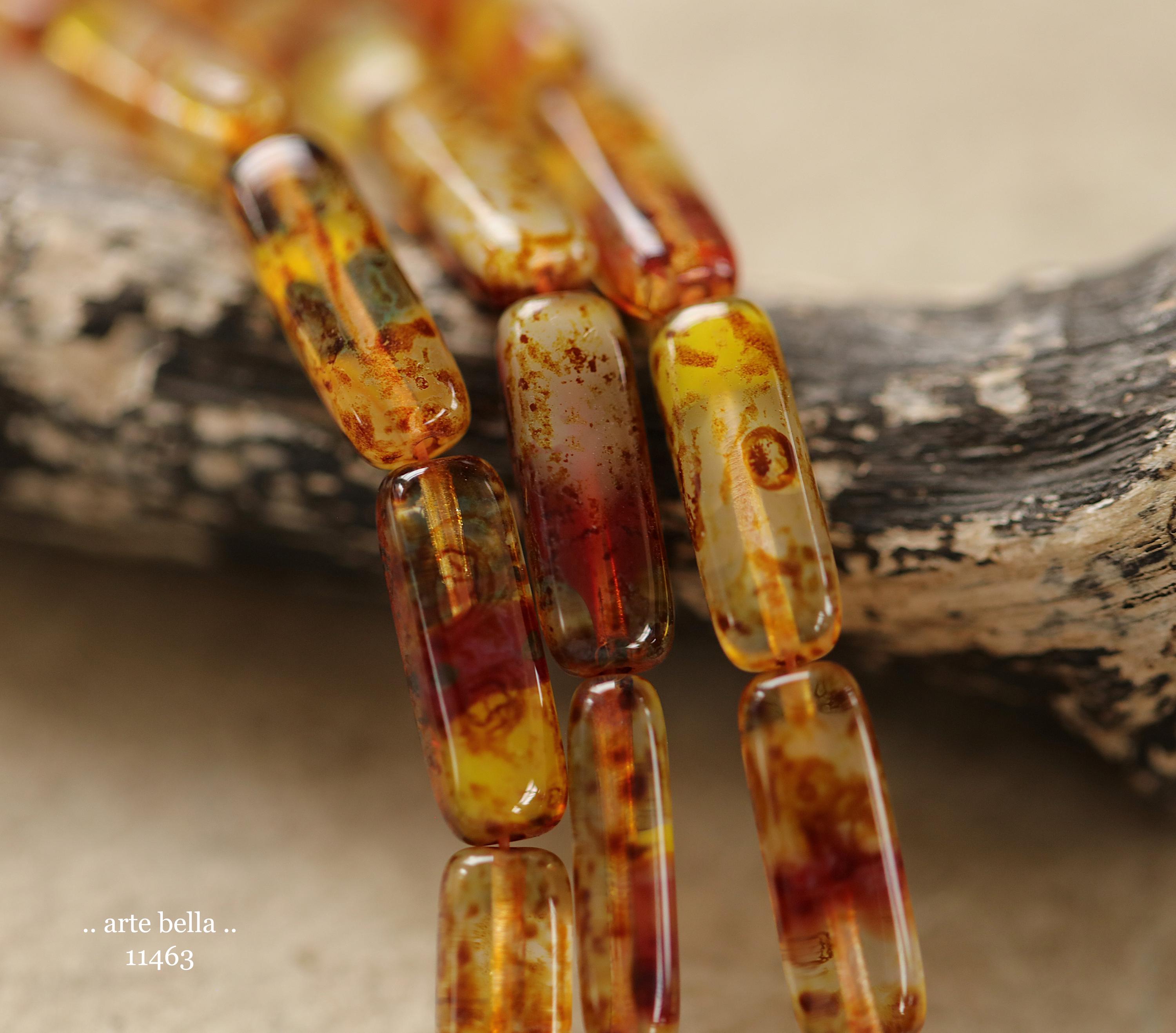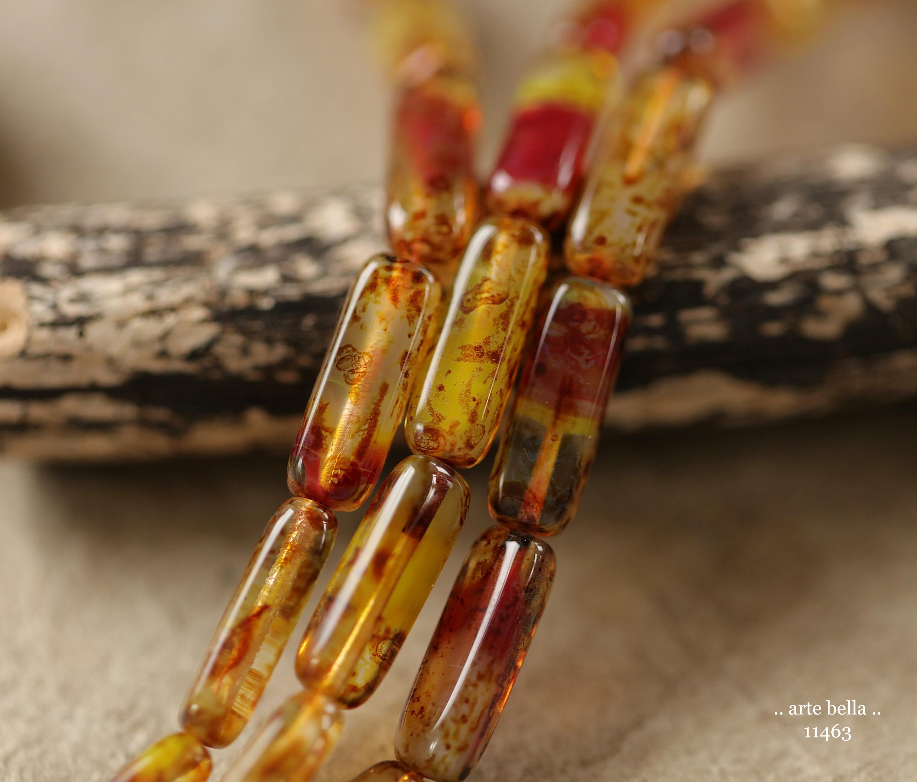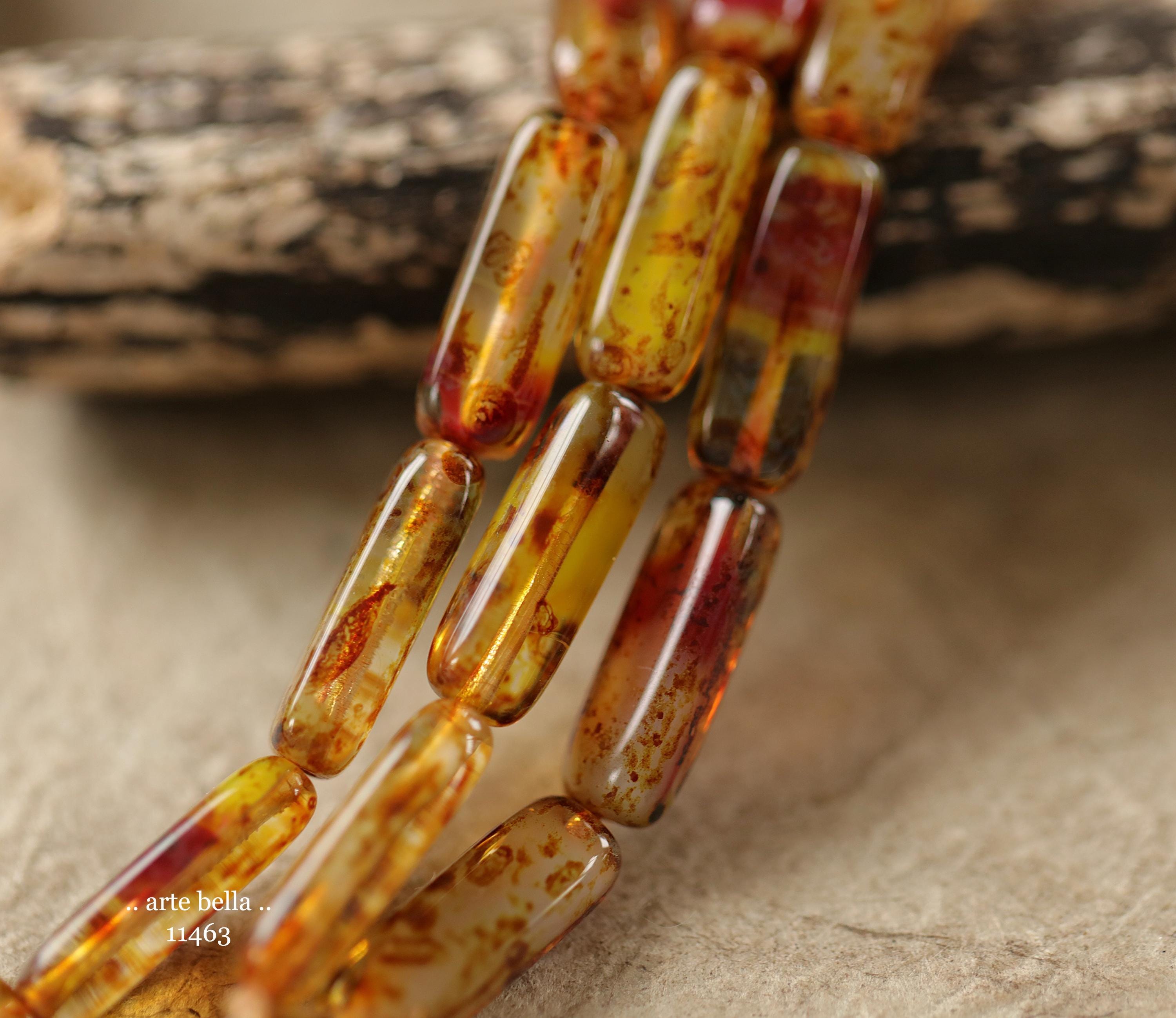 New .. EARTHY ZINNIA STICK Mix .. 14 Picasso Czech Glass Rectangle Tube Beads 15x5mm (11463-st) .. jewelry supplies