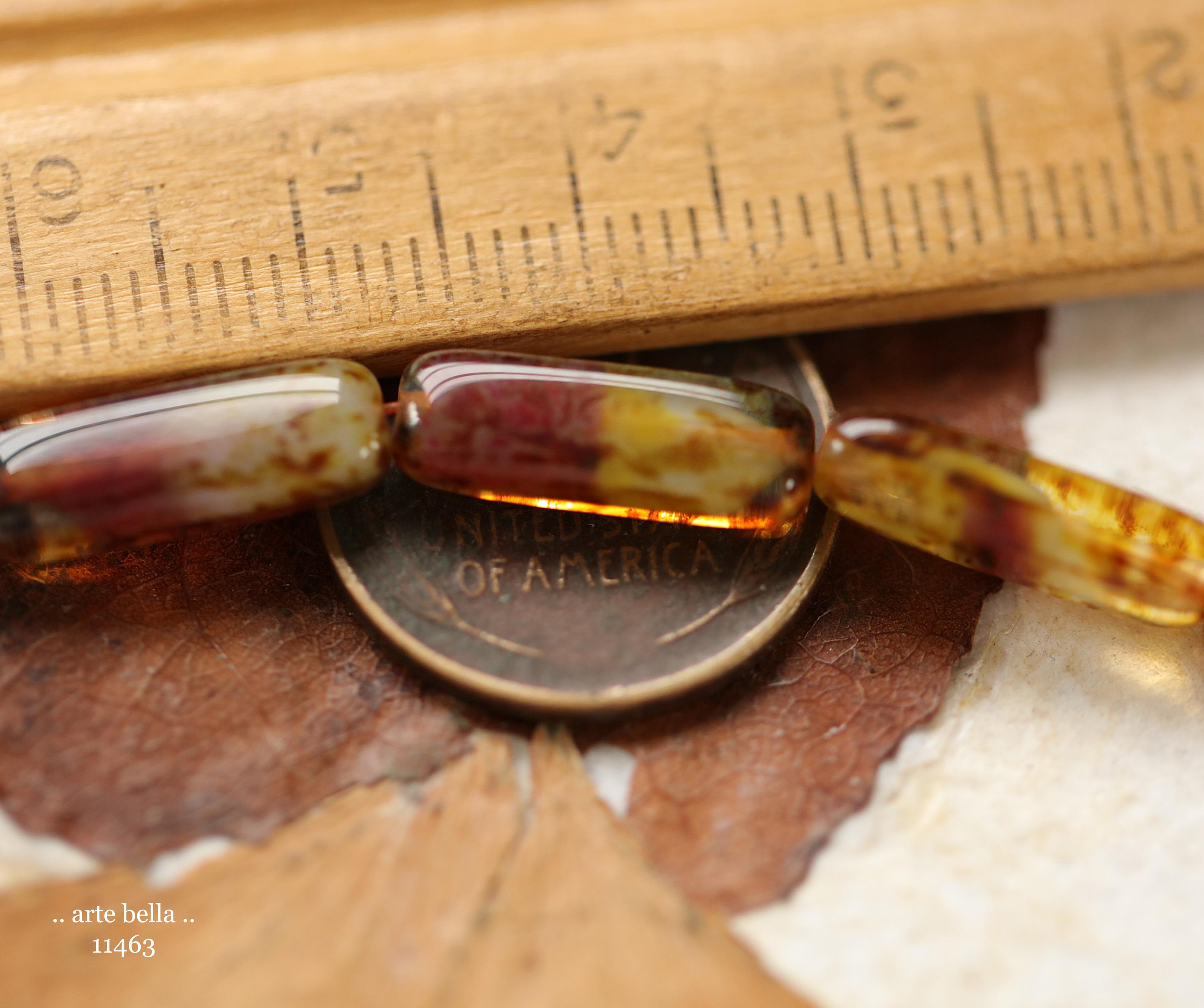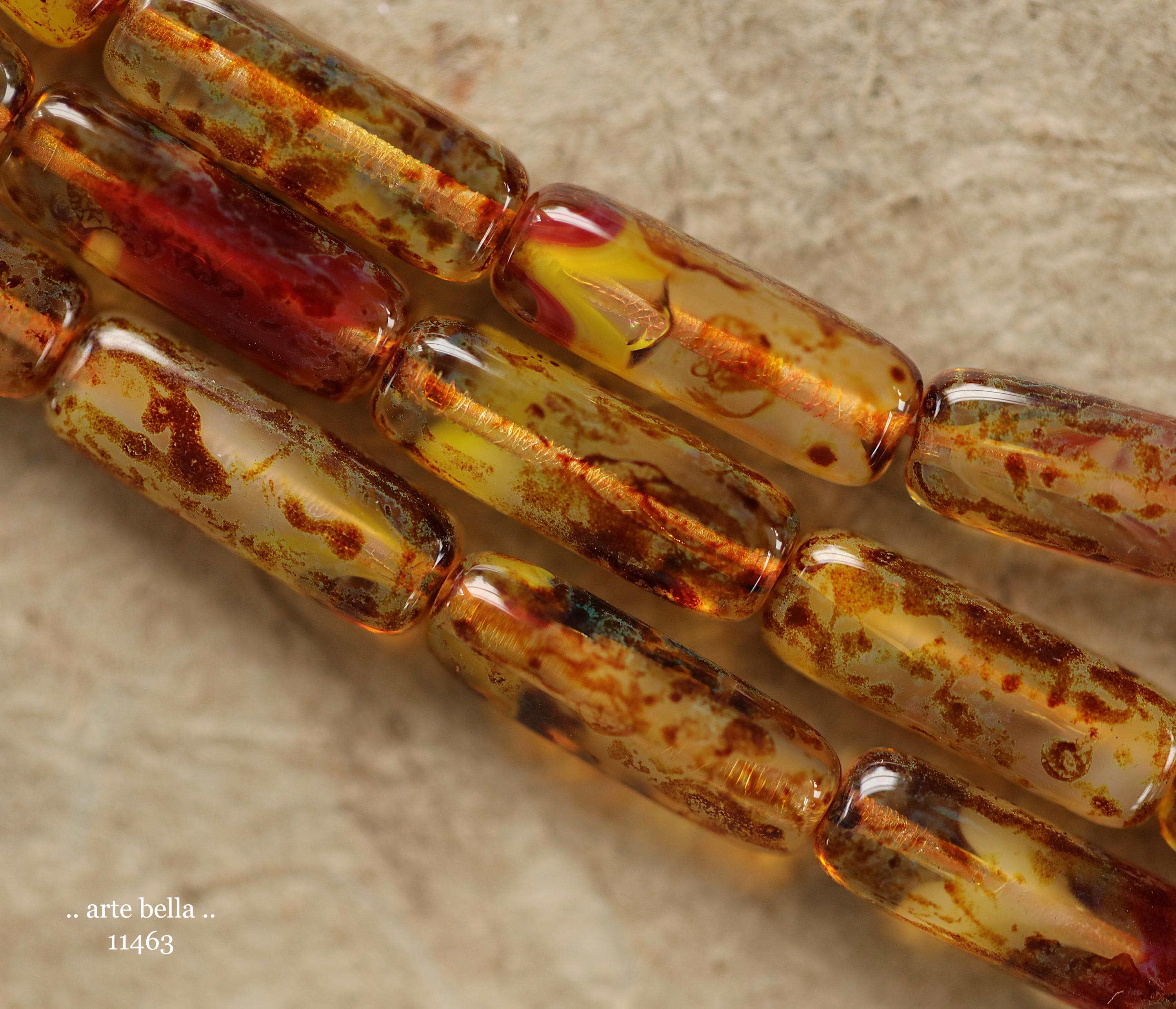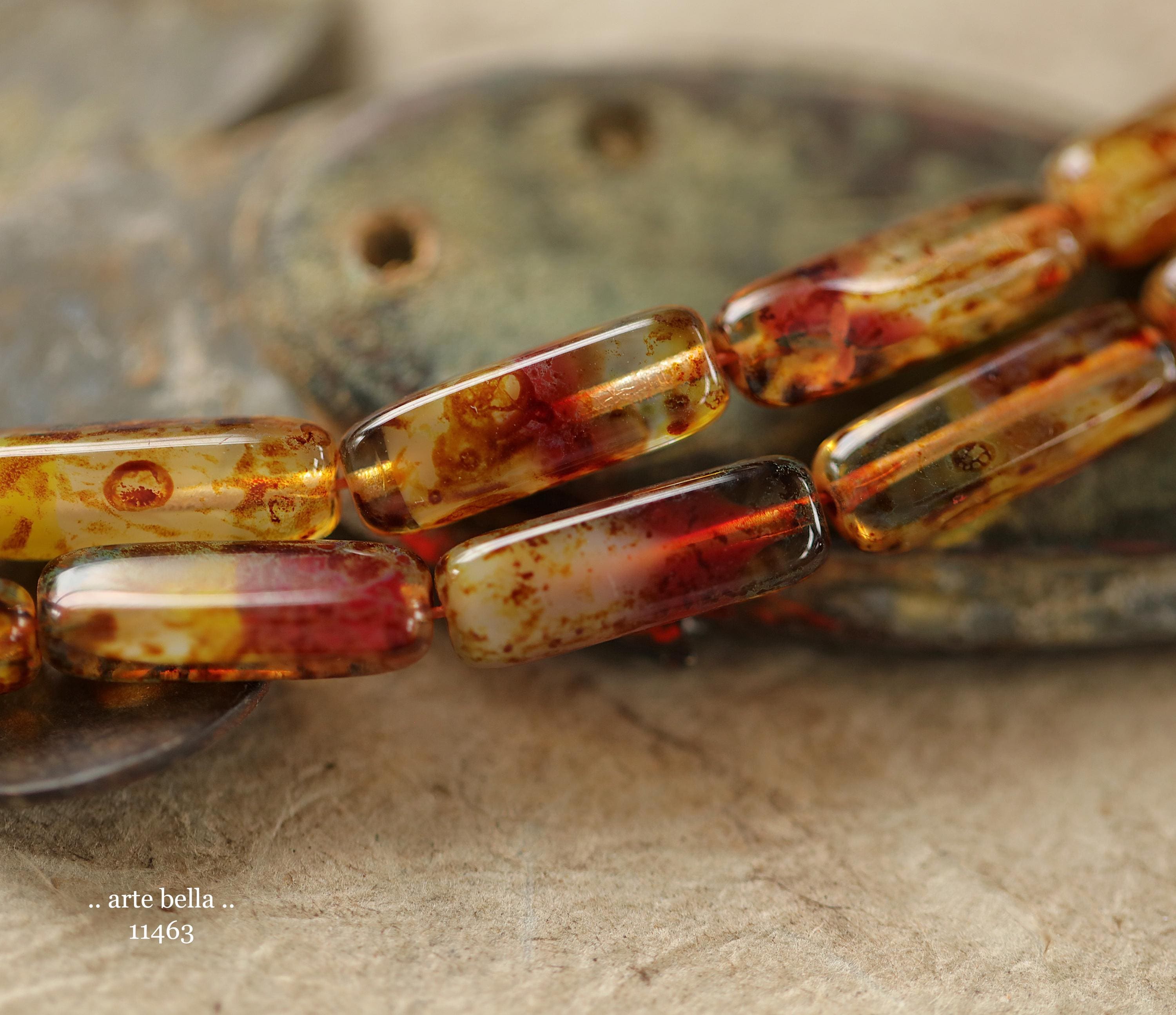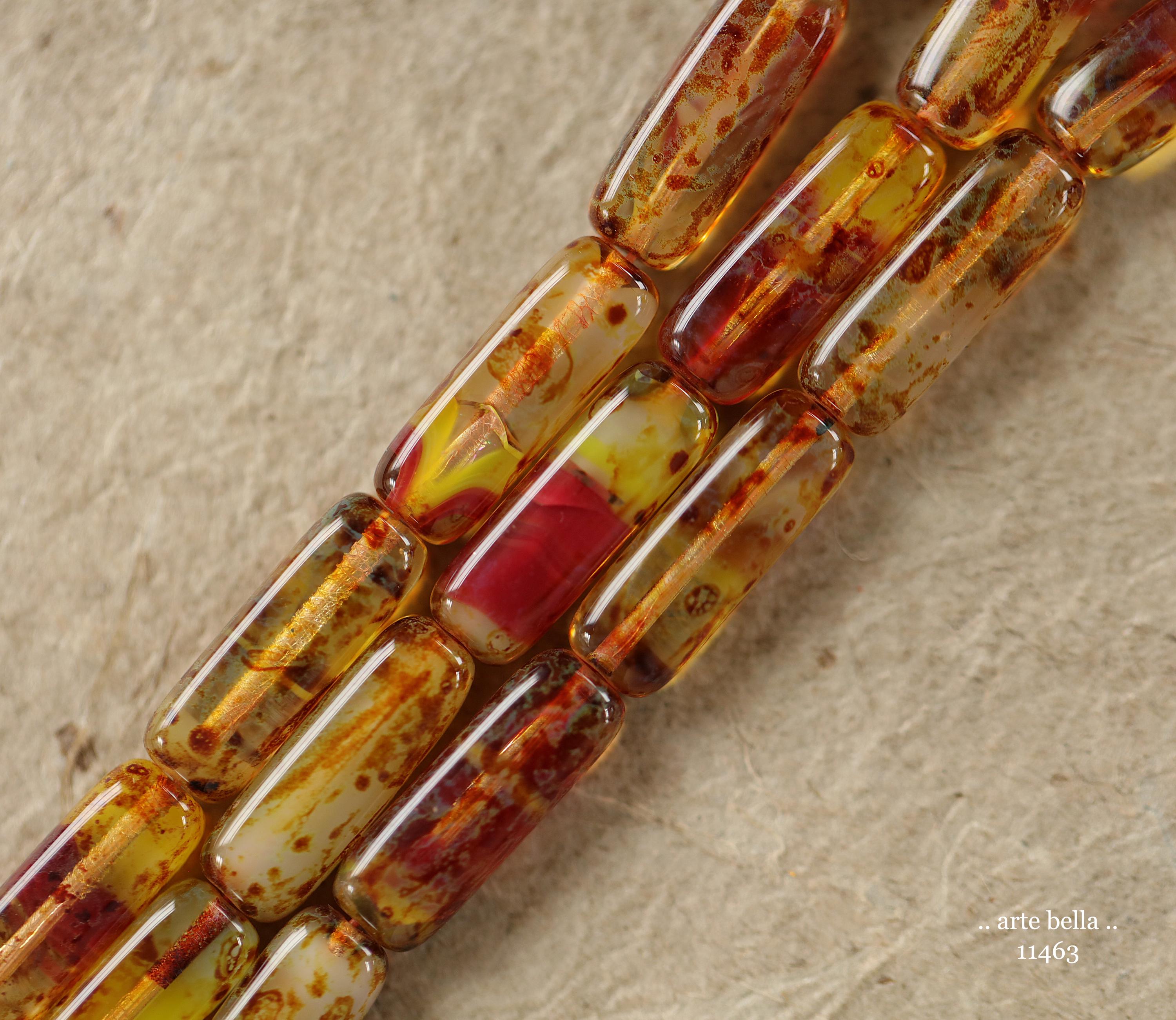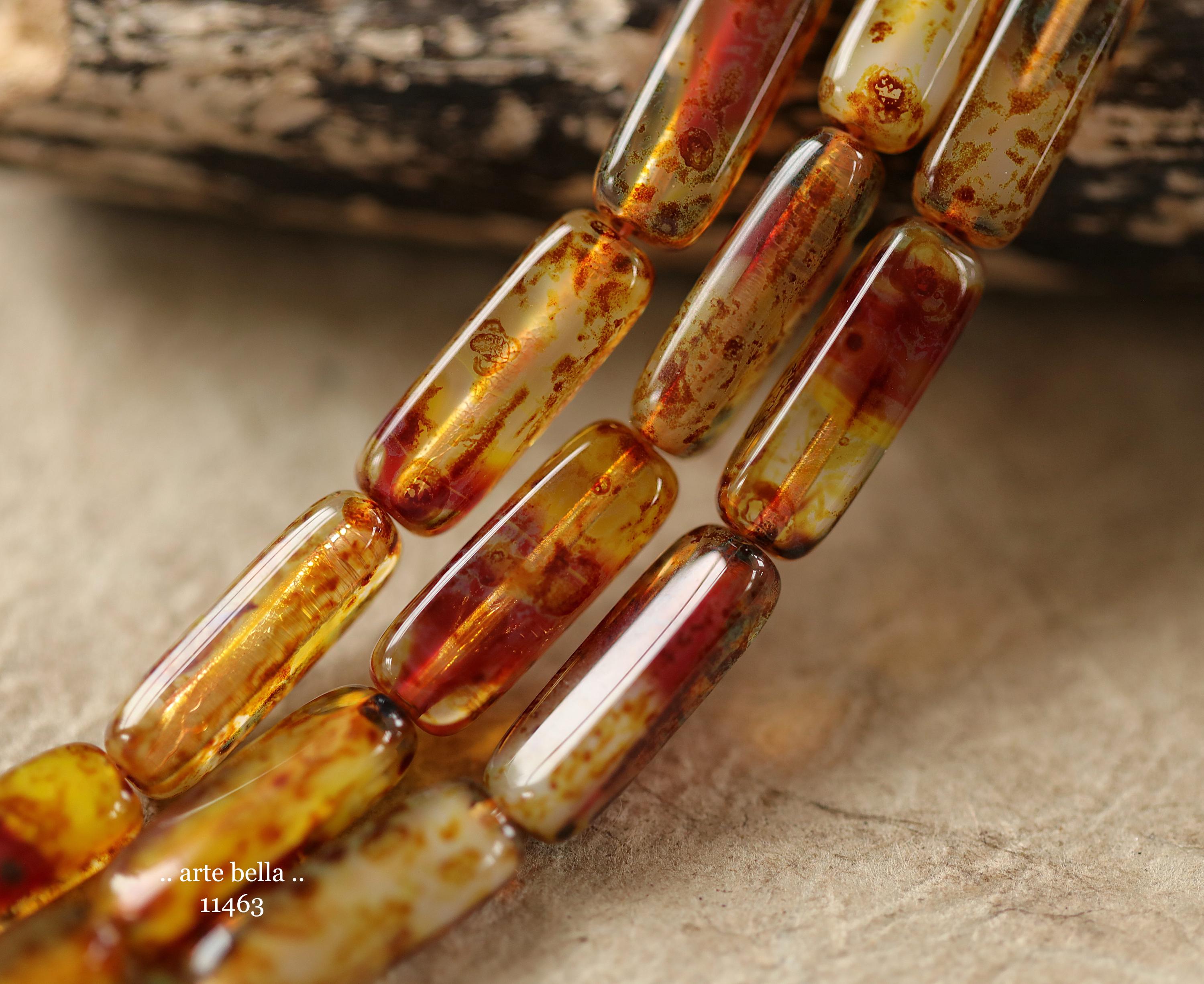 New .. EARTHY ZINNIA STICK Mix .. 14 Picasso Czech Glass Rectangle Tube Beads 15x5mm (11463-st) .. jewelry supplies
