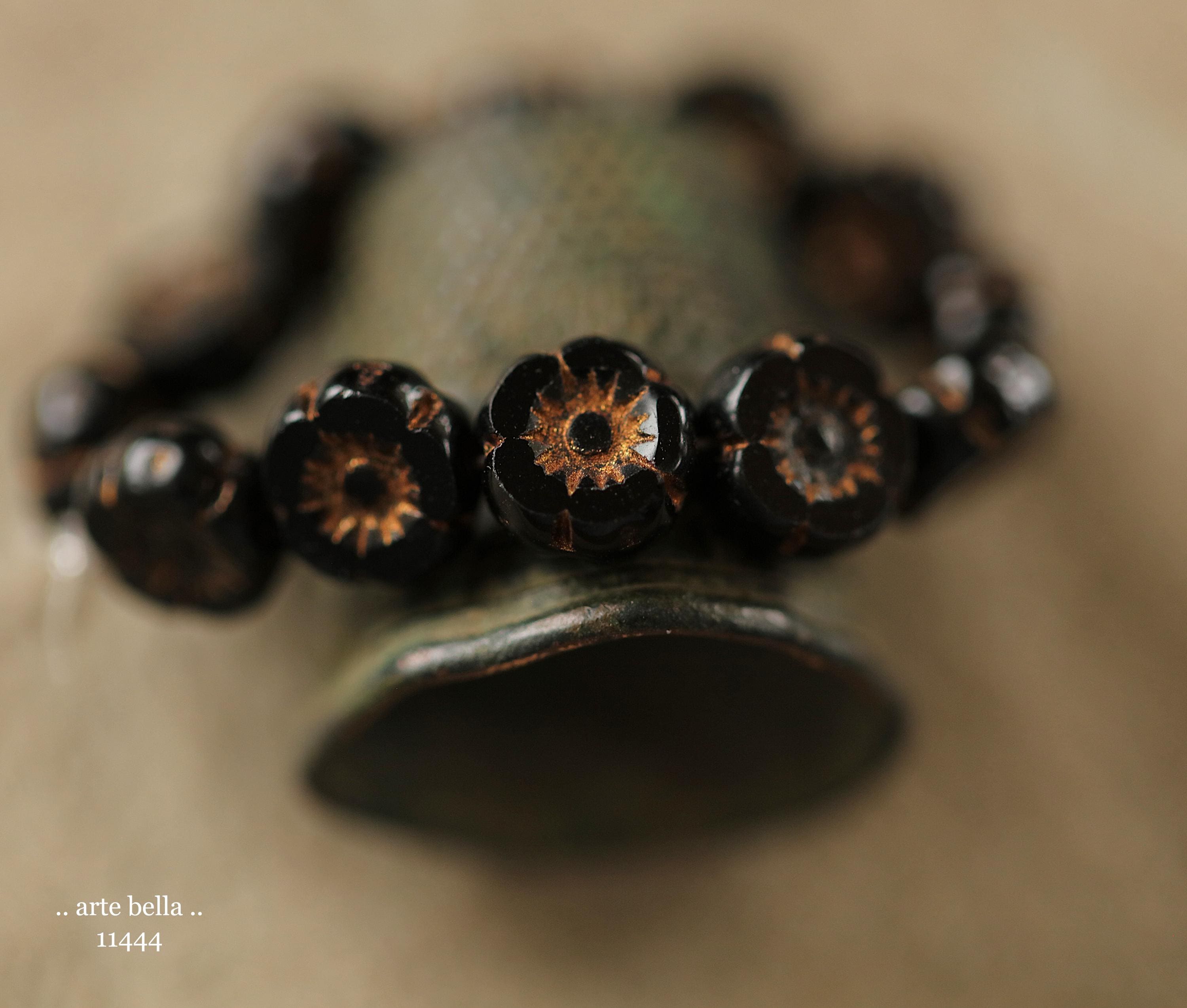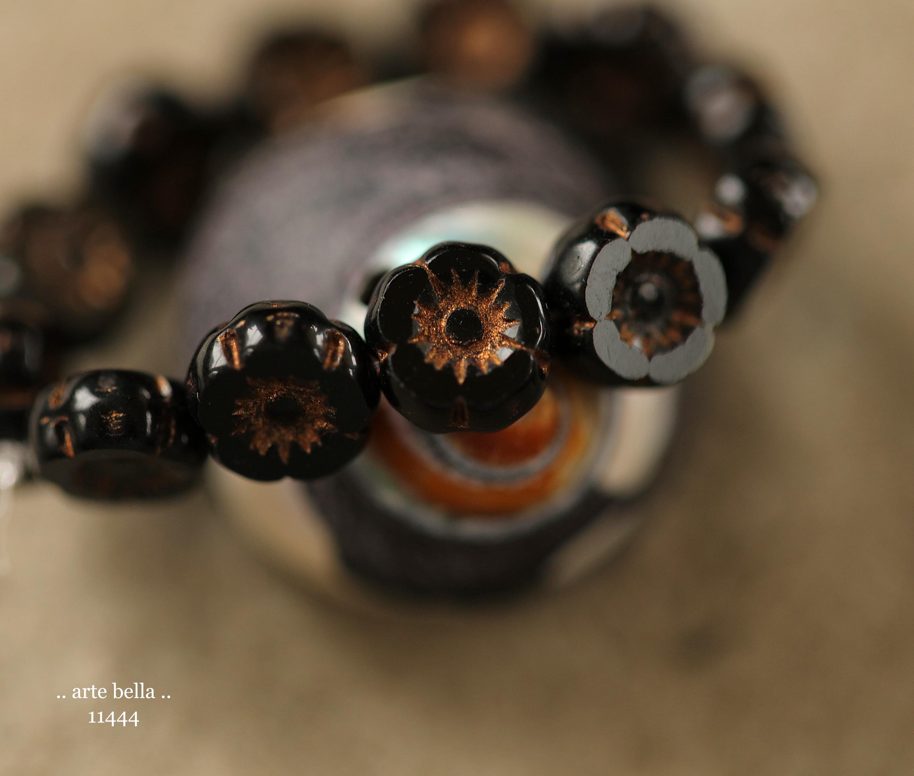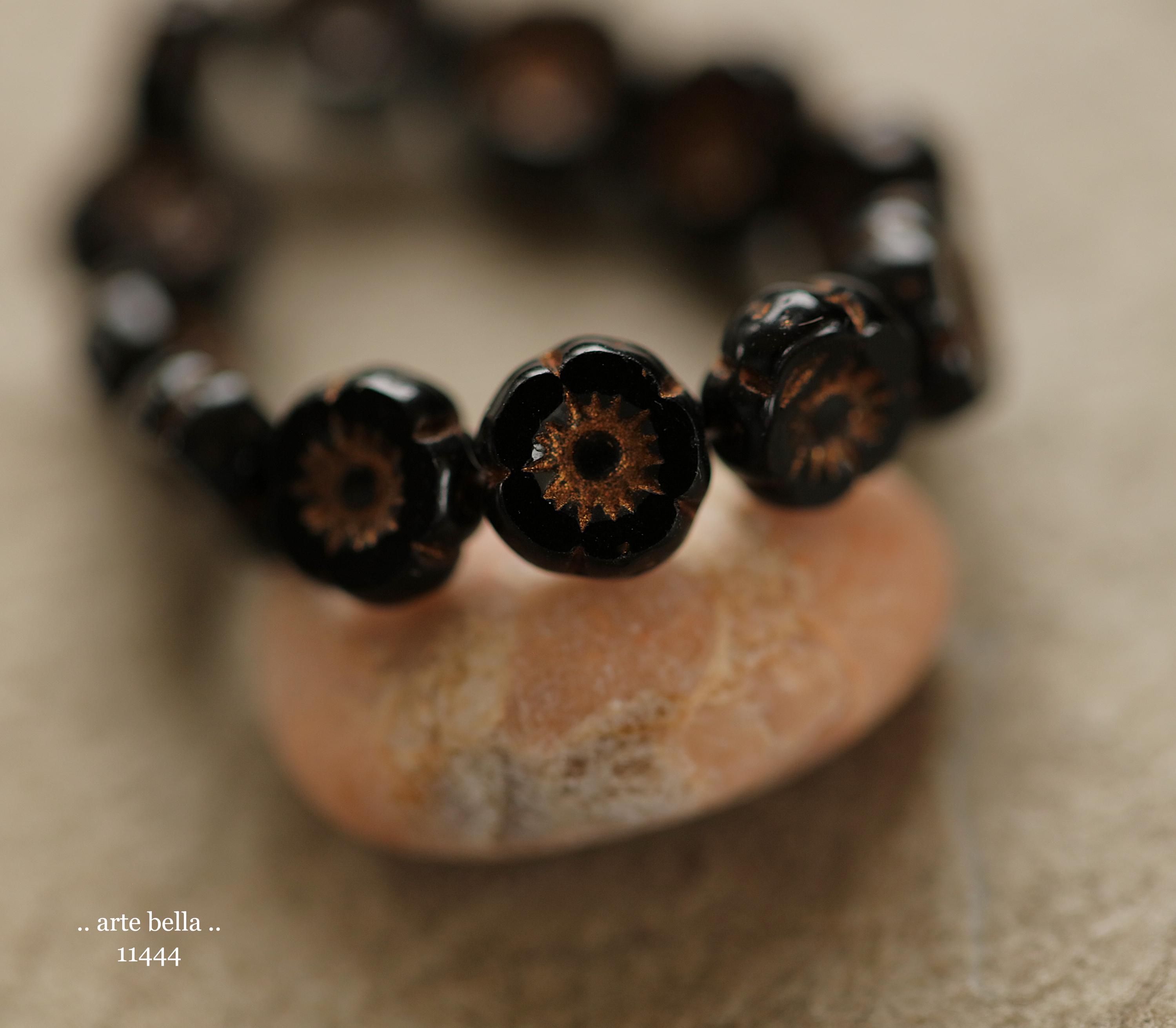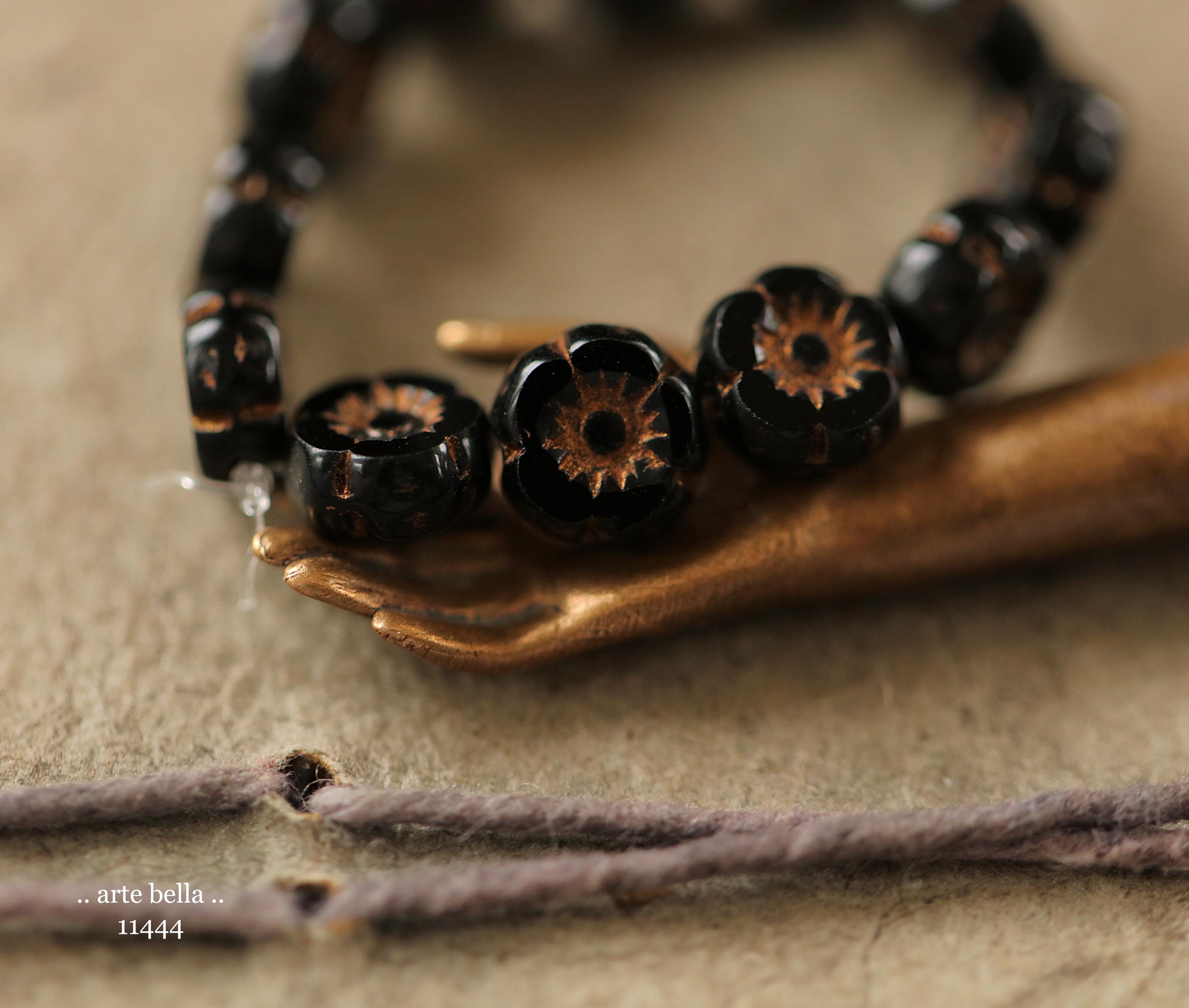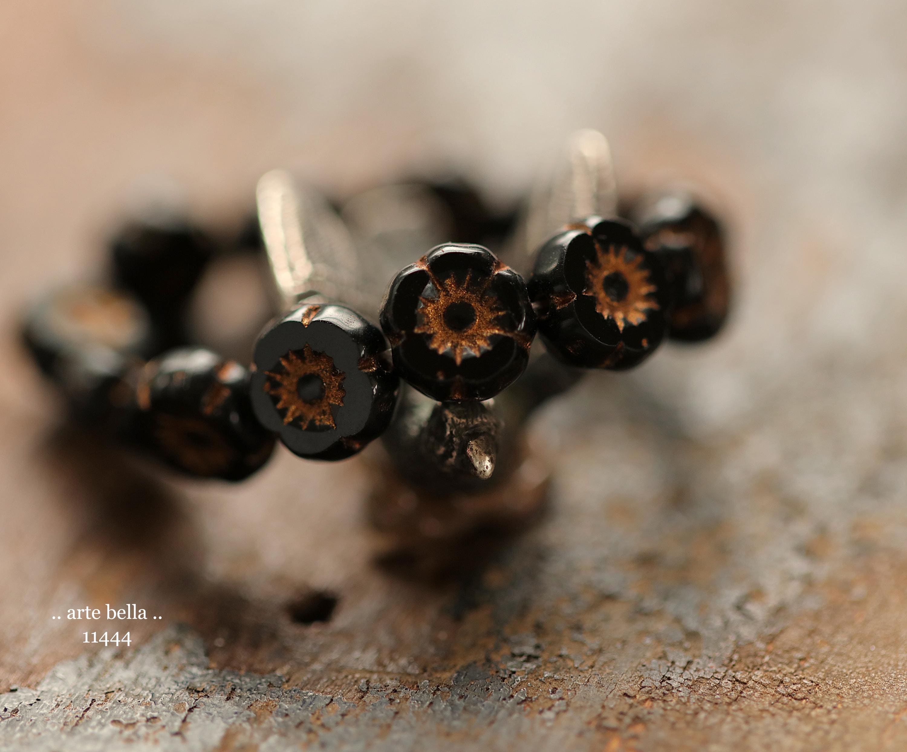 New .. BRONZE TWLIGHT PANSY 7mm .. 12 Premium Czech Glass Petite Hibiscus Flower Beads (11444-st) .. jewelry supplies