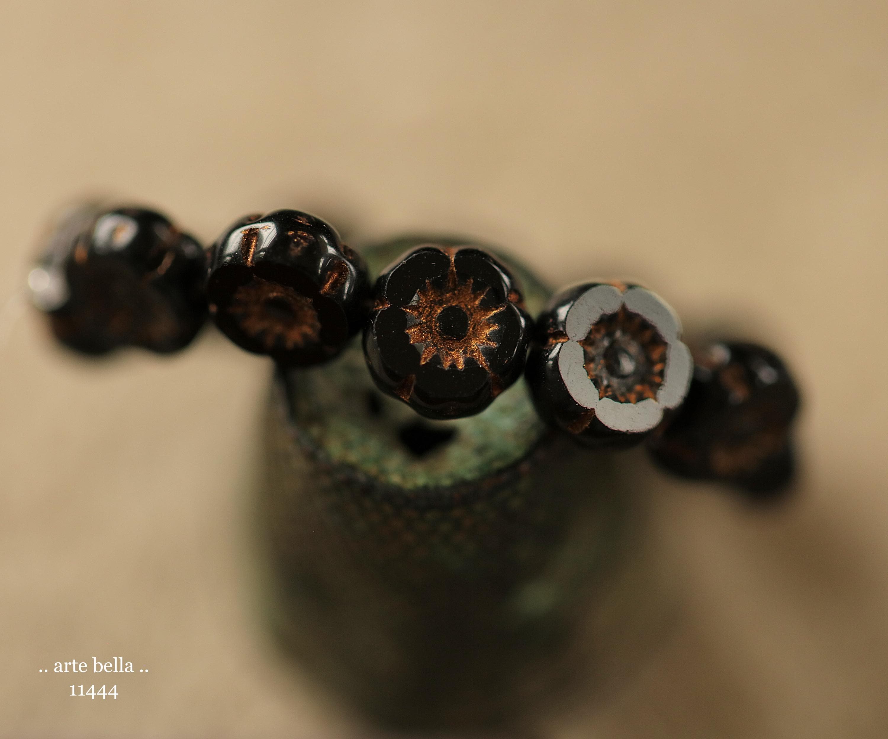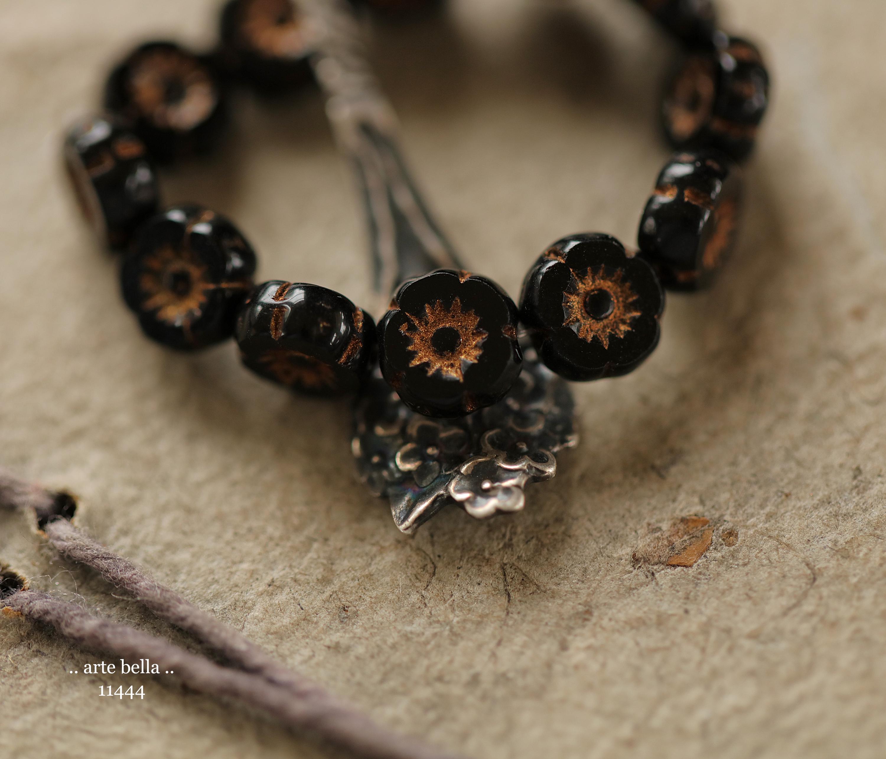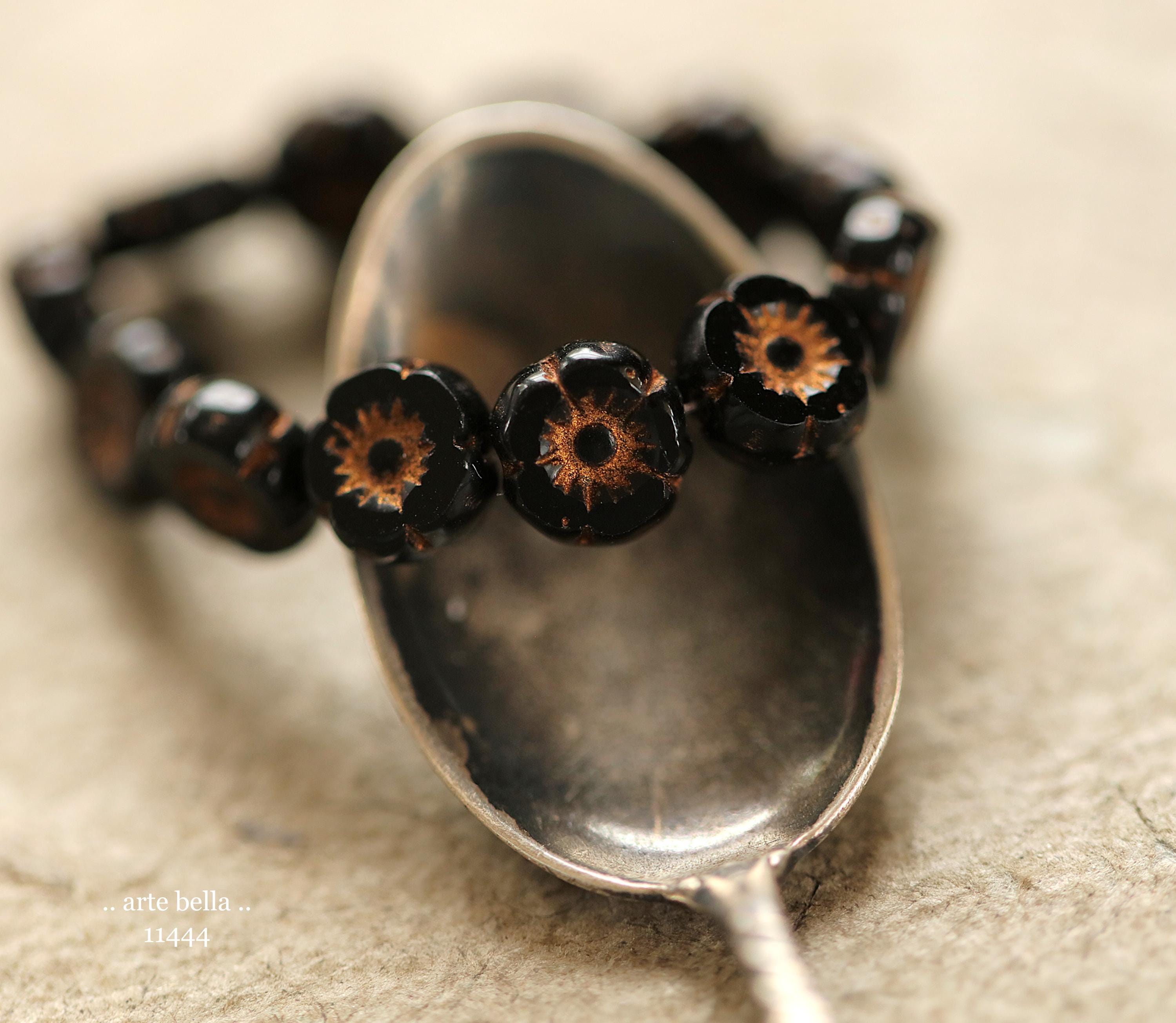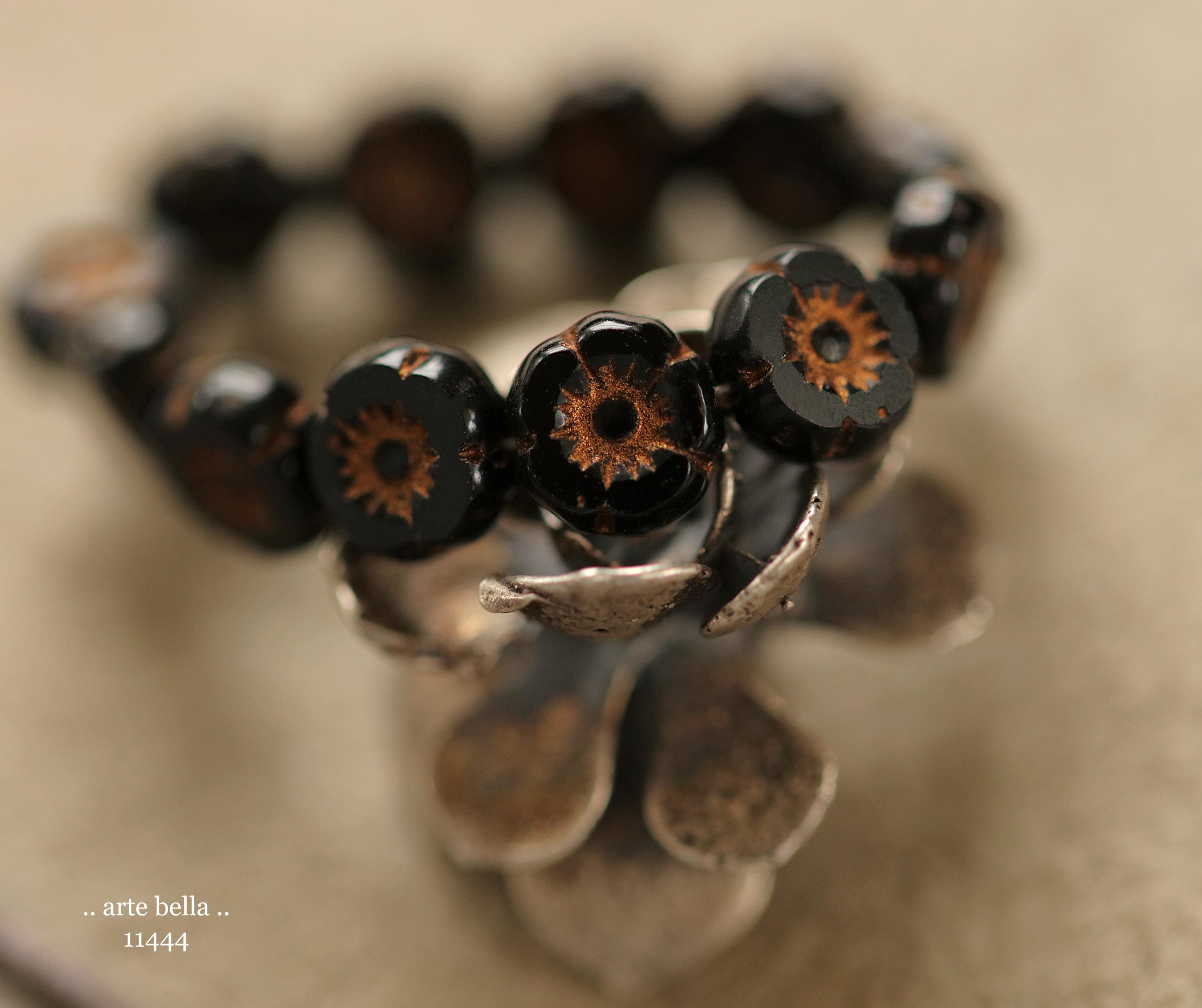 New .. BRONZE TWLIGHT PANSY 7mm .. 12 Premium Czech Glass Petite Hibiscus Flower Beads (11444-st) .. jewelry supplies