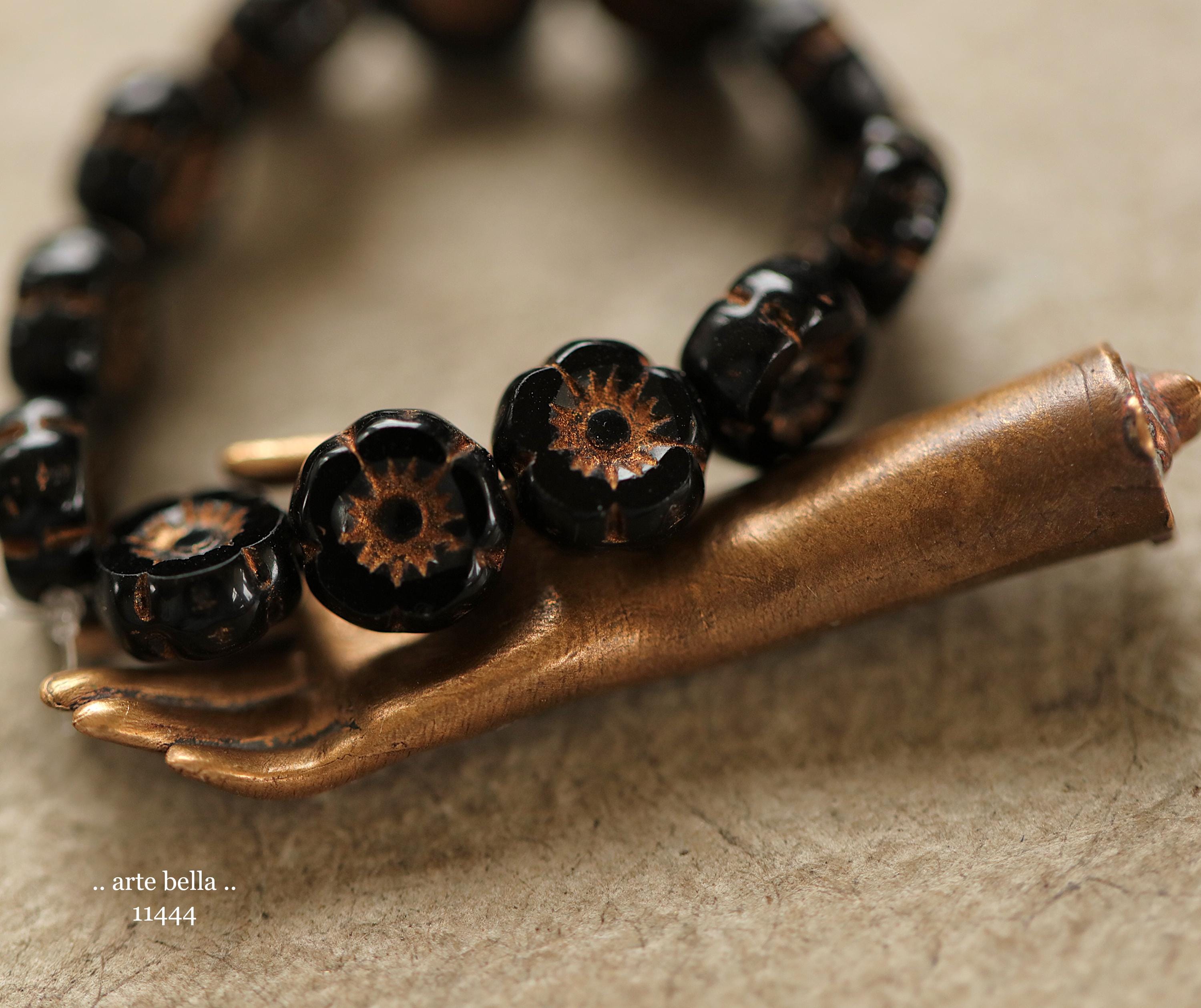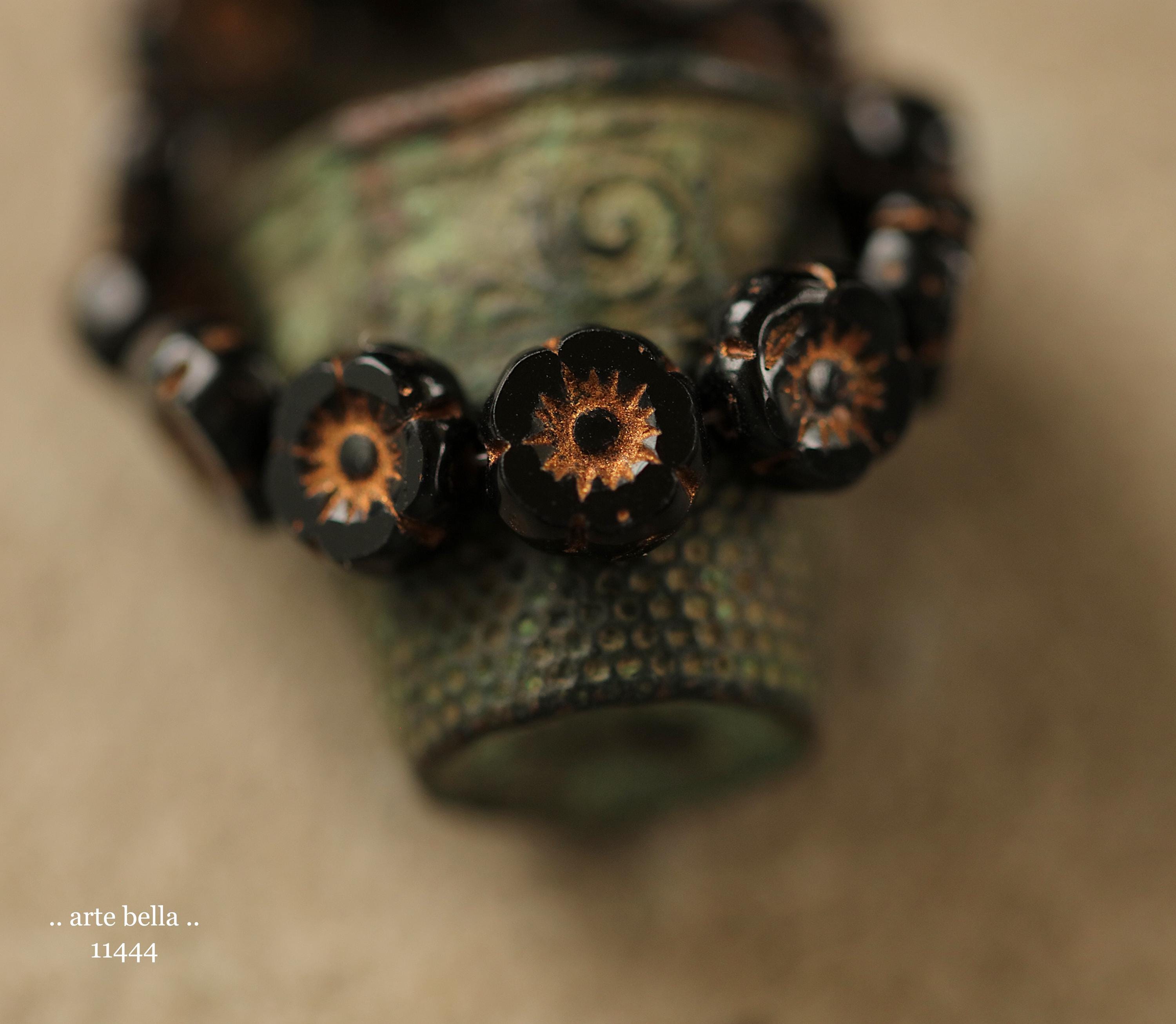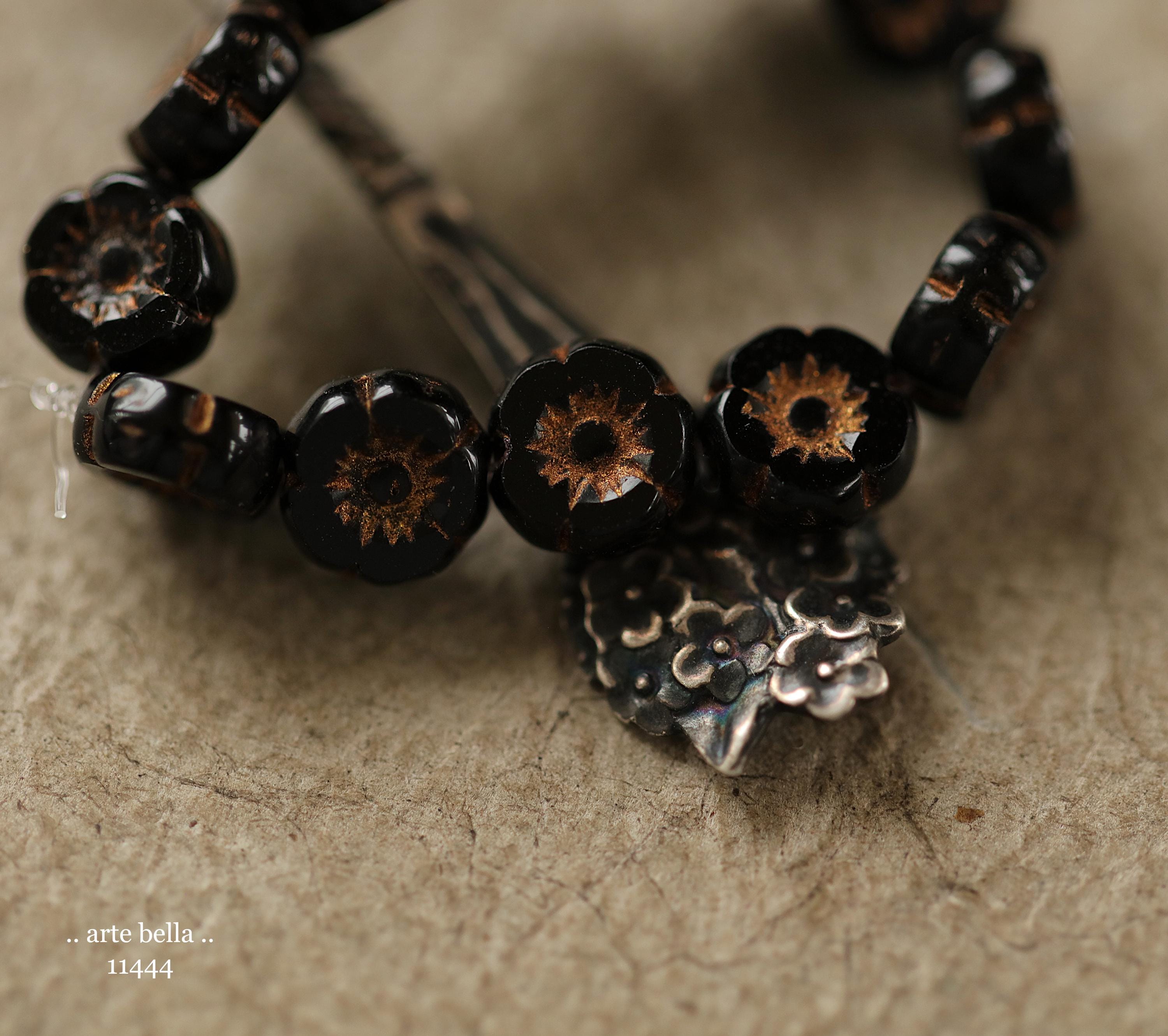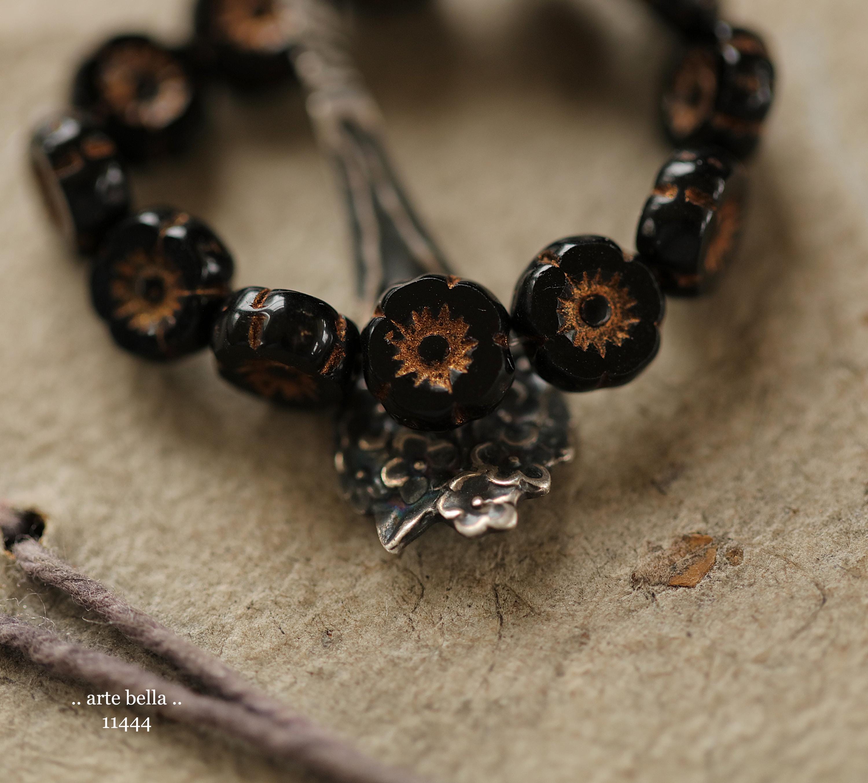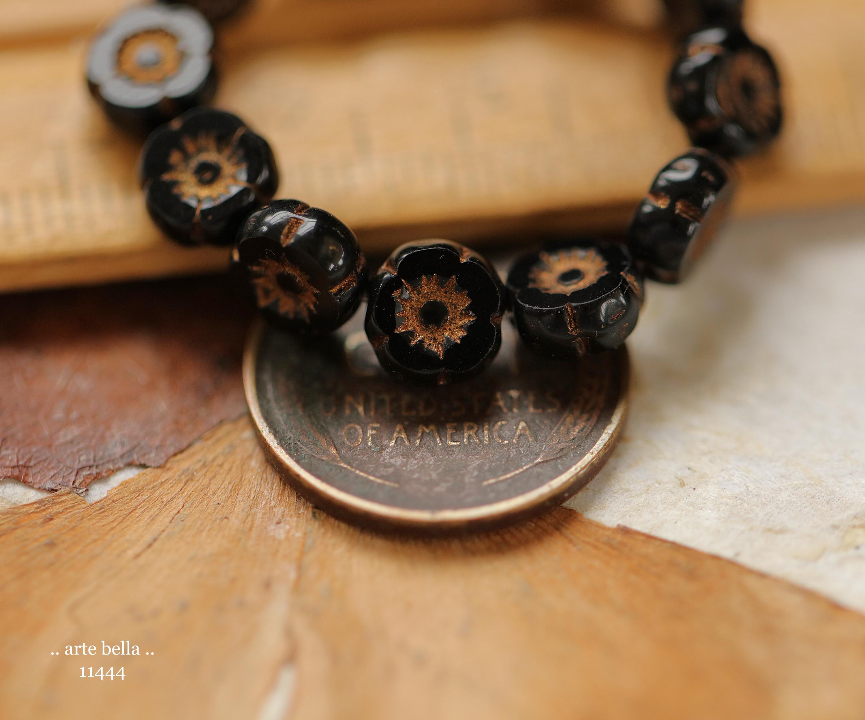 New .. BRONZE TWLIGHT PANSY 7mm .. 12 Premium Czech Glass Petite Hibiscus Flower Beads (11444-st) .. jewelry supplies