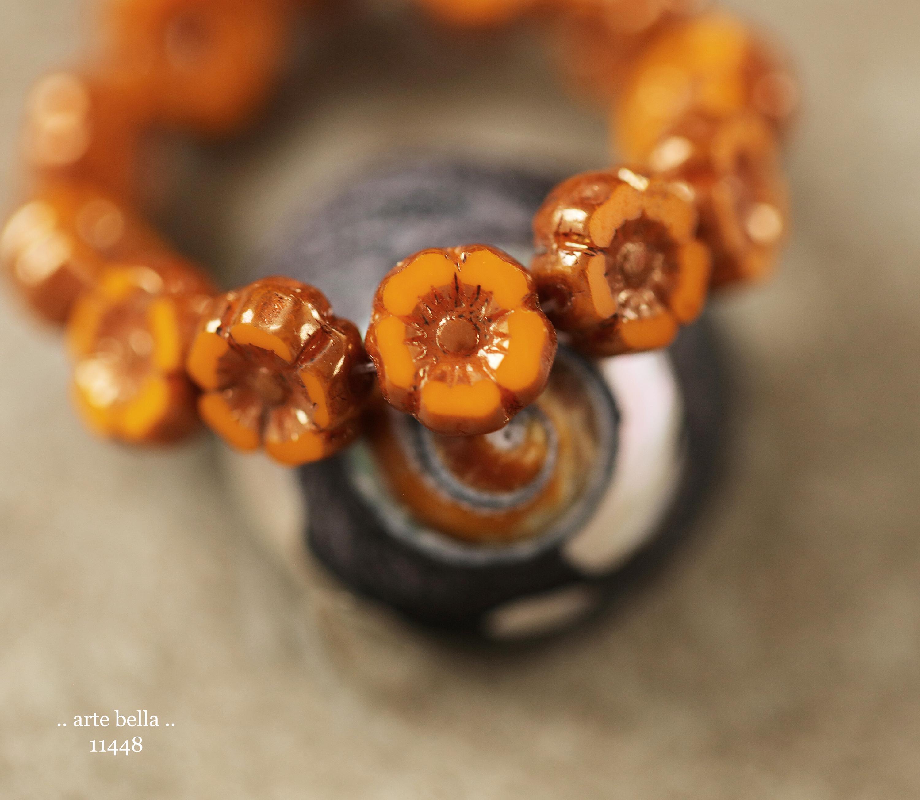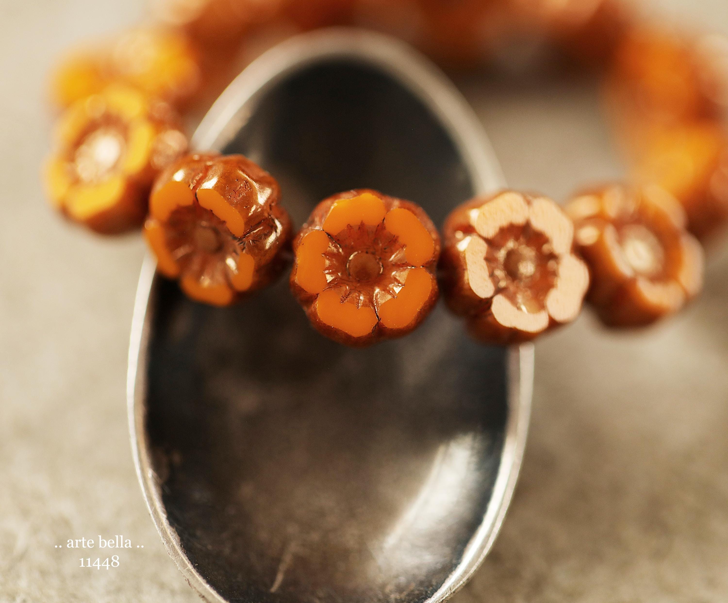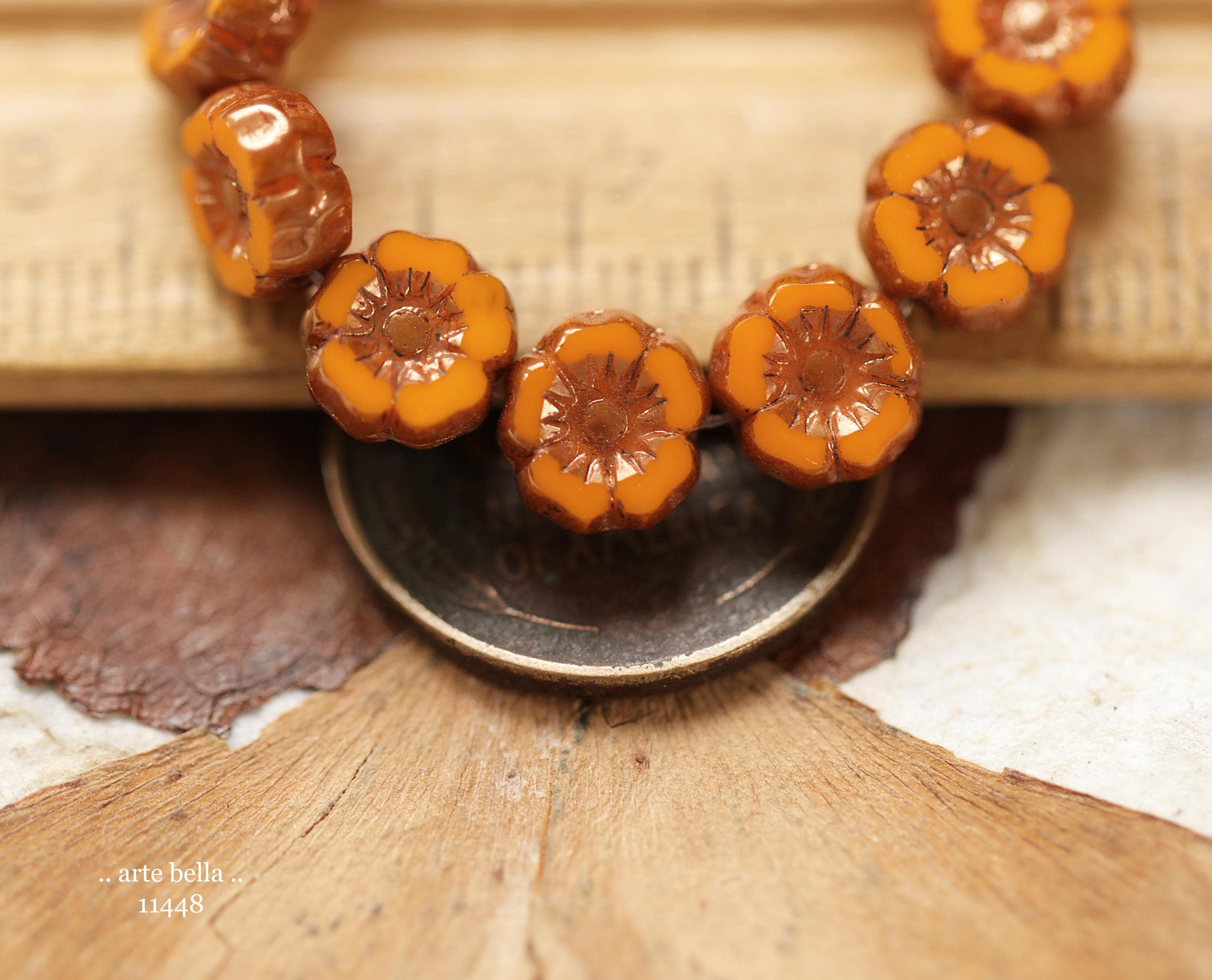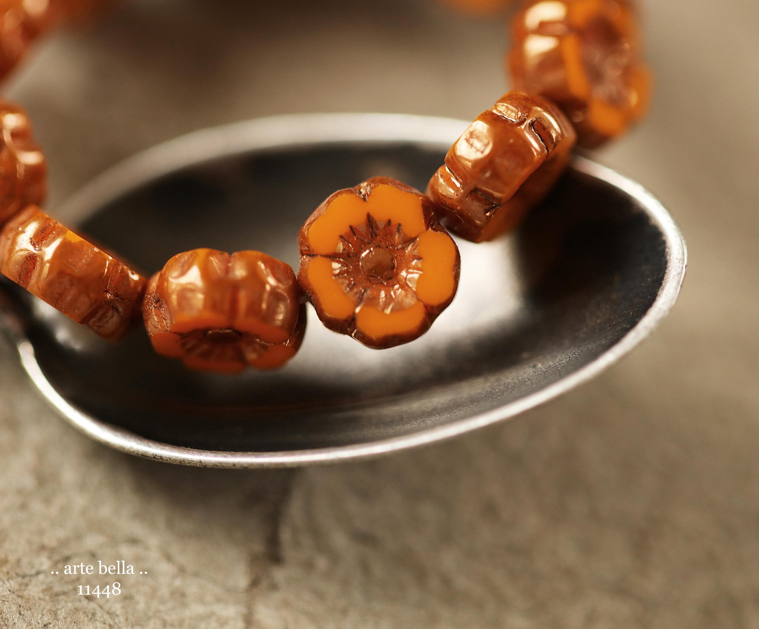 New .. BRONZED PUMPKIN PANSY 7mm .. 12 Premium Czech Glass Petite Hibiscus Flower Beads (11448-st) .. jewelry supplies