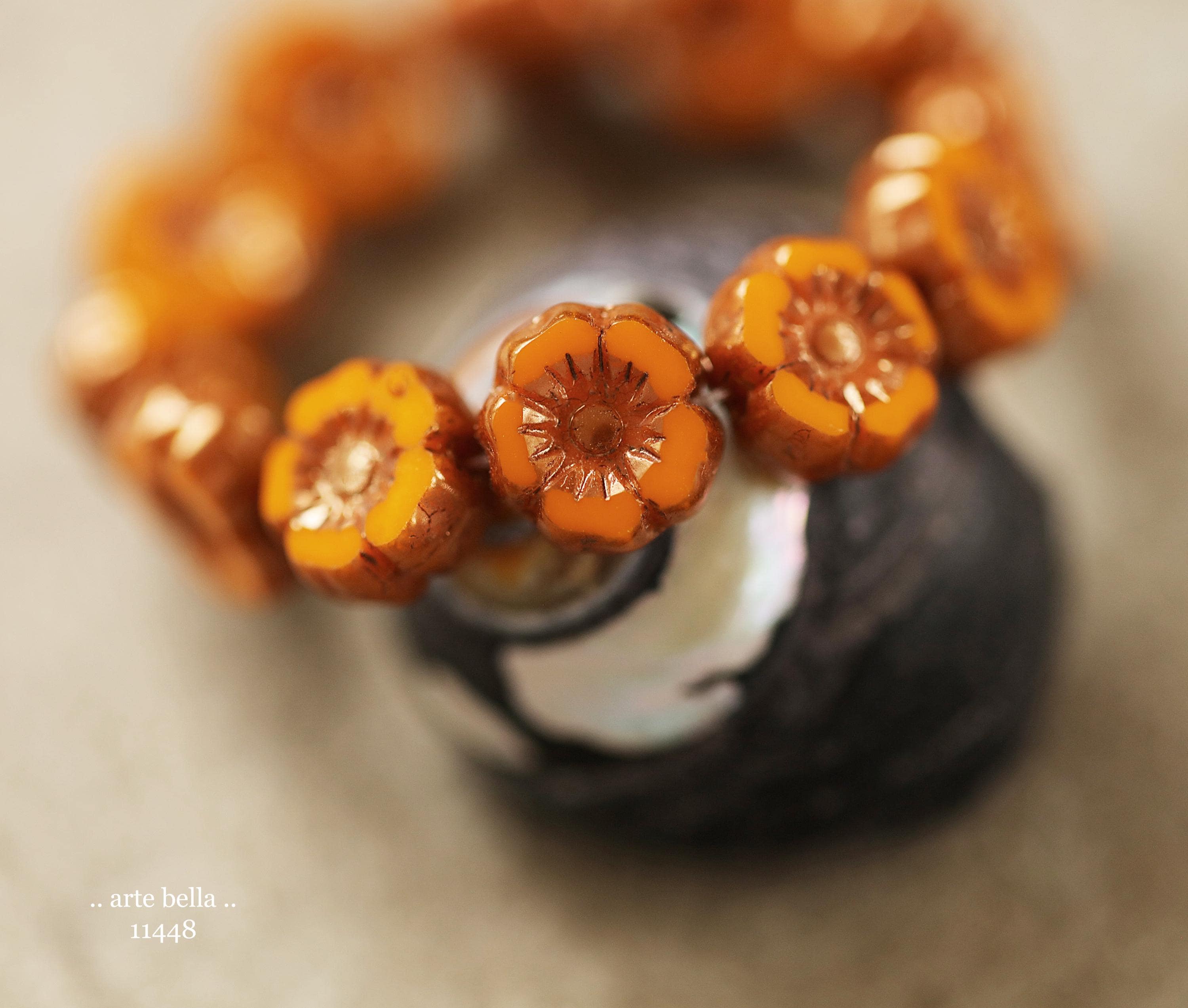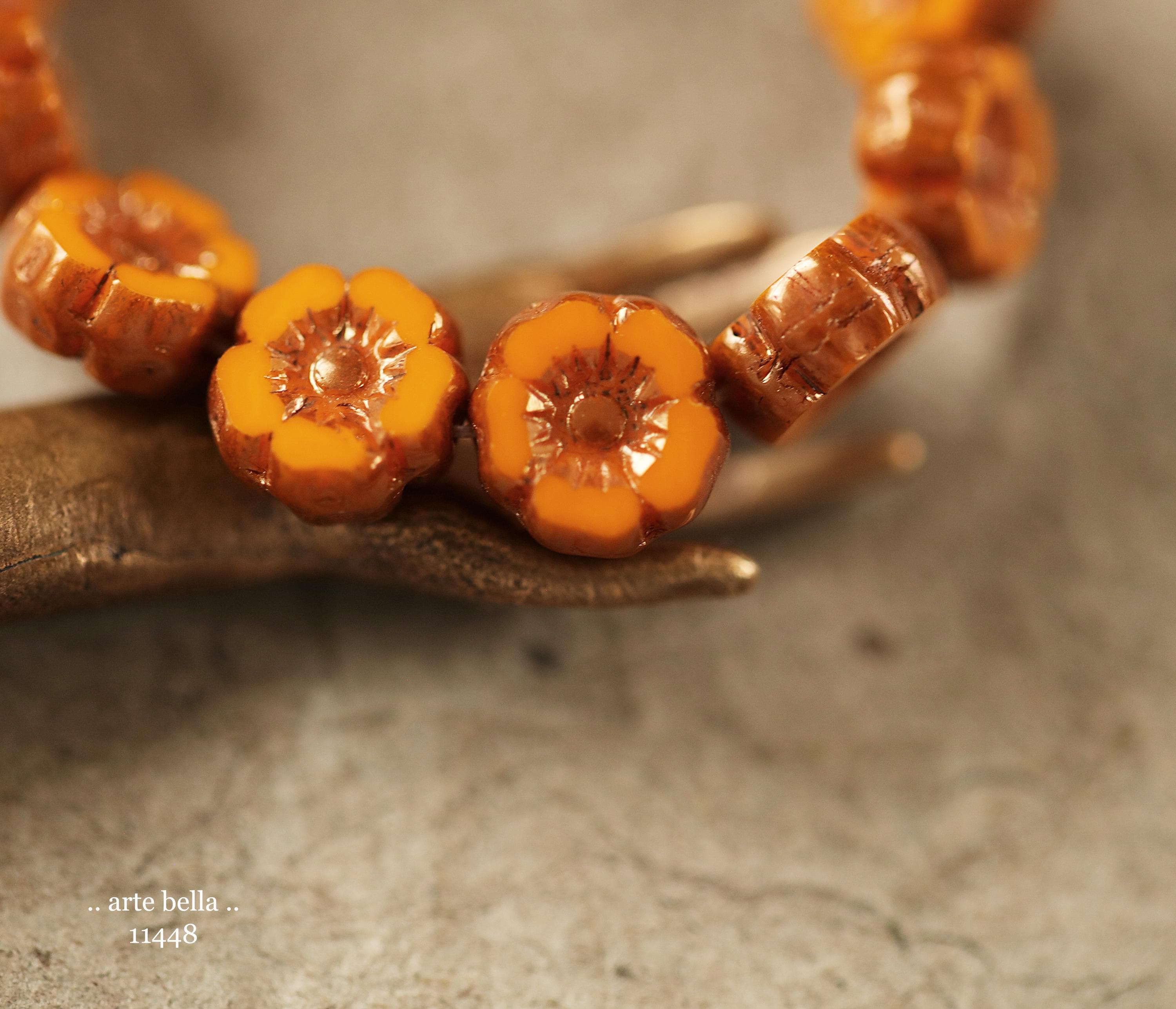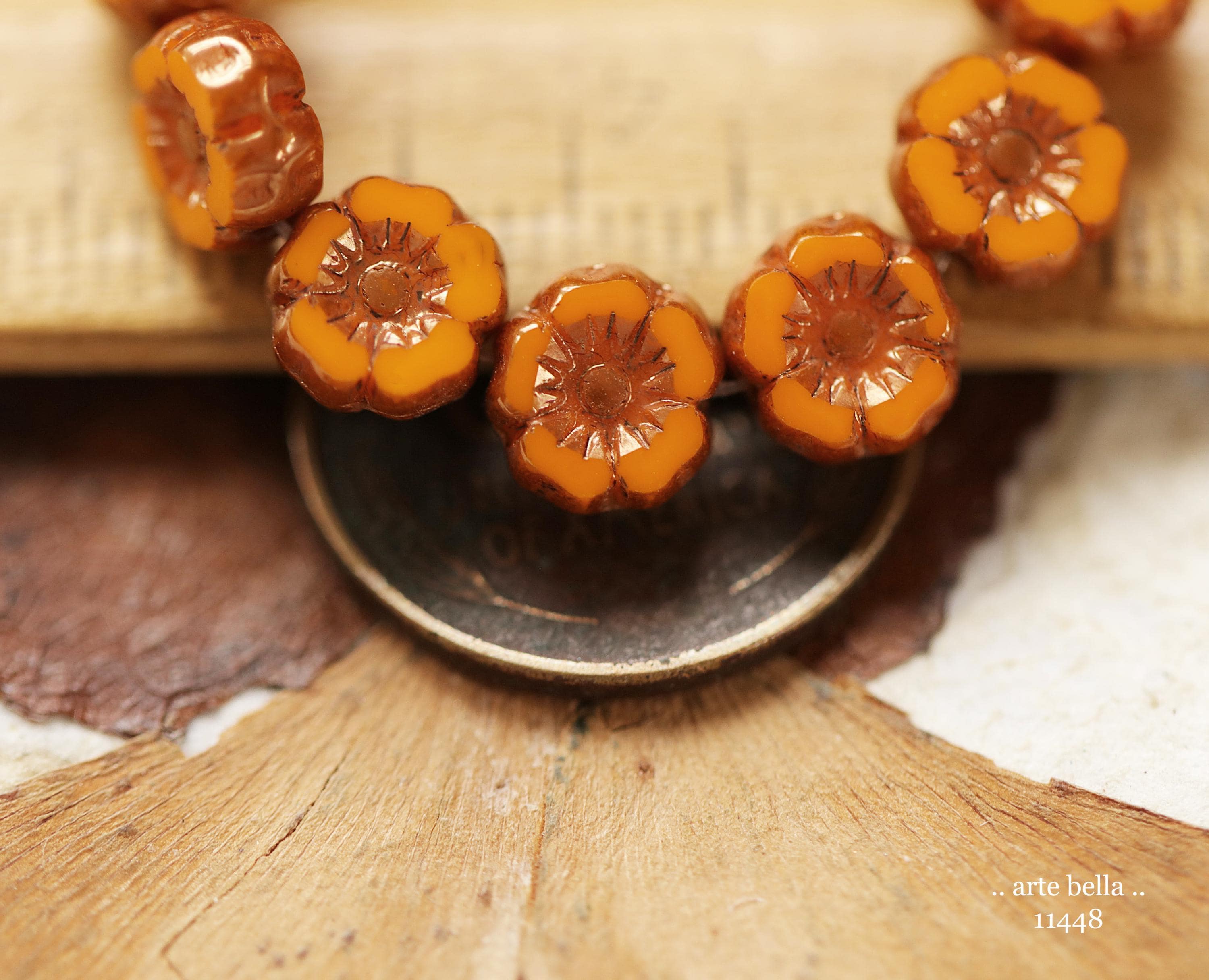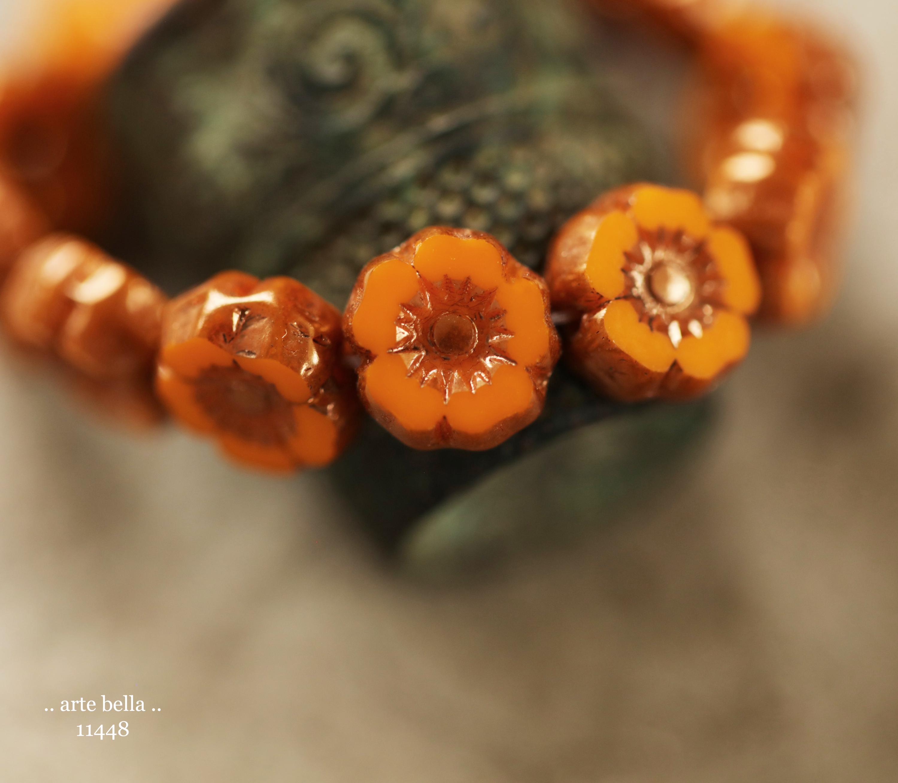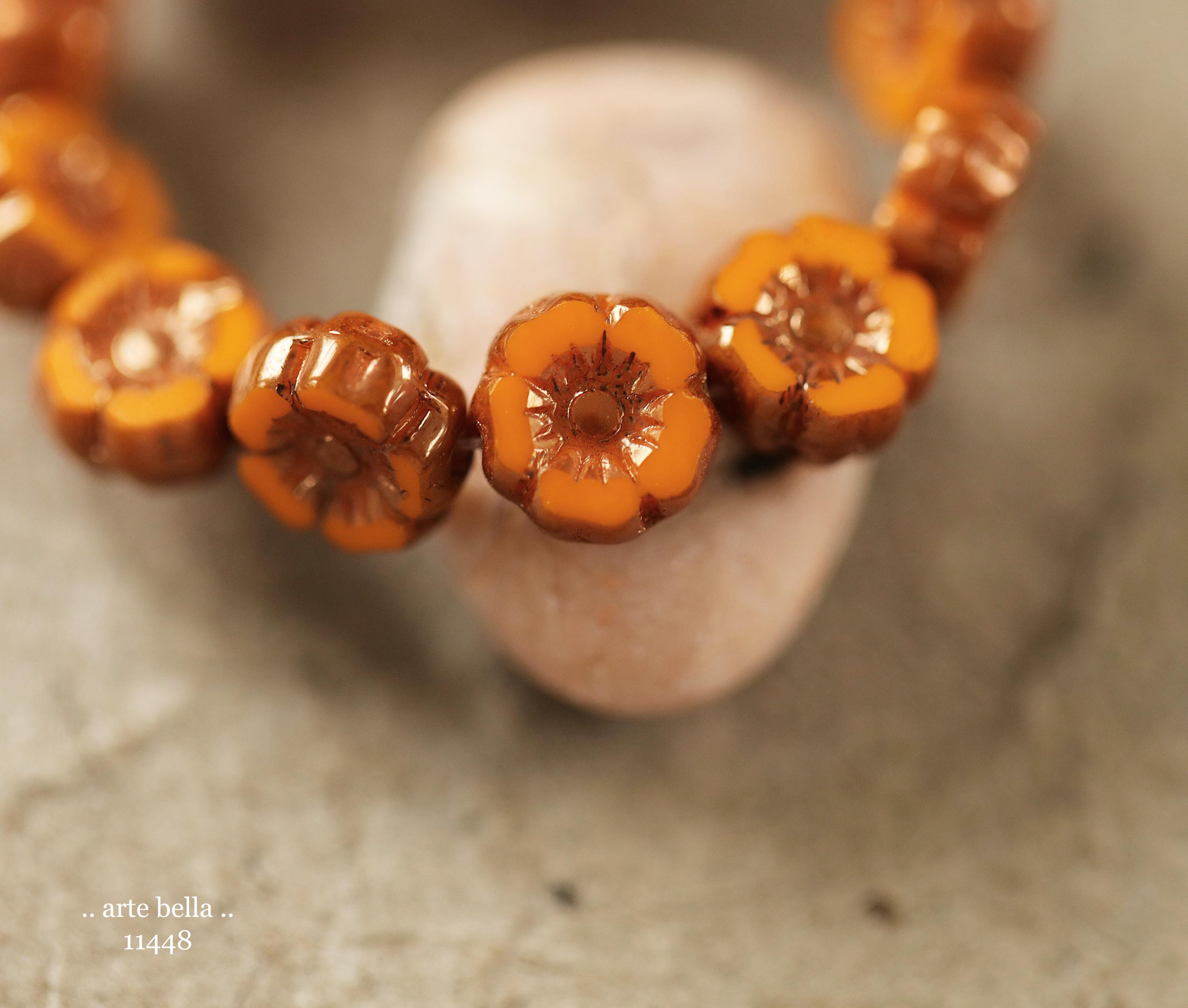New .. BRONZED PUMPKIN PANSY 7mm .. 12 Premium Czech Glass Petite Hibiscus Flower Beads (11448-st) .. jewelry supplies